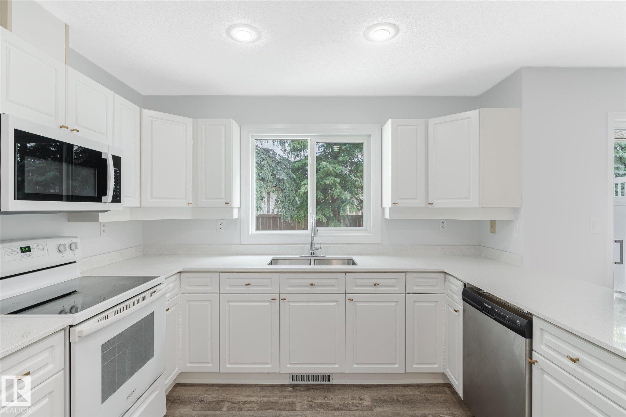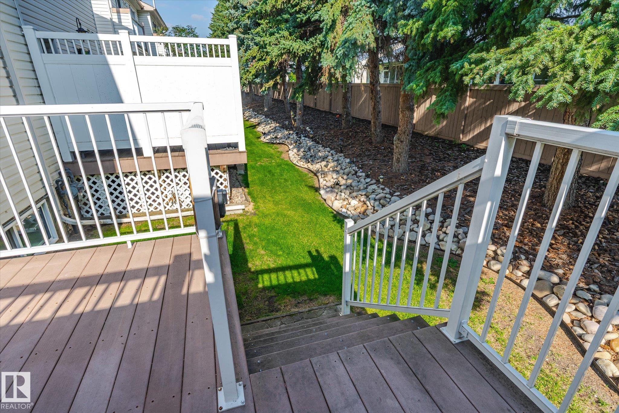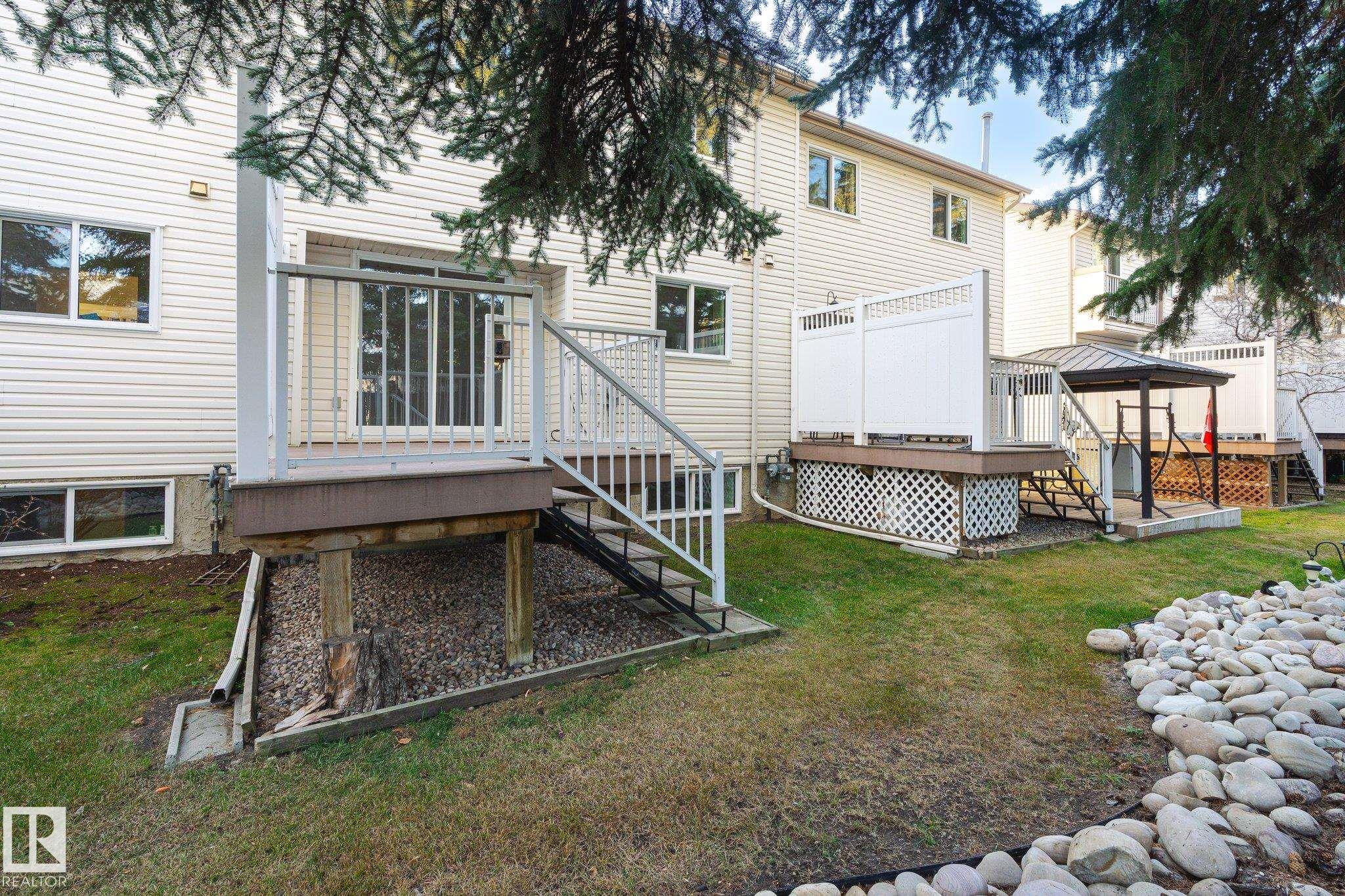 Located in the hidden gem of west EdmontonTerra Losa! This home is steps from walking trails, a park, shopping, & lake. This fully finished home has a white kitchen with brand new quartz counter tops, sink, new stainless steel fridge, luxury vinyl plank flooring. Eating area leads to patio doors & deck w/ privacy wall where you can enjoy the seclusion of the treed backyard. Laminate floors gleam in the living room with the sunny south facing window & there is a gas fireplace to keep you warm. Updated 2 piece powder room and updated light fixtures rounds out this level. Upstairs there are 3 bedrooms including a master bedroom with full ensuite & vinyl plank flooring. The main bathroom upstairs also features vinyl plank flooring and quartz counters. The basement has family room with large window and the laundry room. Furnace and hot water tank have both been replaced in the last few years. Single garage is an added bonus. Enjoy a quiet walkable area that blends natural beauty w/ urban convenience.