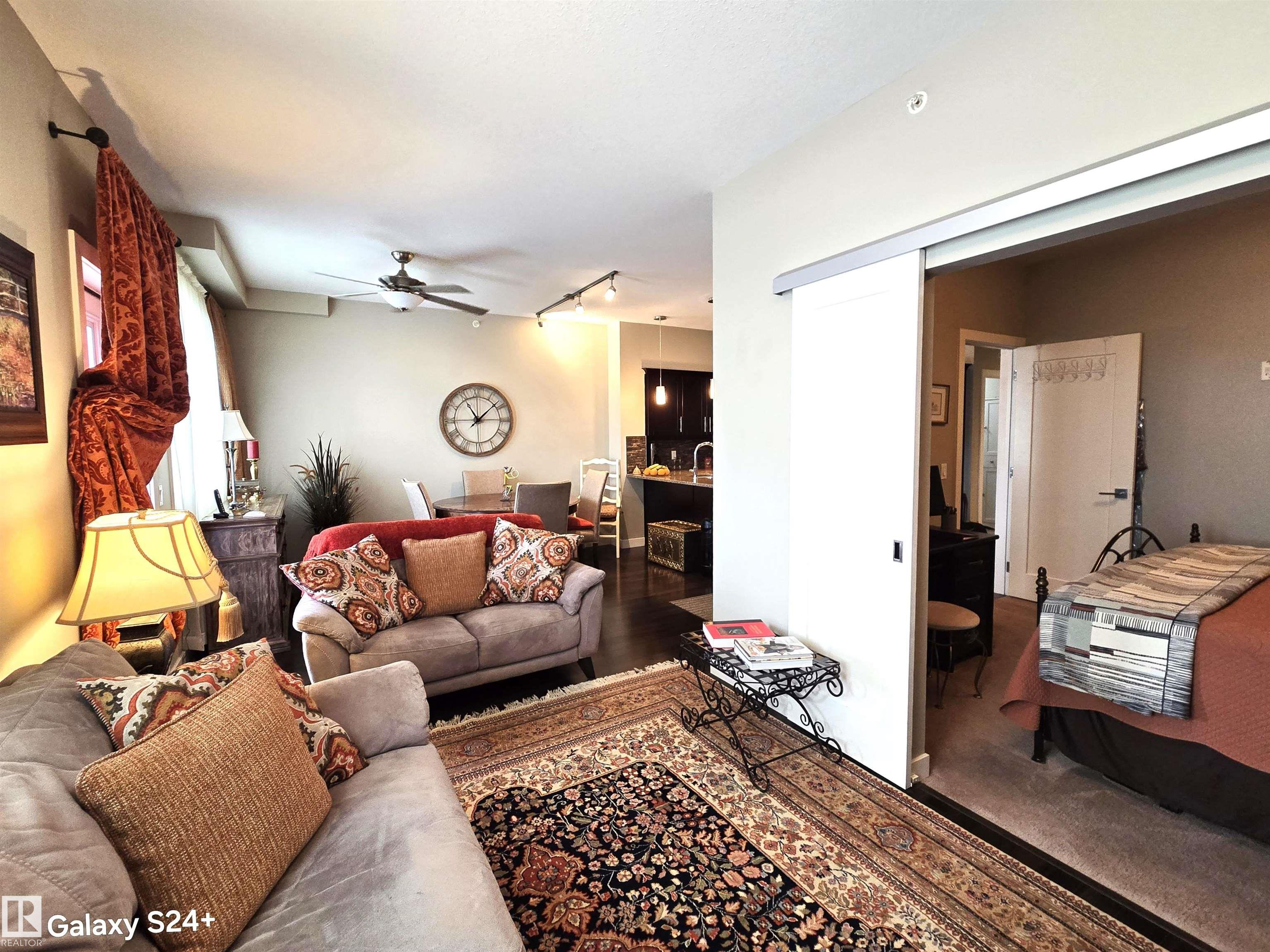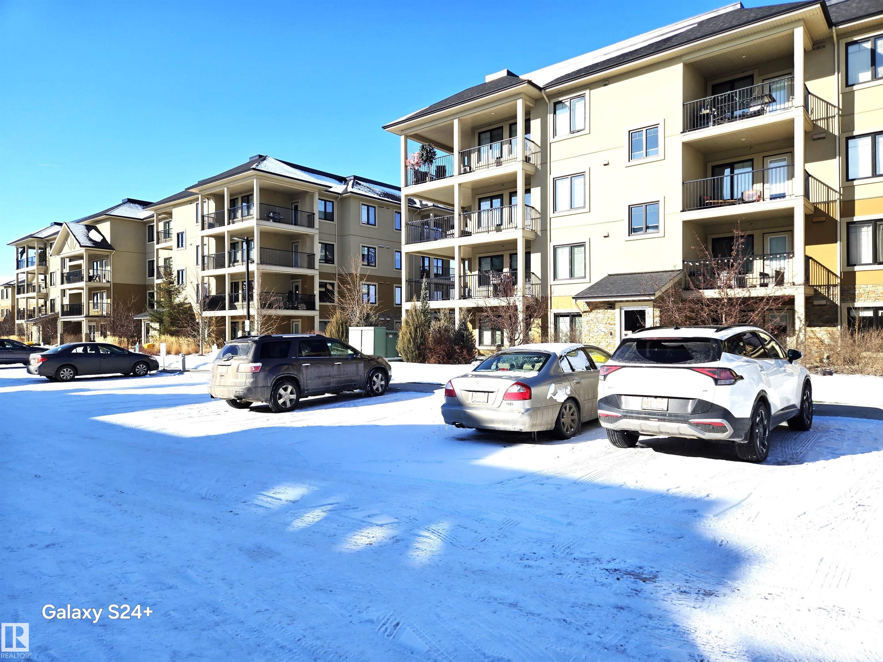 Very well kept like new. You will experience luxury from the top floor of the Essence of Windermere South (18+). This impeccably maintained just like a new 710 sq. ft. residence offers a premium lifestyle with 9-foot ceilings. The gourmet kitchen features quartz countertops, beautiful cabinetry, and a matching backsplash, fully equipped with stainless steel appliances. The master bedroom leading to a 4-piece bath a walkthrough closet, the 13'x7' balcony backs on open view. This unit includes rare value: two parking stalls (one underground, one surface) and two storage units (one at your stall and one titled cage on the same floor). Built by very reputed award winning Cove Properties, this professionally managed building offers low monthly fees $369 and is minutes away from the Anthony Henday, elite shopping, and conveniences like fast food, coffee shops etc etc. You will surely love owning and living here.