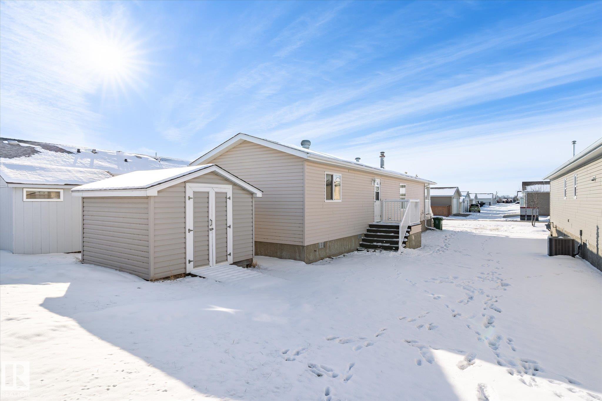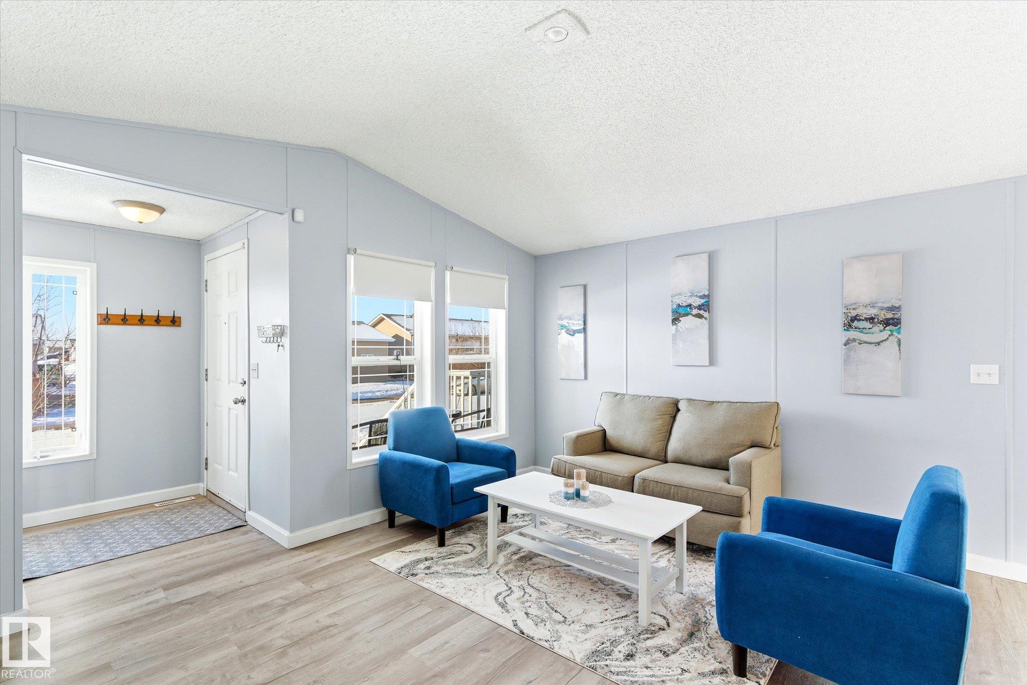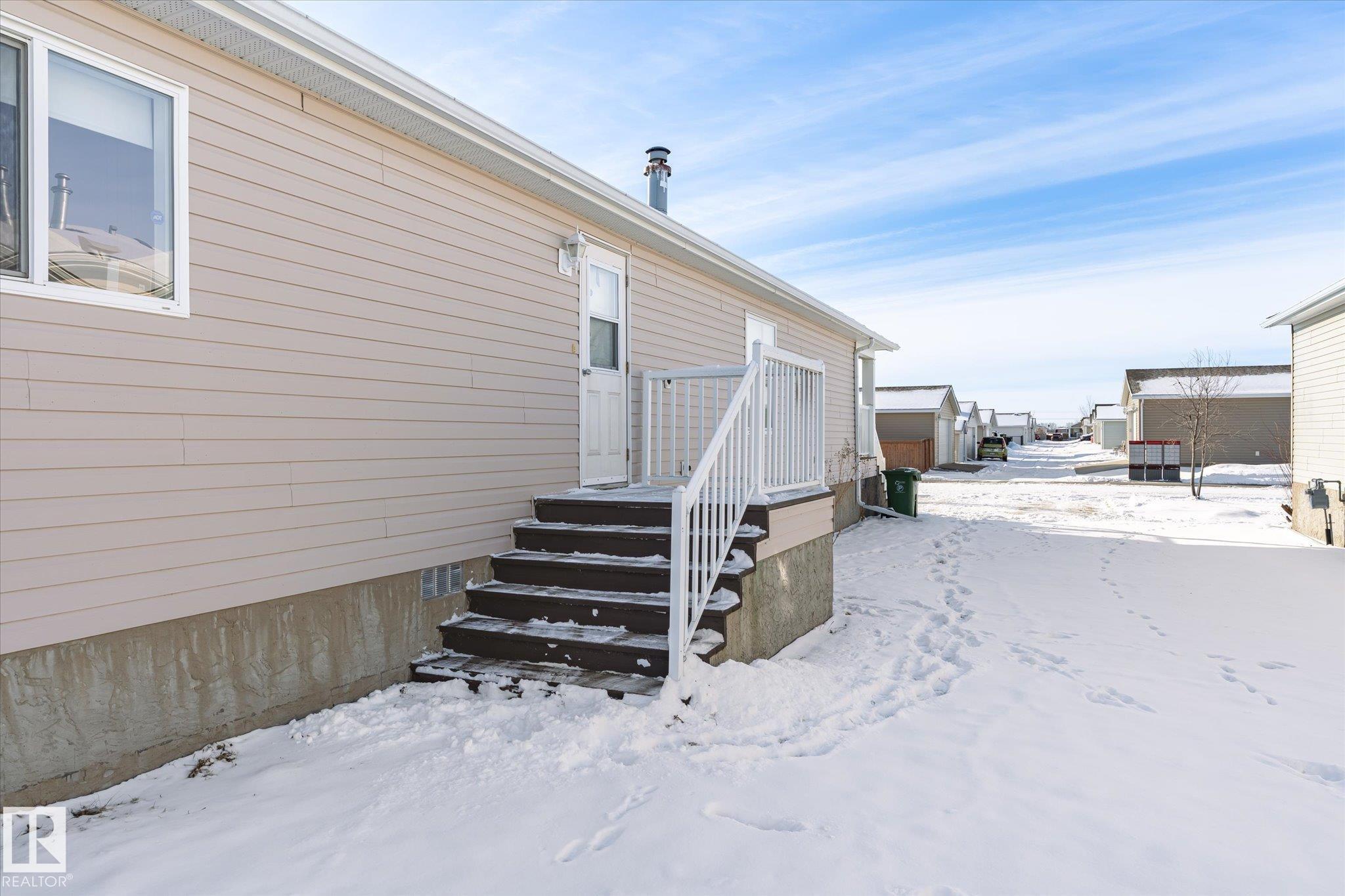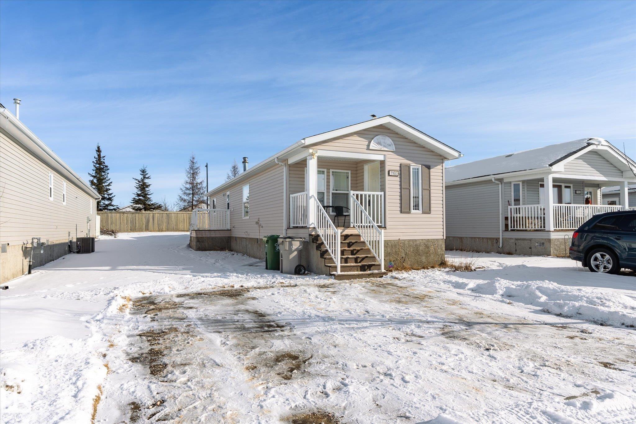 Affordable move-in ready 2-bedroom home offers bright, airy living at a price point that can be less than rent or even the purchase price of a basement suite in a duplex. Located on the edge of town in a quiet neighbourhood, this charming single-level home is ideal for first-time buyers, downsizers, or anyone looking for low-maintenance living without sacrificing comfort or convenience. Vaulted ceilings and large windows that fill the space with natural light, the home feels open, warm, and inviting. Enjoy the privacy of your own space, plus parking for 2 full-size vehicles and ample street parking. Access to multiple nearby walking paths for an active lifestyle.Despite its peaceful setting, you are still close to shopping amenities. Just steps away is the Aspen Creek Community Centre, offering a great place to connect with neighbours or host friends and family nearby. Kitchen is nicely equipped with S/S appliances, plus there is a stacked washer/dryer combo. Room for a king sized bed in the master bdrms