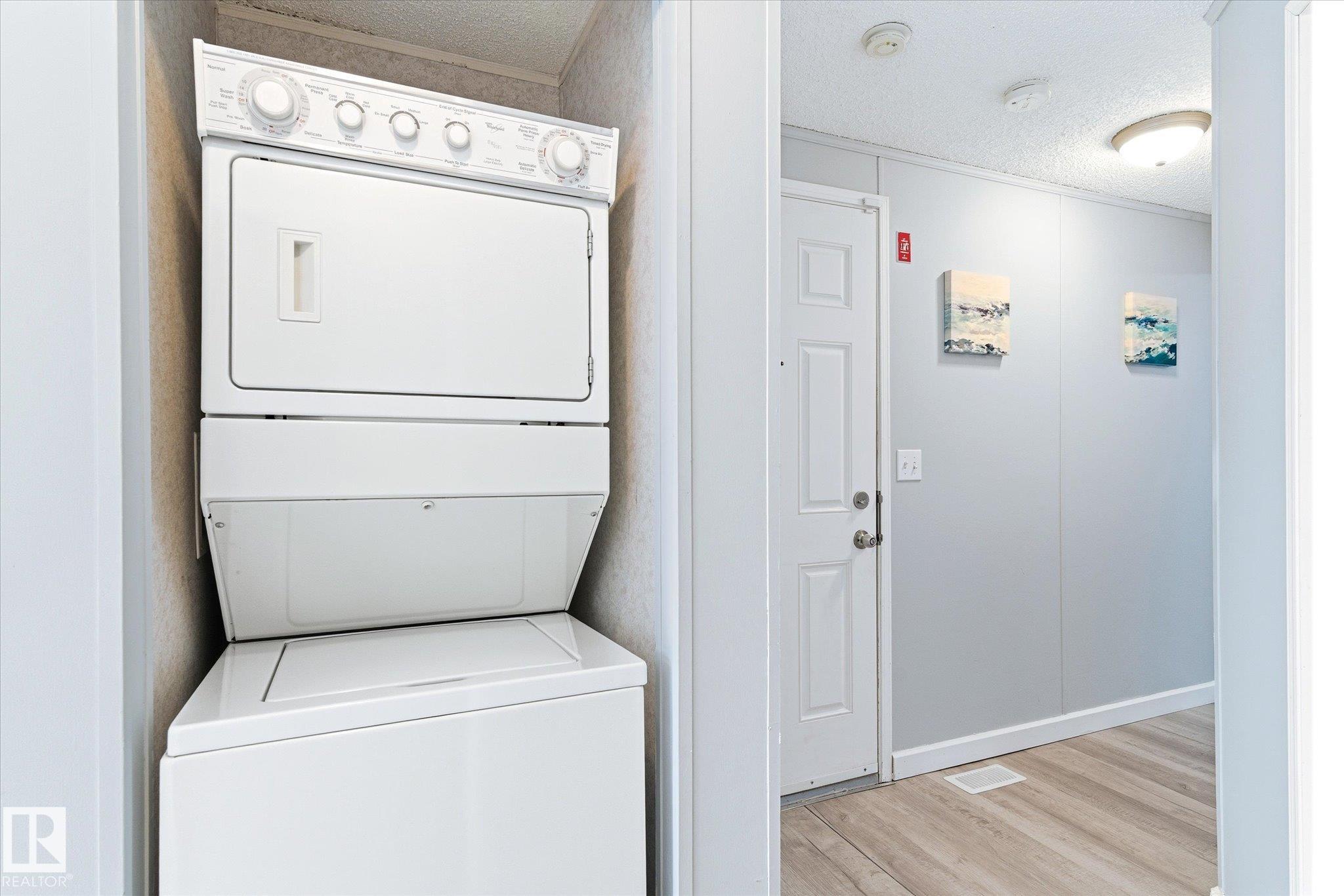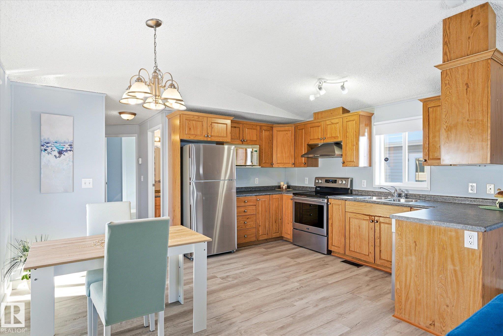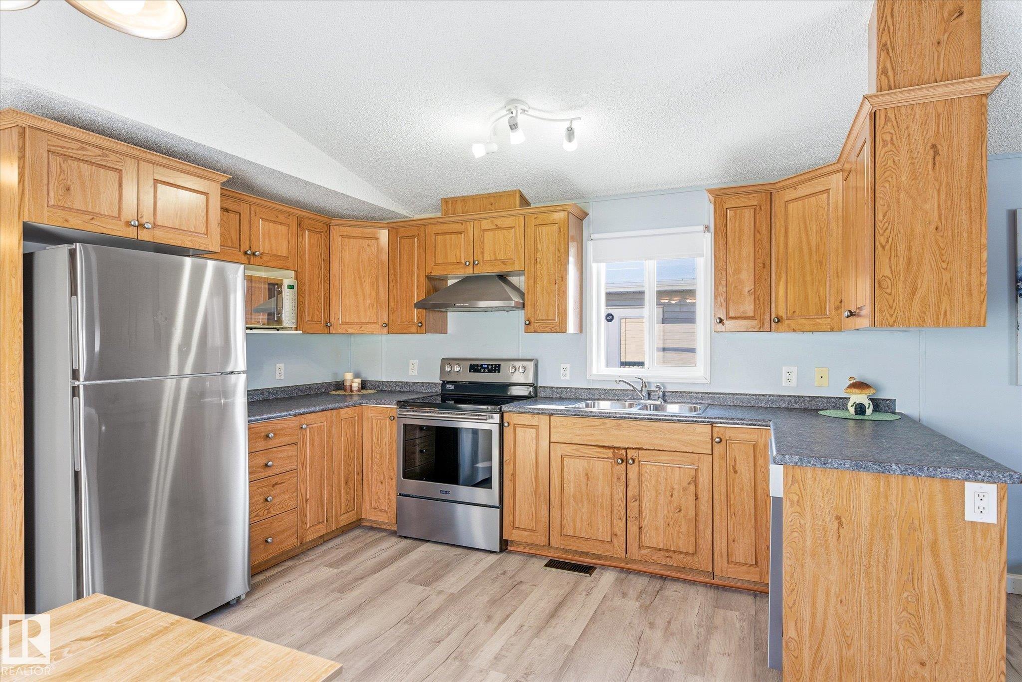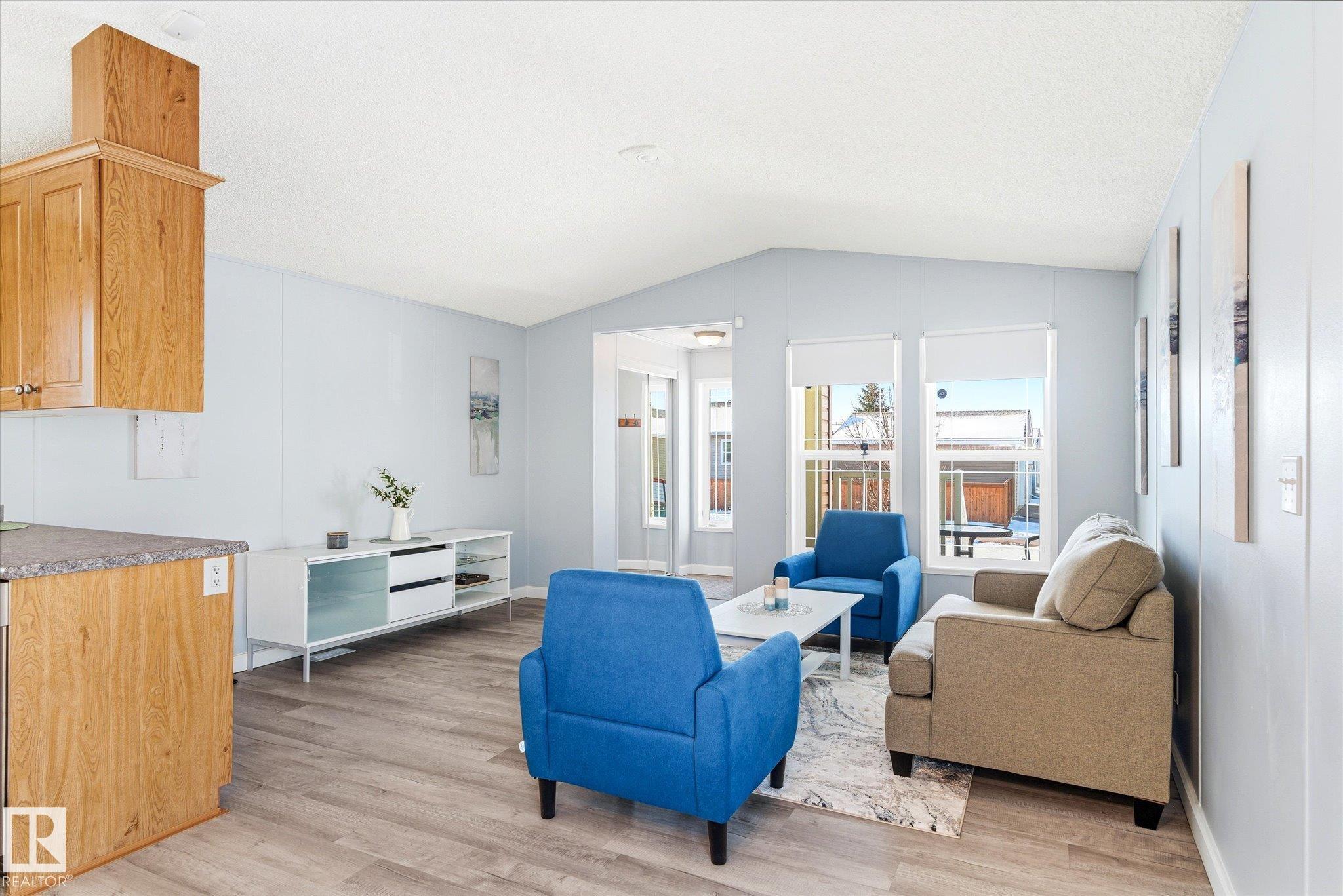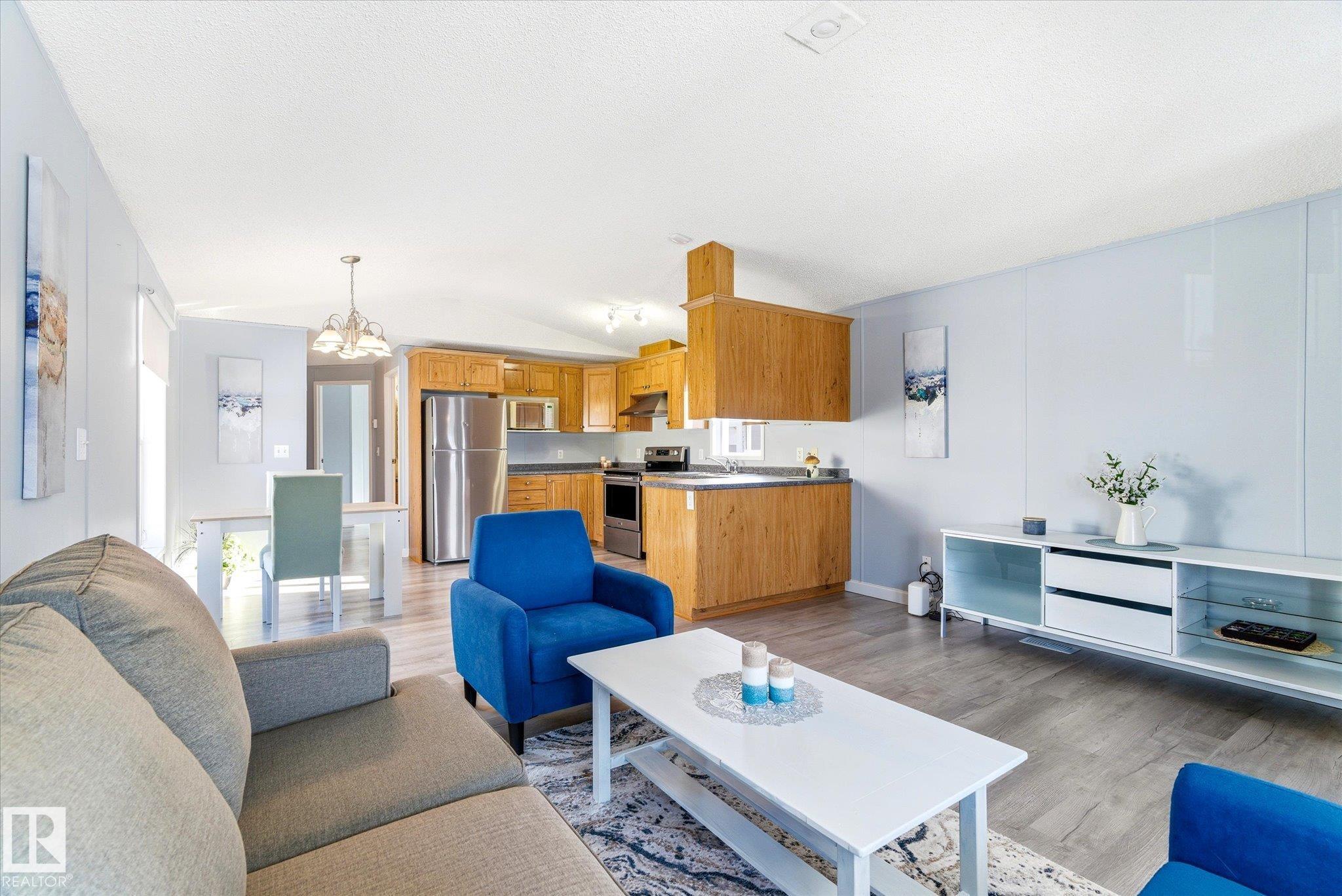 Affordable move-in ready 2-bedroom home offers bright, airy living at a price point that can be less than rent or even the purchase price of a basement suite in a duplex. Located on the edge of town in a quiet neighbourhood, this charming single-level home is ideal for first-time buyers, downsizers, or anyone looking for low-maintenance living without sacrificing comfort or convenience. Vaulted ceilings and large windows that fill the space with natural light, the home feels open, warm, and inviting. Enjoy the privacy of your own space, plus parking for 2 full-size vehicles and ample street parking. Access to multiple nearby walking paths for an active lifestyle.Despite its peaceful setting, you are still close to shopping amenities. Just steps away is the Aspen Creek Community Centre, offering a great place to connect with neighbours or host friends and family nearby. Kitchen is nicely equipped with S/S appliances, plus there is a stacked washer/dryer combo. Room for a king sized bed in the master bdrms