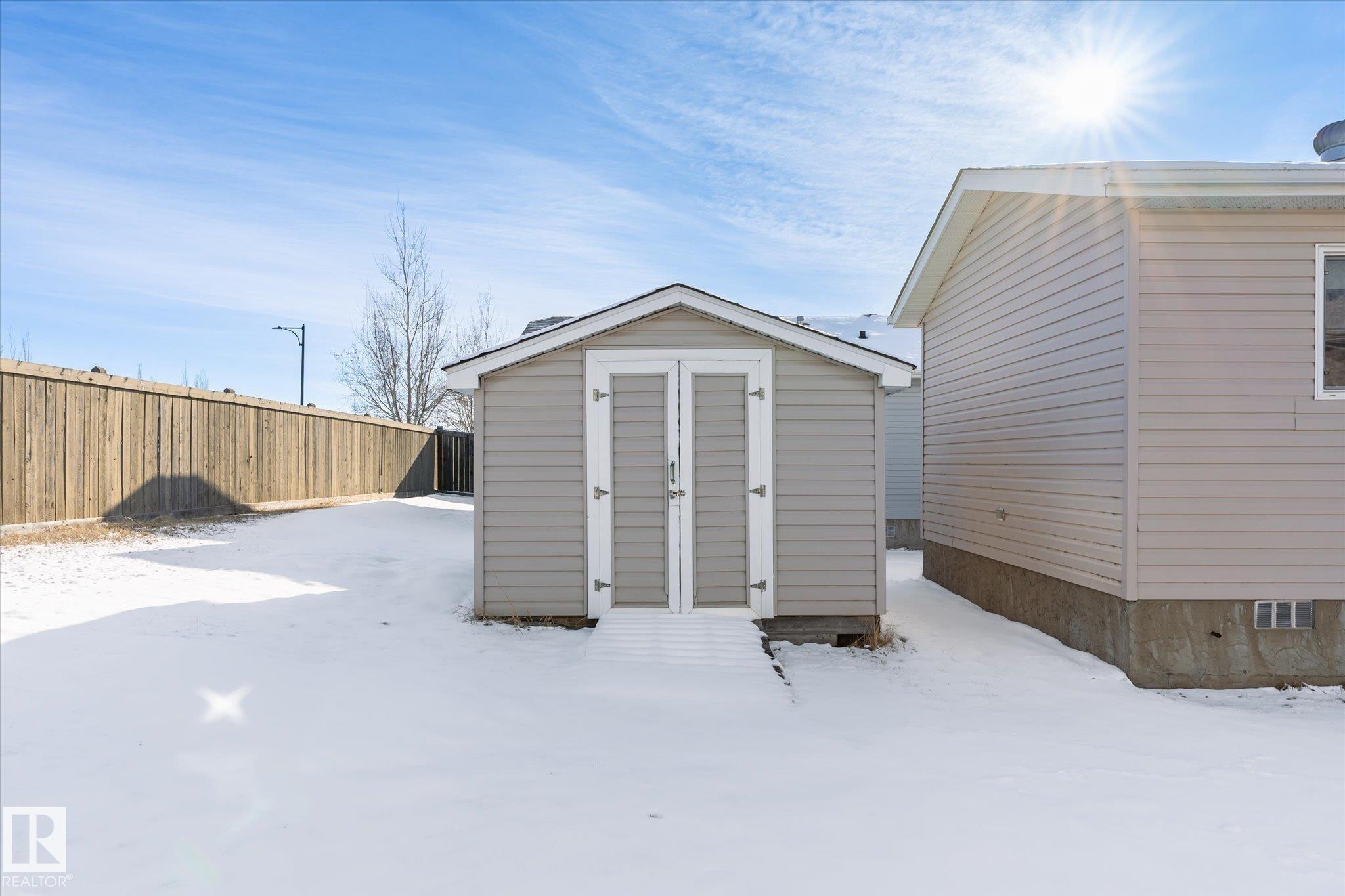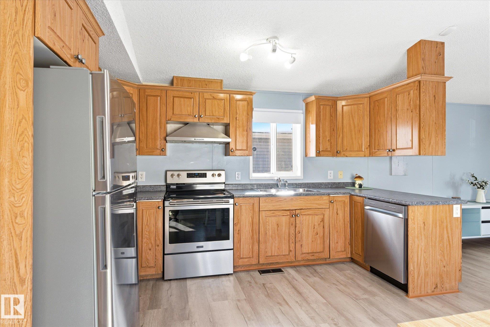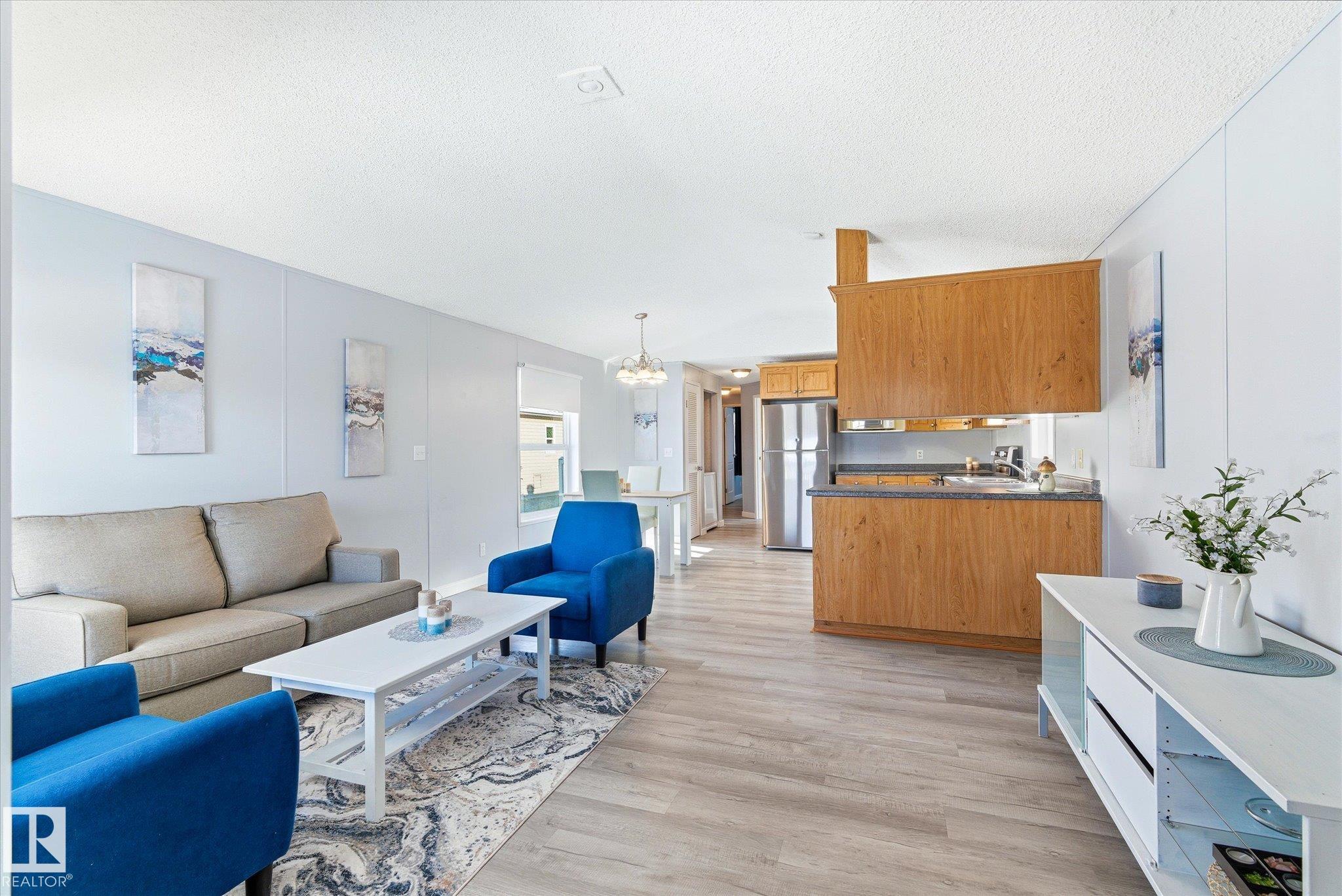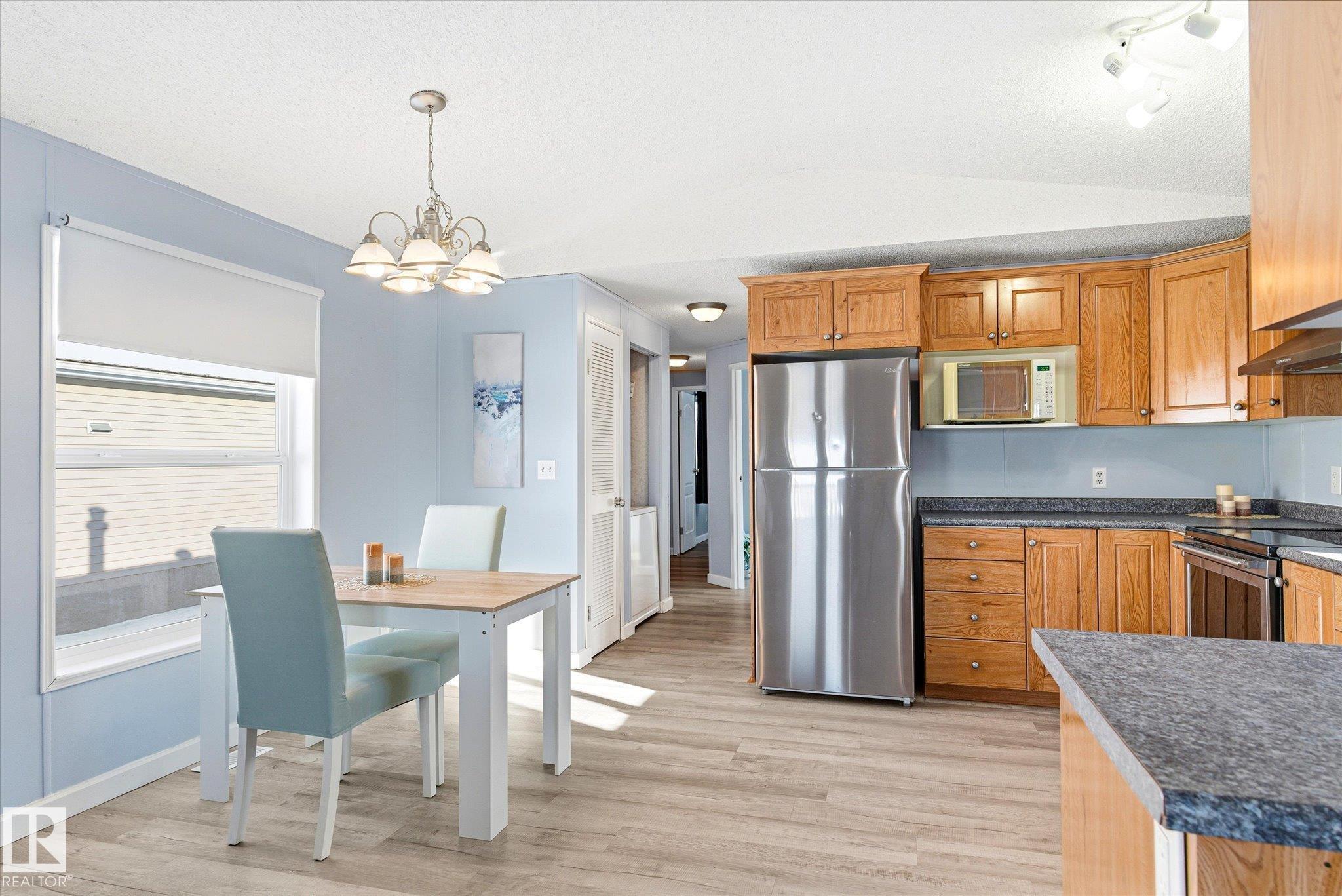 Affordable move-in ready 2-bedroom home offers bright, airy living at a price point that can be less than rent or even the purchase price of a basement suite in a duplex. Located on the edge of town in a quiet neighbourhood, this charming single-level home is ideal for first-time buyers, downsizers, or anyone looking for low-maintenance living without sacrificing comfort or convenience. Vaulted ceilings and large windows that fill the space with natural light, the home feels open, warm, and inviting. Enjoy the privacy of your own space, plus parking for 2 full-size vehicles and ample street parking. Access to multiple nearby walking paths for an active lifestyle.Despite its peaceful setting, you are still close to shopping amenities. Just steps away is the Aspen Creek Community Centre, offering a great place to connect with neighbours or host friends and family nearby. Kitchen is nicely equipped with S/S appliances, plus there is a stacked washer/dryer combo. Room for a king sized bed in the master bdrms