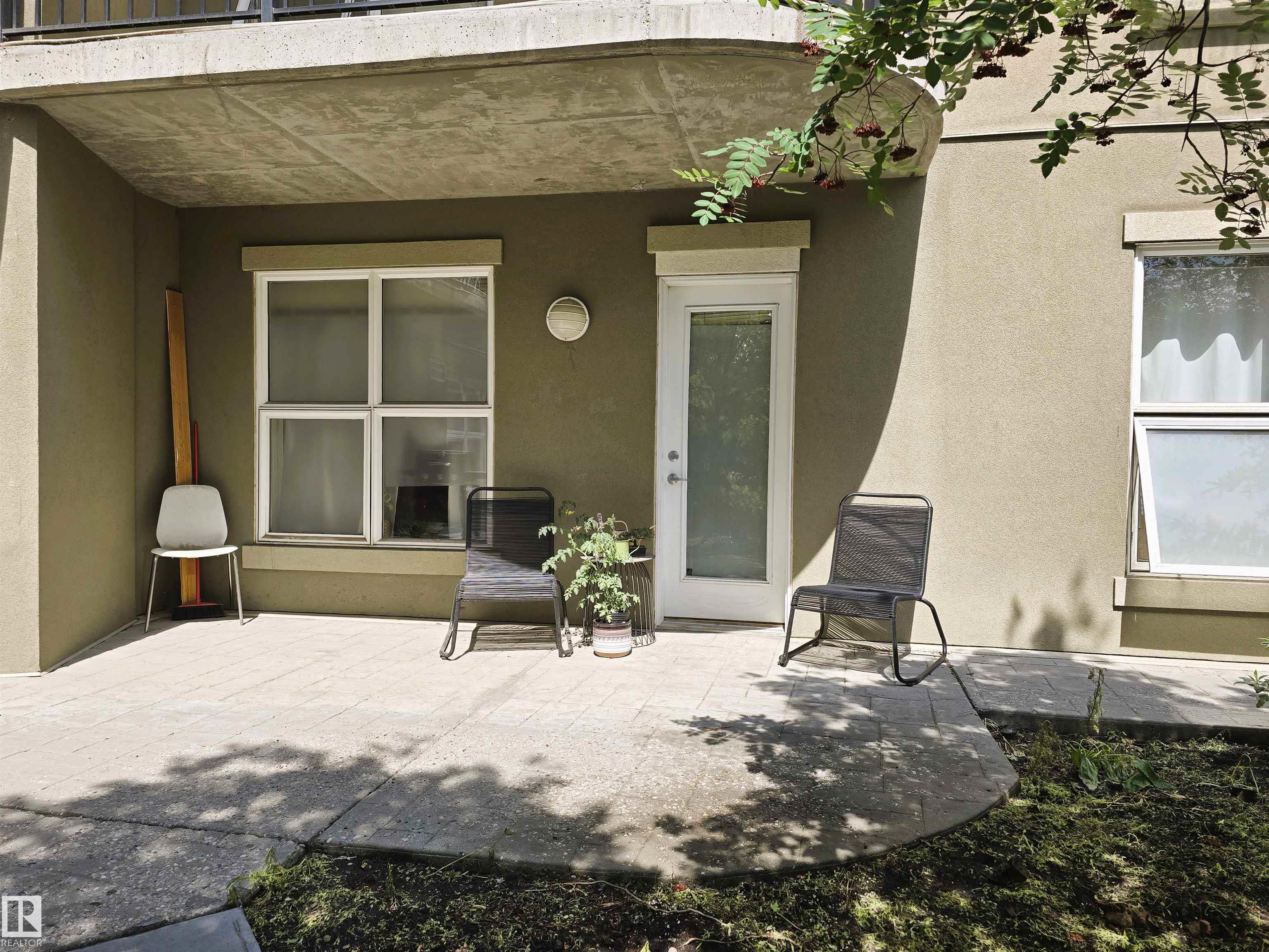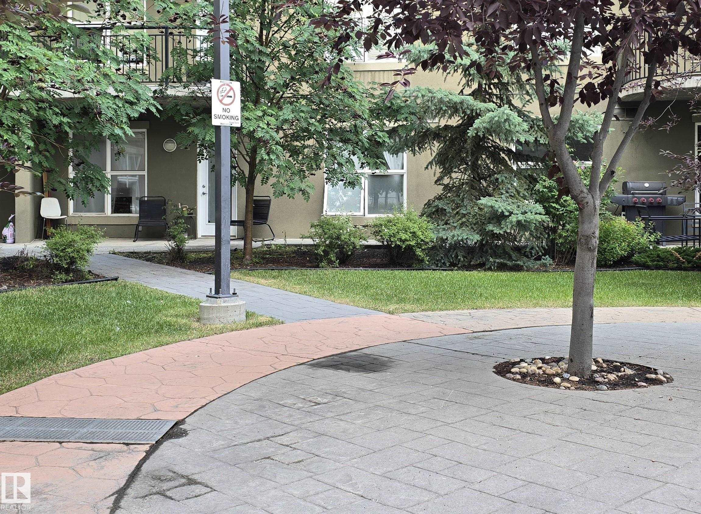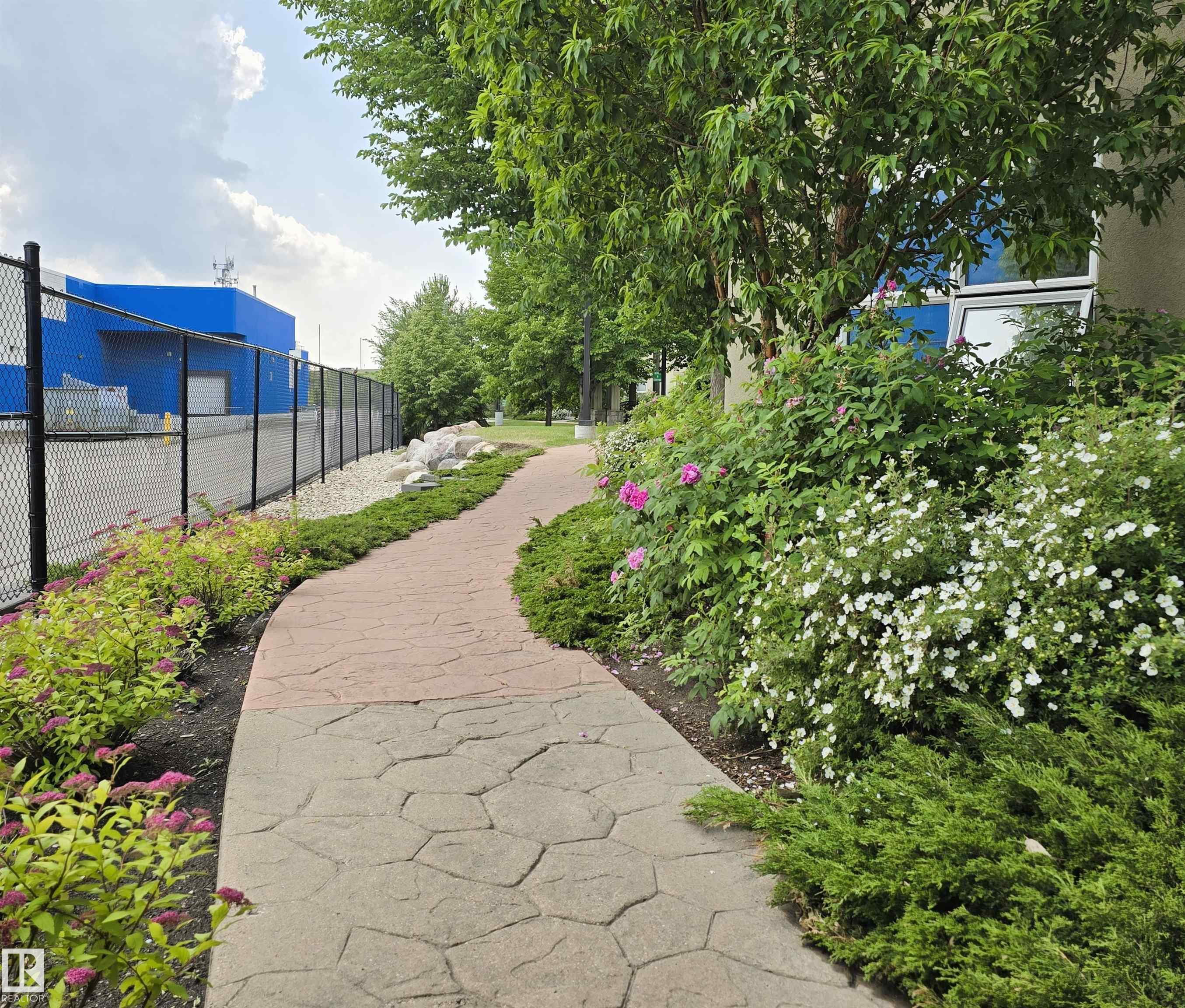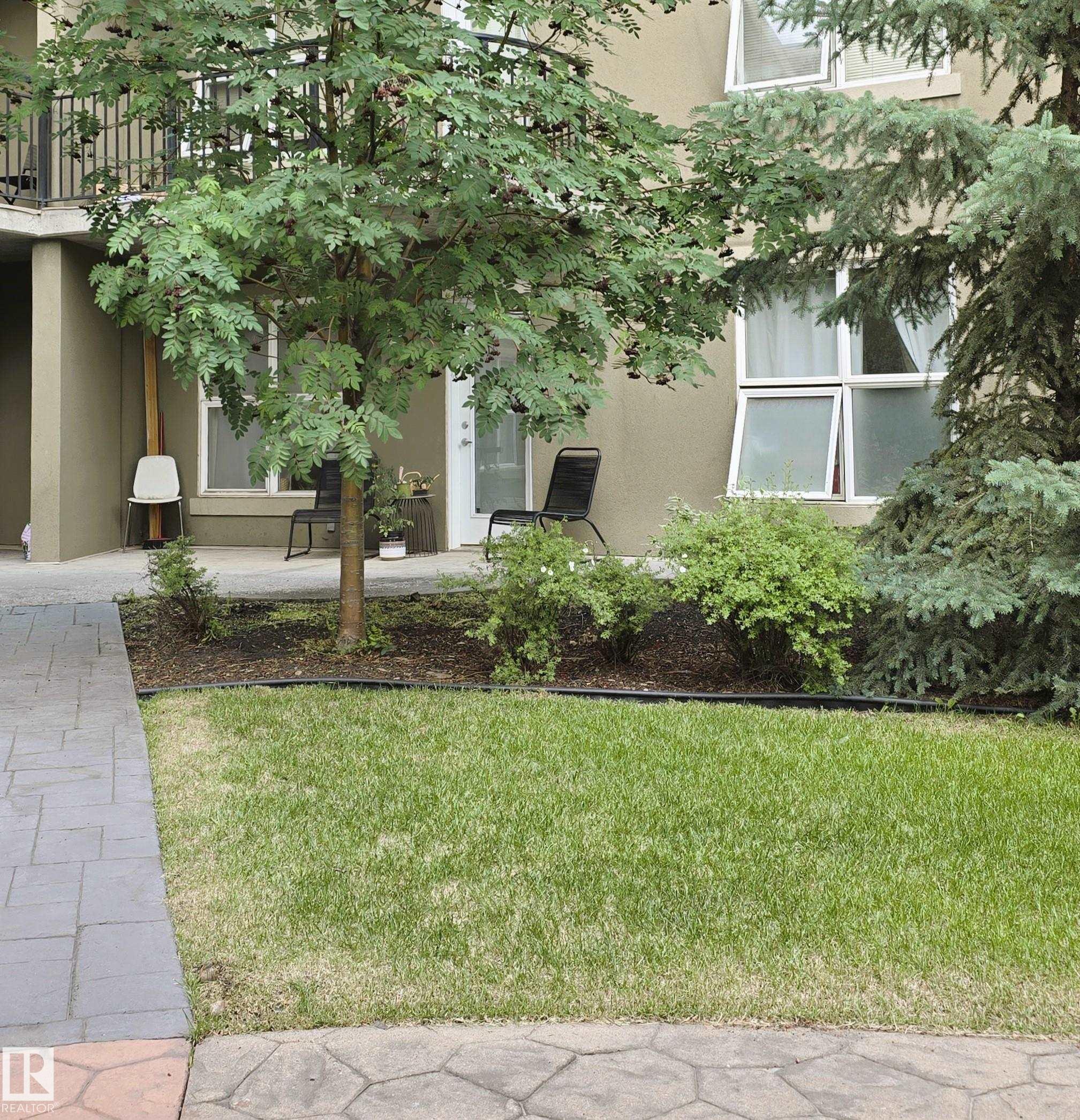 Beautiful upgraded 1 bed, 1 bath ground-floor suite with private courtyard and exterior entrance. This south facing unit features 9 ft ceilings, large vinyl windows, luxury laminate flooring, fresh paint, and new baseboards. The stylish kitchen offers stainless steel appliances, new light fixtures, and backsplash. Updated bathroom fixture and ensuite laundry for added convenience. Stay comfortable year-round with a heated underground parking stall and enjoy summer BBQs with the gas lines on your private patio. Low condo fees with ELECTRICITY INCLUDED! Small pets allowed with board approval. Just a short walk to shopping centers and the Clareview LRT Stop. A perfect blend of privacy, style and location!