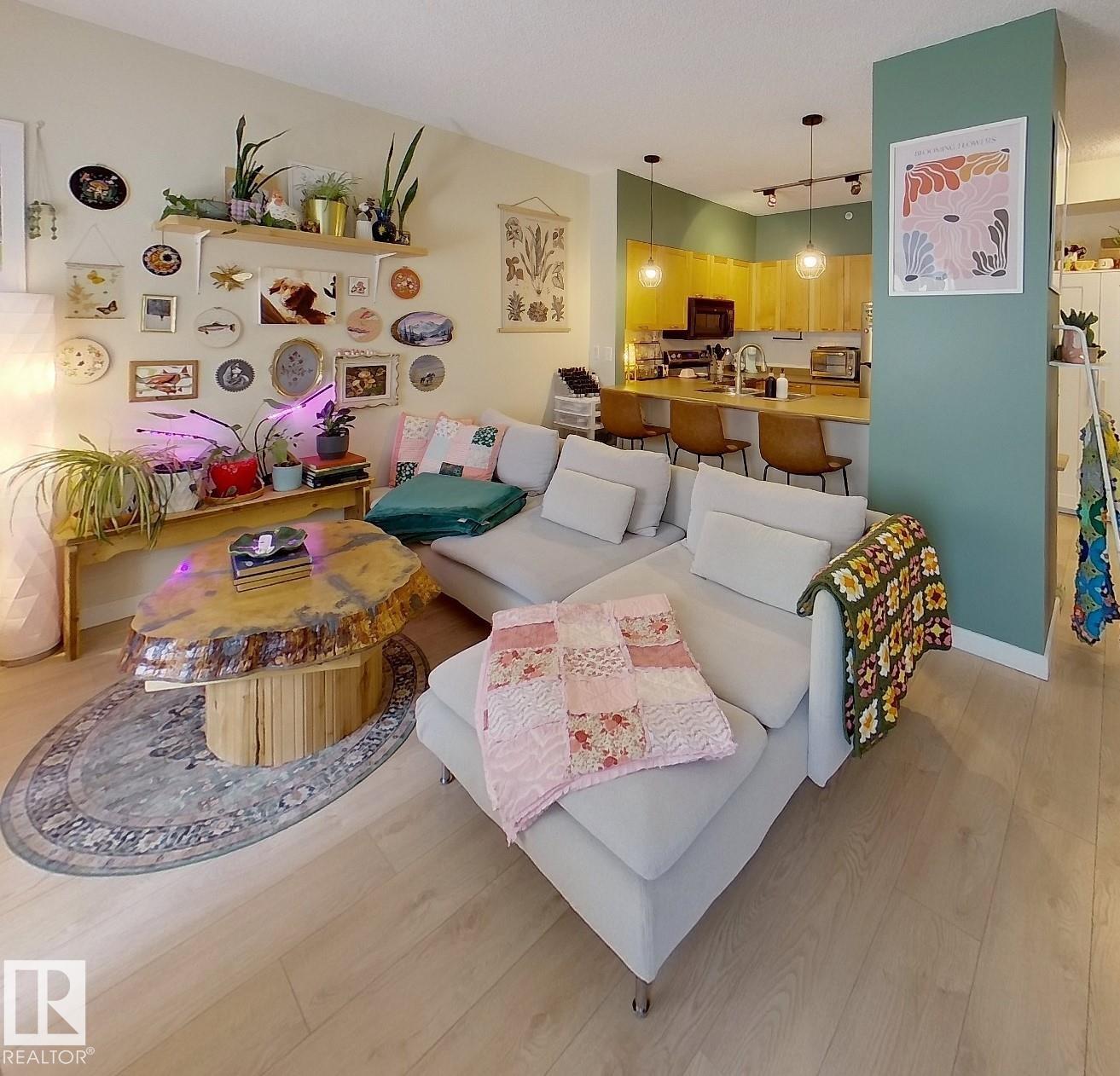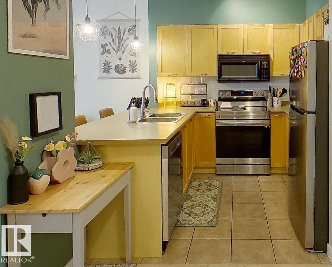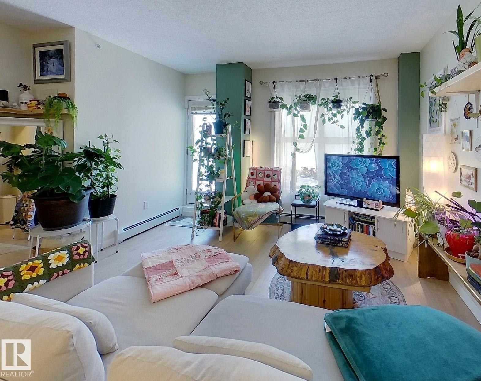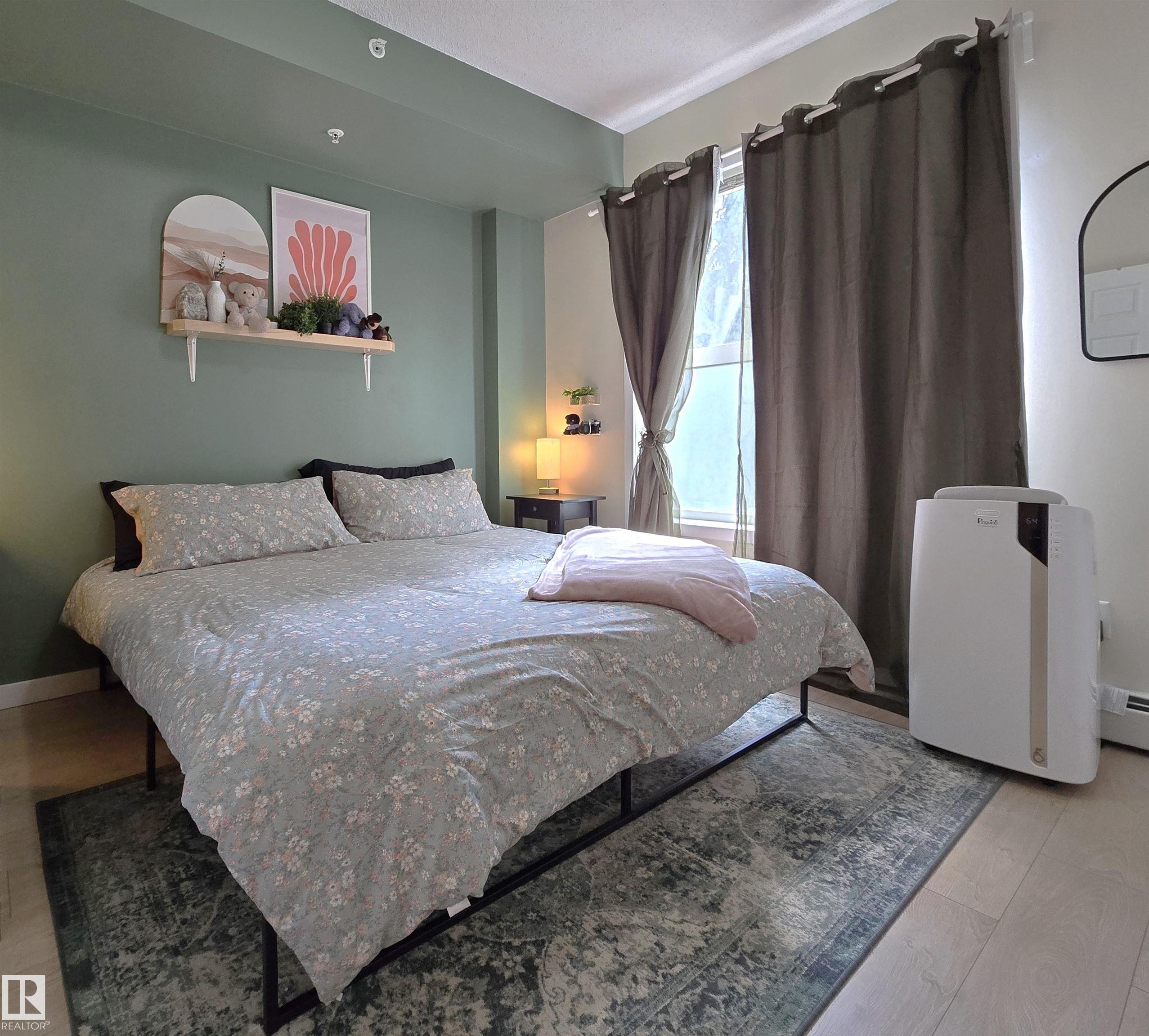 Beautiful upgraded 1 bed, 1 bath ground-floor suite with private courtyard and exterior entrance. This south facing unit features 9 ft ceilings, large vinyl windows, luxury laminate flooring, fresh paint, and new baseboards. The stylish kitchen offers stainless steel appliances, new light fixtures, and backsplash. Updated bathroom fixture and ensuite laundry for added convenience. Stay comfortable year-round with a heated underground parking stall and enjoy summer BBQs with the gas lines on your private patio. Low condo fees with ELECTRICITY INCLUDED! Small pets allowed with board approval. Just a short walk to shopping centers and the Clareview LRT Stop. A perfect blend of privacy, style and location!