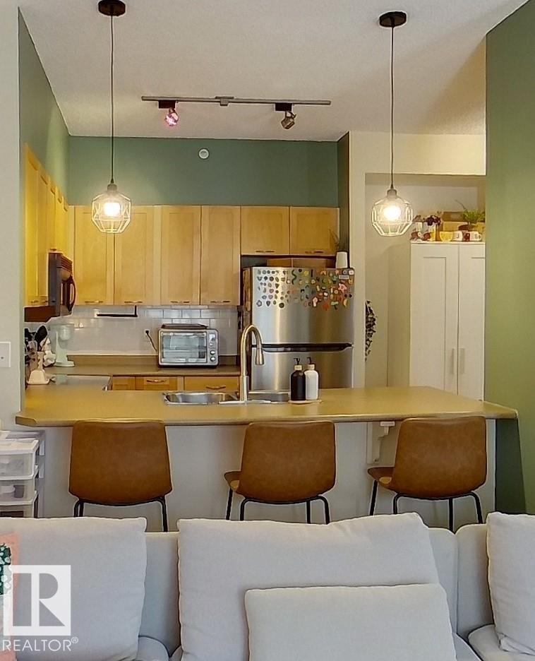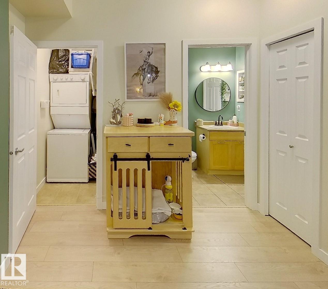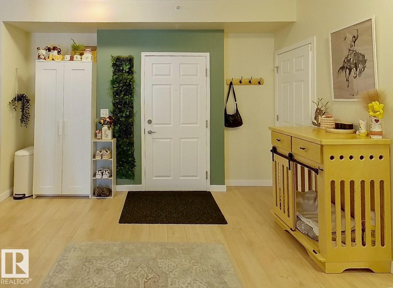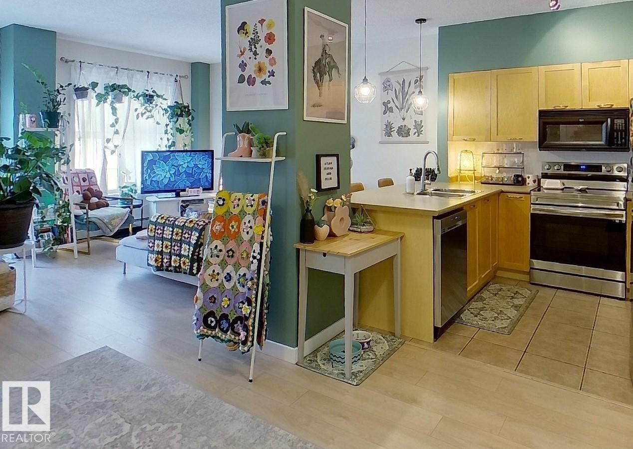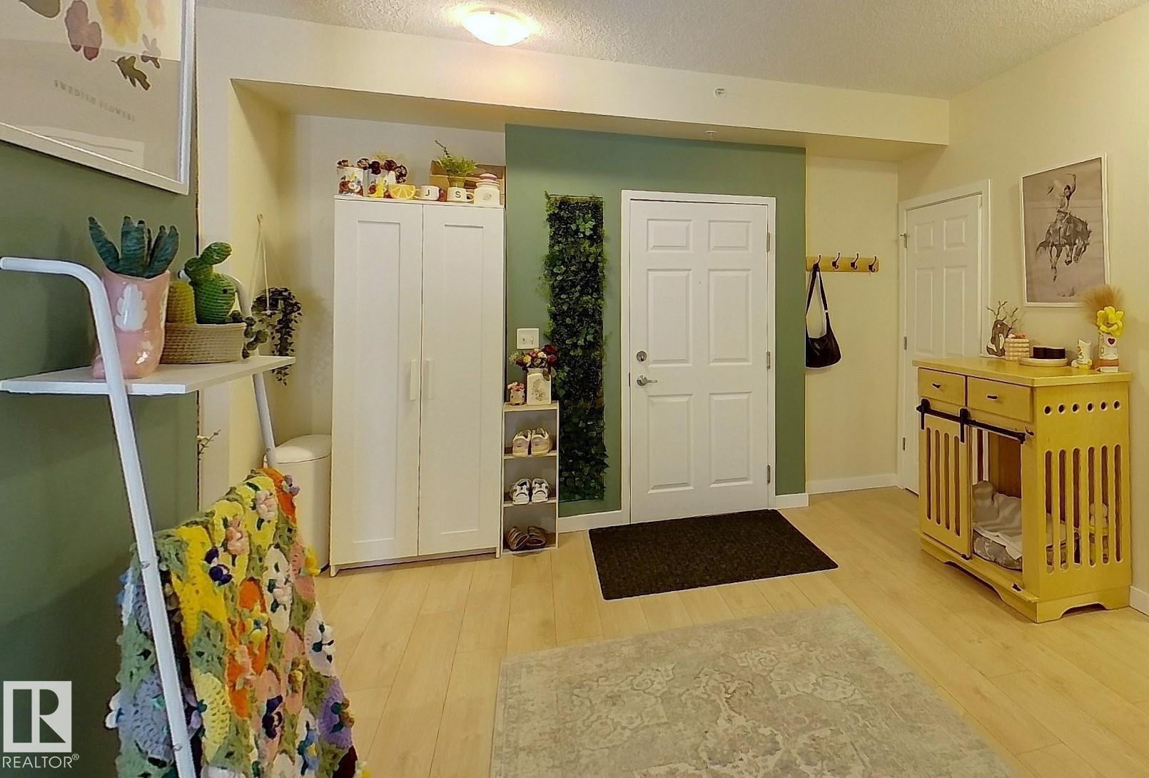 Beautiful upgraded 1 bed, 1 bath ground-floor suite with private courtyard and exterior entrance. This south facing unit features 9 ft ceilings, large vinyl windows, luxury laminate flooring, fresh paint, and new baseboards. The stylish kitchen offers stainless steel appliances, new light fixtures, and backsplash. Updated bathroom fixture and ensuite laundry for added convenience. Stay comfortable year-round with a heated underground parking stall and enjoy summer BBQs with the gas lines on your private patio. Low condo fees with ELECTRICITY INCLUDED! Small pets allowed with board approval. Just a short walk to shopping centers and the Clareview LRT Stop. A perfect blend of privacy, style and location!