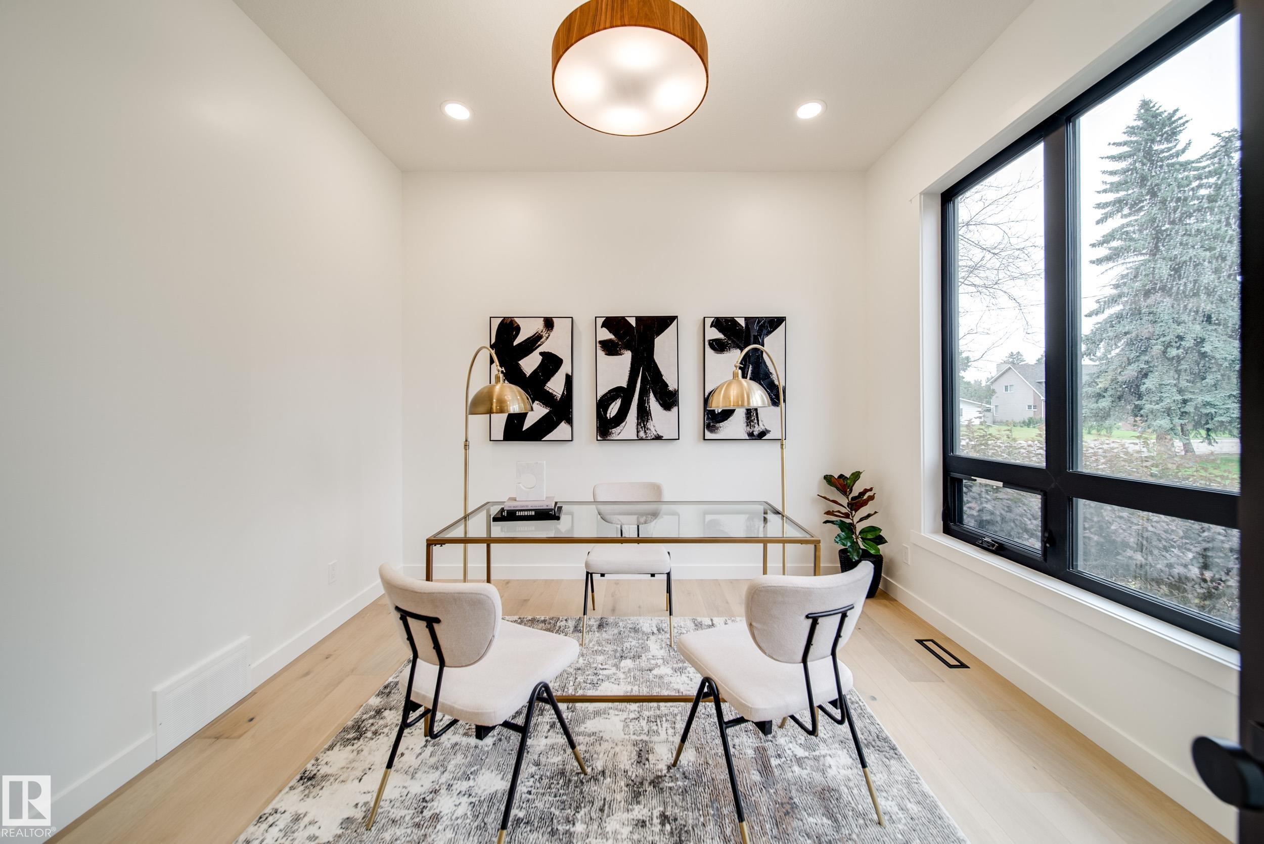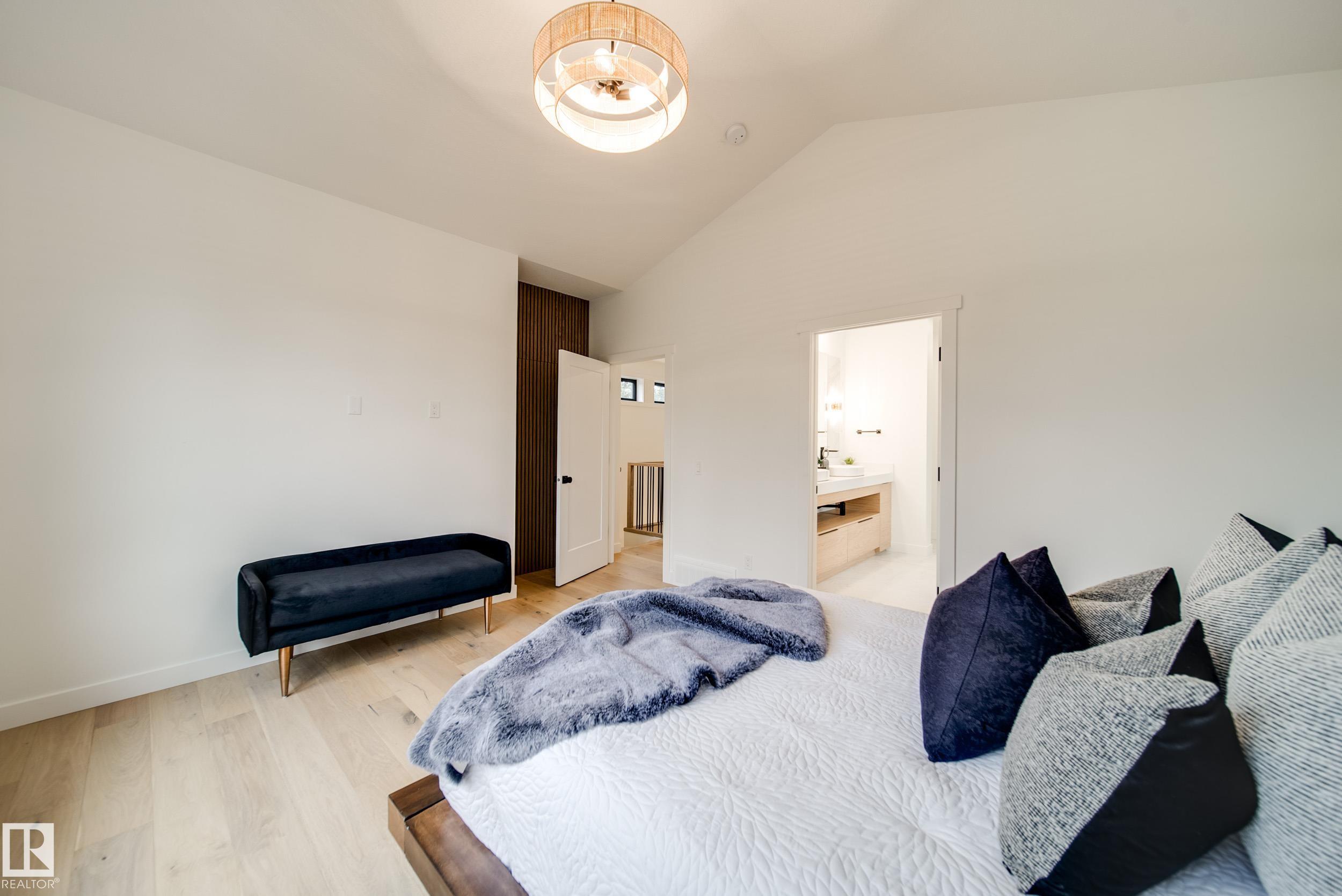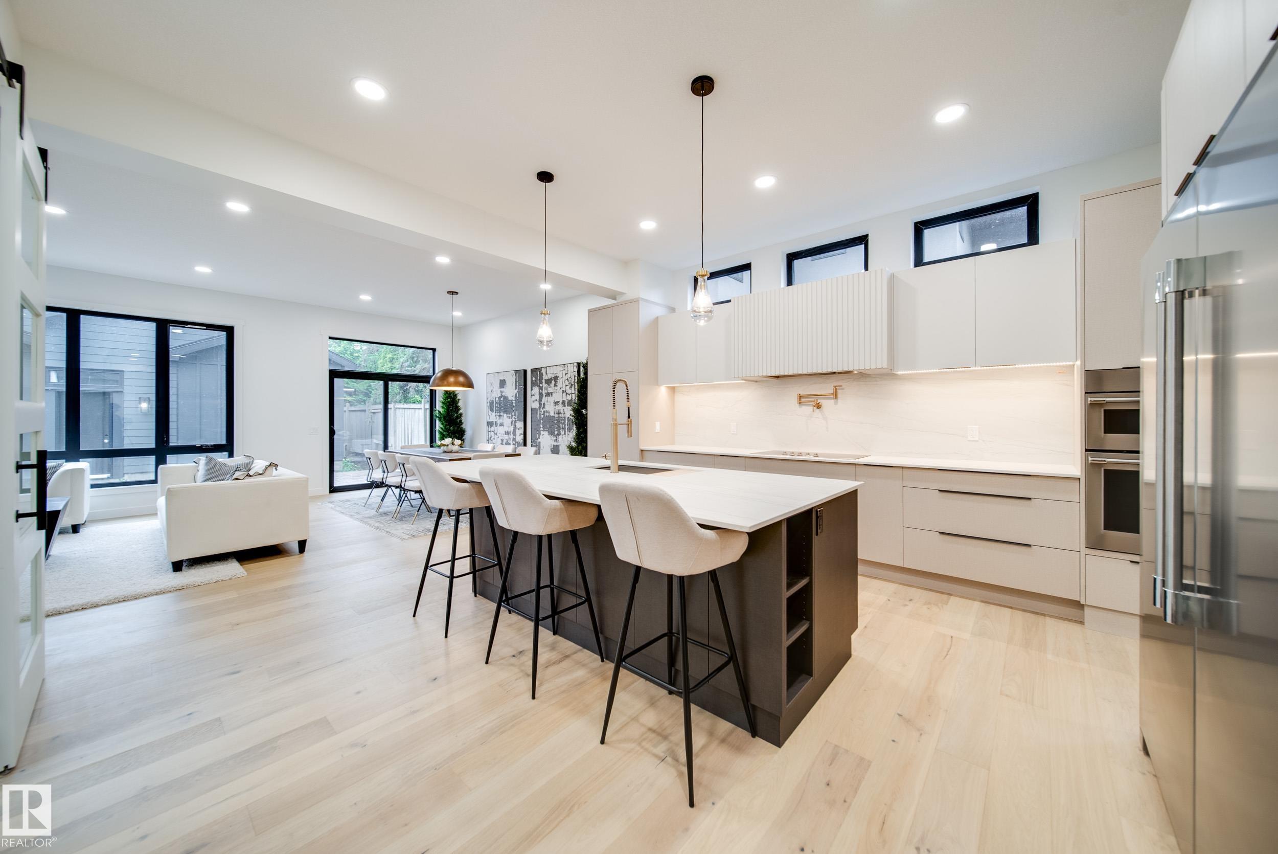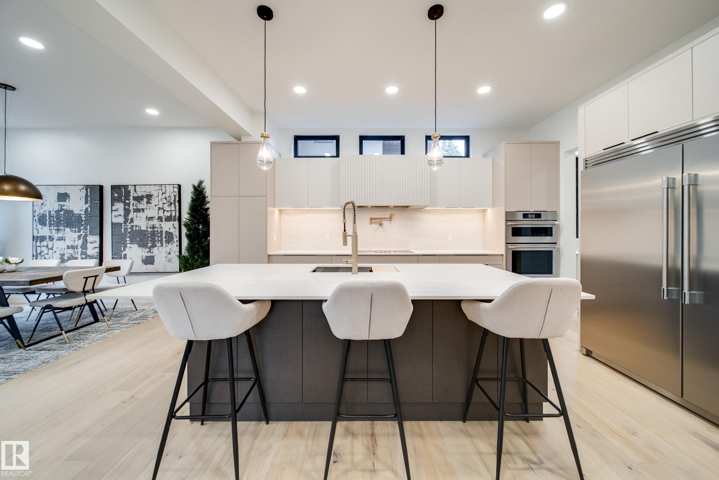 A rare opportunity built by Crimson Cove Homes, in one of Edmonton?s most prestigious areas just off Valleyview Drive! This nearly 2,500 sqft 4 bed, 3.5 bath home is just steps from iconic River Valley views. Inside, 10' main floor ceilings create a grand feel, w/dbl doors to your office & a stylish 2pc bath featuring marbled Dekton counters. The chef-inspired kitchen boasts local "Redl" cabinetry, Frigidaire Professional appliances, induction cooktop, oversized fridge/freezer, & butler?s pantry w/Blanco sink. The dreamy primary suite offers vaulted ceilings, a "speakeasy" walk-in closet, & spa-like 5pc ensuite. Upstairs: 2 more large beds, 5pc bath & Electrolux laundry w/a sink. The finished basement adds a wet bar w/bev fridge + dishwasher, huge bedroom, & WIC. Extras: heated dbl garage, Hardie board exterior, fully landscaped (fence is included), composite 2-tiered deck, pot filler, trpl-pane All Weather windows, Dekton/Silestone finishes, and a cozy fireplace. Parkview is calling!
