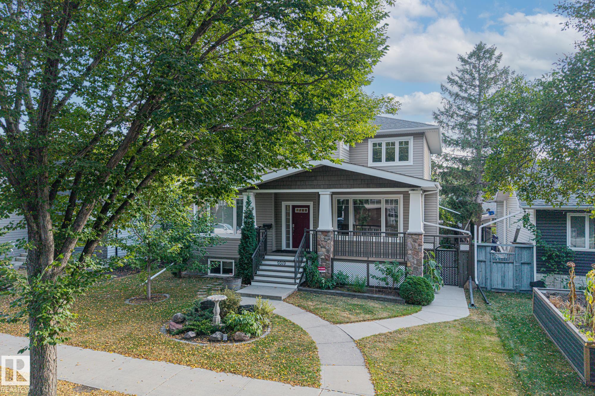 Full width INFILL in Bonnie Doon! Welcome to this spectacular Craftsman style Centennial Homes build with over 3800 sq ft of living space! The front veranda provides beautiful curb appeal with sunny west exposure. The main floor features a formal living room with gas fireplace perfect for cozy fall evenings, 9' ceiling height, a formal dining room with glass panelled pocket doors and exquisit cast iron air returns throughout highlighting the Craftsman style. The kitchen features stainless steel GE Profile appliances, undercabinet lighting, a full size pantry, full height CUSTOM MAPLE cabinets with additional windows, a built in dining table, the upgrades are endless! Up, the primary suite is HUGE with a generous walk in closet, an ensuite oasis with jetted tub, oversized tiled shower and makeup vanity. There are 2 additional bedrooms and a huge linen closet! The basement has SEPERATE ENTRANCE and a second kitchen! OVERSIZED garage, IMMACULATE location close to the river valley, this property is PERFECT!
