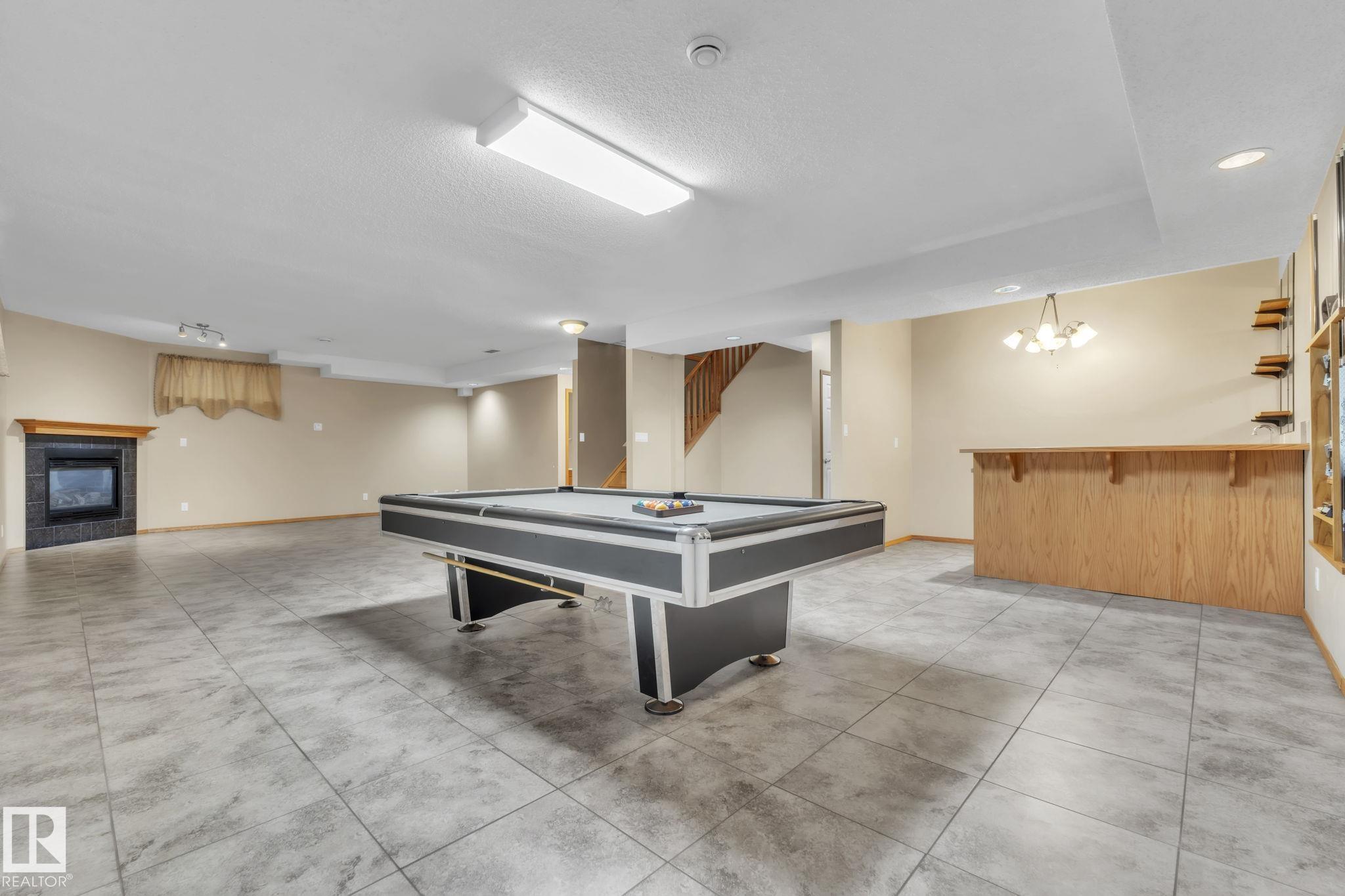 Your next ADDRESS awaits in SUMMERSIDE with quick possession! Located steps from the lake in a quiet cul-de-sac, this beautiful bungalow offers style, space, and an unbeatable location.The main floor features a bright open concept layout with vaulted ceilings, a versatile formal dining room/den/home office, and a spacious kitchen complete with SS appliances, corner pantry, and central island. The eating nook opens to a deck, concrete pad and fenced yard, perfect for relaxing or entertaining.Living room filled with natural light and centered around a gas fireplace with surrounding windows. Enjoy the convenience of main floor laundry, a primary suite with 4-piece ensuite, 2nd bedroom and full bathroom. The fully finished basement is built for entertaining with in-floor heating, a second fireplace, massive rec room, wet bar, and pool table (included!).2 additional bedrooms, bathroom, and plenty of storage complete this level.Hardwood floors on the main and a heated garage! Corner lot for added privacy!
