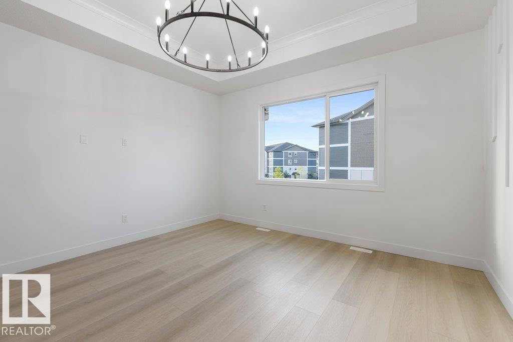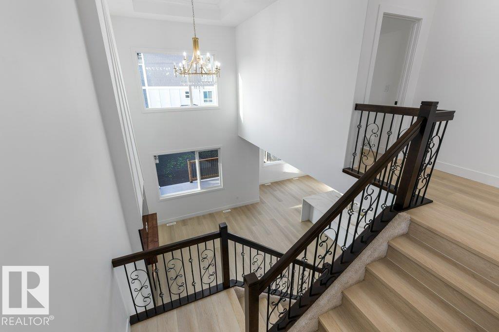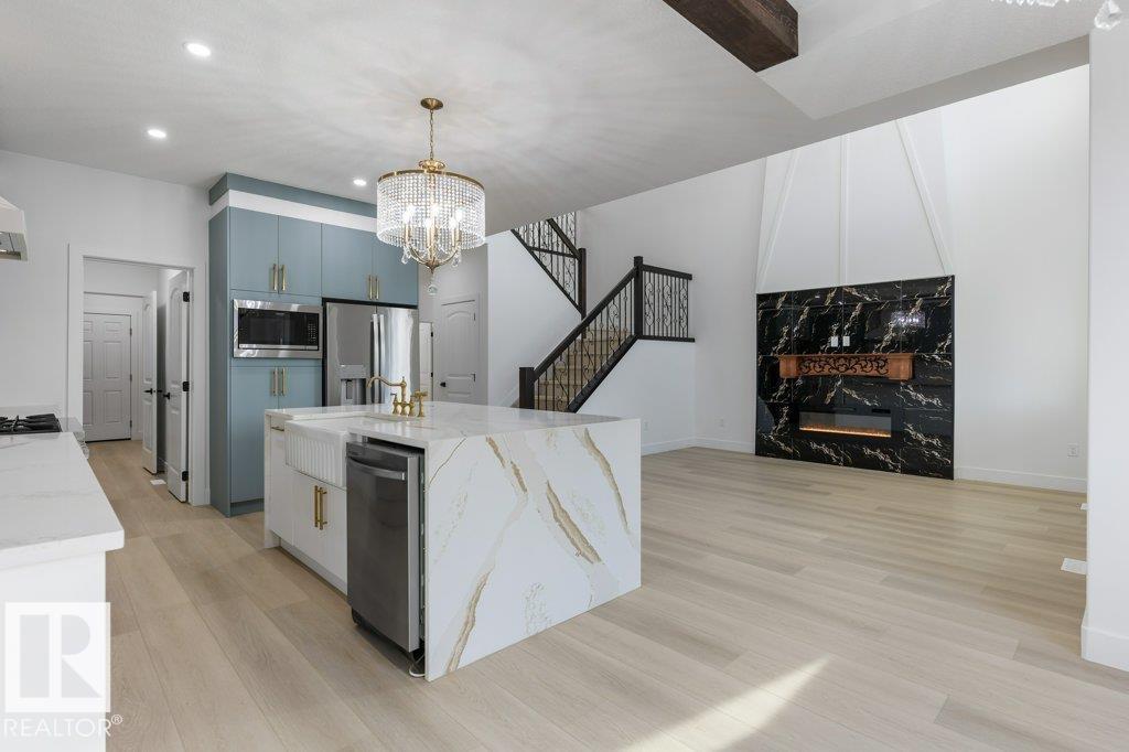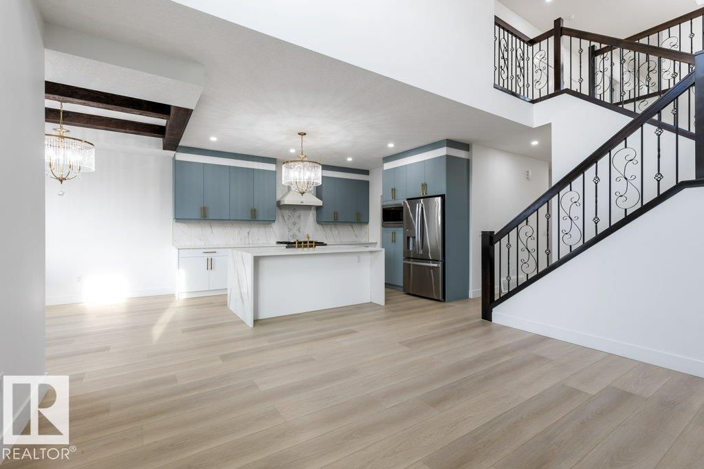 Stunning home w/2,564 sqft of living space, by Ganesha Homes, located in Chambery. This home combines modern elegance with thoughtful design. The home features exquisite vinyl plank flooring throughout, creating a seamless flow. The chef's kitchen offers ample storage, SS appliances, gas stove, built-in microwave, & eat-up waterfall island. Enjoy a butler's pantry & dining room with exposed beams. The living room w/soaring ceilings, expansive windows that flood w/natural light & an electric fireplace as a stunning focal point. A spacious bedroom & 3-pc bath complete the main level, perfect for guests or extended family. Upstairs, you'll find a bonus room w/an open-to-below design, a luxurious master suite with a spa-like 4-pc ensuite & a walk-in closet with built-ins. This level also includes 3 additional bedrooms, a 3-pc bath & a laundry area. Completing the home are a 3-Car Garage & a covered deck, perfect for outdoor enjoyment. Thoughtfully designed property, an ideal choice for modern family living!