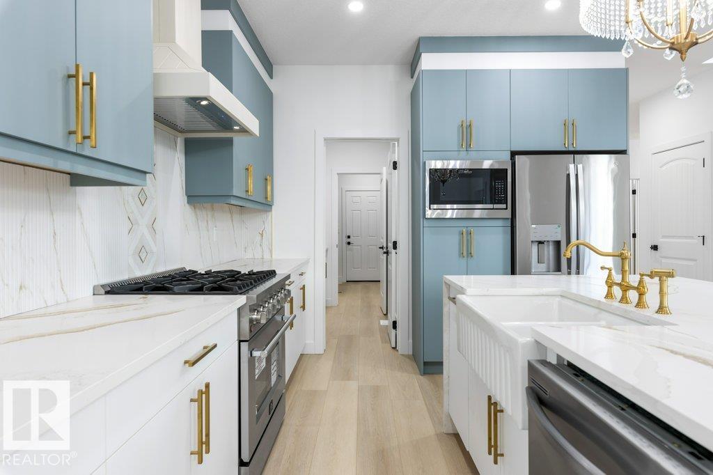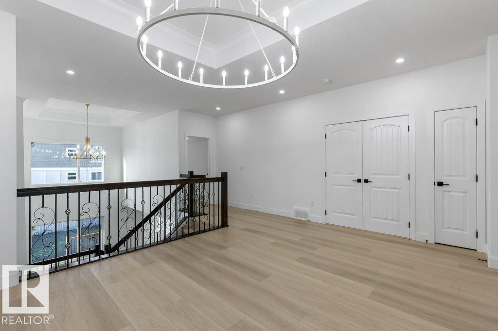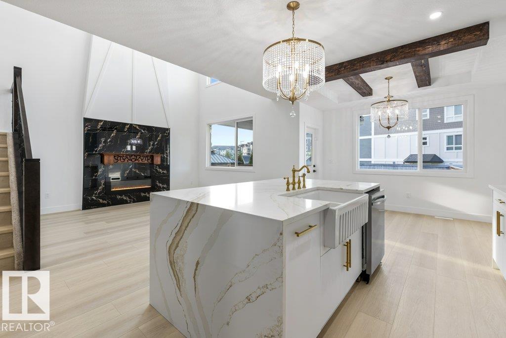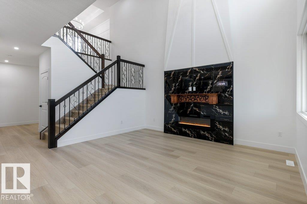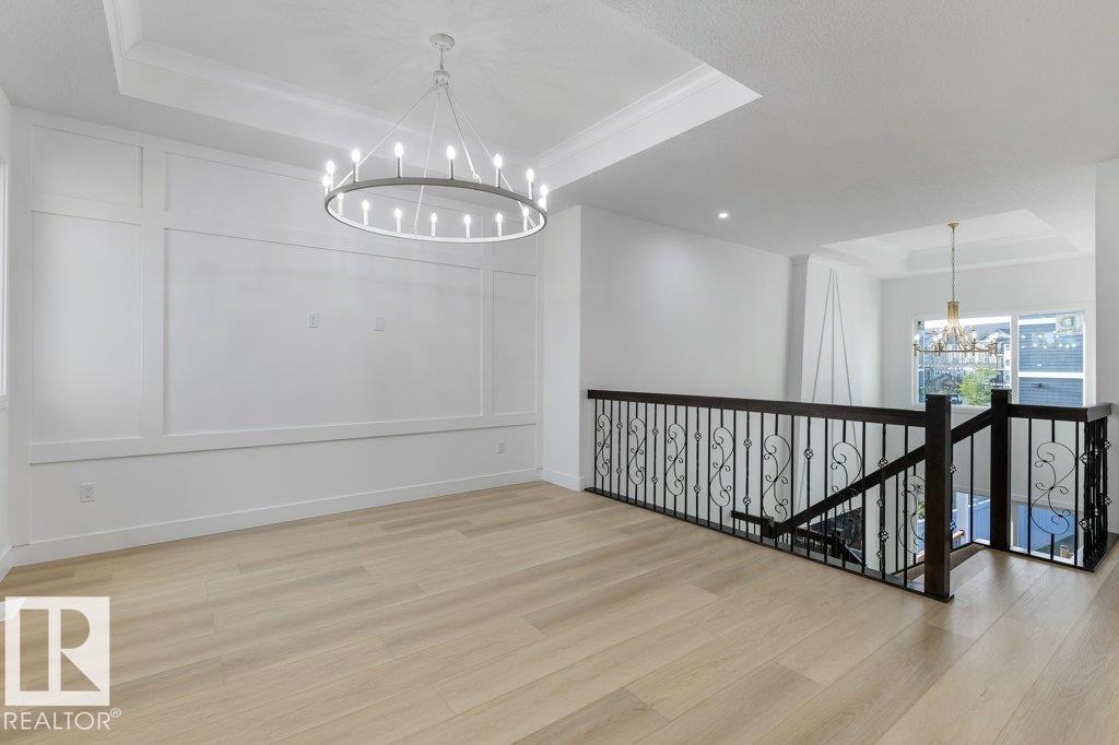 Stunning home w/2,564 sqft of living space, by Ganesha Homes, located in Chambery. This home combines modern elegance with thoughtful design. The home features exquisite vinyl plank flooring throughout, creating a seamless flow. The chef's kitchen offers ample storage, SS appliances, gas stove, built-in microwave, & eat-up waterfall island. Enjoy a butler's pantry & dining room with exposed beams. The living room w/soaring ceilings, expansive windows that flood w/natural light & an electric fireplace as a stunning focal point. A spacious bedroom & 3-pc bath complete the main level, perfect for guests or extended family. Upstairs, you'll find a bonus room w/an open-to-below design, a luxurious master suite with a spa-like 4-pc ensuite & a walk-in closet with built-ins. This level also includes 3 additional bedrooms, a 3-pc bath & a laundry area. Completing the home are a 3-Car Garage & a covered deck, perfect for outdoor enjoyment. Thoughtfully designed property, an ideal choice for modern family living!