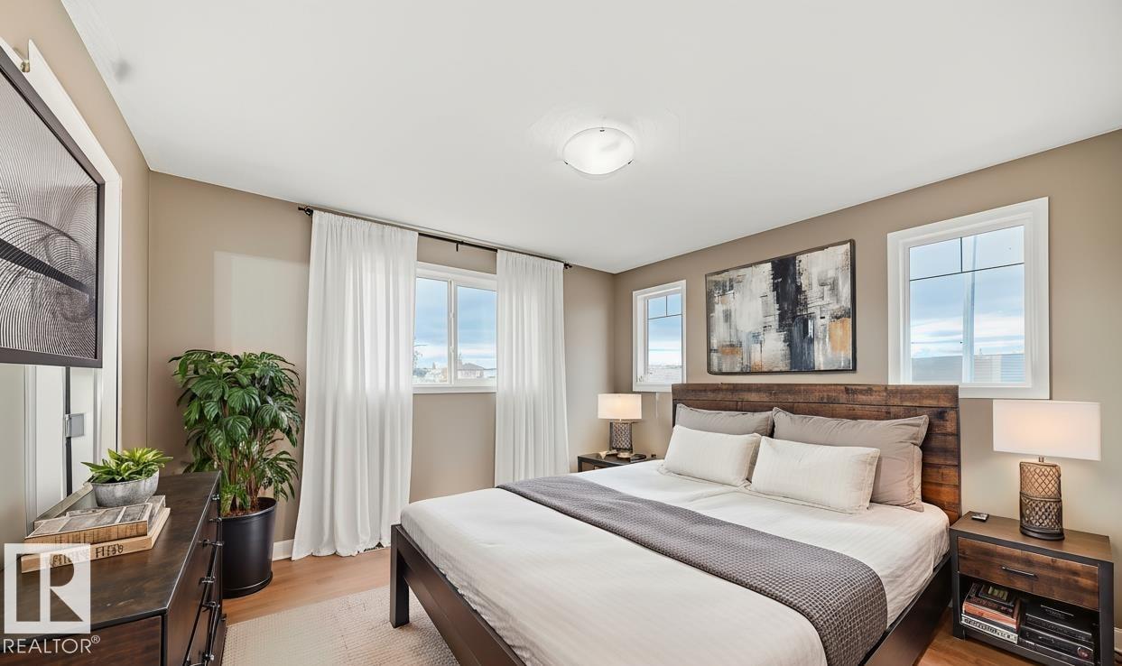 CORNER LOT | MASSIVE GARAGE | MODERN UPGRADES Welcome to this well-maintained 3 bed, 2.5 bath family home on a rare oversized corner lot in Brintnell! This bright 2-storey boasts a spacious open layout with hardwood floors, a cozy front living room, and a large eat-in kitchen with breakfast nook. Upstairs features 3 comfortable bedrooms including a primary suite with 4-piece ensuite and walk-in closet. The 28x26 detached garage is a dream for car lovers, hobbyists, or anyone needing extra space. Recent upgrades include: new shingles (2023) with 50-year warranty, AC, tankless water heater, high-efficiency furnace (2021), water softener & plumbing upgrades (2022), insulation (2024), and a new deck (2020). The unfinished basement is bathed in natural light and offers secondary suite potential. Fully landscaped and fenced, steps to the park, transit, schools, and Manning Town Centre?with quick access to Anthony Henday. (Photos that have been digitally staged or modified.)