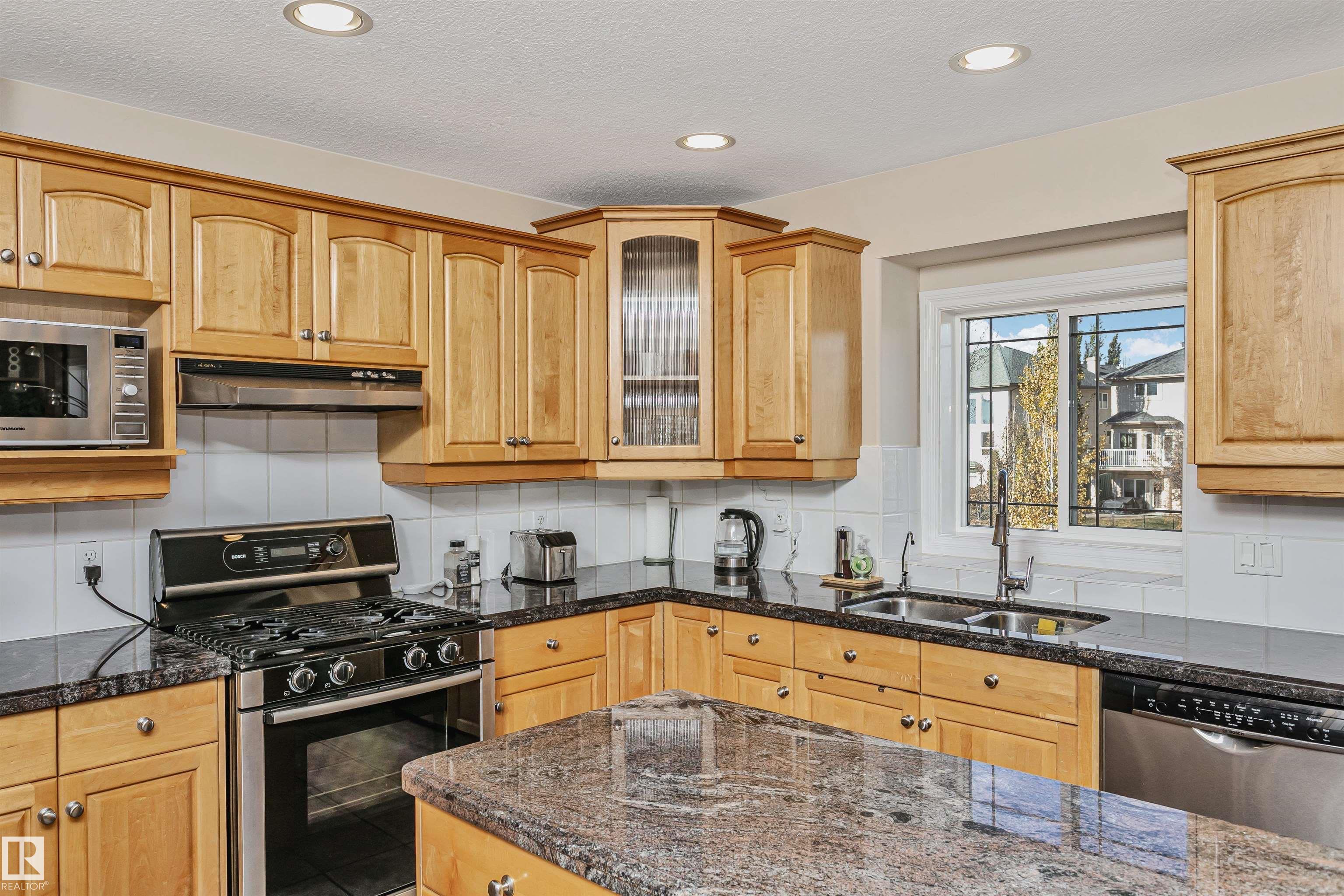 This stunning executive walkout two-storey home is perfectly located on a quiet cul-de-sac in the highly sought-after Riverbend community of Haddow, backing onto a serene dry pond. The main floor features a spacious den that can serve as a home office or guest room, and a large kitchen with granite countertops, island, and a walk-in pantry. Upstairs offers four generous bedrooms, including a large primary suite. The professionally finished walkout basement includes a family room, games area, two additional bedrooms, and a four-piece bath?ideal for guests or extended family. The oversized triple attached garage is insulated and drywalled. Situated within a top-rated school catchment, this home is close to parks, walking trails, shopping, golf, and provides easy access to Anthony Henday and Whitemud Drive. A perfect combination of luxury, location, and lifestyle in one of Edmonton?s most desirable communities. Priced to sell!