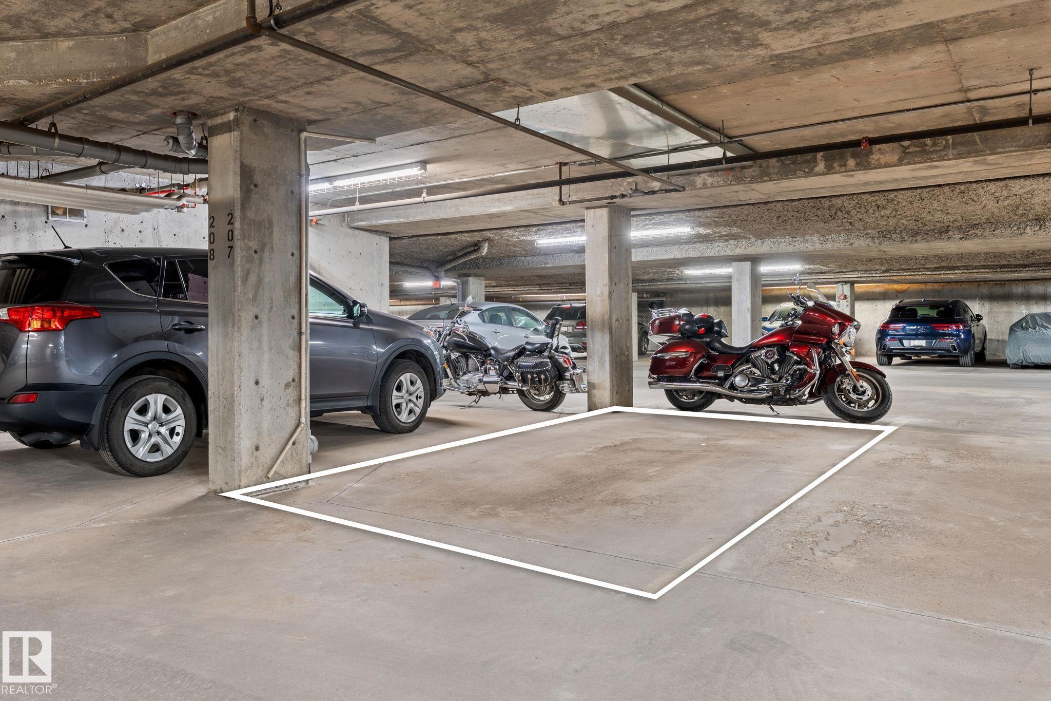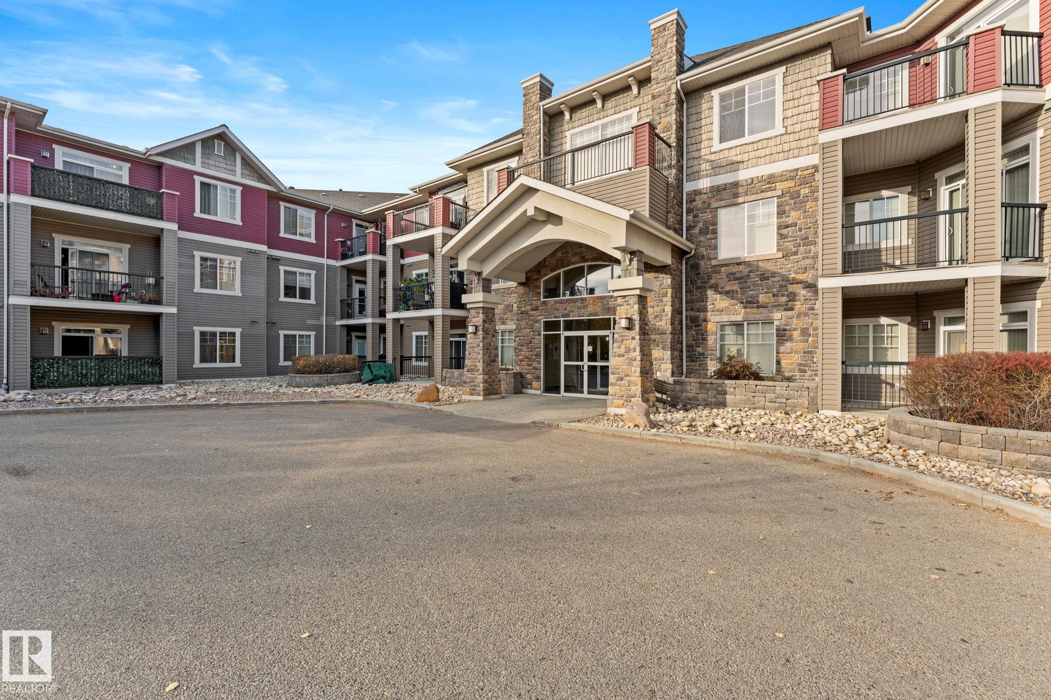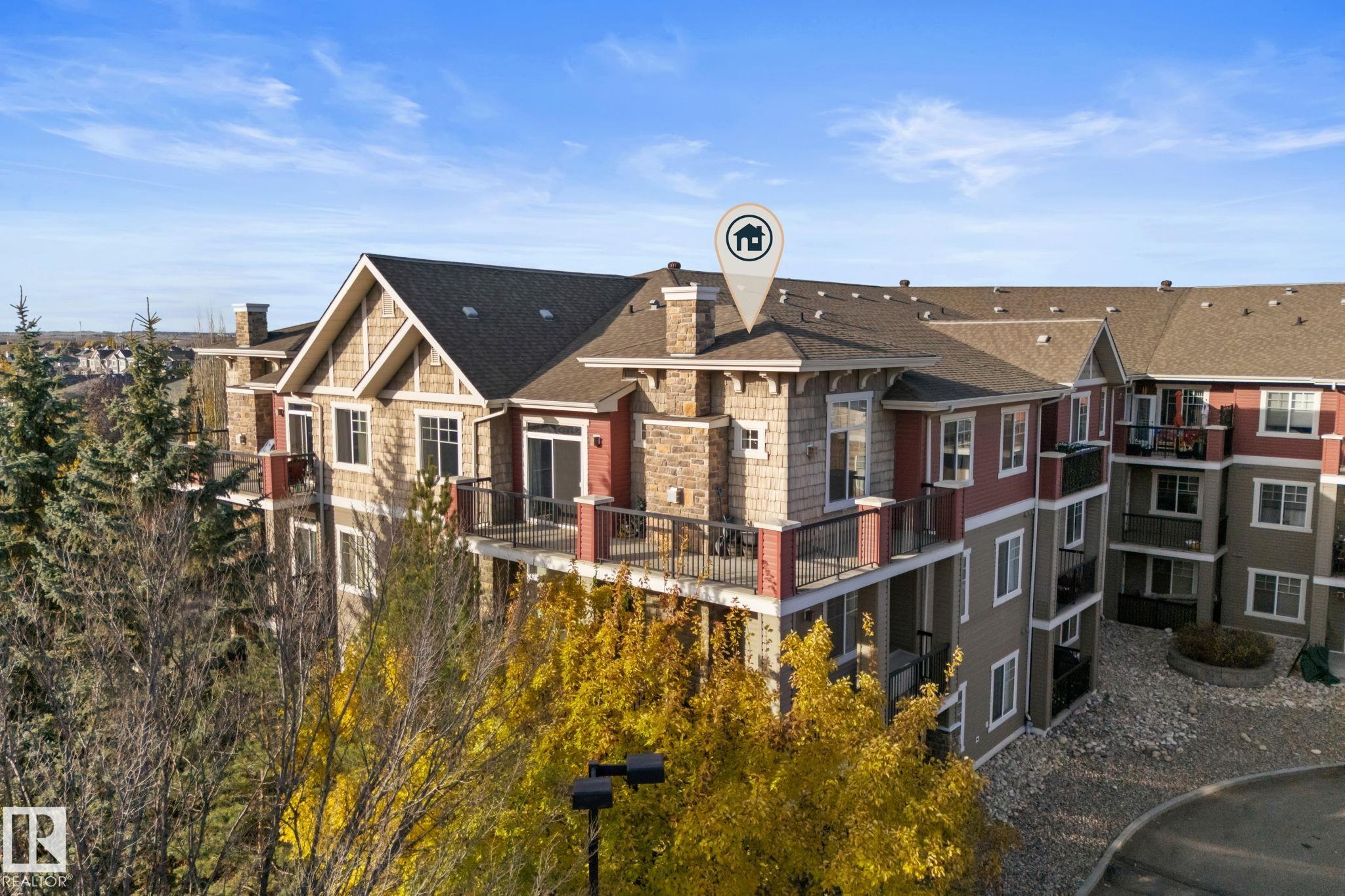 Rare offering, 3 bedroom, 2 bath top-floor corner unit w/ massive wrap-around southeast balcony. Extra large unit at over 1300 sq ft, vaulted 12-ft ceilings, a bright open-concept layout. The spacious primary suite is privately located away from the other bedrooms, easily fits a king bed, and includes dual walk-through closets and a 4-piece ensuite with double sinks and a walk-in shower. This immaculate unit offers newer flooring (no carpet), A/C, gas fireplace, gas BBQ hookup. The kitchen, dining, and living areas flow seamlessly, creating an airy, light-filled space perfect for entertaining. Large laundry room w/ extra storage, 2 titled heated underground parking stalls (one beside the elevator and one beside the stairwell), and storage locker. Condo fees incl. heat, water, and sewer. Pet-friendly building offers premium amenities: fitness room, theatre, games lounge, guest suite, and car wash bay Situated, within minutes of major shopping, dining, and quick access to the Anthony Henday.
