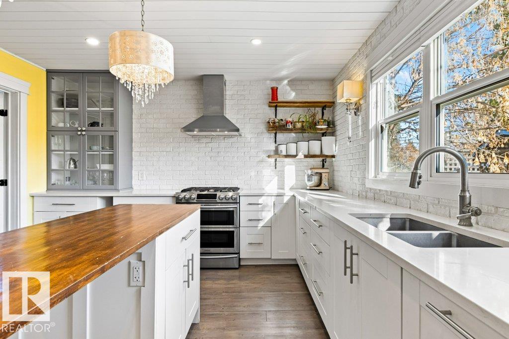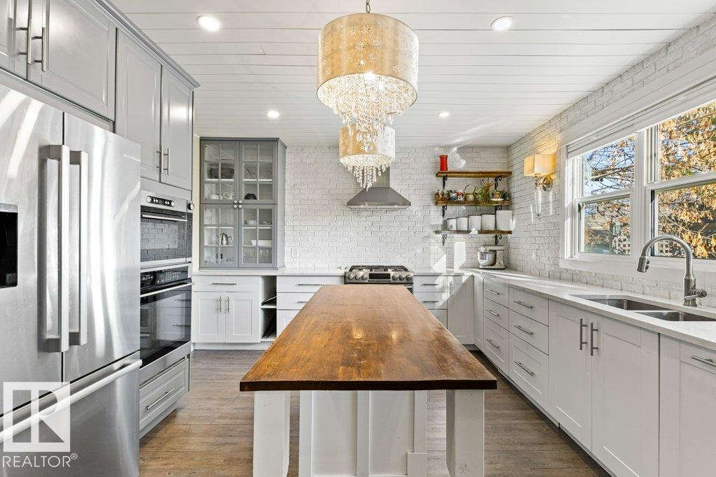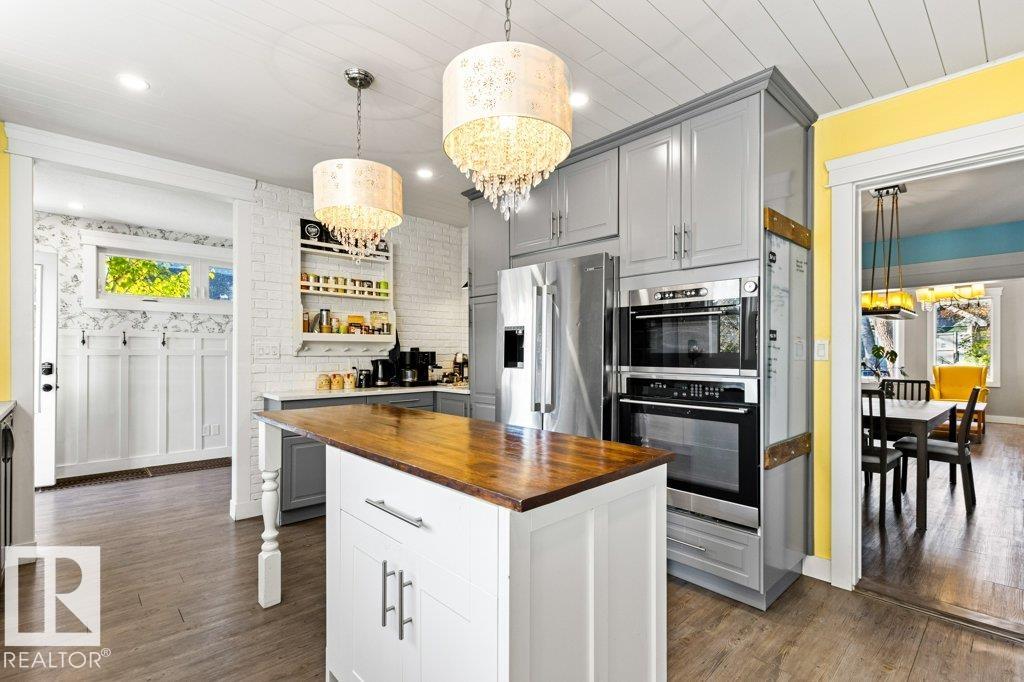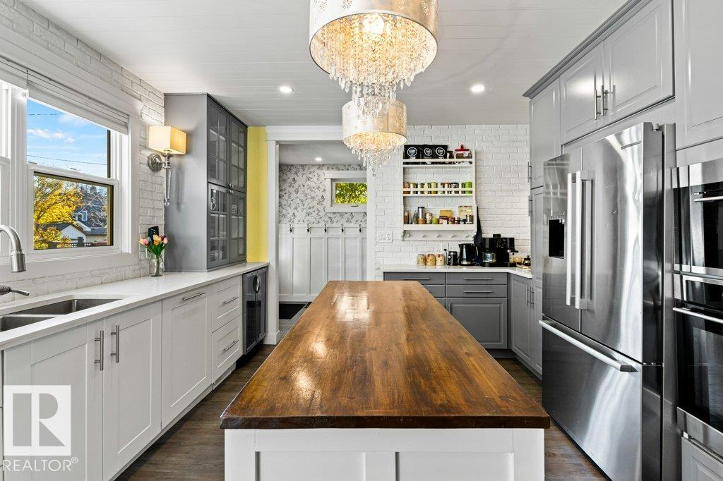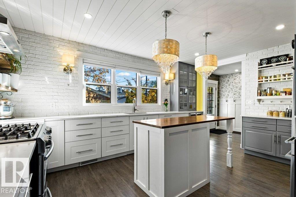 This historic, character home is located in the tree lined streets of Alberta Ave and is filled with updates! The main floor features wainscotting, 9? ceilings, vinyl plank flooring throughout, large den, bright living room, a huge dining room & a full bathroom. The HUGE, DREAM KITCHEN is fully renovated with two-toned cabinets, quartz counters, gas stove with double oven, plus a built-in oven and microwave, wine fridge and bar sink. You will also find a large mudroom at the back entrance with tons of storage. Upstairs you will find 3 bedrooms, a full bathroom with claw foot tub as well as a LAUNDRY space with storage! Up in the 3RD LEVEL there is an open space featuring sloped ceilings, a perfect BOUNUSROOM. There is a lovely fenced yard with deck/patio, outdoor kitchen & garage with storage. Other UPDATES include-PLUMBING, FURNACE, ROOF, WINDOWS & 100amp ELECTRICAL! The full, unfinished basement offers lots of storage. This lovely home is full of character & is located minutes to downtown Edmonton.