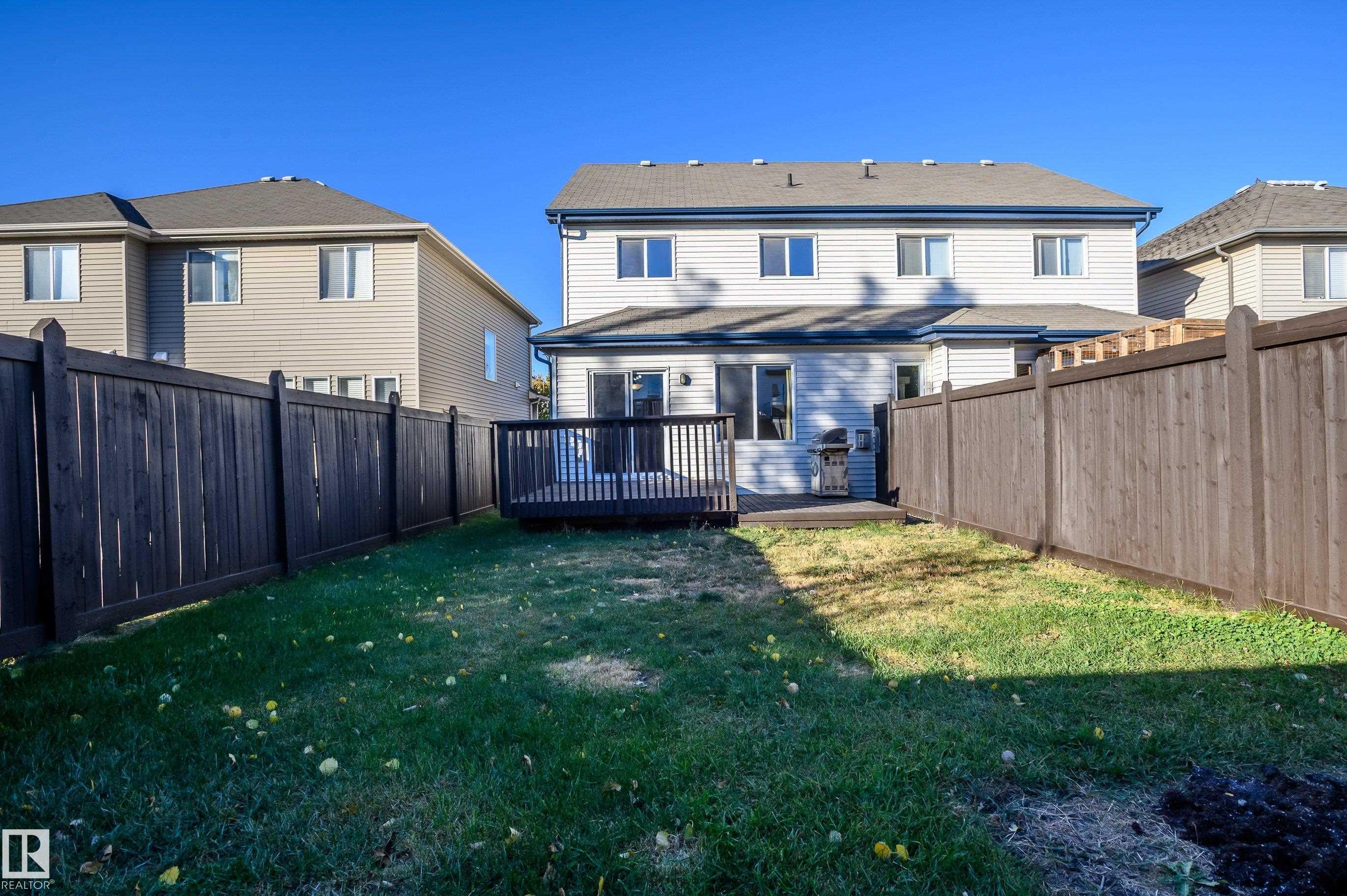 This is a stunning half-duplex in a desirable community of Walker. The main floor welcomes you with spacious living room with hardwood floor and ceramic tile in kitchen. Large window gives you plenty of light throughout the day. Gas fireplace with beautiful tile facing. Open concept kitchen with stainless steel appliances and a large island with raised bar and plenty of cabinets and walk-in pantry to store your kitchen needs. The dinning area leads to the over-sized deck with natural gas hook-up and fully fenced landscaped backyard. The upper floor has 3-bedroom and master bed has 4 piece ensuite with large closet. One of the top convenient location of south side of Edmonton close to South Edmonton Common, Walmart, SuperStore, 41 Ave to link to Edmonton International Airport and downtown. Quick access to Anthony Henday to go to any part of the city.