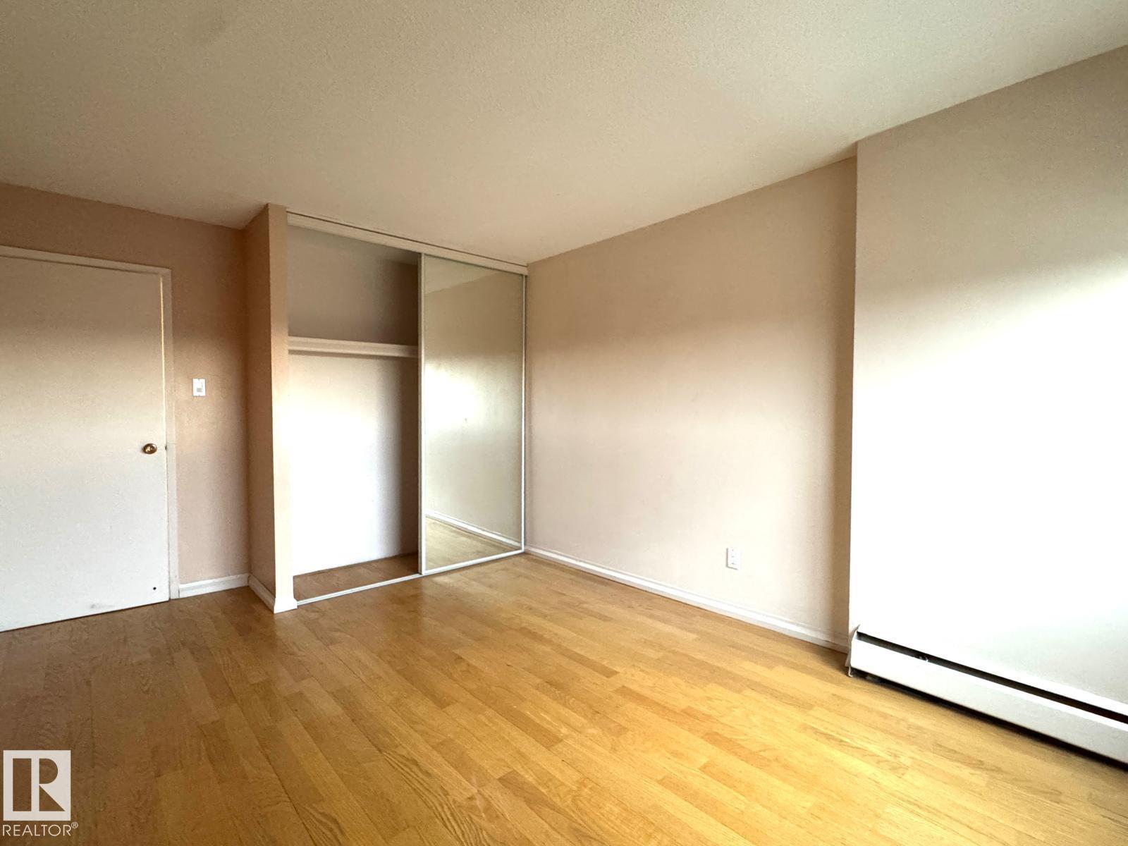 Experience Downtown Living at Its Finest! Enjoy Beautiful Panoramic Views of Downtown Edmonton from this lovely condo in the heart of the city! Perfectly located just steps away from downtown, Jasper Ave, Rogers Place, restaurants, shopping, parks, golf, and the breathtaking River Valley trail system. The open-concept layout features a large & bright living room with laminate flooring throughout. Patio doors leading you to a private balcony with gorgeous downtown views. The kitchen offers cabinet and pantry, and a cozy dining area. A full 4-piece bath adds convenience and comfort. This high rise concrete building offers heated underground parking, coin-op laundry room plus each floor has garbage chute. Condo fees include heat, water, and power, making living here simple and affordable. Whether you?re a first-time homebuyer or an investor, this is the perfect opportunity to enjoy convenience, and vibrant urban living?just move in and enjoy!
