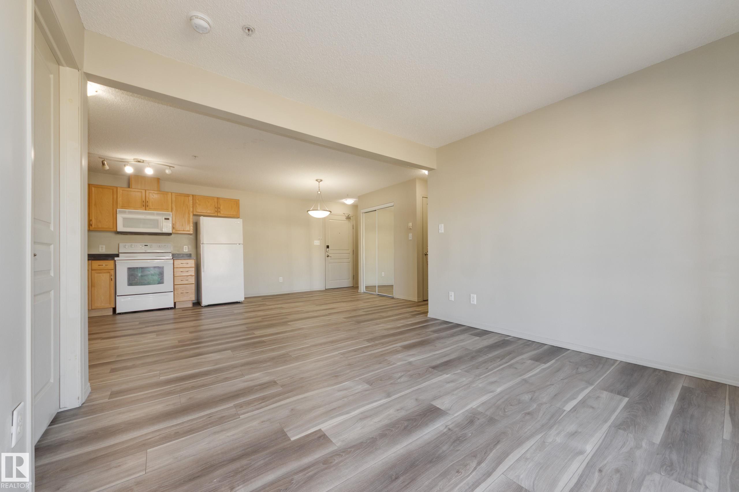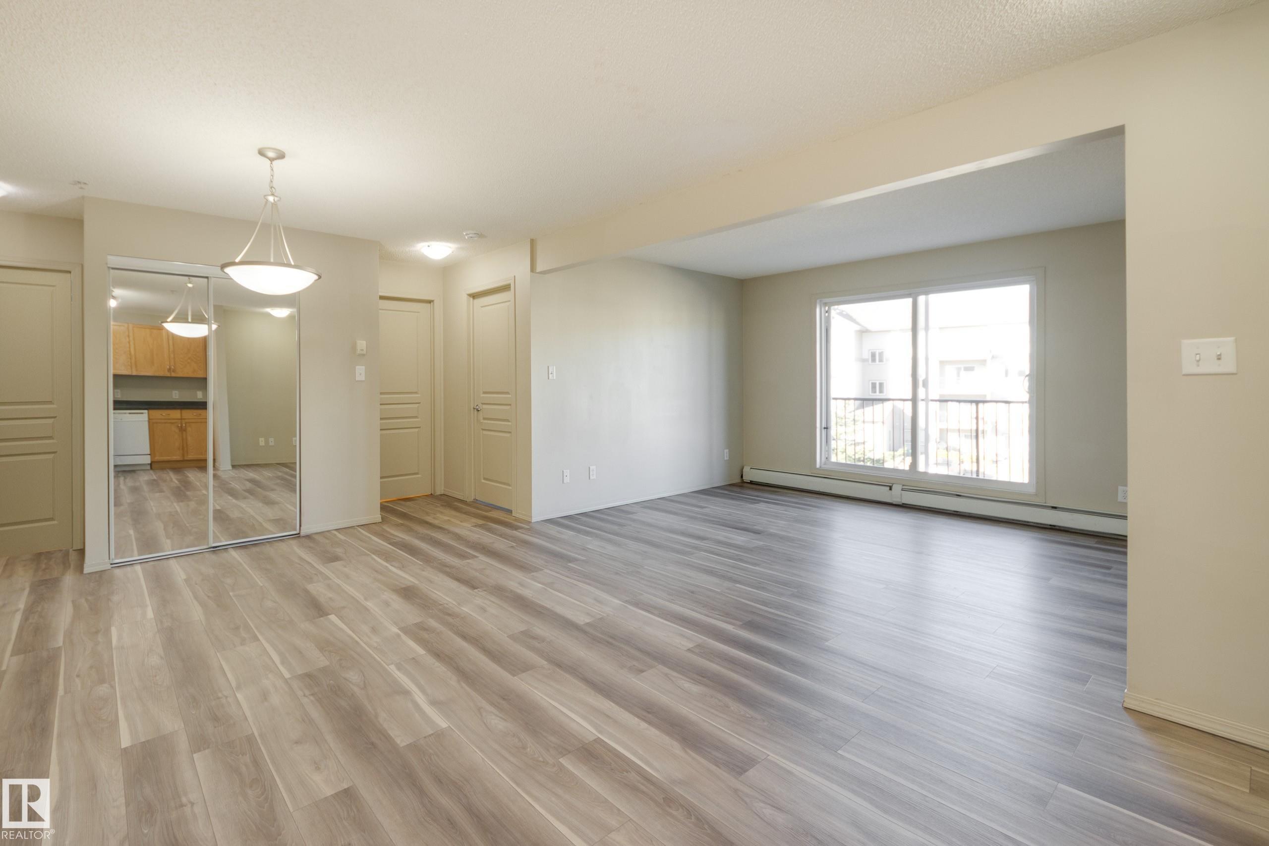 Move in ready ? this 2-bedroom, 2-bathroom condo has BRAND NEW VINYL PLANK FLOORING & PAINT! The open concept layout makes for easy living and entertaining. Ideal for a family or 2 adults sharing, the bedrooms are located on opposite sides of the unit and each features a full, private bath. The primary suite has a large walk-through closet - storage is not a problem here! Never share laundry machines again with your own in-suite washer and dryer. Also included is a balcony, titled underground parking and on-site fitness centre. Condo fees include heat & water in this well-managed building. Live walking distance to amazing amenities, including grocery stores, Clareview LRT station, Clareview Recreation Centre and the Northeast Health Centre!