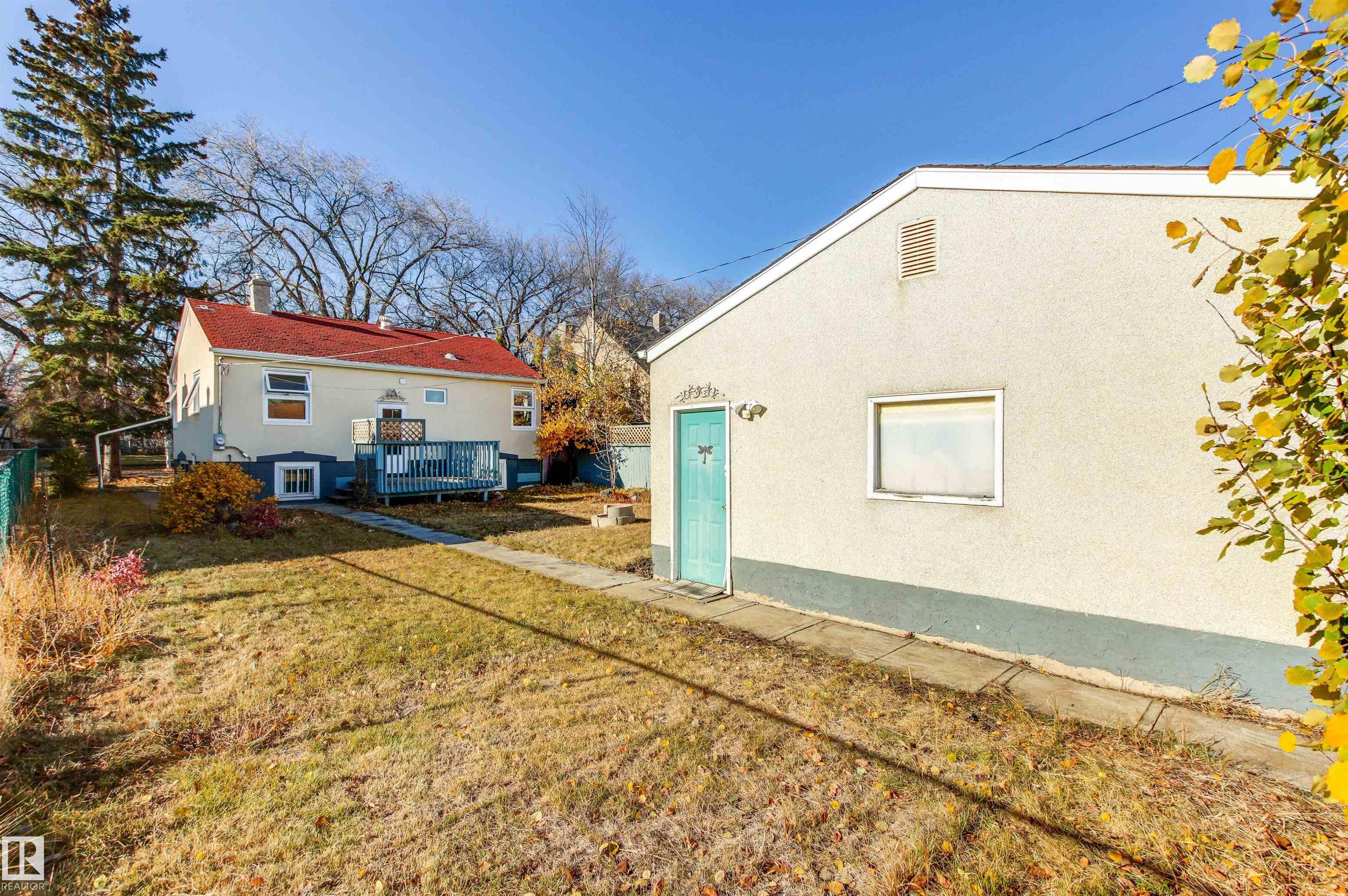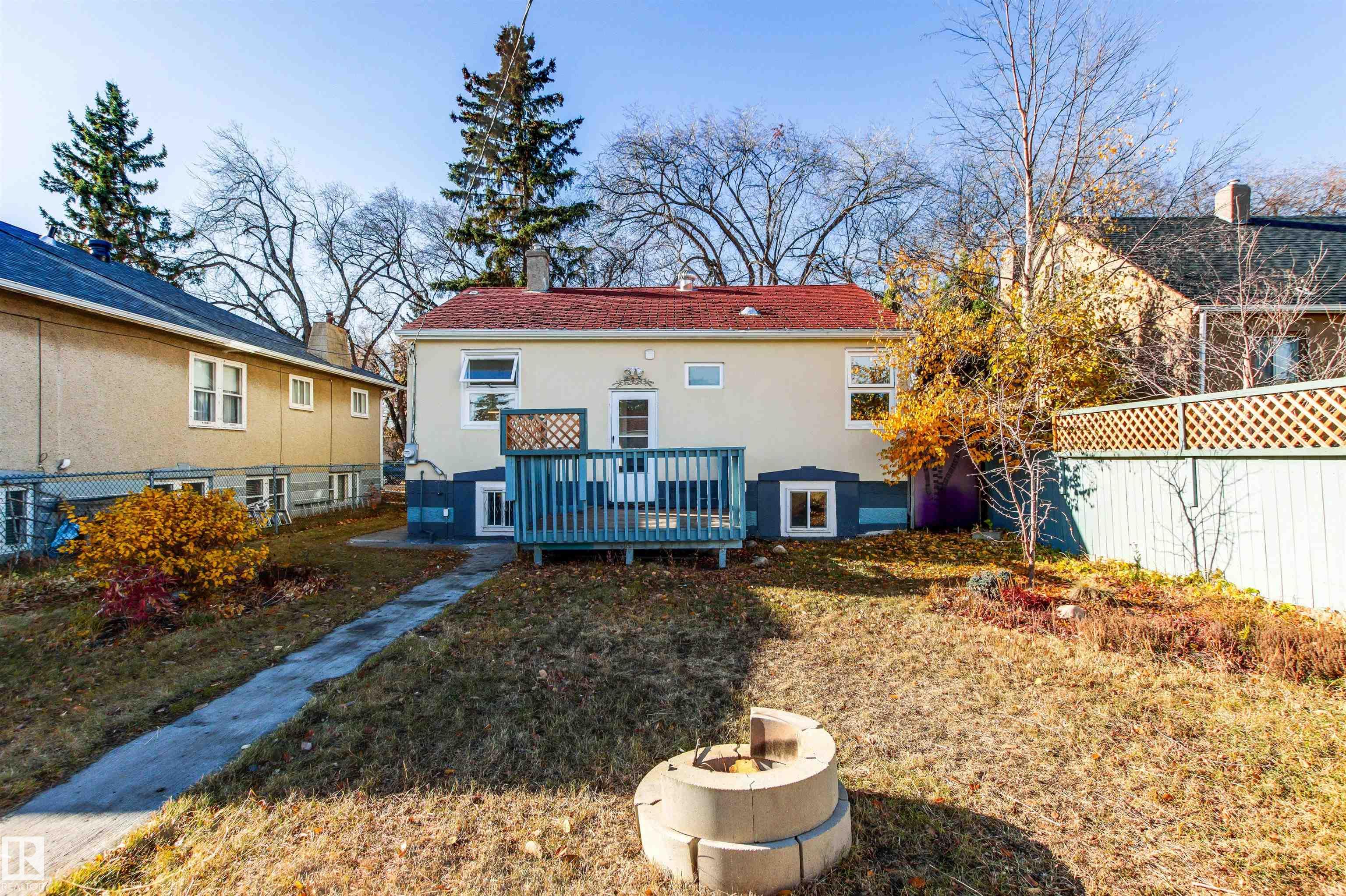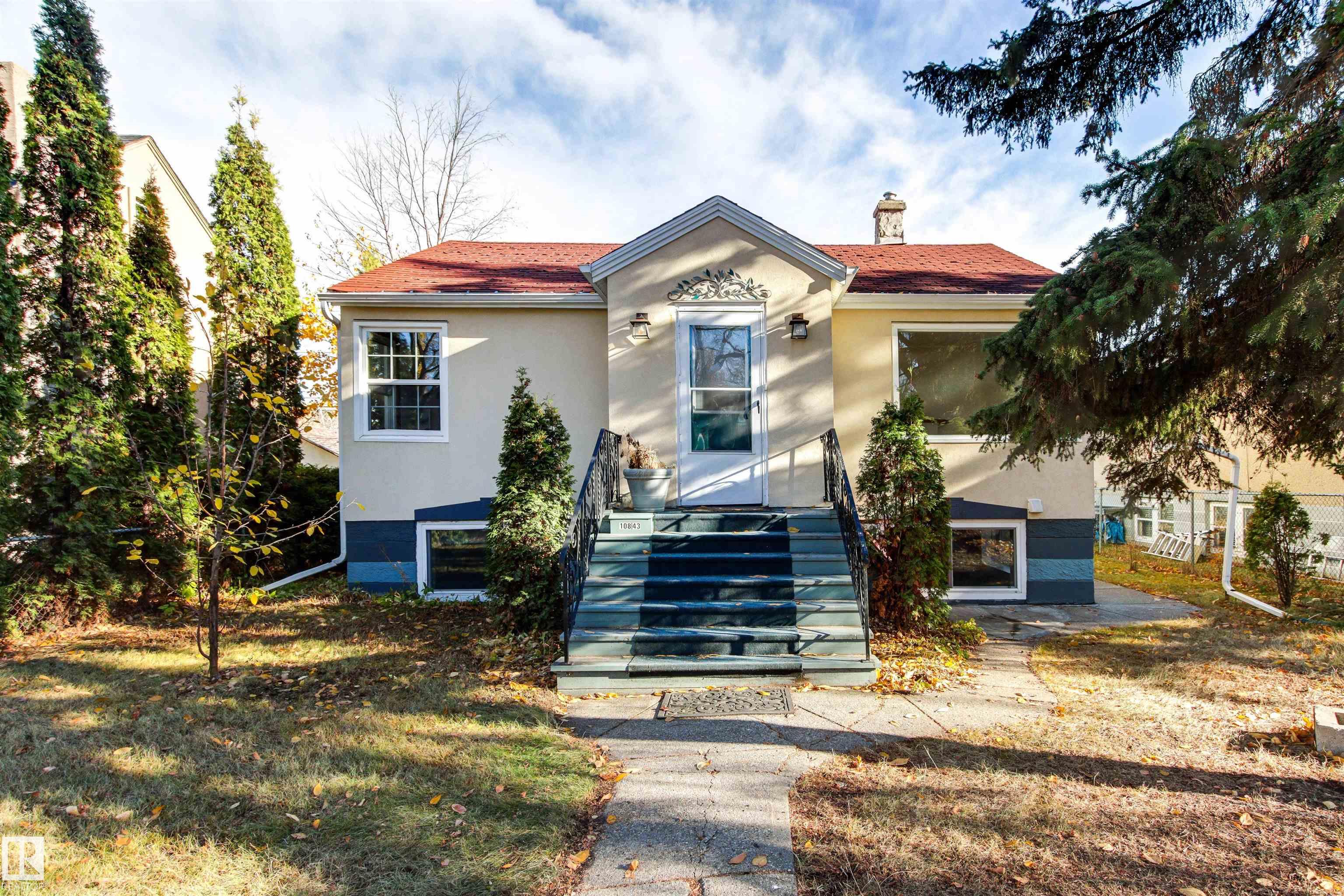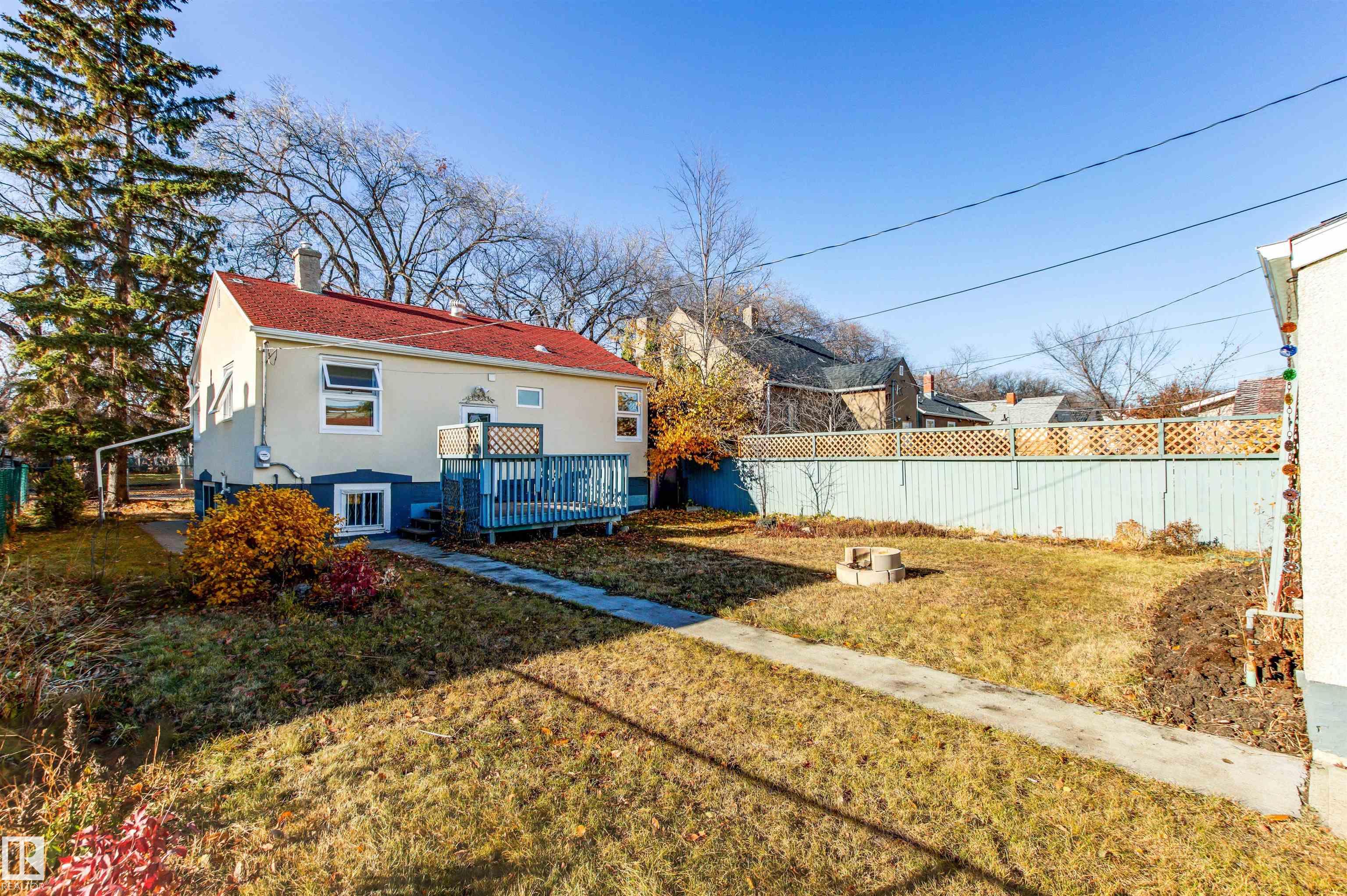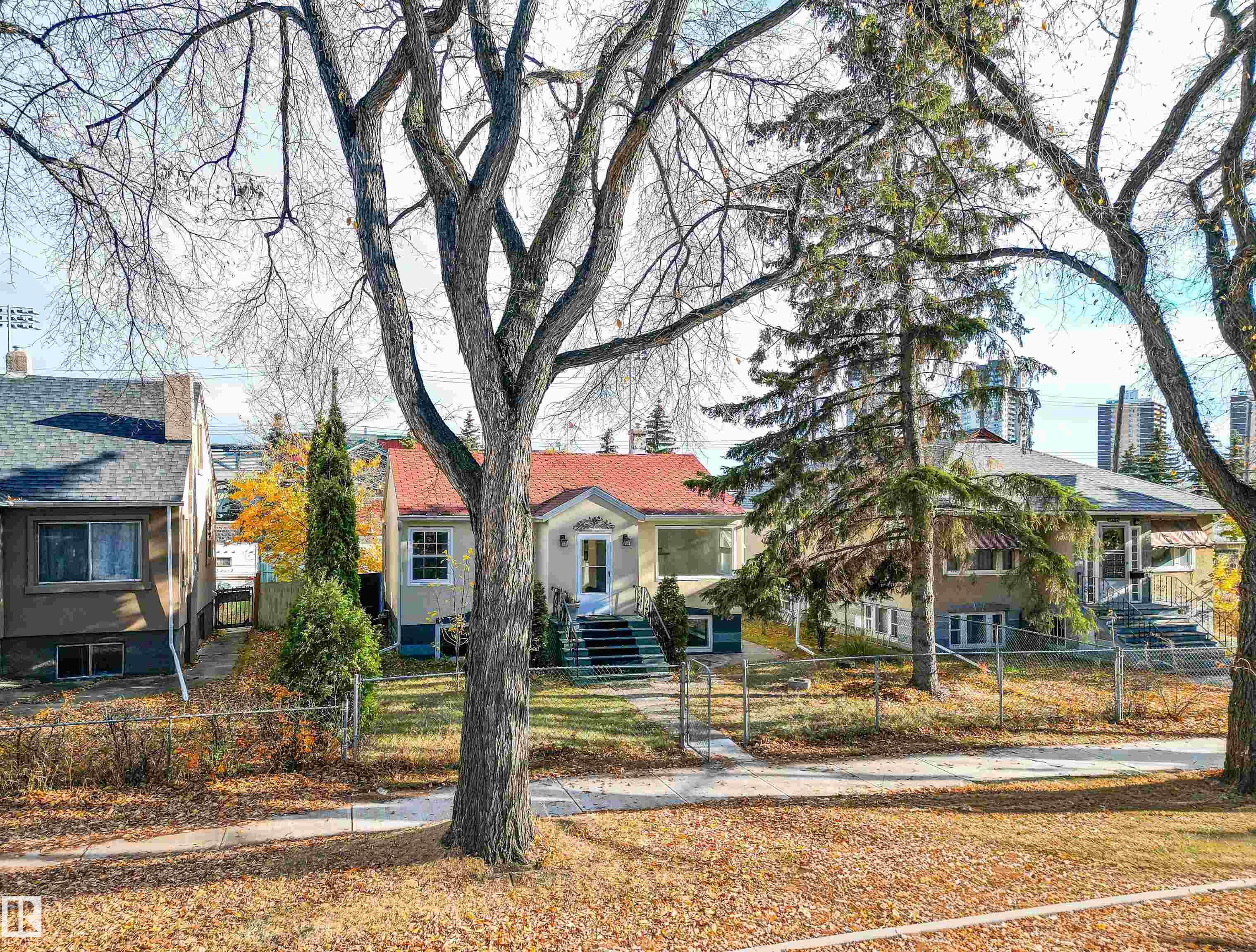 Charming, midcentury bungalow in Mccauley neighbourhood, walking distance to the LRT, rec centre, cafes, parks and quaint businesses. Bright and inviting, renovated with plenty of natural light. This property offers 3 bedrooms, a den, 2 full bathrooms, 2 kitchens and lots of storage space. Main level has living room with south and west windows and coved ceiling. Kitchen on main floor comes with quartz countertops as well as upgraded fridge and stove. Bright basement was renovated few years ago, has large windows, a second kitchen with living area, bathroom with walk-in shower, bedroom, den and utility/laundry room. Windows were upgraded as well. Three large windows fully swing open for easy furniture move. HWT replaced within the last year. There is also newer furnace installed in 2017, and newer stucco. Lot is 45' by 120' (5,490 sq.ft.) This property is fenced with a big lawn, established perennials and fruit tree, and a double detached garage. 2 photos were virtually furnished. Make a move!