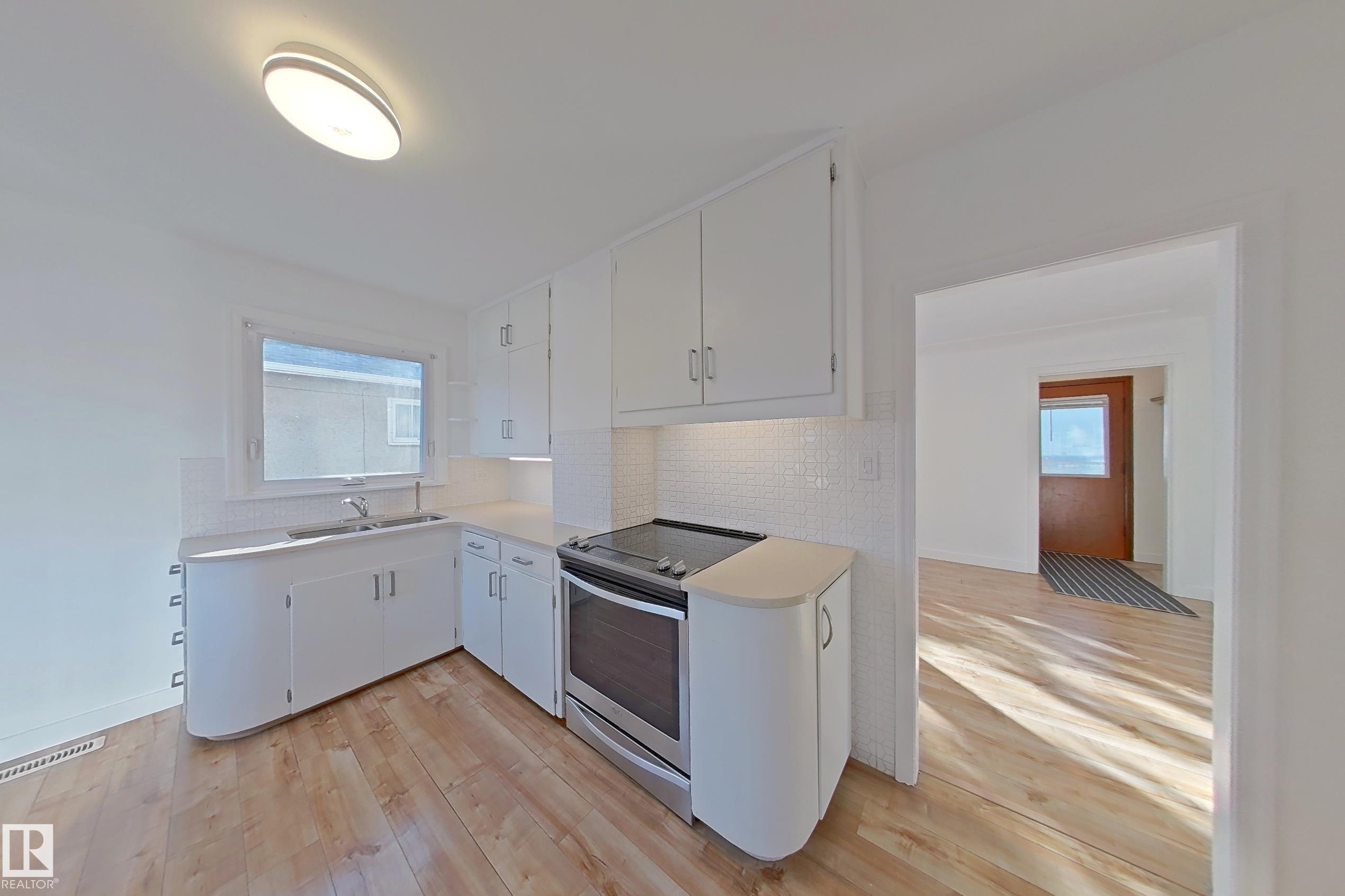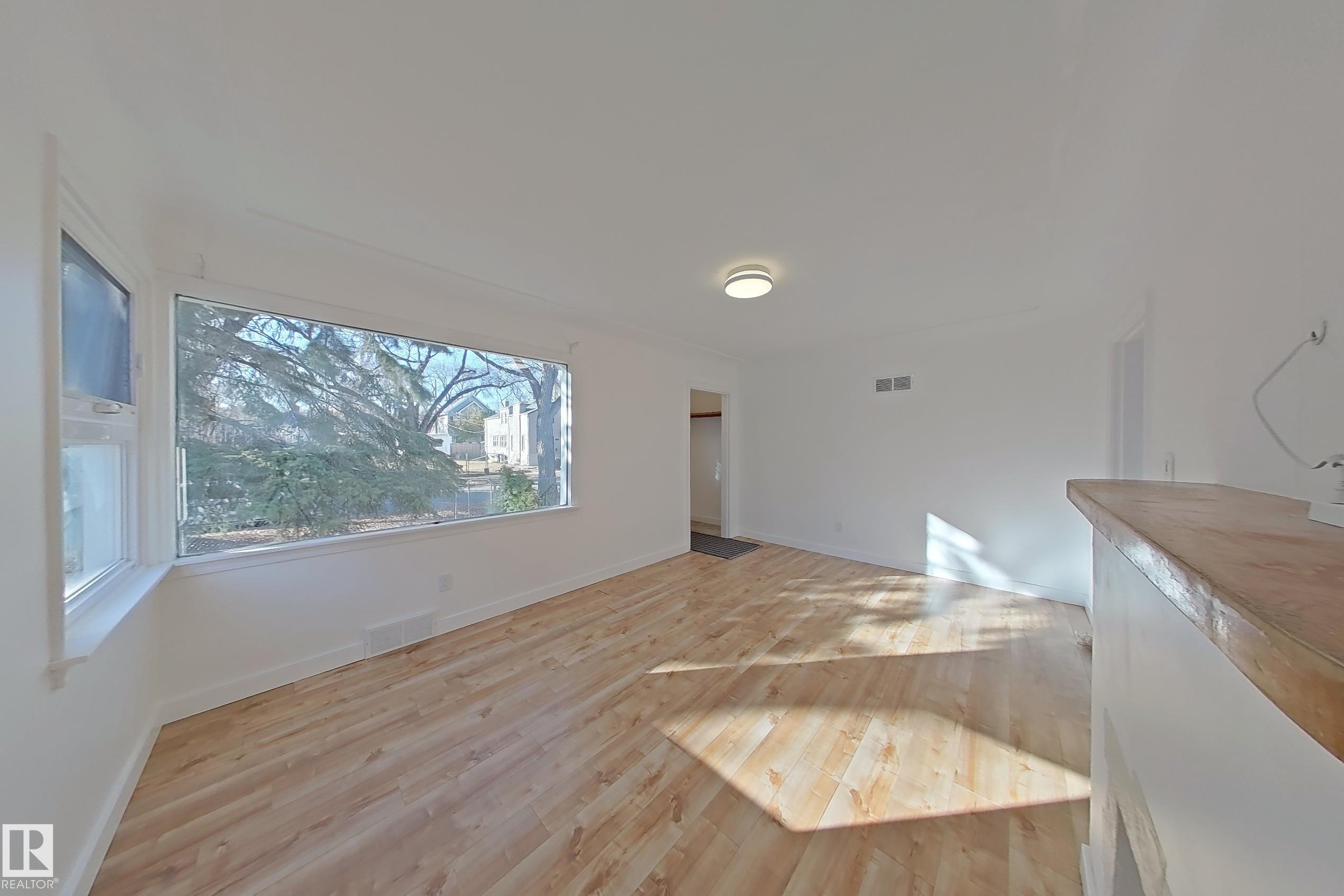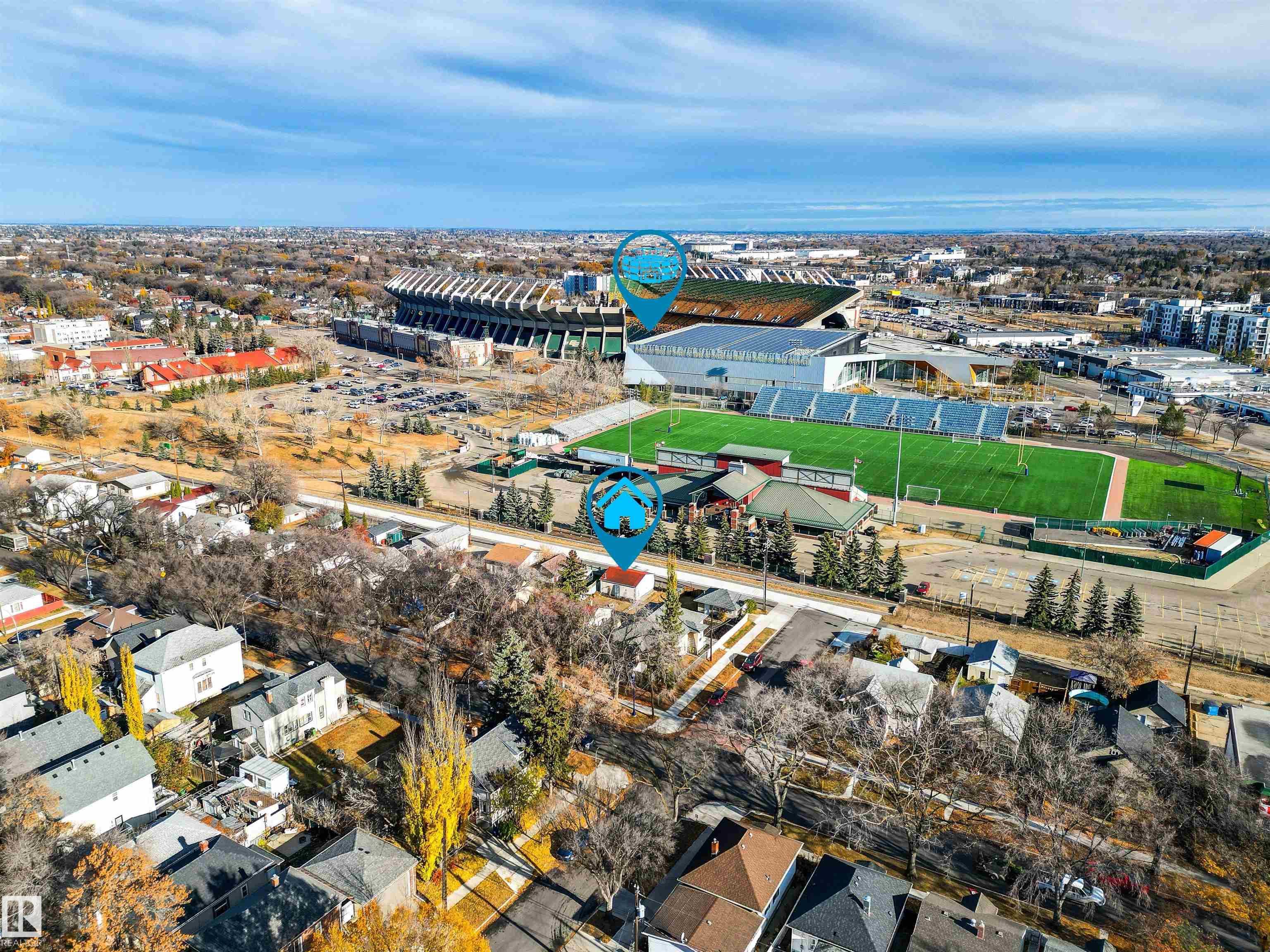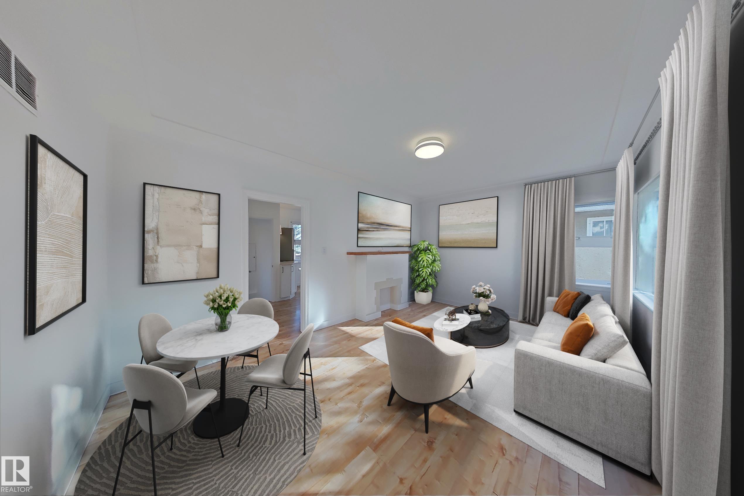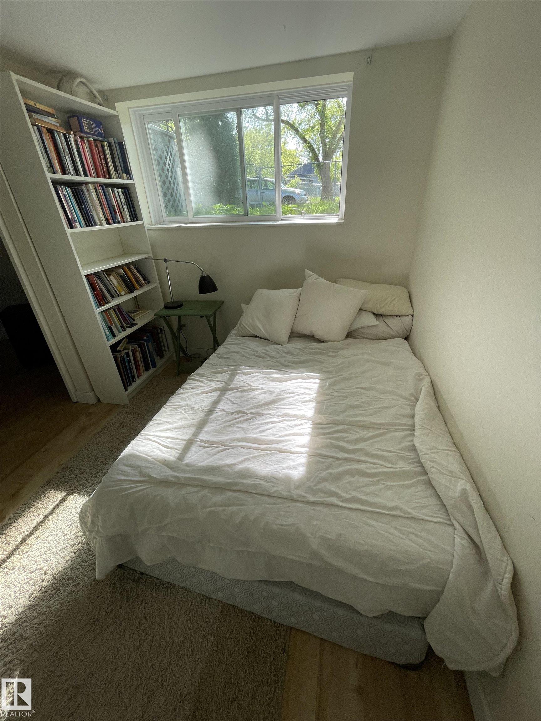 Charming, midcentury bungalow in Mccauley neighbourhood, walking distance to the LRT, rec centre, cafes, parks and quaint businesses. Bright and inviting, renovated with plenty of natural light. This property offers 3 bedrooms, a den, 2 full bathrooms, 2 kitchens and lots of storage space. Main level has living room with south and west windows and coved ceiling. Kitchen on main floor comes with quartz countertops as well as upgraded fridge and stove. Bright basement was renovated few years ago, has large windows, a second kitchen with living area, bathroom with walk-in shower, bedroom, den and utility/laundry room. Windows were upgraded as well. Three large windows fully swing open for easy furniture move. HWT replaced within the last year. There is also newer furnace installed in 2017, and newer stucco. Lot is 45' by 120' (5,490 sq.ft.) This property is fenced with a big lawn, established perennials and fruit tree, and a double detached garage. 2 photos were virtually furnished. Make a move!