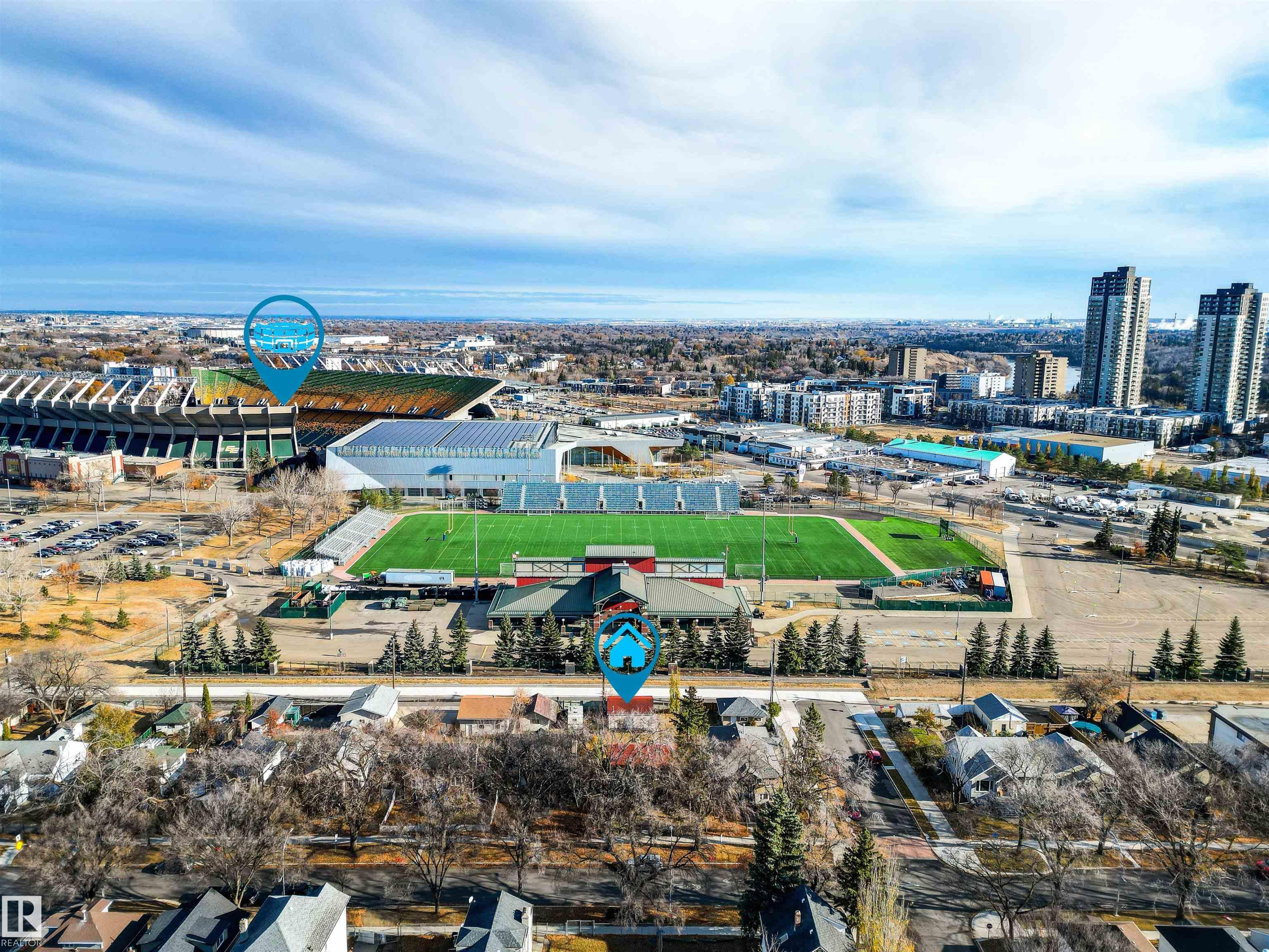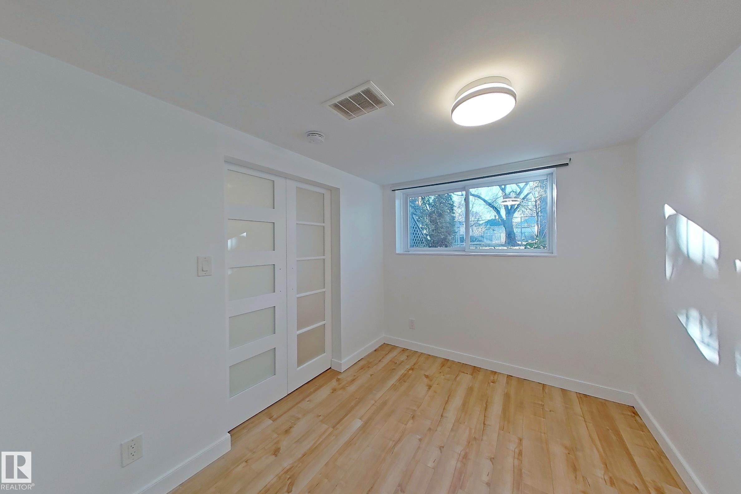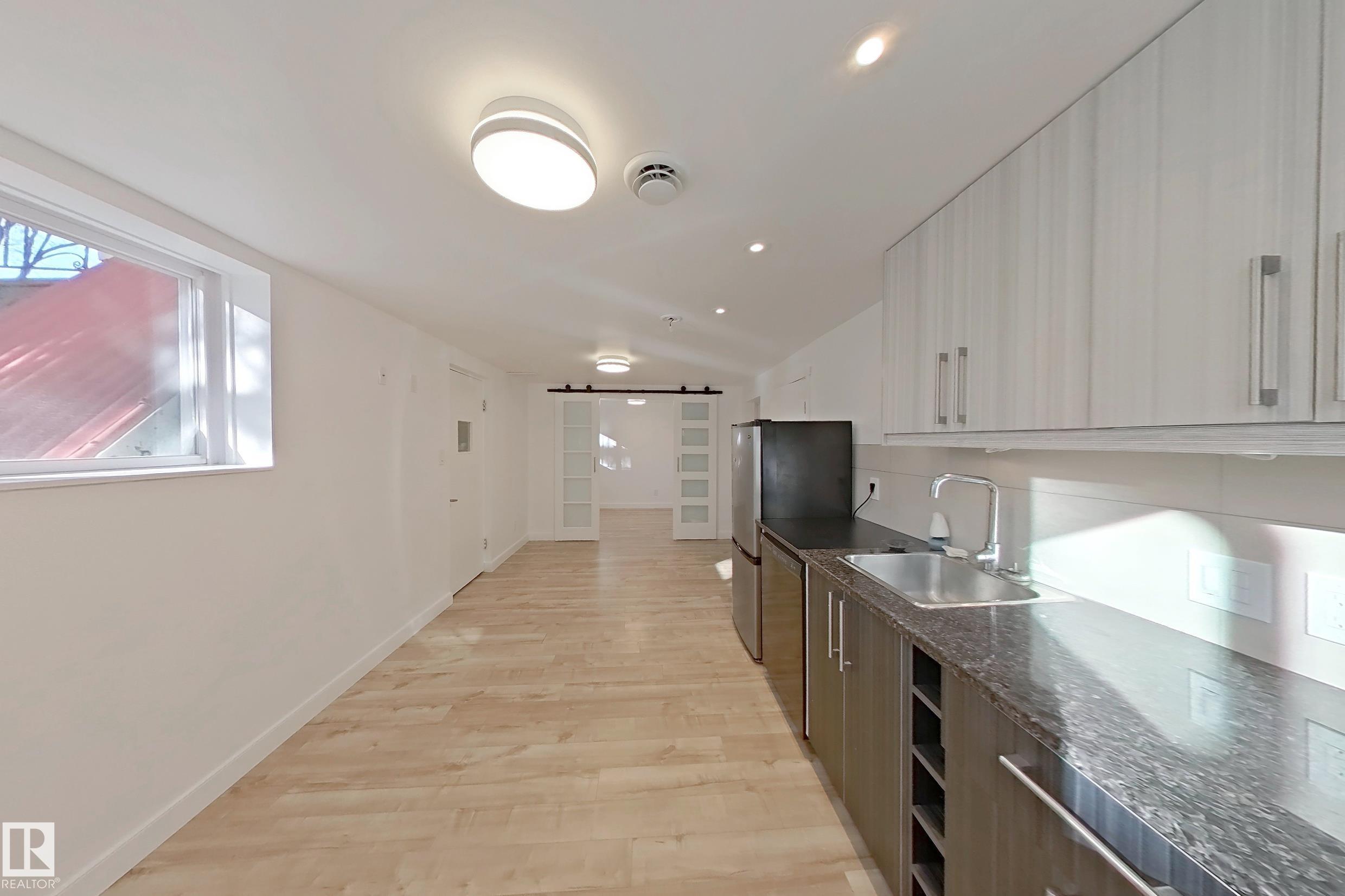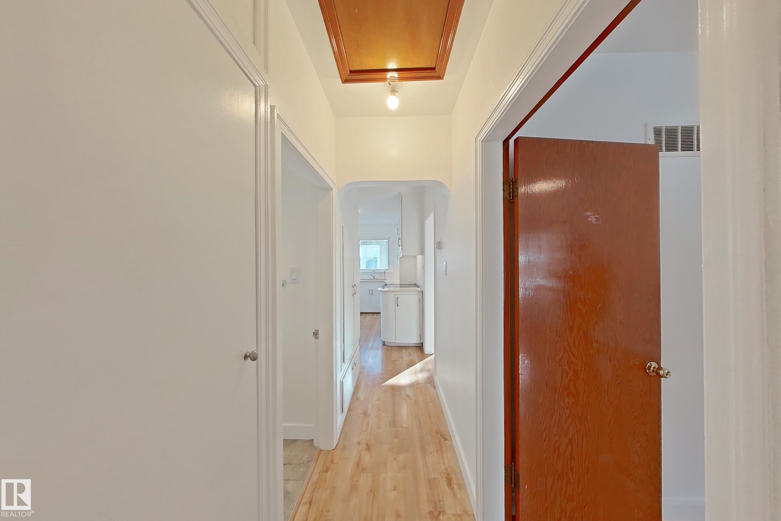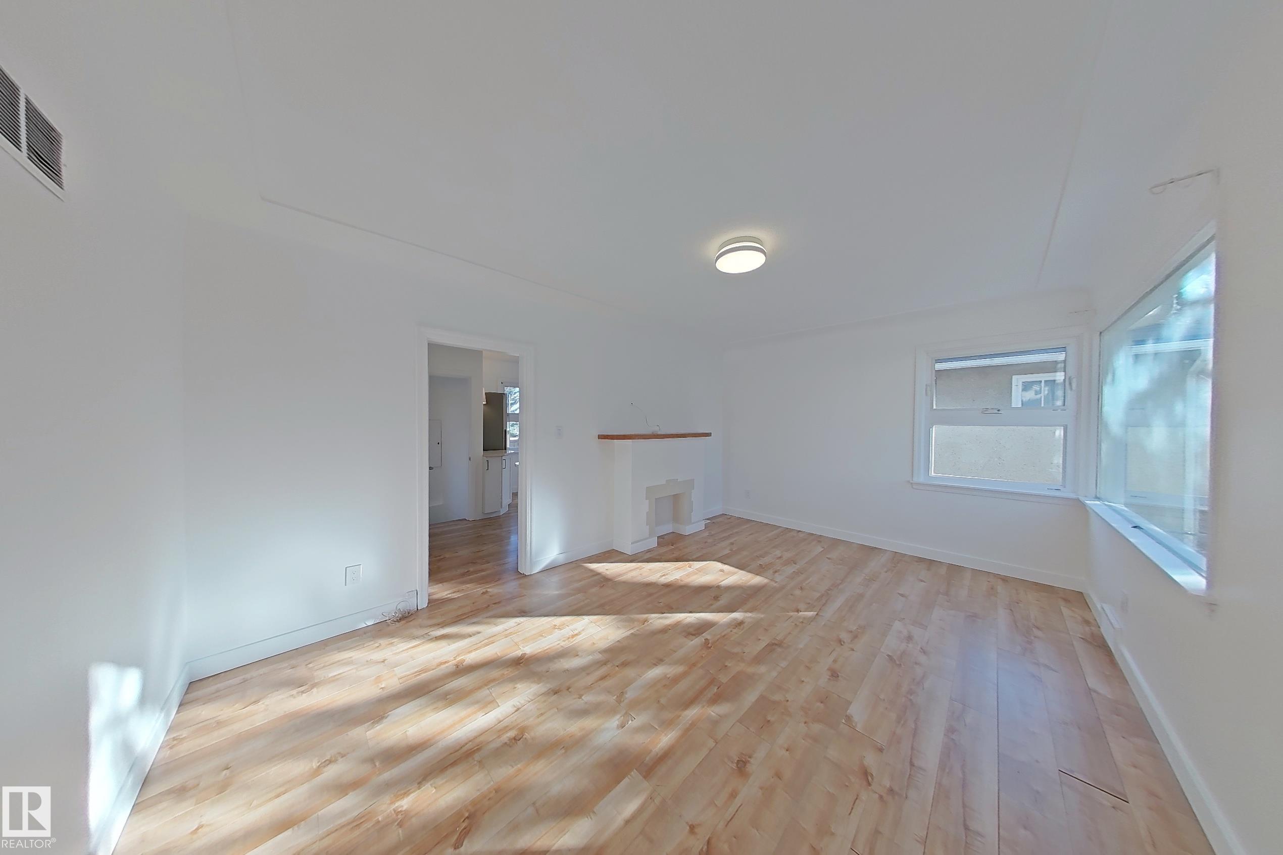 Charming, midcentury bungalow in Mccauley neighbourhood, walking distance to the LRT, rec centre, cafes, parks and quaint businesses. Bright and inviting, renovated with plenty of natural light. This property offers 3 bedrooms, a den, 2 full bathrooms, 2 kitchens and lots of storage space. Main level has living room with south and west windows and coved ceiling. Kitchen on main floor comes with quartz countertops as well as upgraded fridge and stove. Bright basement was renovated few years ago, has large windows, a second kitchen with living area, bathroom with walk-in shower, bedroom, den and utility/laundry room. Windows were upgraded as well. Three large windows fully swing open for easy furniture move. HWT replaced within the last year. There is also newer furnace installed in 2017, and newer stucco. Lot is 45' by 120' (5,490 sq.ft.) This property is fenced with a big lawn, established perennials and fruit tree, and a double detached garage. 2 photos were virtually furnished. Make a move!