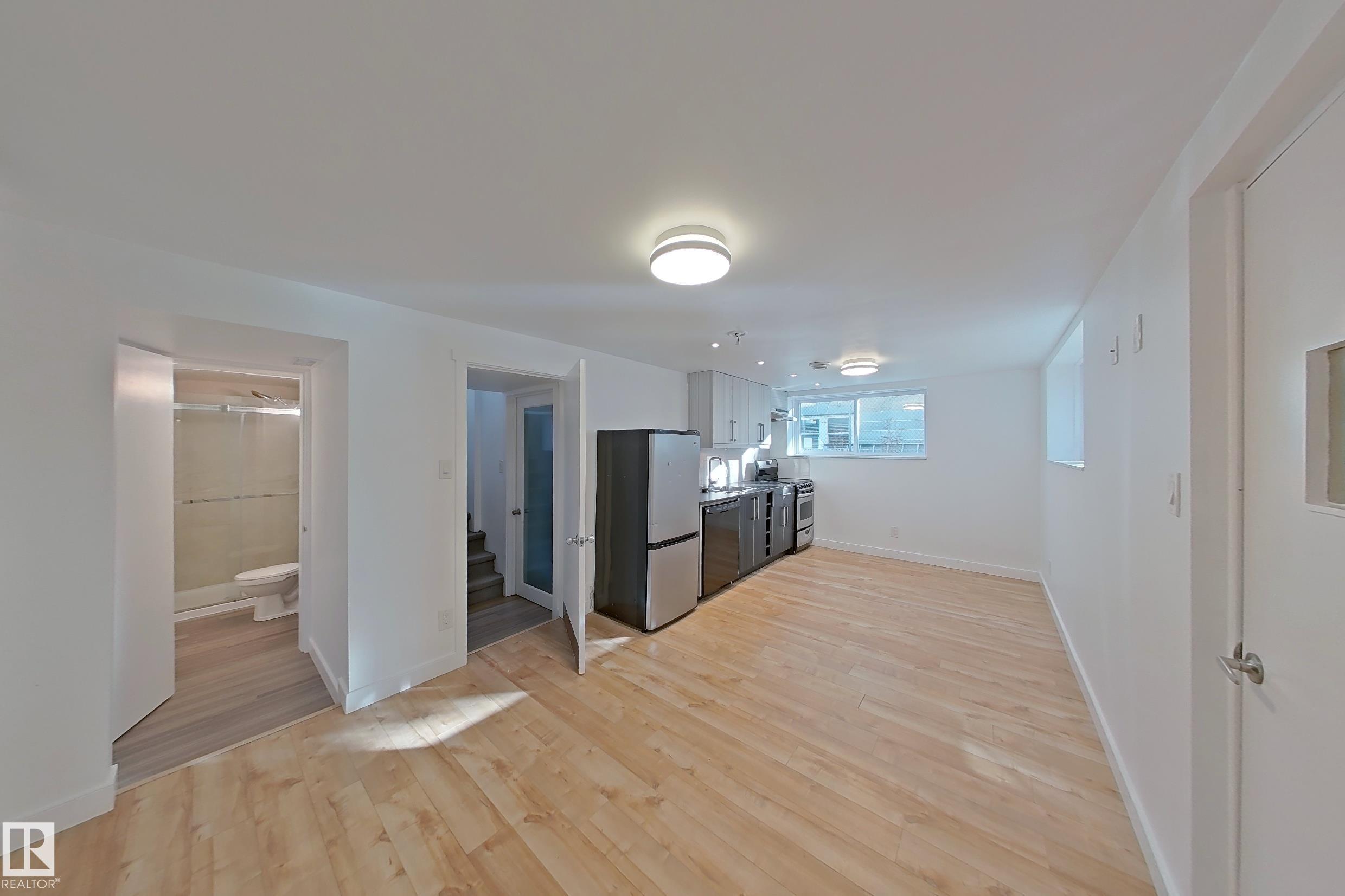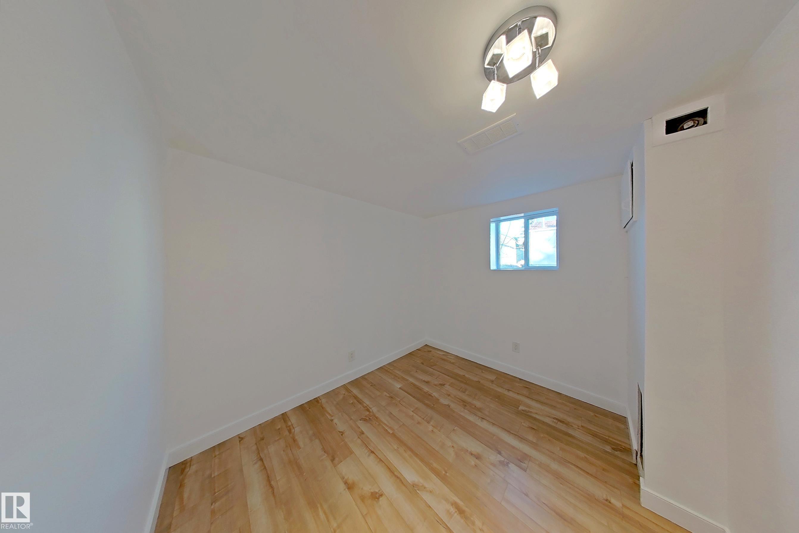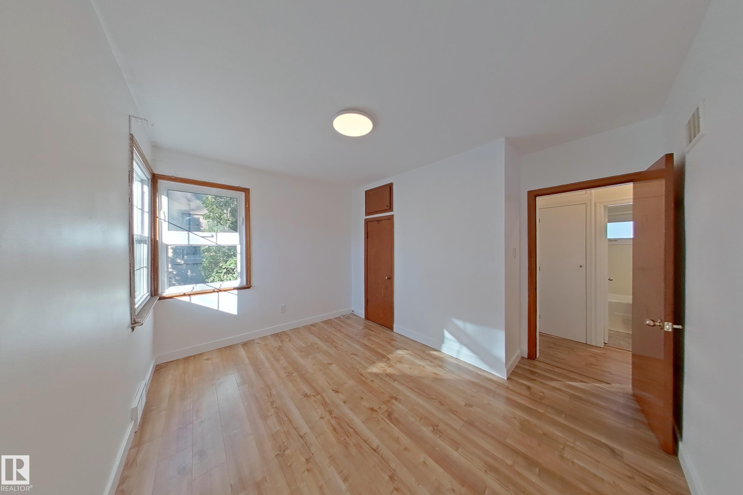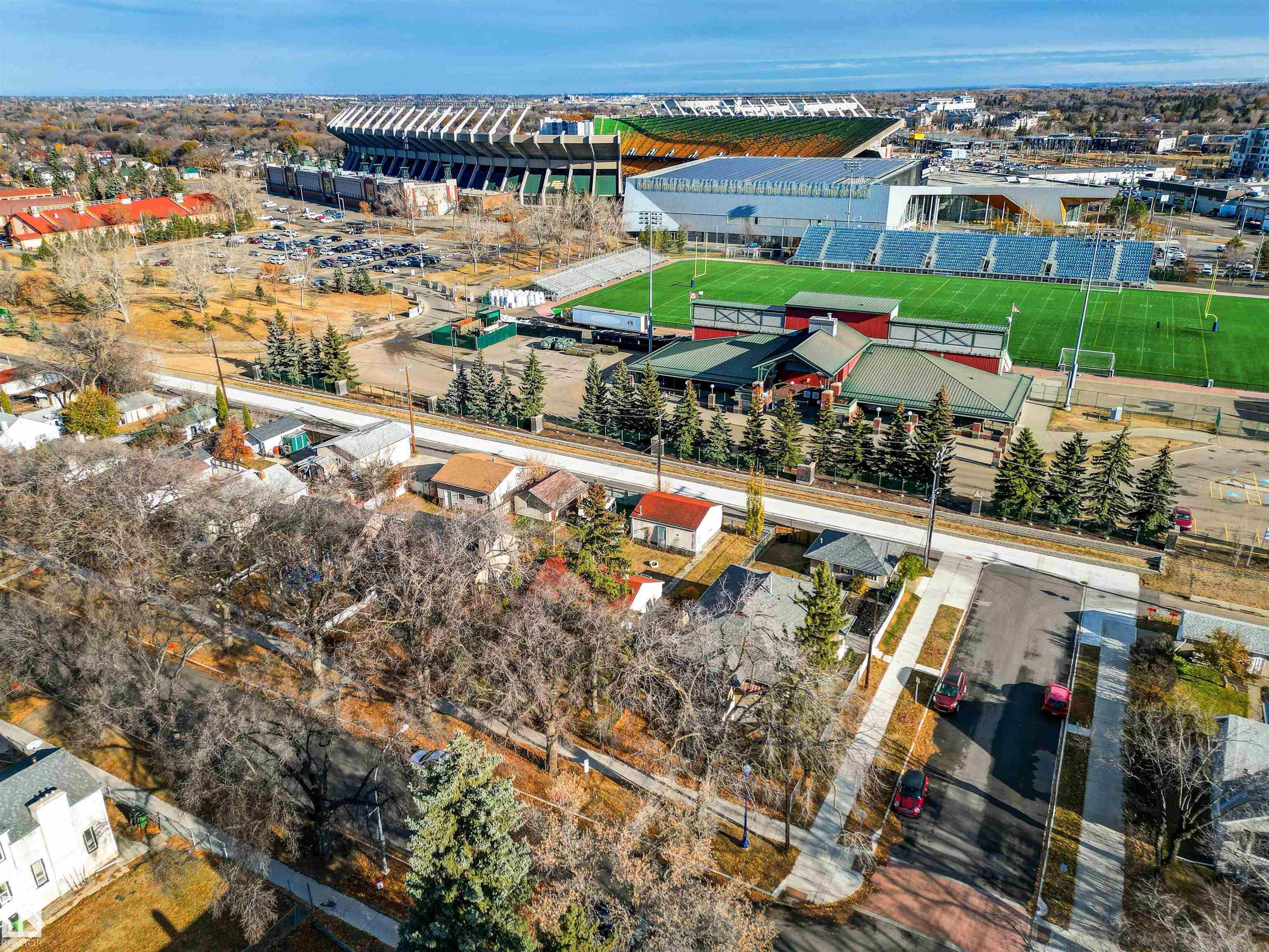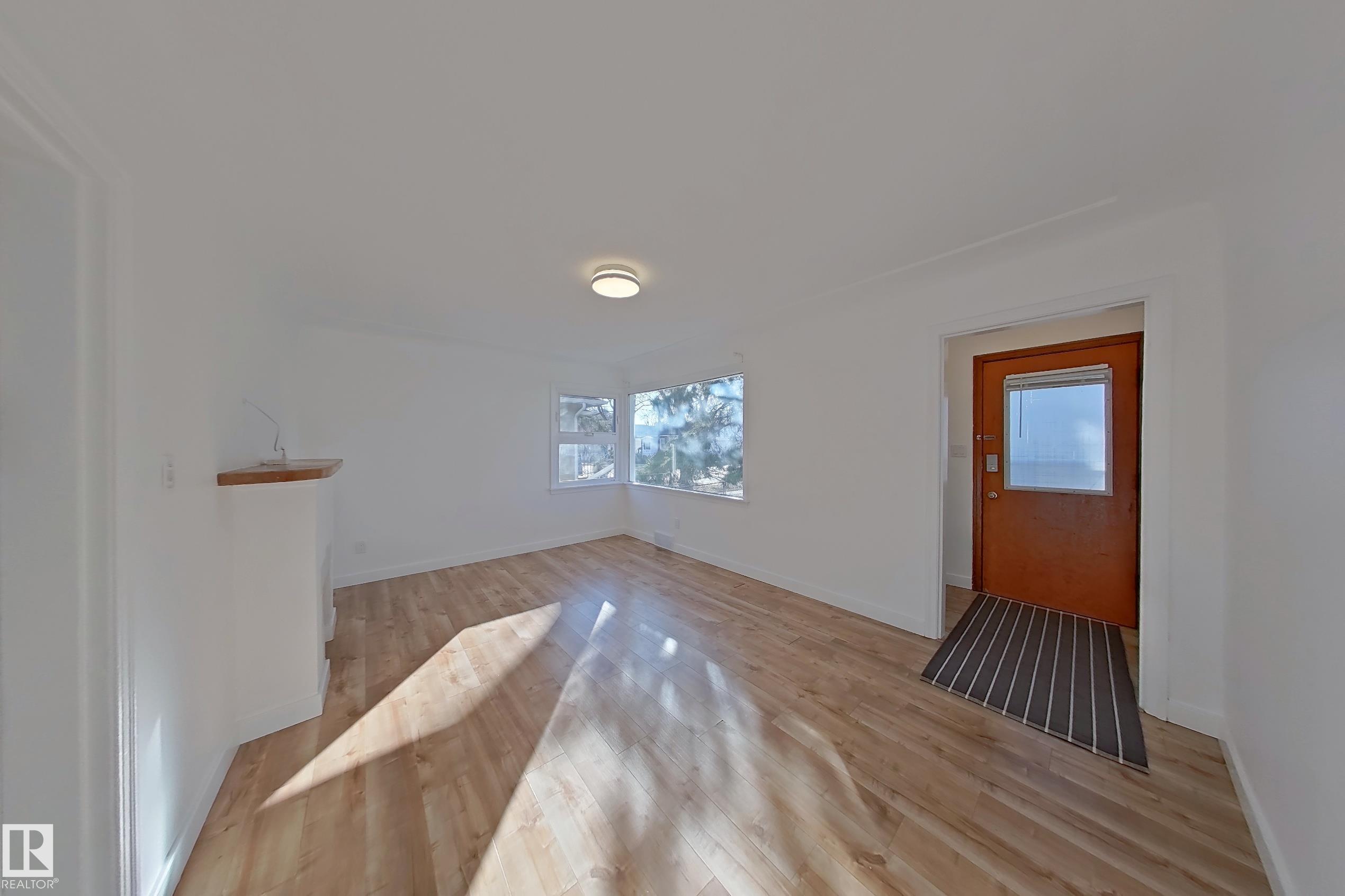 Charming, midcentury bungalow in Mccauley neighbourhood, walking distance to the LRT, rec centre, cafes, parks and quaint businesses. Bright and inviting, renovated with plenty of natural light. This property offers 3 bedrooms, a den, 2 full bathrooms, 2 kitchens and lots of storage space. Main level has living room with south and west windows and coved ceiling. Kitchen on main floor comes with quartz countertops as well as upgraded fridge and stove. Bright basement was renovated few years ago, has large windows, a second kitchen with living area, bathroom with walk-in shower, bedroom, den and utility/laundry room. Windows were upgraded as well. Three large windows fully swing open for easy furniture move. HWT replaced within the last year. There is also newer furnace installed in 2017, and newer stucco. Lot is 45' by 120' (5,490 sq.ft.) This property is fenced with a big lawn, established perennials and fruit tree, and a double detached garage. 2 photos were virtually furnished. Make a move!