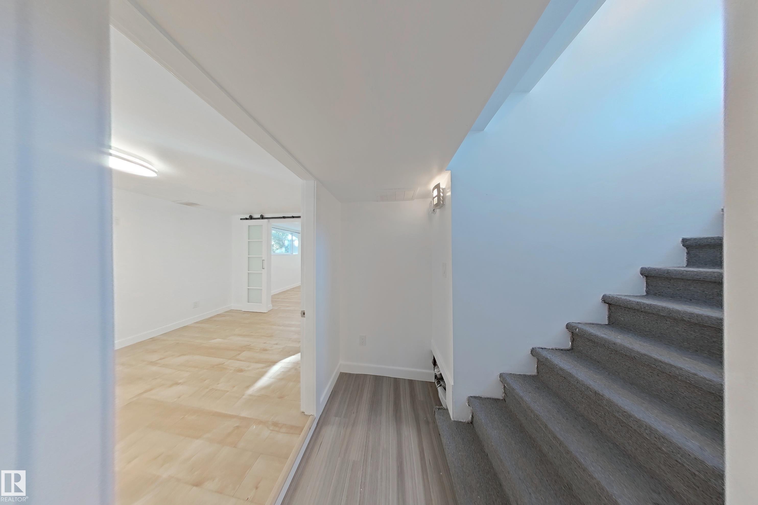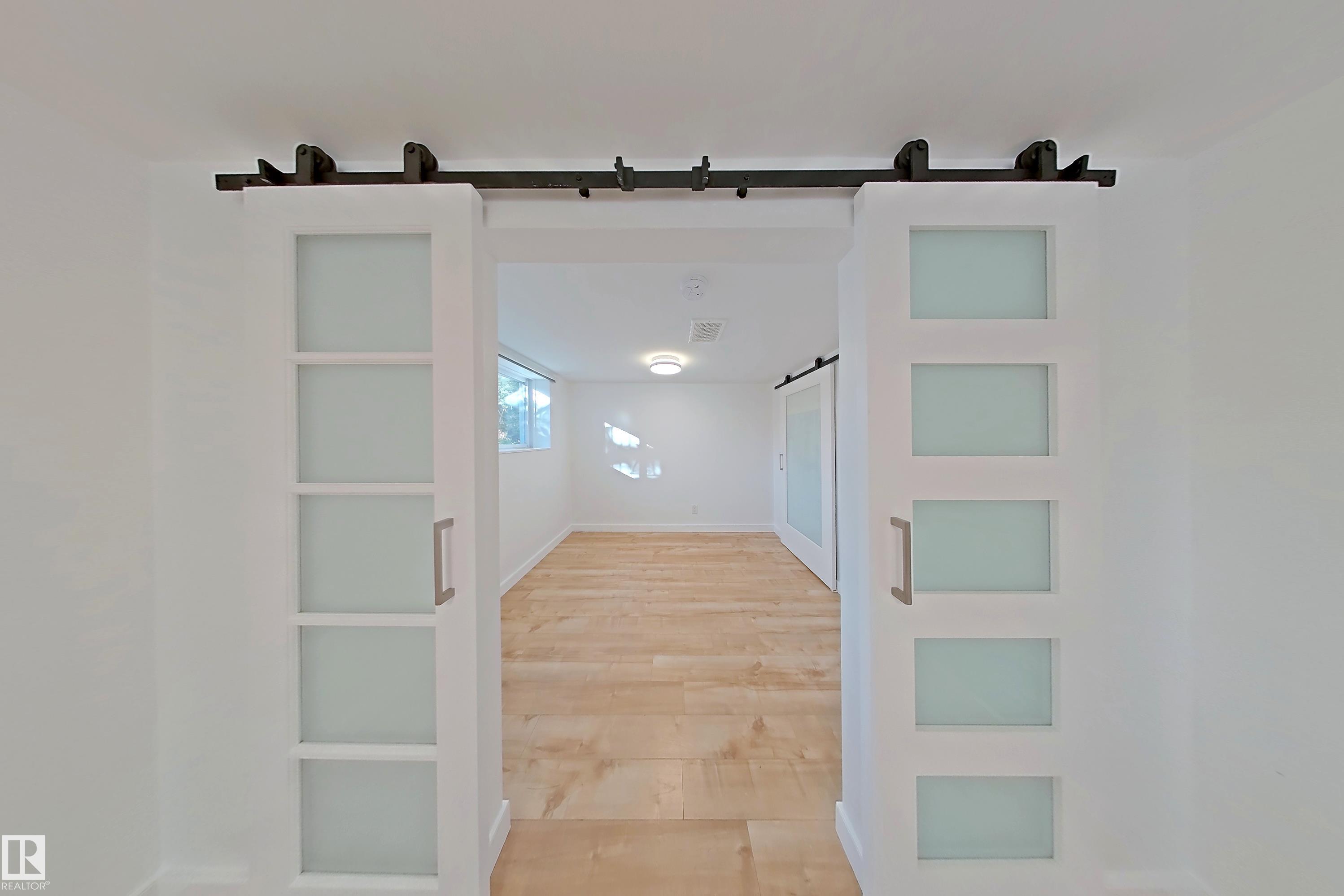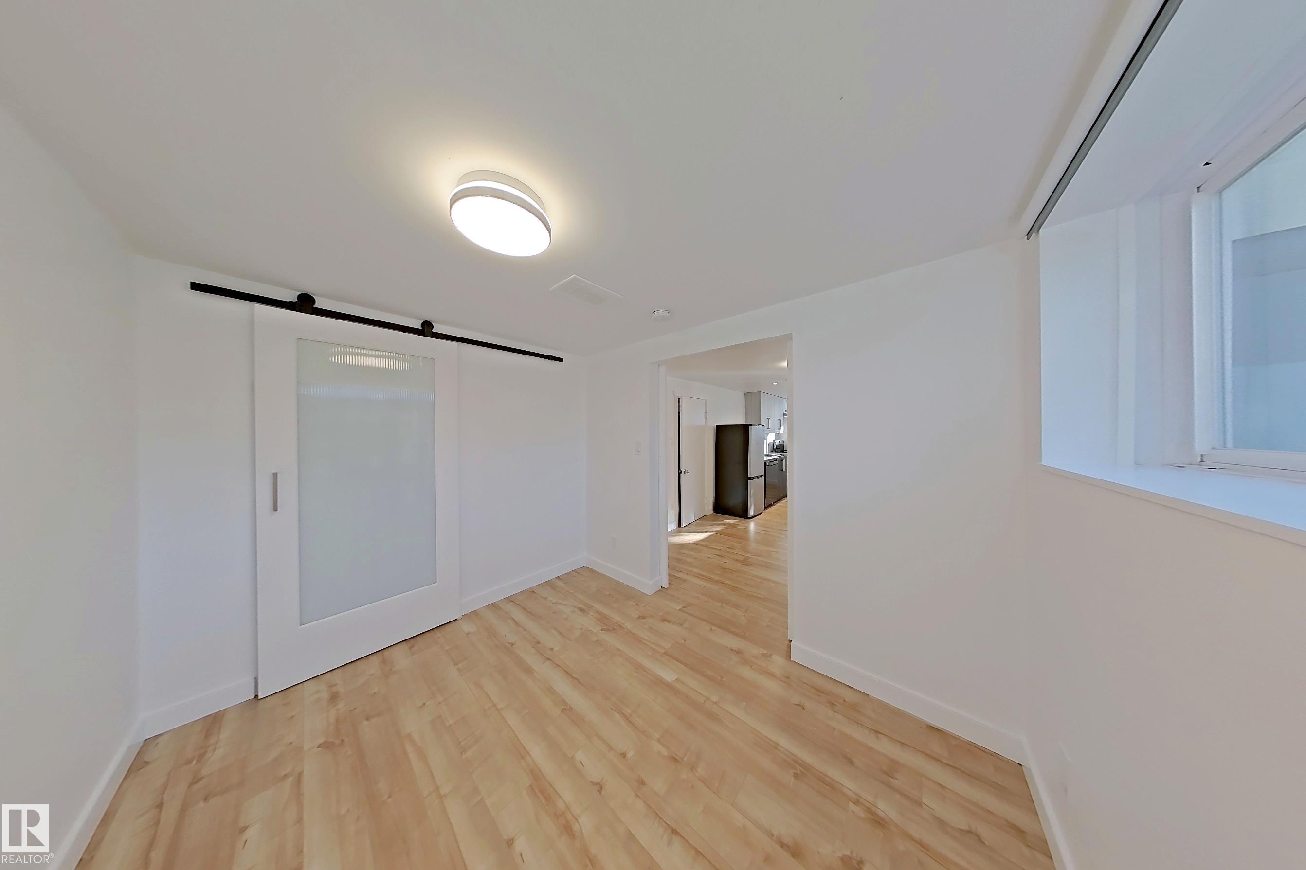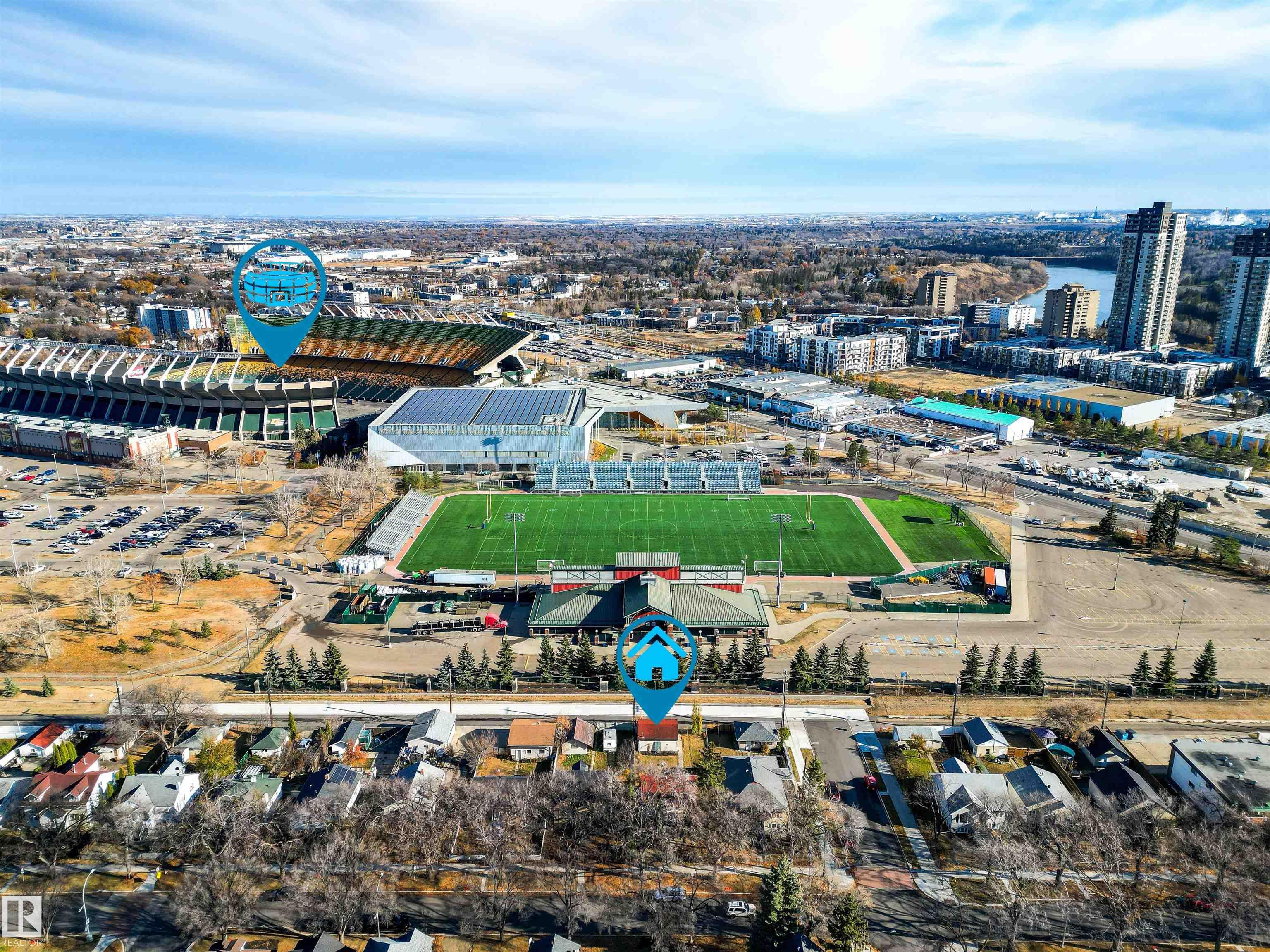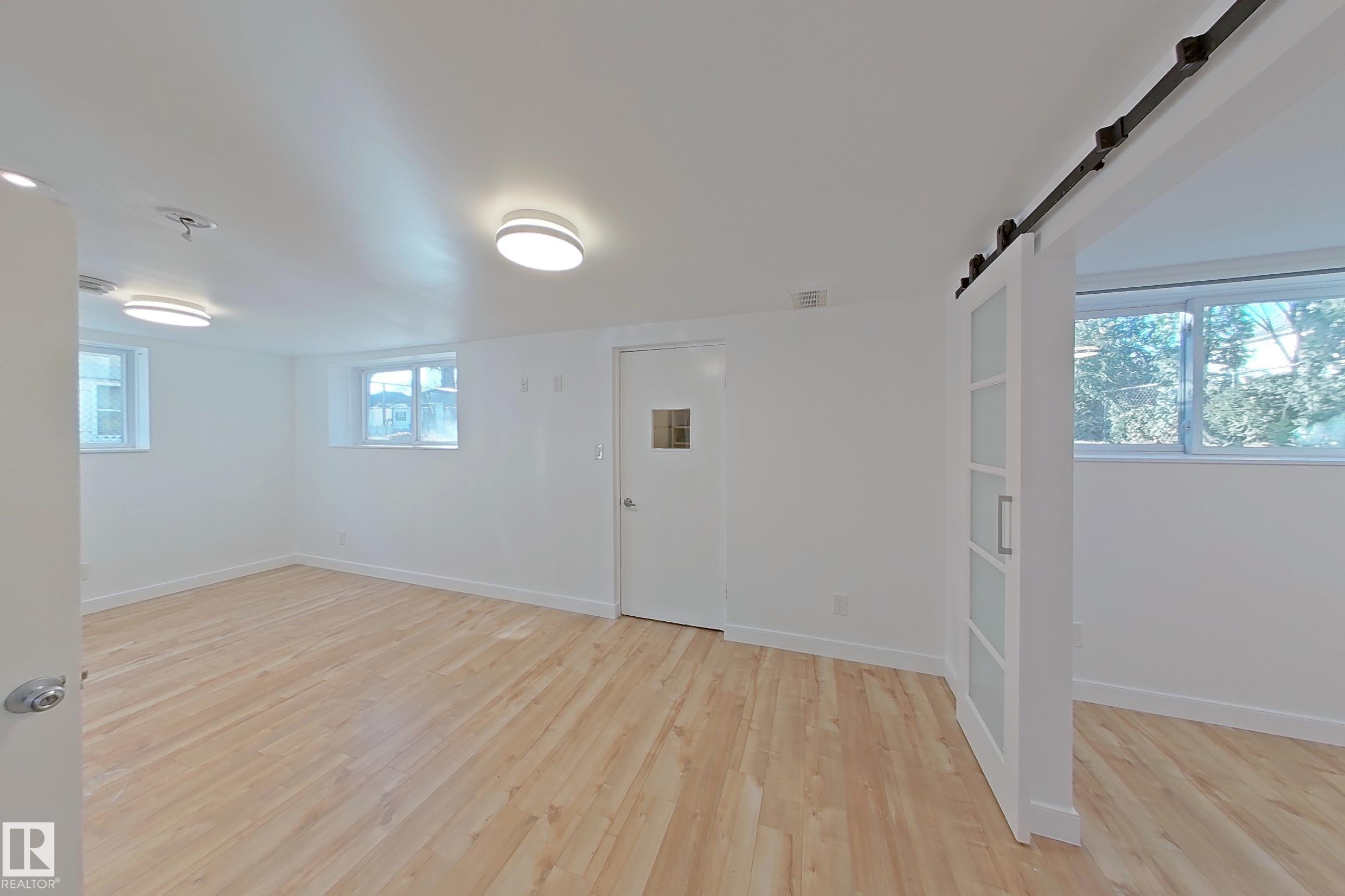 Charming, midcentury bungalow in Mccauley neighbourhood, walking distance to the LRT, rec centre, cafes, parks and quaint businesses. Bright and inviting, renovated with plenty of natural light. This property offers 3 bedrooms, a den, 2 full bathrooms, 2 kitchens and lots of storage space. Main level has living room with south and west windows and coved ceiling. Kitchen on main floor comes with quartz countertops as well as upgraded fridge and stove. Bright basement was renovated few years ago, has large windows, a second kitchen with living area, bathroom with walk-in shower, bedroom, den and utility/laundry room. Windows were upgraded as well. Three large windows fully swing open for easy furniture move. HWT replaced within the last year. There is also newer furnace installed in 2017, and newer stucco. Lot is 45' by 120' (5,490 sq.ft.) This property is fenced with a big lawn, established perennials and fruit tree, and a double detached garage. 2 photos were virtually furnished. Make a move!