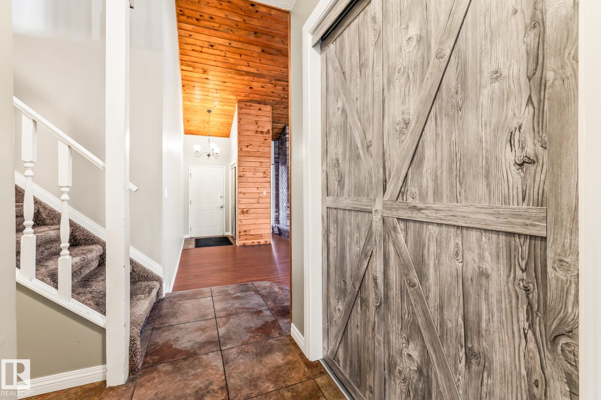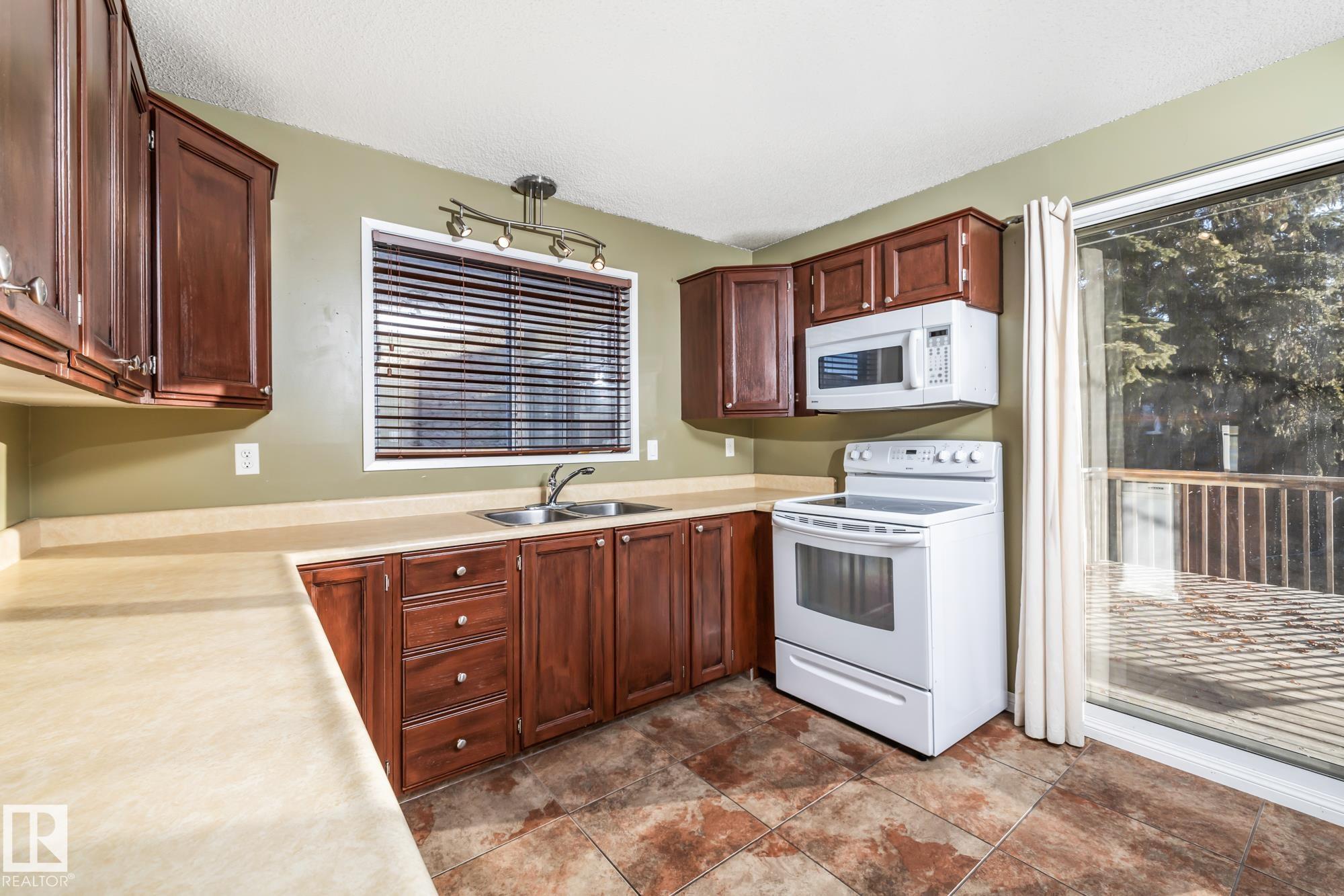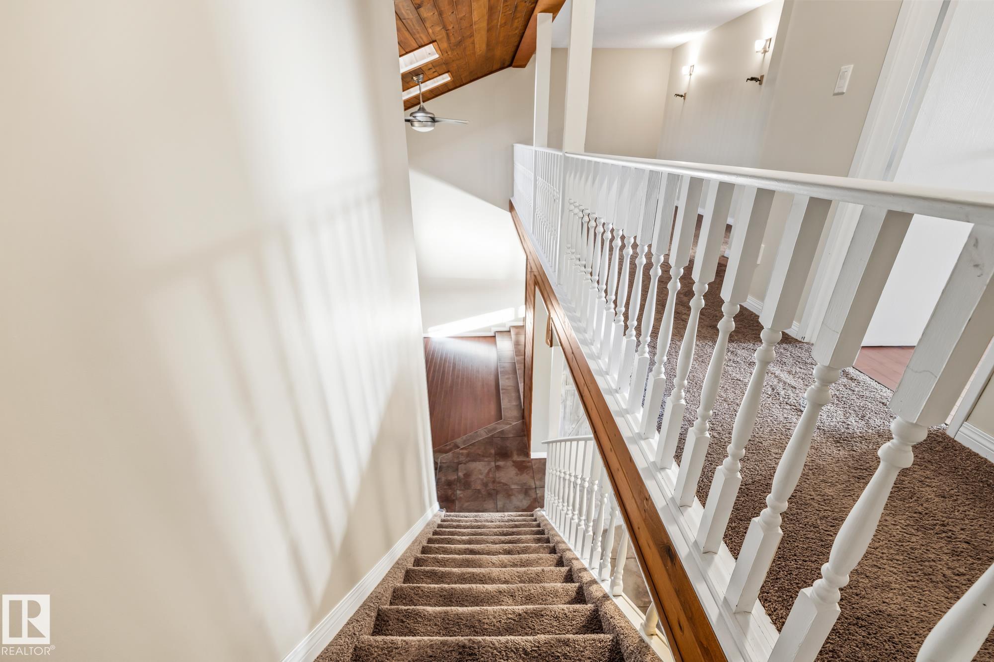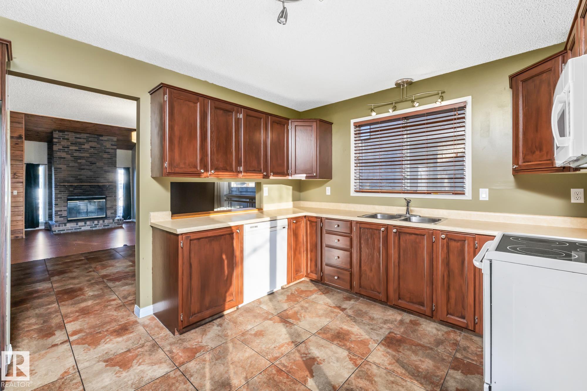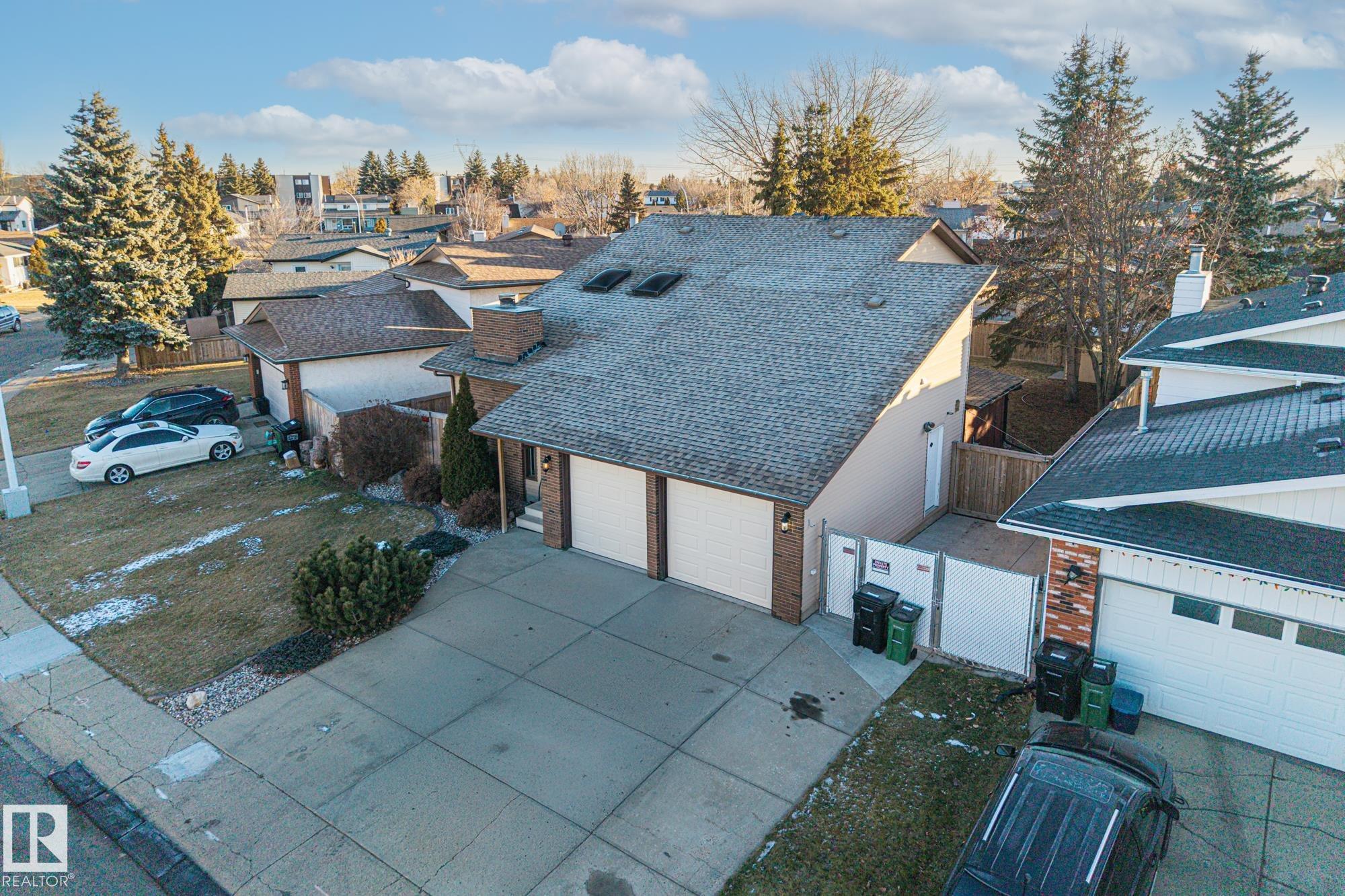 This 4-bedroom, 3-bathroom home situated in Dunluce is full of character and offers convenient access to schools, parks, shopping, and major transportation routes. The property presents a unique design you must see. The main level features an open floor plan with high vaulted ceilings and a functional layout. A wood-burning fireplace makes for a cozy living area. The property includes four spacious bedrooms (one on the main floor) and three full bathrooms. It is positioned on a large lot with a south-facing back yard. The partially finished basement significantly expands the usable space, currently featuring a bedroom, a full bathroom, and a substantial recreation area that has been drywalled. Key mechanical and structural updates include shingles (2020), furnace (2020), hot water tank (2022), skylights (2020), and fence (2020). Additional features include central air conditioning, central vacuum, and a heated attached double garage equipped with a 220V outlet.