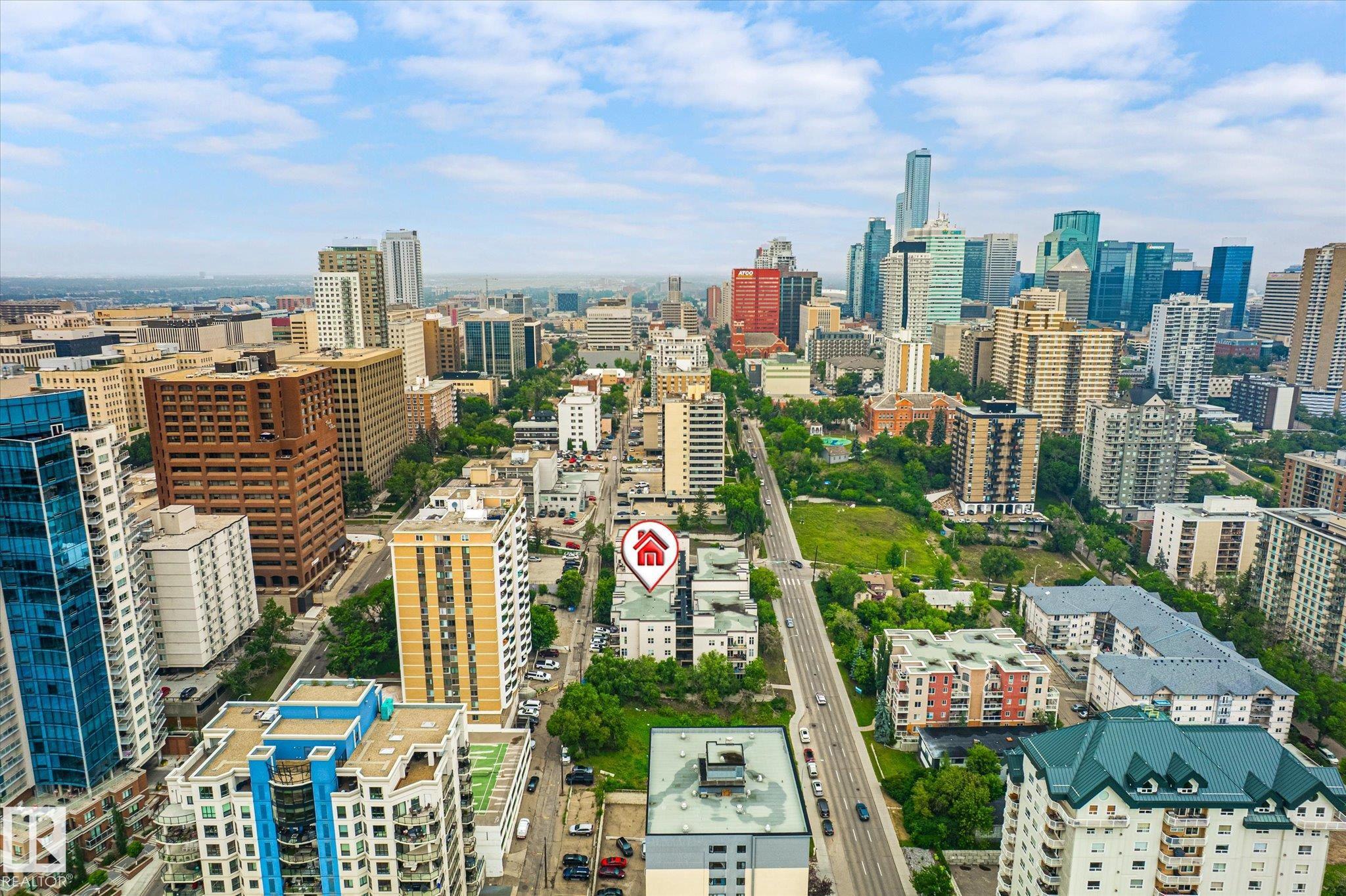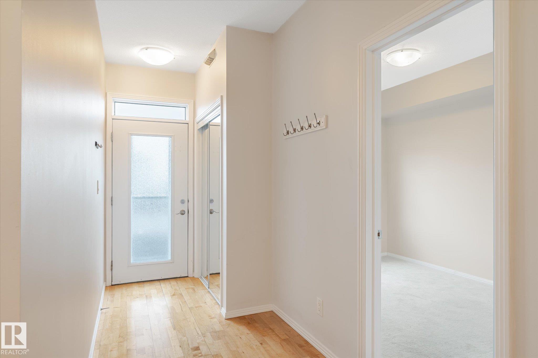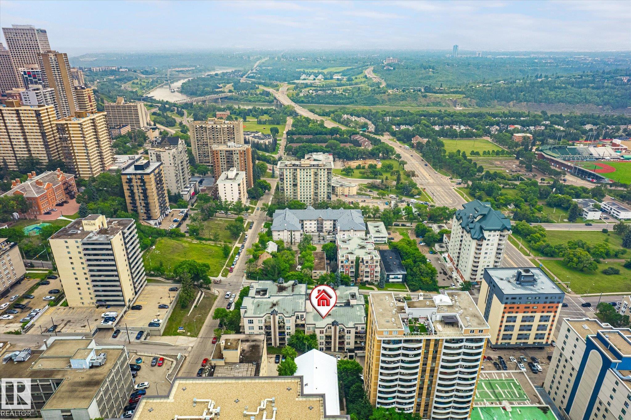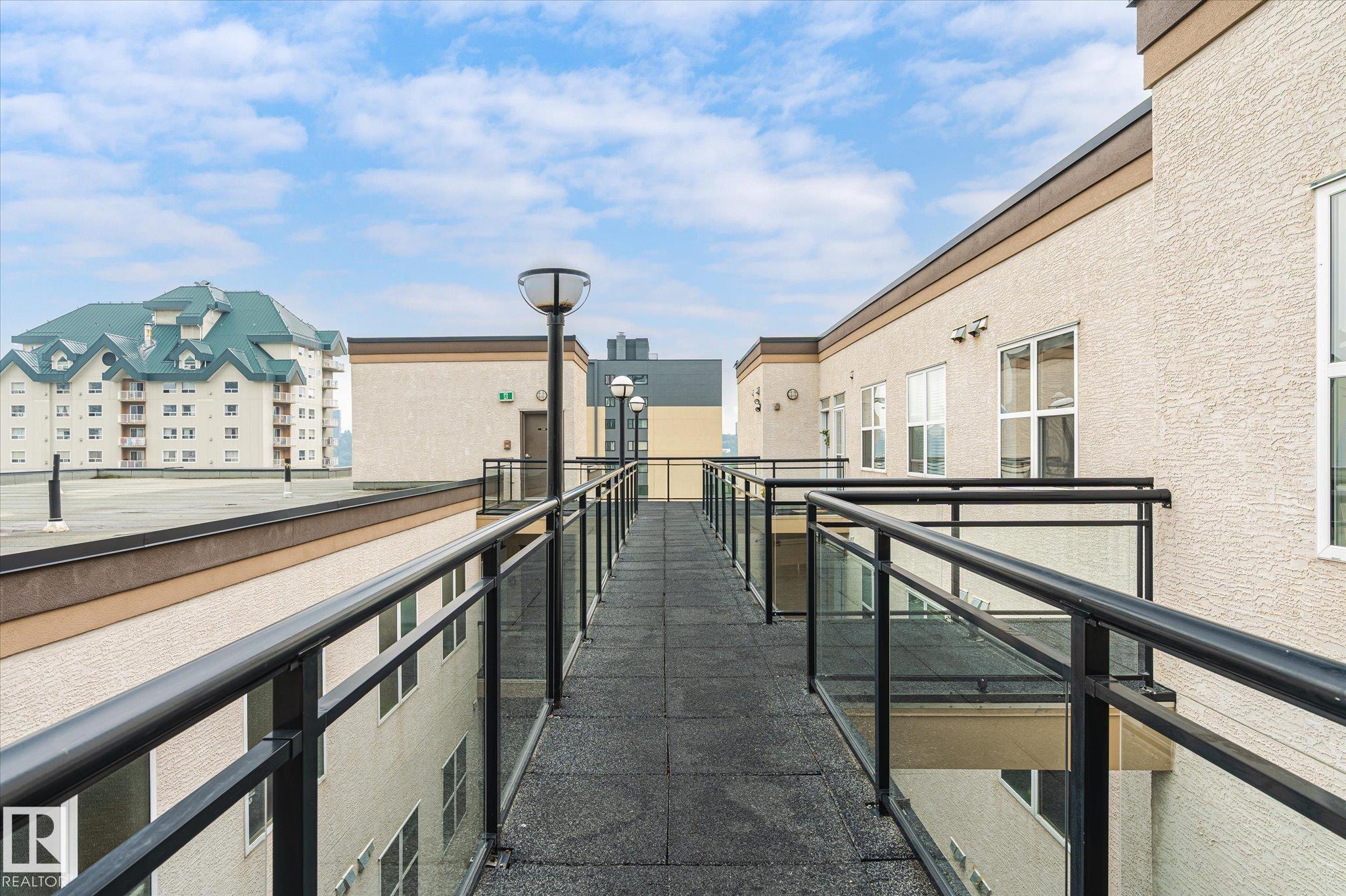 Looking for a top floor river valley unit? This contemporary condo is in a fantastic location, steps away from the Legislature, the river valley and the baseball park! As you walk to the suite's front door you will notice that your front entry and 2nd bedroom overlooks the river valley. Inside 9ft ceilings with floor to ceiling windows allows the sunlight in to bounce off of your hardwood flooring. A maple island kitchen with eating bar and tons of counters and cabinets is perfect for the chef in the family and it is also nicely equipped with stainless steel appliances. Patio doors lead to a balcony that faces west, A/C will keep you cool. The large master bedroom has a walk in closet and a full ensuite with tile tub surround and tile flooring. Main bathroom with tile flooring and shower, stackable washer and dryer and secure underground parking stall round out the features. There is ample visitor parking in the alley on the west side of the building.