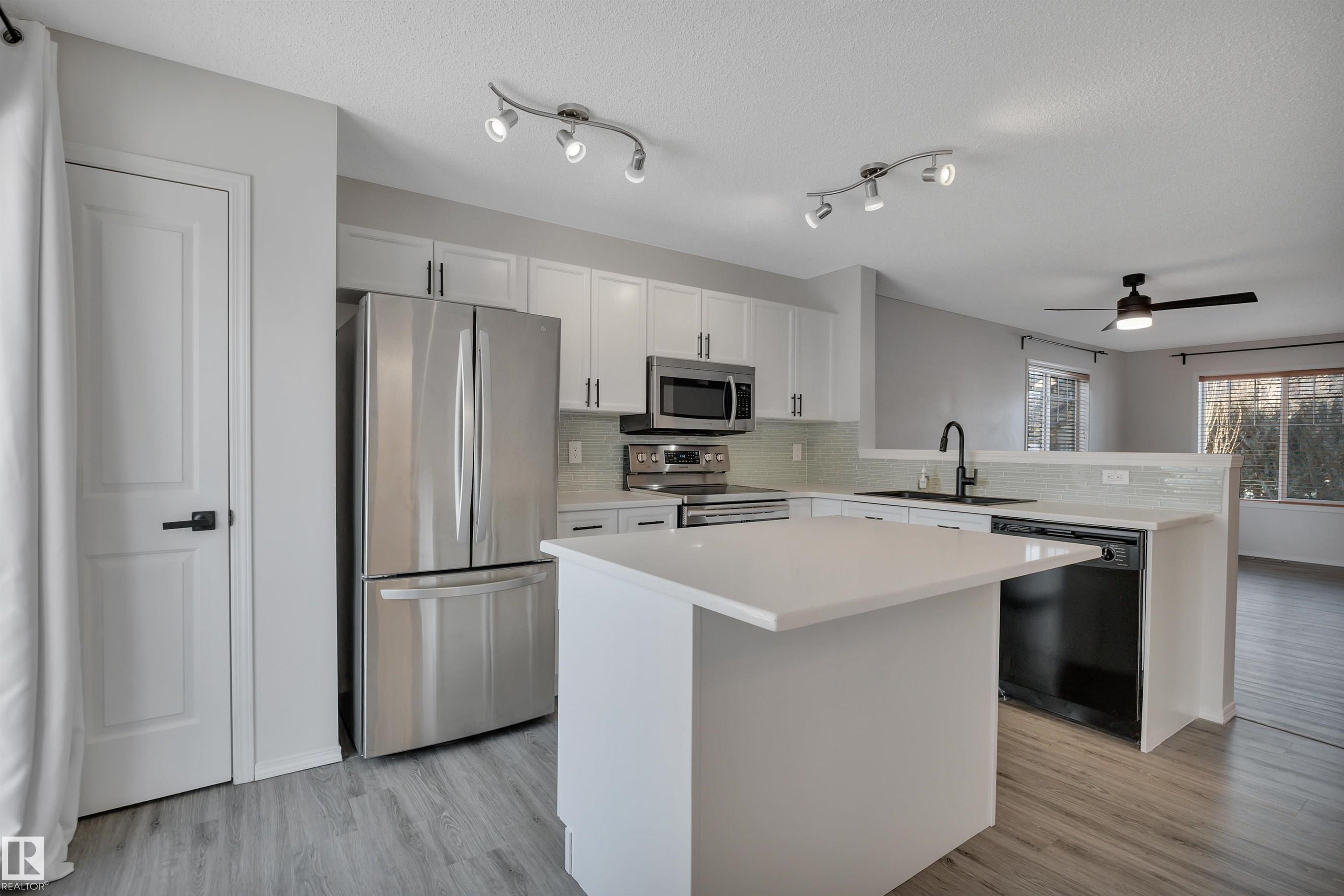 Gorgeous 3-bedroom townhome with a double attached garage in the coveted Terwillegar neighborhood. Impeccably maintained, freshly painted, and a bright corner unit bathed in natural light from generous windows. This home is a corner unit & fronts greenspace, delivering superb privacy, tranquil views, and a warm, inviting ambiance. The front yard is larger than most and has a welcoming lower patio?perfect for hosting and enjoying the outdoors. Fall in love the the moment you enter w/ vinyl plank flooring on the main level, a bright & spacious kitchen w/ quartz countertops and white cabinetry, a nice kitchen dining/nook, and a large living room area. As you head upstairs, you can enjoy the BRAND new carpets throughout, the master suite is amazing and features a walk-in closet & a full ensuite; the two additional bedrooms are generously sized. Downstairs offers ample storage and flexible space. This home shows extremely well and is in an amazing location. Close to schools, transit, Whitemud and shopping.