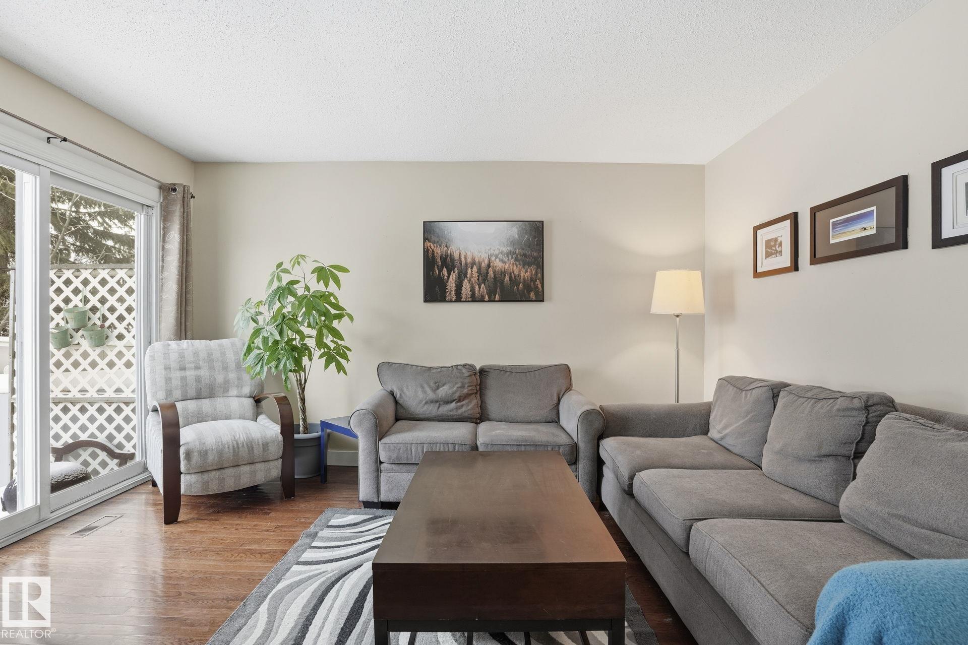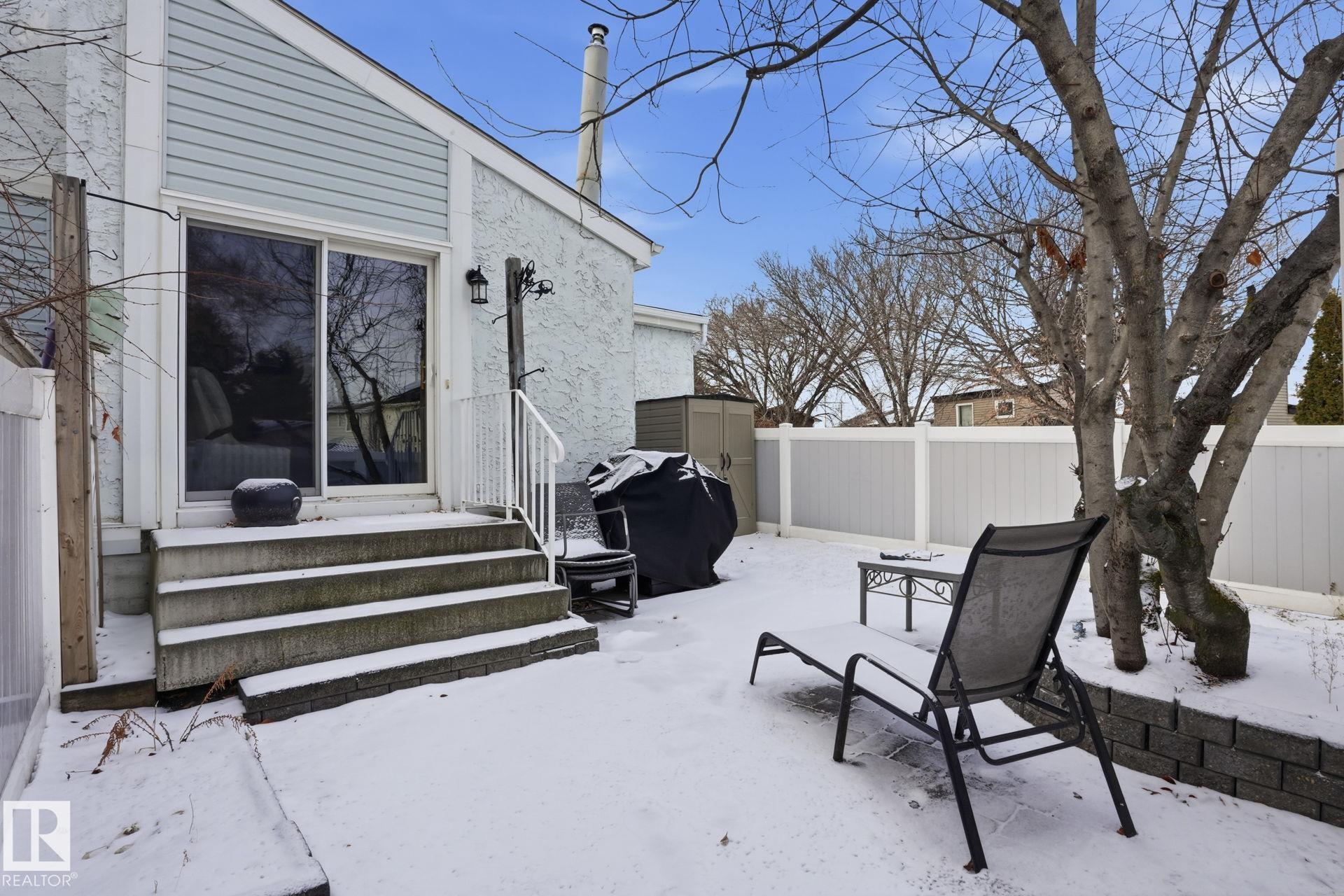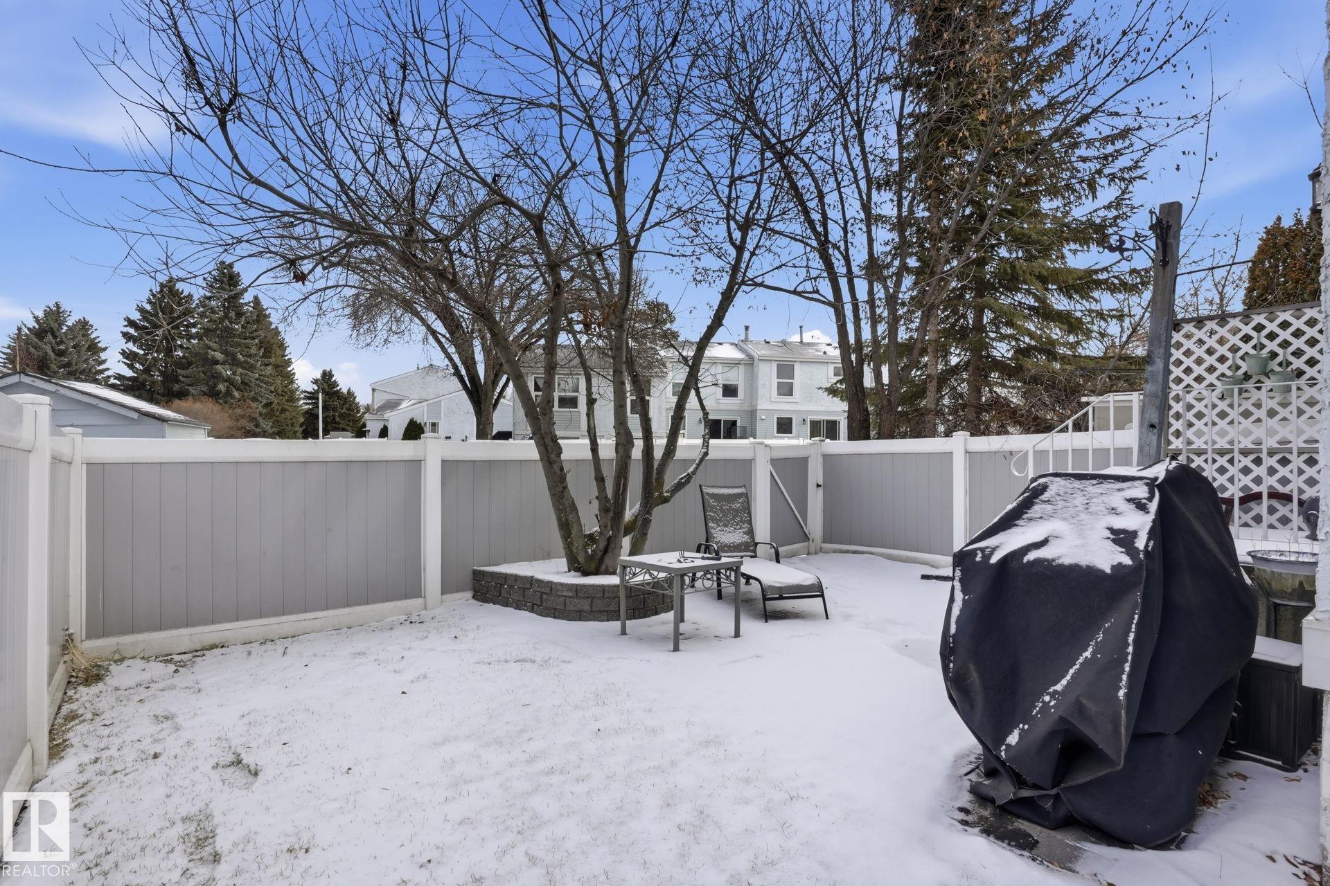 Welcome home to this charming bungalow townhome, perfect for first-time buyer or investors looking to expand their portfolio. Offering affordable condo fees, central air conditioning, a fenced yard, and a partially finished basement, this home blends comfort and value. The main floor features a bright, spacious living room with hardwood flooring, a cozy corner gas fireplace, and sliding glass doors leading to the private rear yard. The dining area sits just off the living room and flows into a functional kitchen with ample cabinet space. Three bedrooms and a 4-piece bath complete the main level. The basement adds excellent flexibility with a fourth bedroom, another 4-piece bathroom, and a welcoming family room ideal for movie nights or game time. Situated in a well-established neighborhood close to transit and amenities, this warm, inviting home offers a wonderful opportunity to move in and make it your own.