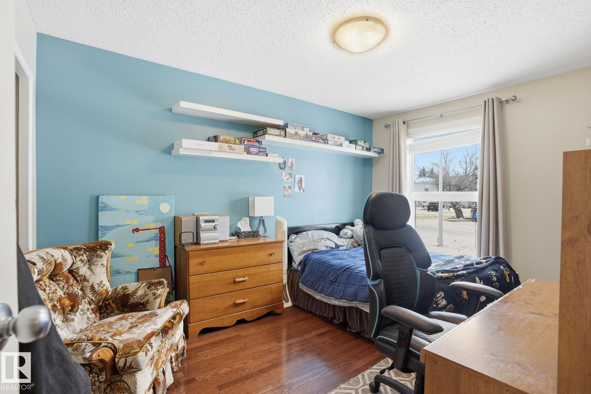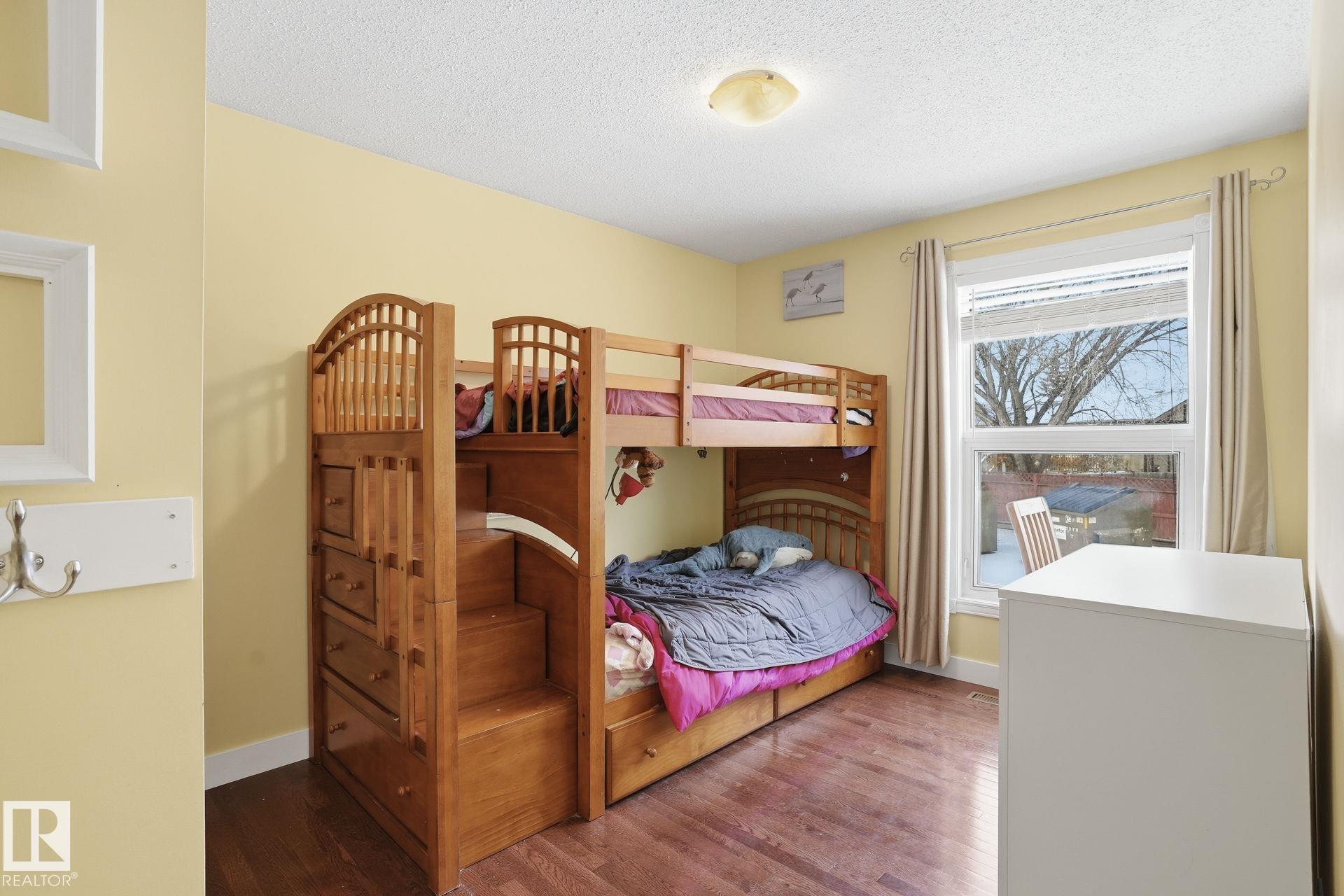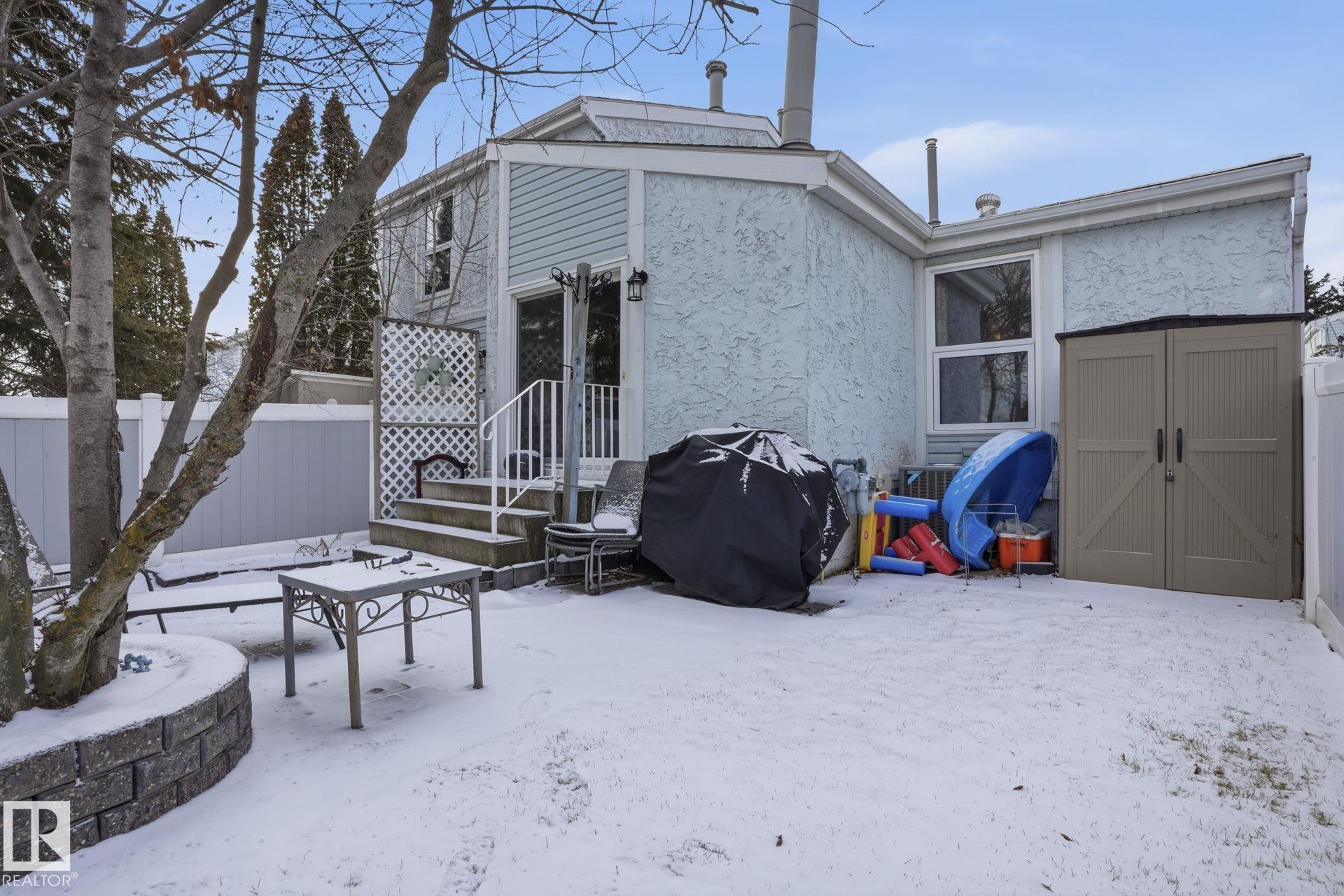 Welcome home to this charming bungalow townhome, perfect for first-time buyer or investors looking to expand their portfolio. Offering affordable condo fees, central air conditioning, a fenced yard, and a partially finished basement, this home blends comfort and value. The main floor features a bright, spacious living room with hardwood flooring, a cozy corner gas fireplace, and sliding glass doors leading to the private rear yard. The dining area sits just off the living room and flows into a functional kitchen with ample cabinet space. Three bedrooms and a 4-piece bath complete the main level. The basement adds excellent flexibility with a fourth bedroom, another 4-piece bathroom, and a welcoming family room ideal for movie nights or game time. Situated in a well-established neighborhood close to transit and amenities, this warm, inviting home offers a wonderful opportunity to move in and make it your own.
