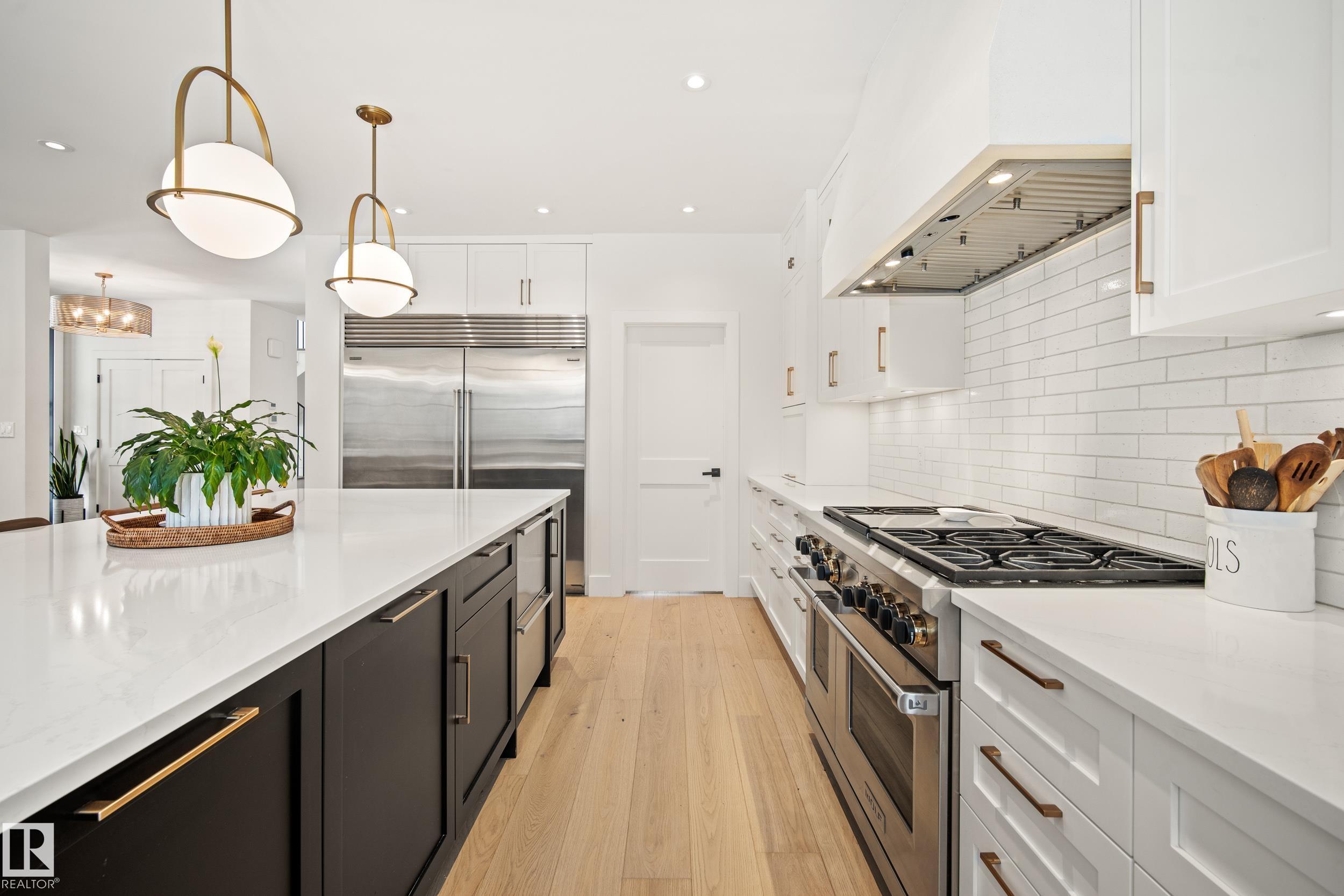 Experience luxury living in this 4300+ sqft custom FC Developments home in prestigious Glenora. Crafted in 2021, this 5-bed + main floor den/flex space blends modern elegance with exceptional upgrades. The gourmet chef?s kitchen impresses with Sub-Zero side-by-side fridge & freezer, Wolf gas range with custom knobs, double drink drawers, and a stunning Calacatta Gold polished quartz island. Enjoy a deluxe Sonos sound system inside and out. The corner lot offers a private, fully landscaped oasis with 90+ trees/plants on drip lines, and irrigation system. The lower level is built for entertaining with a wet bar, extra fridge, gym, storage and heated floors. Retreat to a luxurious primary with steam shower and heated ensuite flooring. Additional features include laundry on both levels, reverse osmosis filtration, central A/C, and a heated 3-car oversized garage with bathroom and ready to finish upper level, to name a few! A home built with care, warmth and the perfect space to create a lifetime of memories.