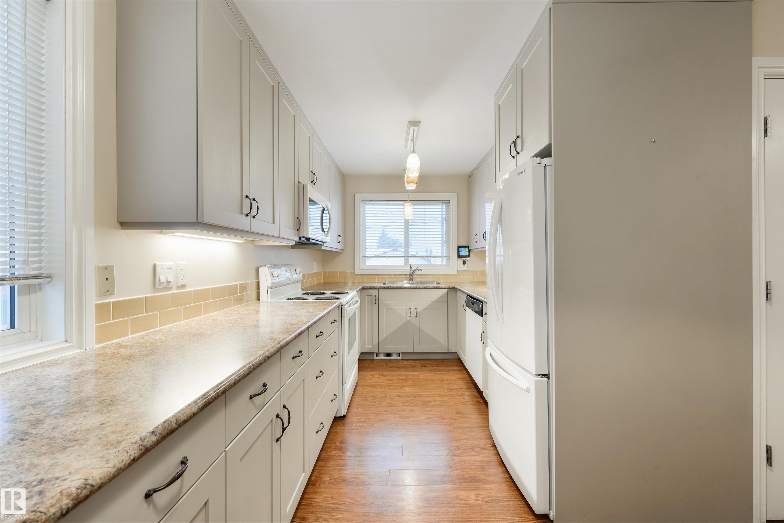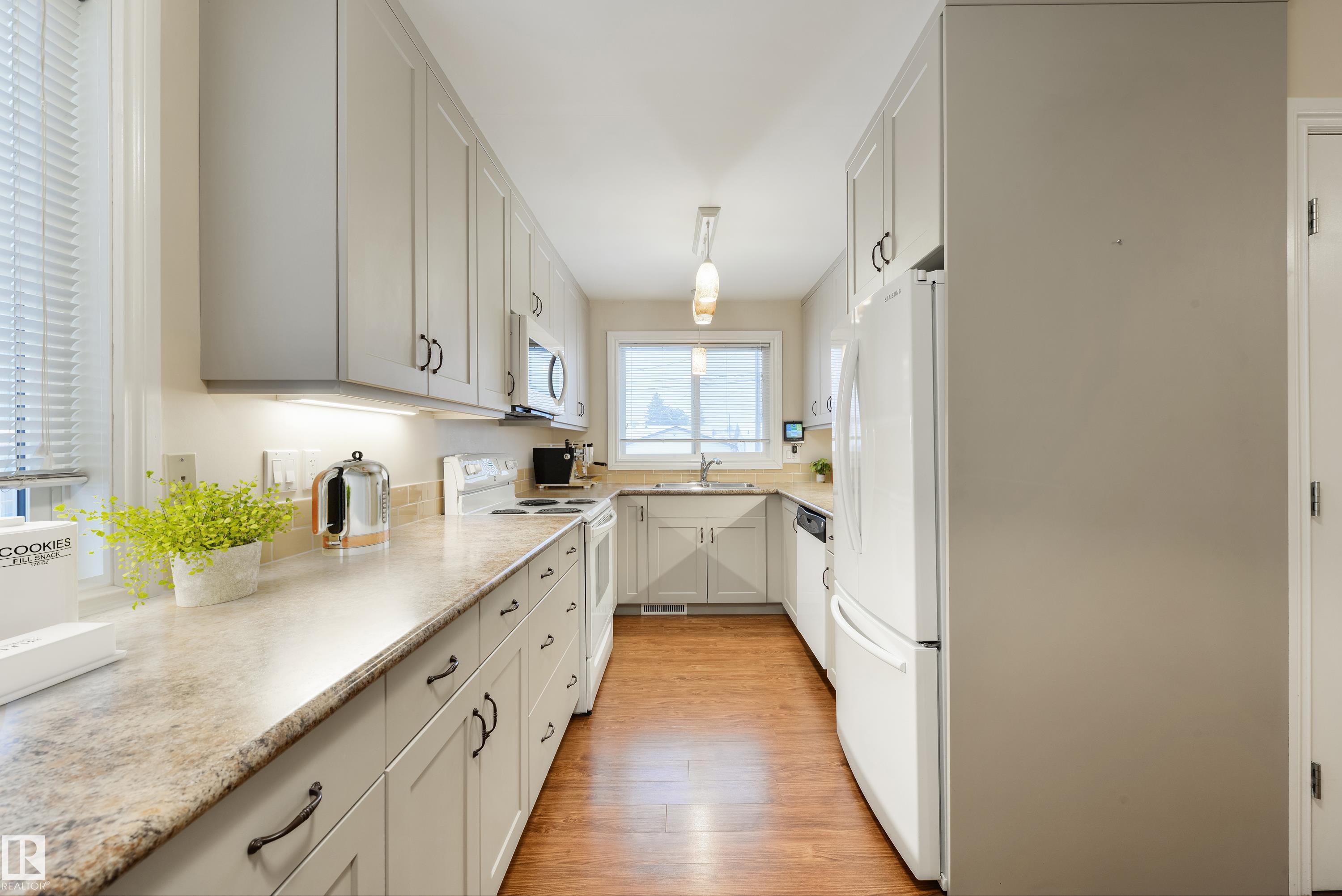 Offering over 2,000 sq. ft. of living space and located directly across from Braids Park, this home has everything a growing family needs. The large livingroom window allows lots of natural light and a great view of the toboggan hill and soccer field. 3 bedrooms and tastefully updated kitchen and bathroom are move-in ready for their new owner. The basement features a large family room, ideal for media and playroom. Another full bath and 4th bedroom make an ideal space for older children or guests. The second kitchen could be left as-is or converted into a 5th bedroom. A large lot (14mx37m) means a large backyard, with lots of room for kids, pets and gardening! A gate at the back allows for easy trailer parking. The single garage with large driveway provides ample parking and great storage for tools and toys. MORE UPDATES: brand new bedroom carpet, furnace (2018), shingles (2016). Ideally located just two blocks from Belvedere School, and great access to shopping, a true 10/10!