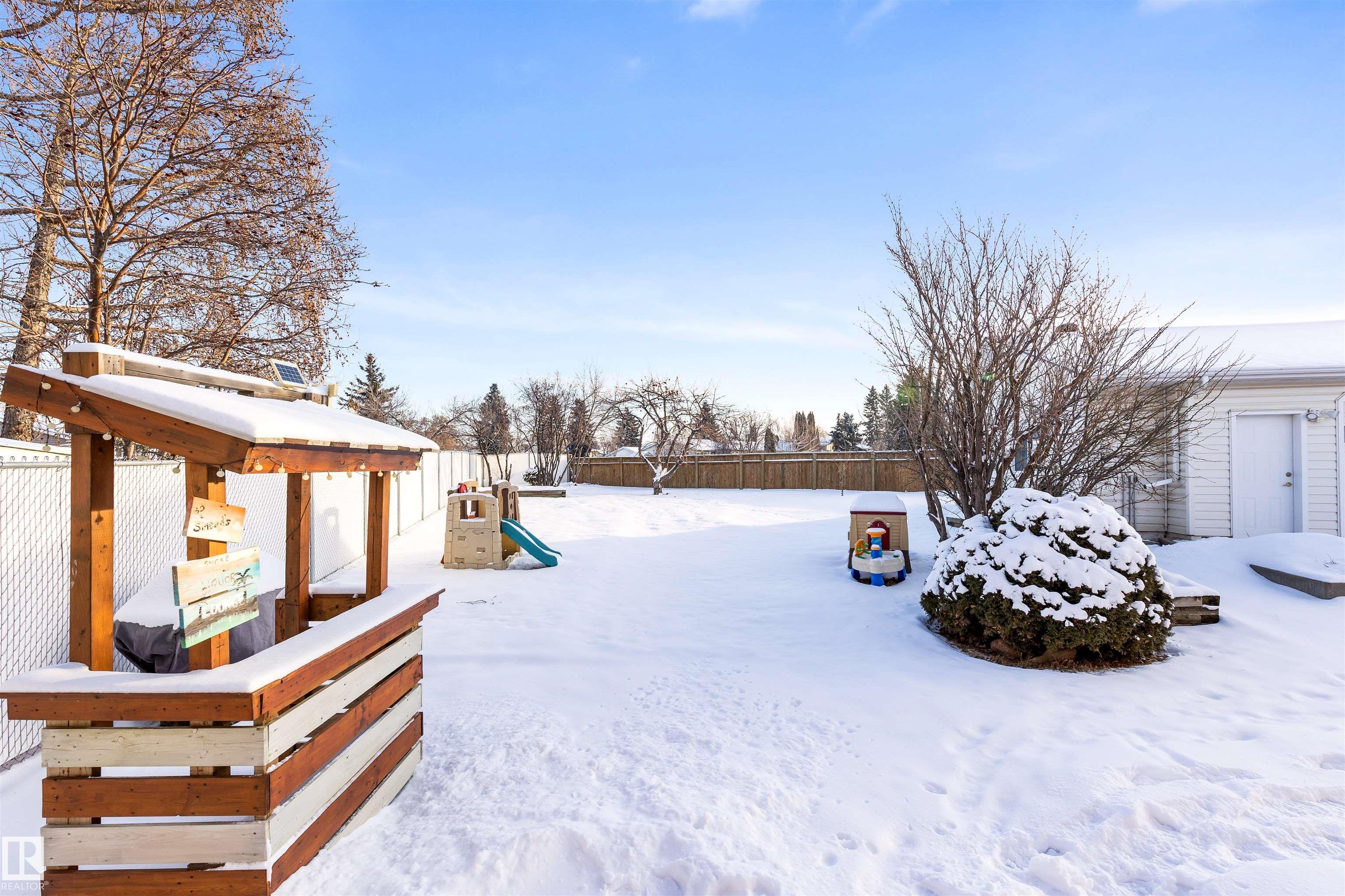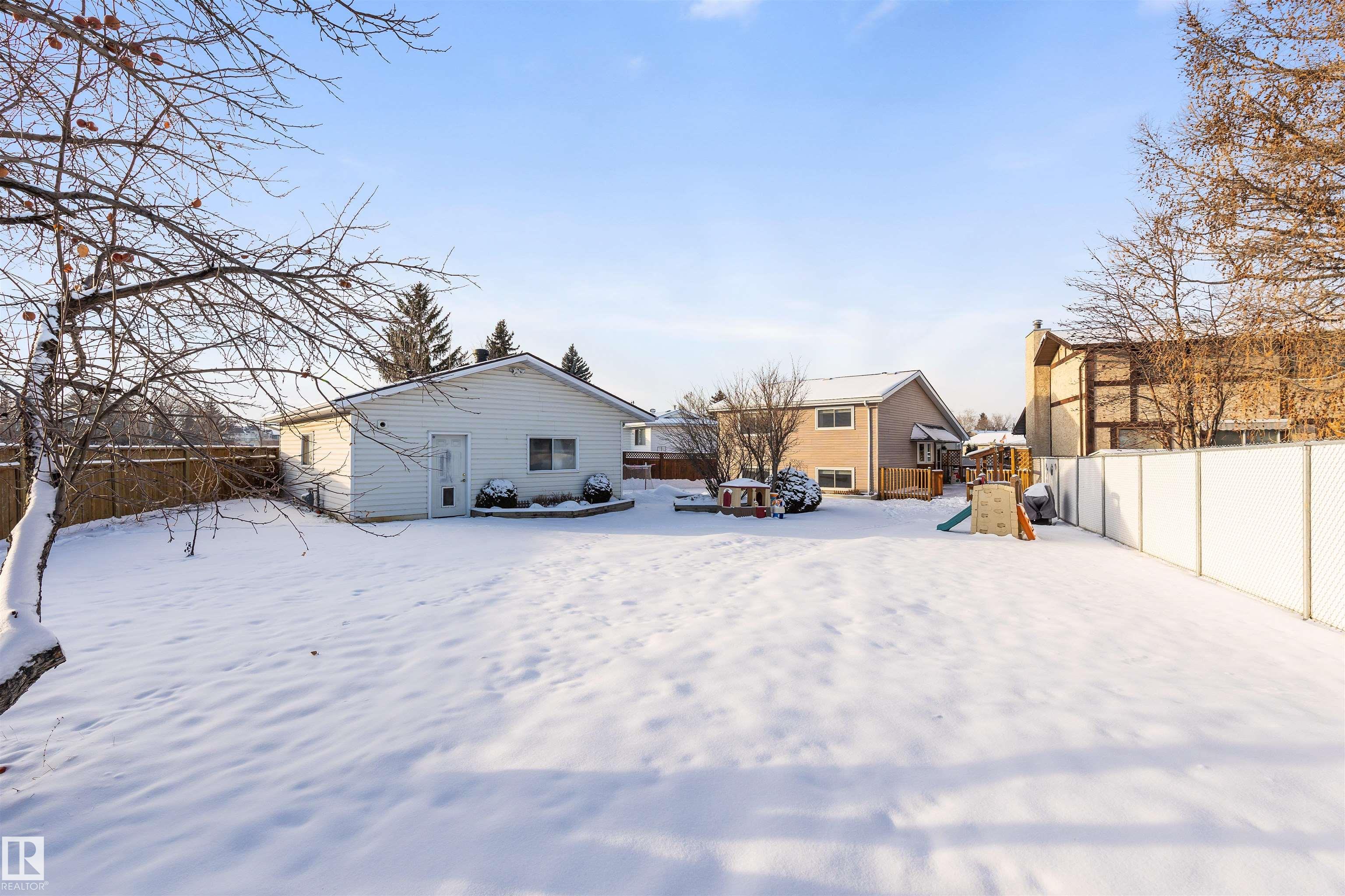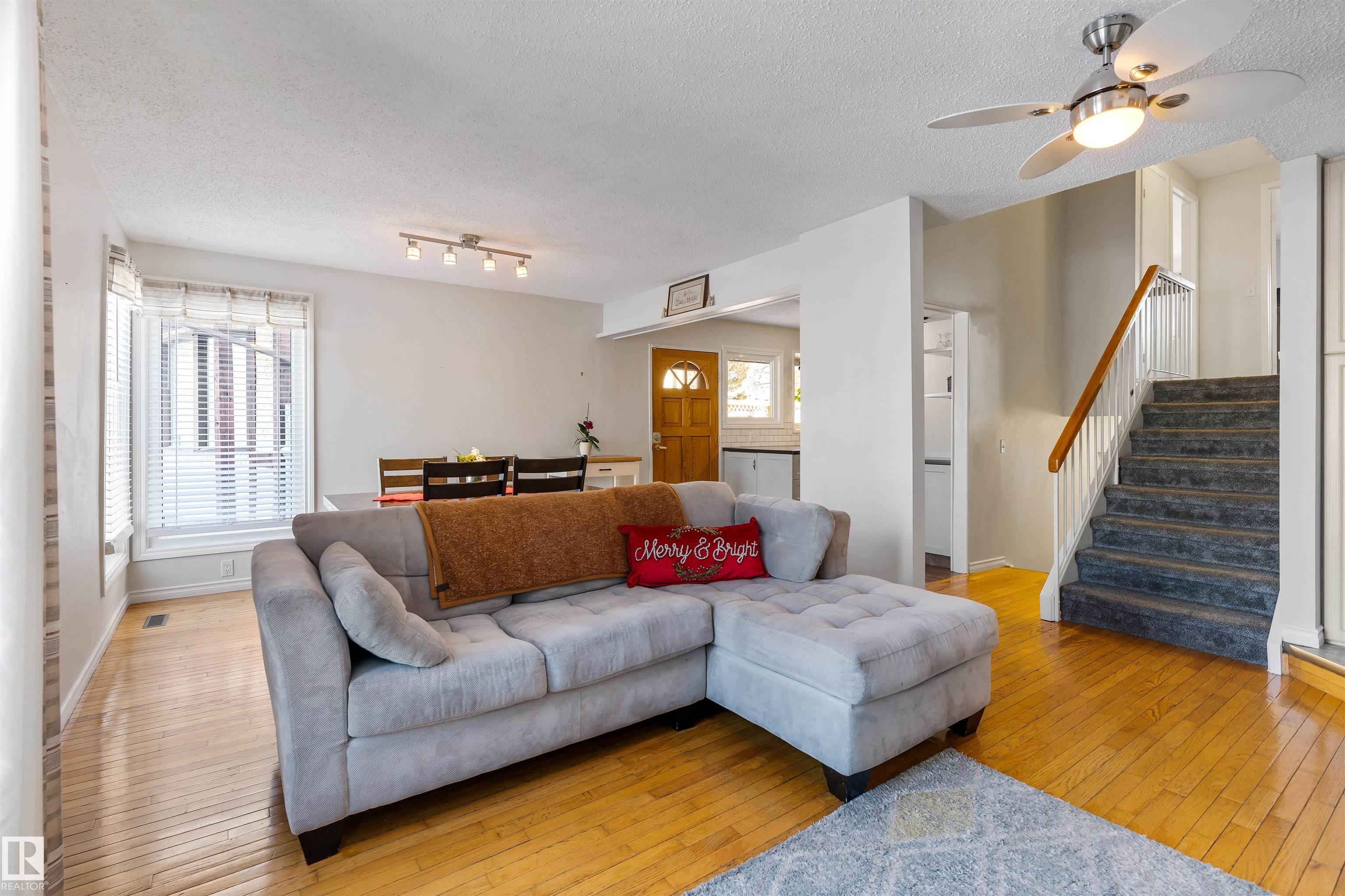 Exceptional value! This 4-Level Split in Bannerman offers 1,800+ SqFt of living space with 4 bedrooms & 2 full baths on a massive pie lot! Open-concept living/dining with hardwood floors & upgraded lighting. Kitchen features refaced doors (2020), concrete countertops, stainless steel appliances, NEW stove & fridge (2024), dishwasher (2018), plus views of your NEW deck with railing & privacy fence (2024). Upper level: 2 large bedrooms incl. the primary with bamboo hardwood & upgraded 4pc bath. Lower levels: 2 more bedrooms, upgraded 3pc bath, renovated basement (2024), family room a separate laundry room (washer/dryer 2023). Massive 24x27 heated garage (roof 2017) which can fit 3 vehicles. Other upgrades: TRIPLE PANE WINDOWS, siding/soffits, AC (2021), furnace (2019), HWT, shingles, new chain-link fence (2024), driveway leveled/sealed (2024), landscaped backyard (2024), closets (2021 & 2024), new small window (2017). Quick access to Henday & Yellowhead. Don?t miss this one!
