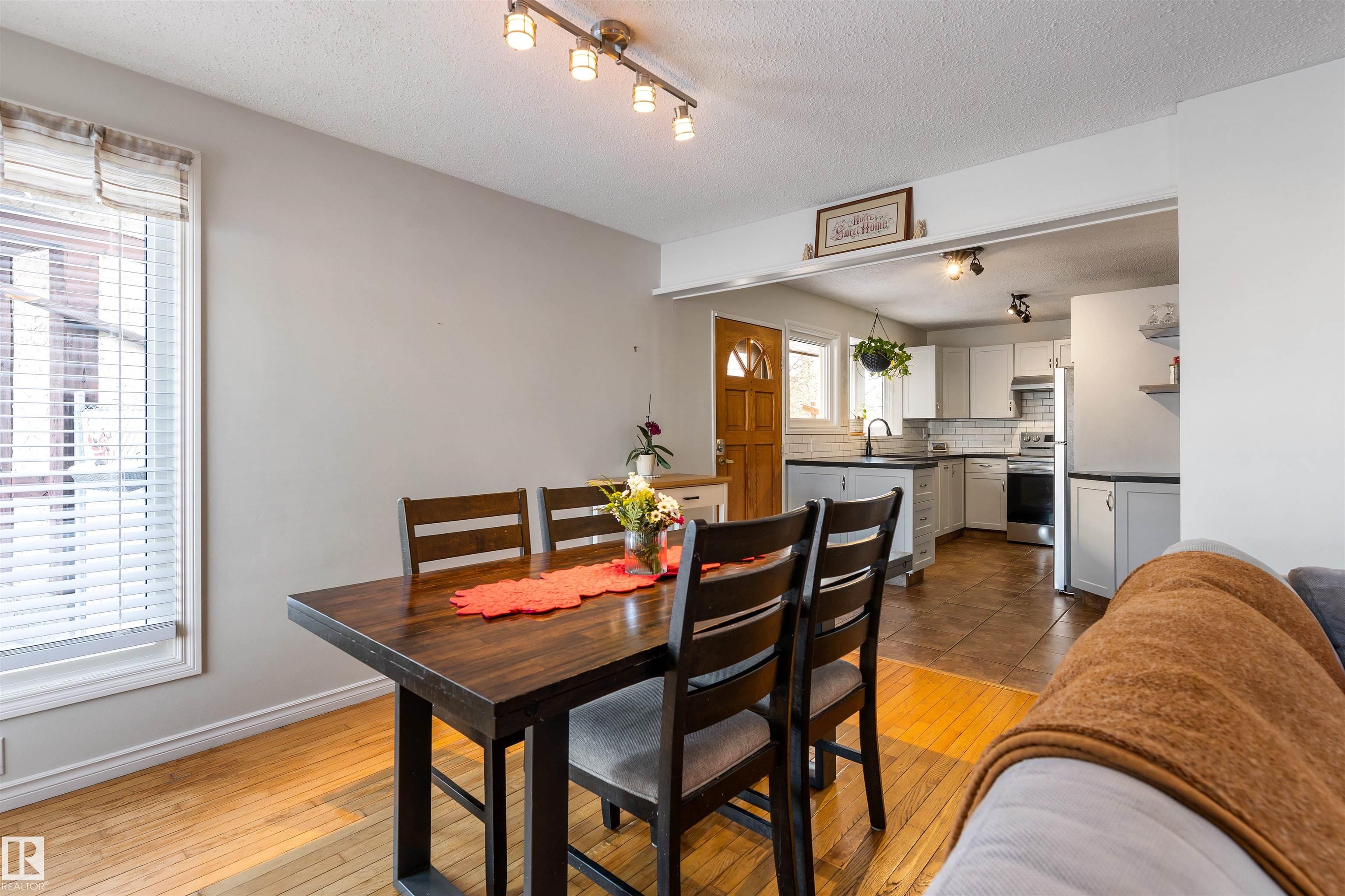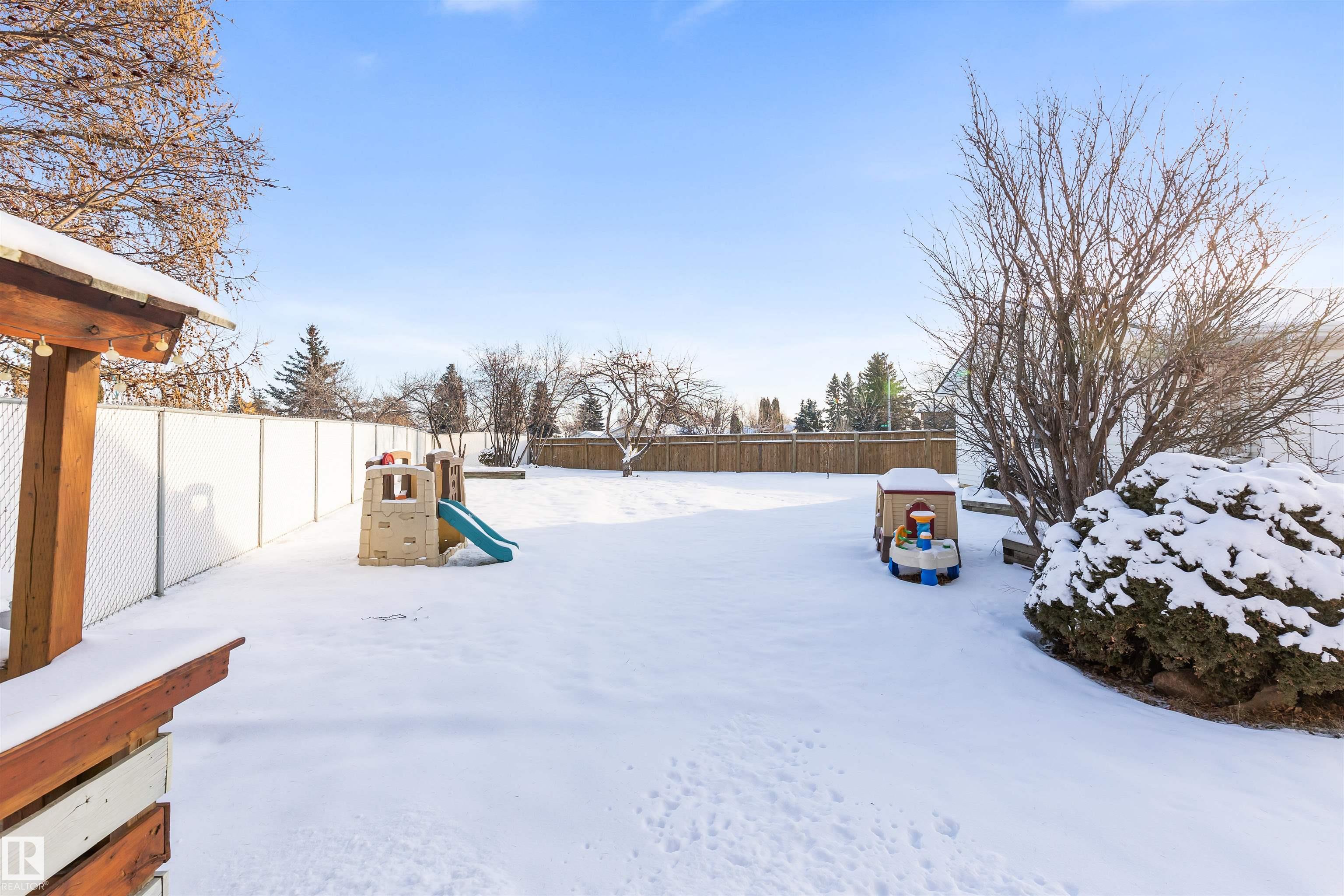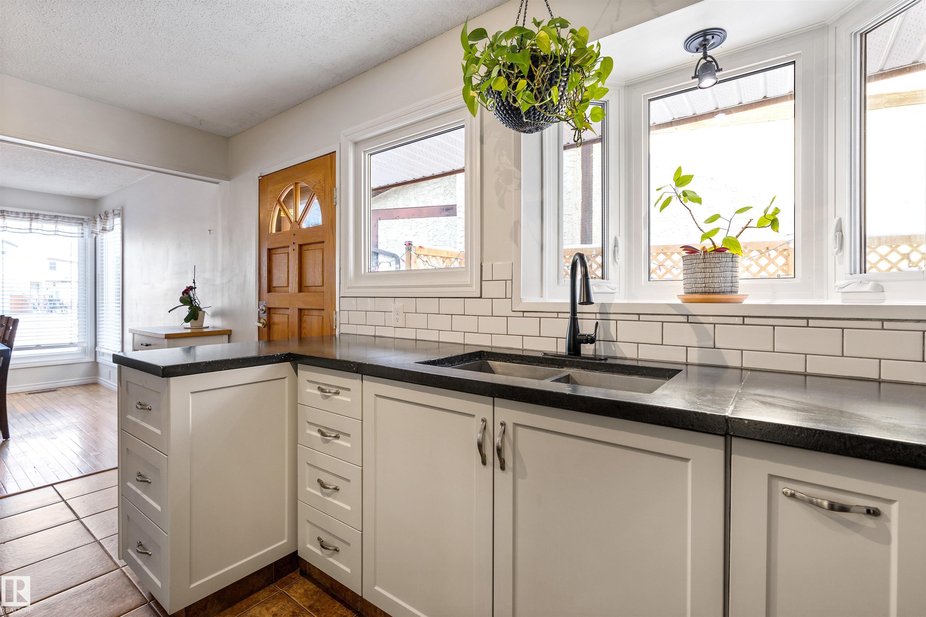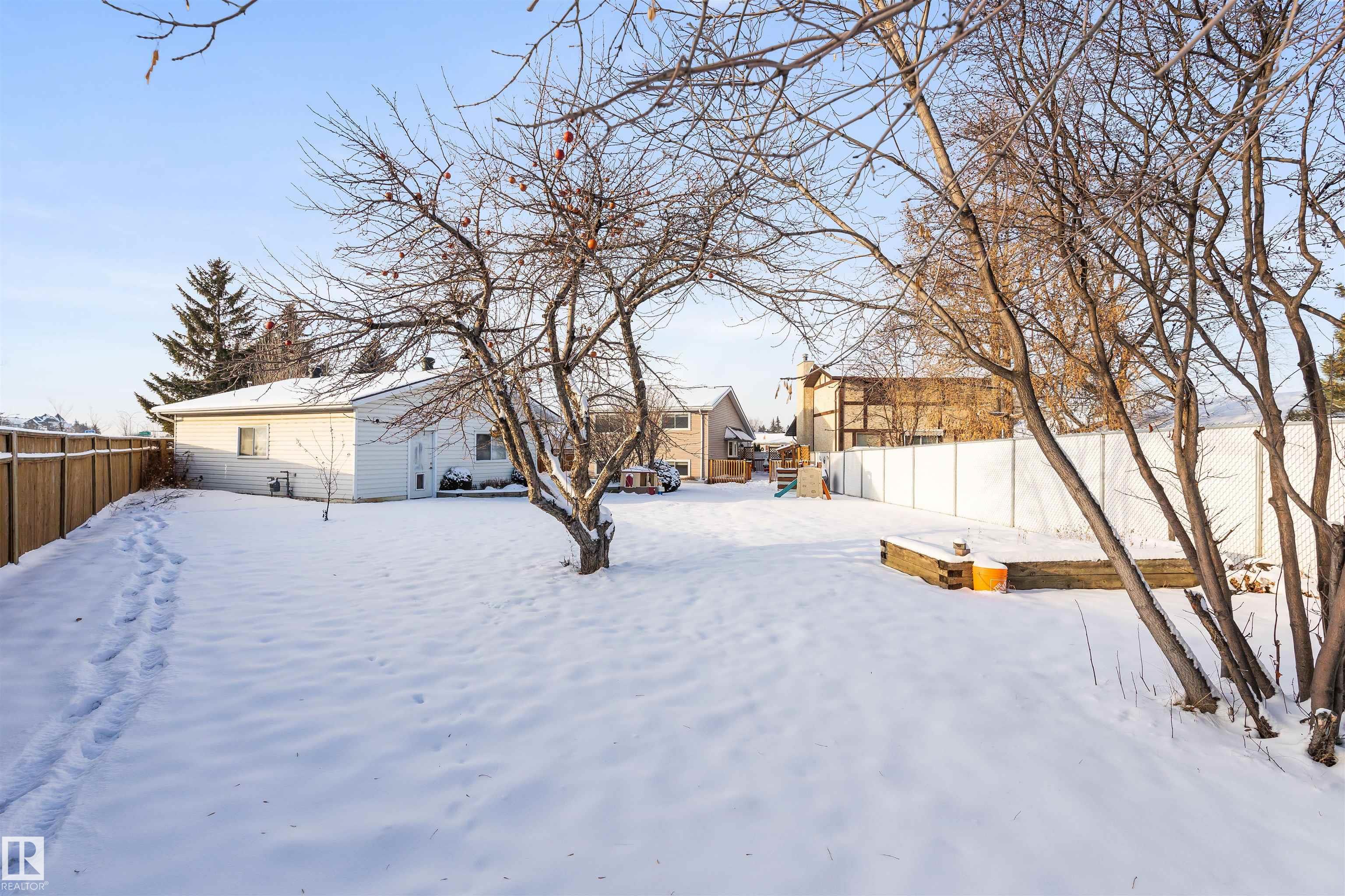 Exceptional value! This 4-Level Split in Bannerman offers 1,800+ SqFt of living space with 4 bedrooms & 2 full baths on a massive pie lot! Open-concept living/dining with hardwood floors & upgraded lighting. Kitchen features refaced doors (2020), concrete countertops, stainless steel appliances, NEW stove & fridge (2024), dishwasher (2018), plus views of your NEW deck with railing & privacy fence (2024). Upper level: 2 large bedrooms incl. the primary with bamboo hardwood & upgraded 4pc bath. Lower levels: 2 more bedrooms, upgraded 3pc bath, renovated basement (2024), family room a separate laundry room (washer/dryer 2023). Massive 24x27 heated garage (roof 2017) which can fit 3 vehicles. Other upgrades: TRIPLE PANE WINDOWS, siding/soffits, AC (2021), furnace (2019), HWT, shingles, new chain-link fence (2024), driveway leveled/sealed (2024), landscaped backyard (2024), closets (2021 & 2024), new small window (2017). Quick access to Henday & Yellowhead. Don?t miss this one!