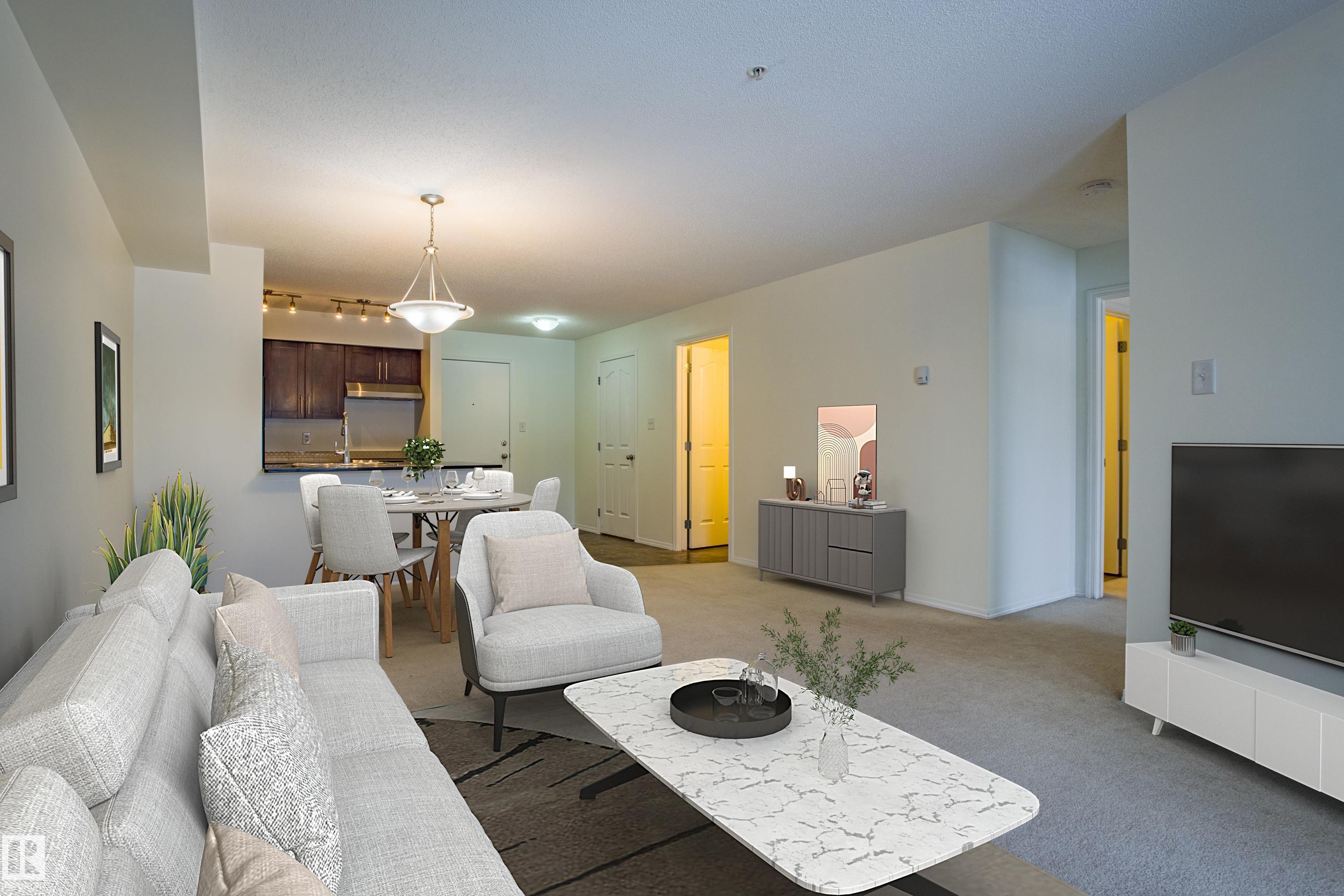 Welcome to 222 Elements at McConachie II & this Charming 2nd Floor 2 BED, 2 BATH Condo boasting nearly 775ft2 of Living Space. This home is Perfect for Investors, Professionals, or 1st time buyers! Live your best life in this INVITING & OPEN floorplan, thoughtfully designed for comfort & convenience. 2 Large Bedrooms and 2 FULL baths. Enjoy the convenience of INSUITE laundry & Built in storage . The Modern Kitchen allows you the space to COOK & ENTERTAIN in style w/dark cabinets, granite countertops, a double sink & sleek appliances, all enhanced by elegant, tiled flooring. Large windows provide plenty of natural light, creating a warm & cheerful atmosphere. Convenient Surface Parking Stall is visible right from your unit for added Safety and Convenience! Close to schools & shopping, with easy access to Henday. This pet-friendly, WELL managed building offers easy access to transit, shopping centres, parks and all amenities. LOW Condo Fees include Heat and Water too! Some pics are Virtually Staged!