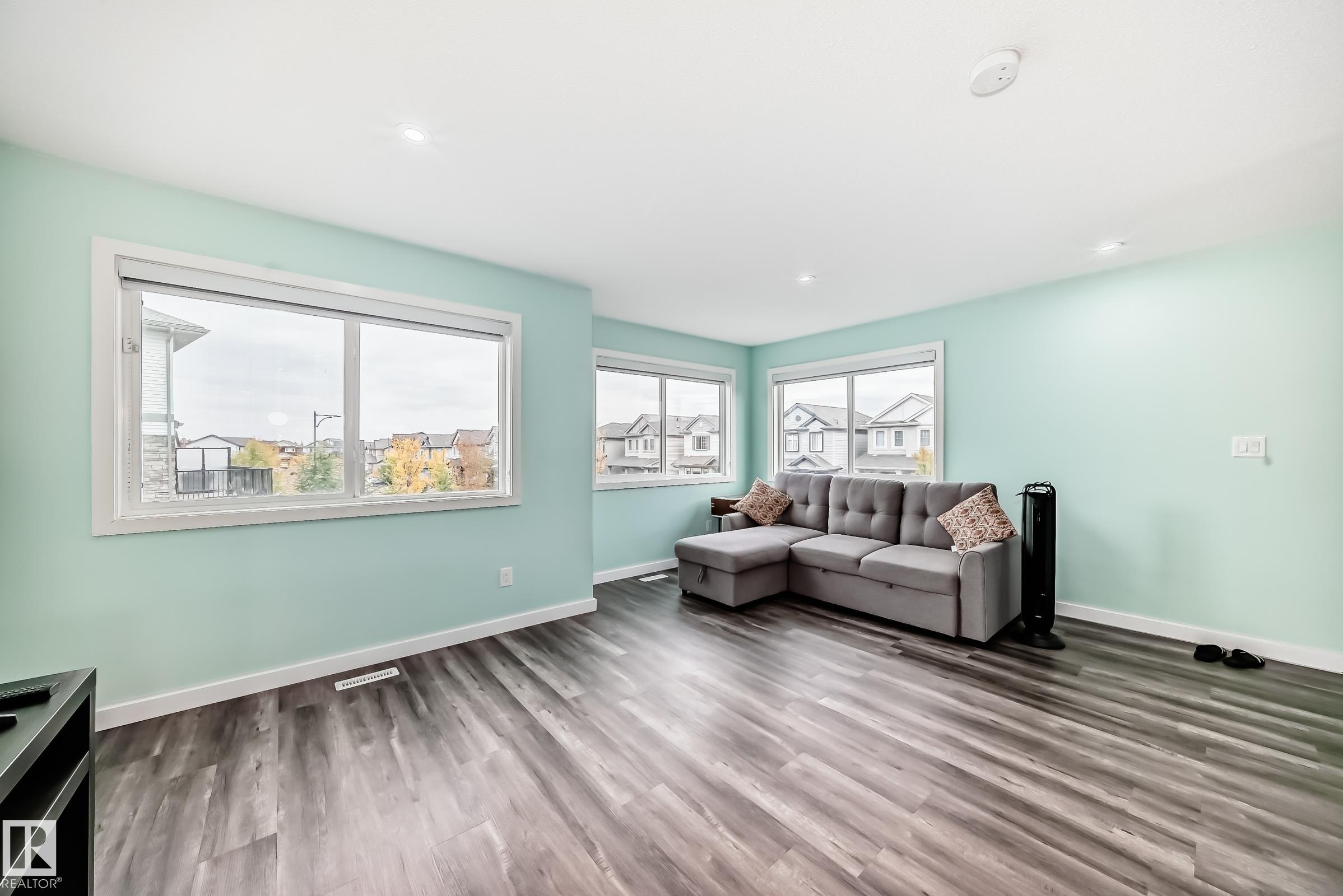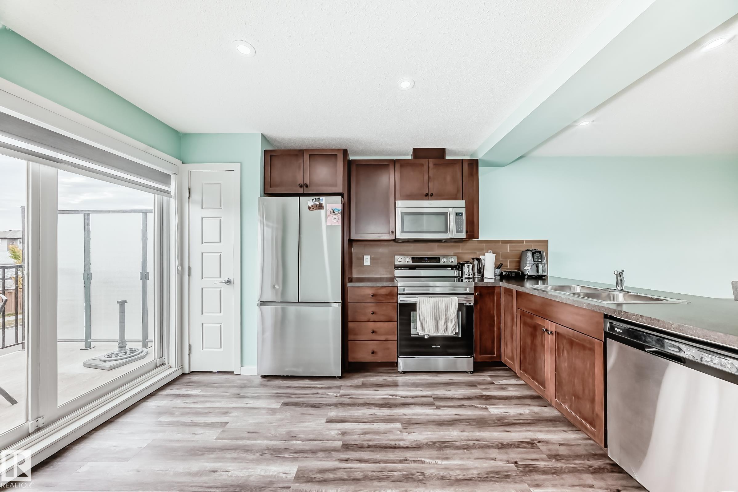 LOCATION ,LOCATION,LOCATION ! Newly renovated townhome features vinyl and carpet flooring throughout,along with fresh interior paint,creating a bright and modren look. This CORNER unit features PLENTY OF LARGE WINDOWS that fill the home with natural SUNLIGHT. The entry level features a versatile den/home office with access to a covered patio, along with an attached double garage for secure parking and storage. Upstairs, an open-concept main floor includes a bright living room, dining area, and a generous kitchen with direct access to a sunny balcony?perfect for spring and summer entertaining. A convenient 2-piece bathroom is also located on this level. The top floor offers a primary retreat with 4-piece ensuite, plus two additional bedrooms that share another full bathroom. Laundry is also located upstairs for added convenience. Located close to shopping, schools, public transit, and major commuting routes, this property offers a comfortable ,updated and practical lifestyle in desireable location.