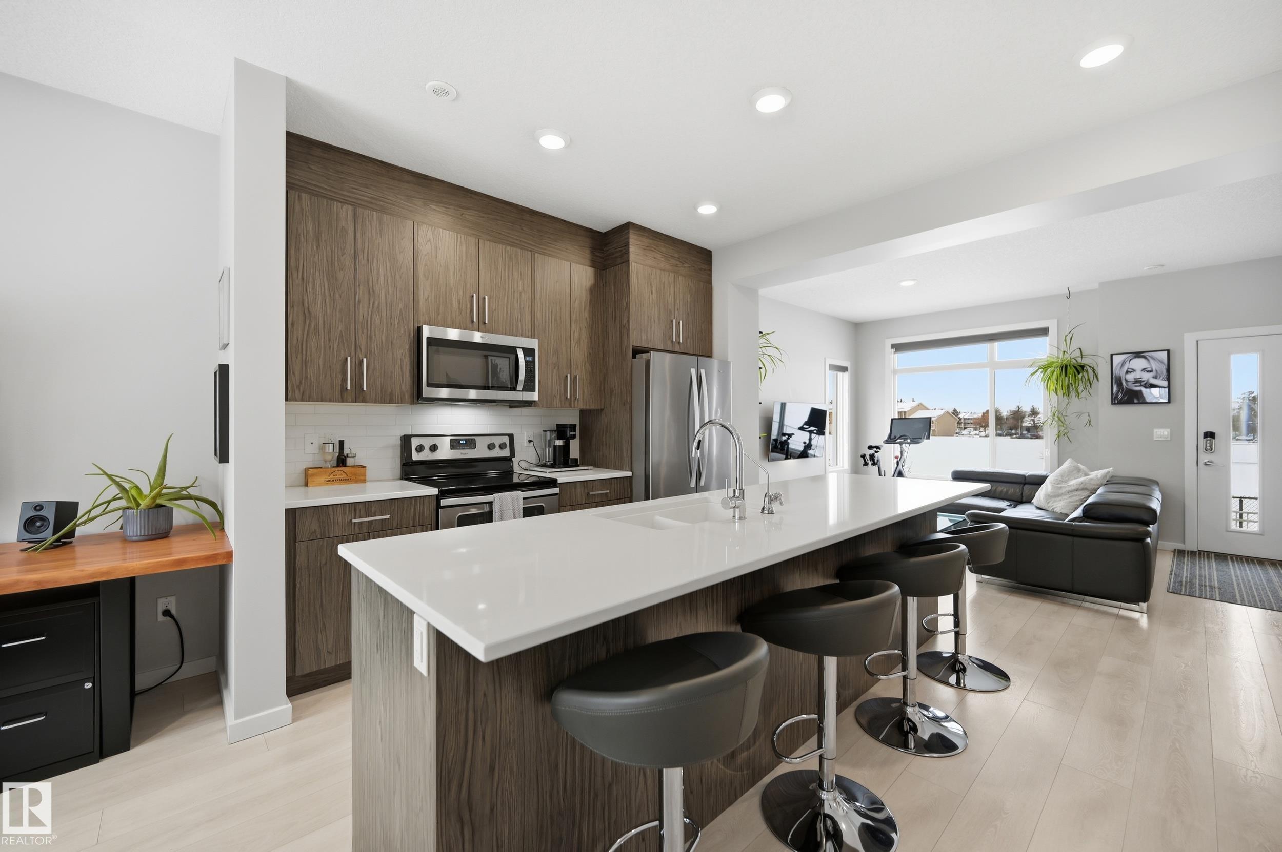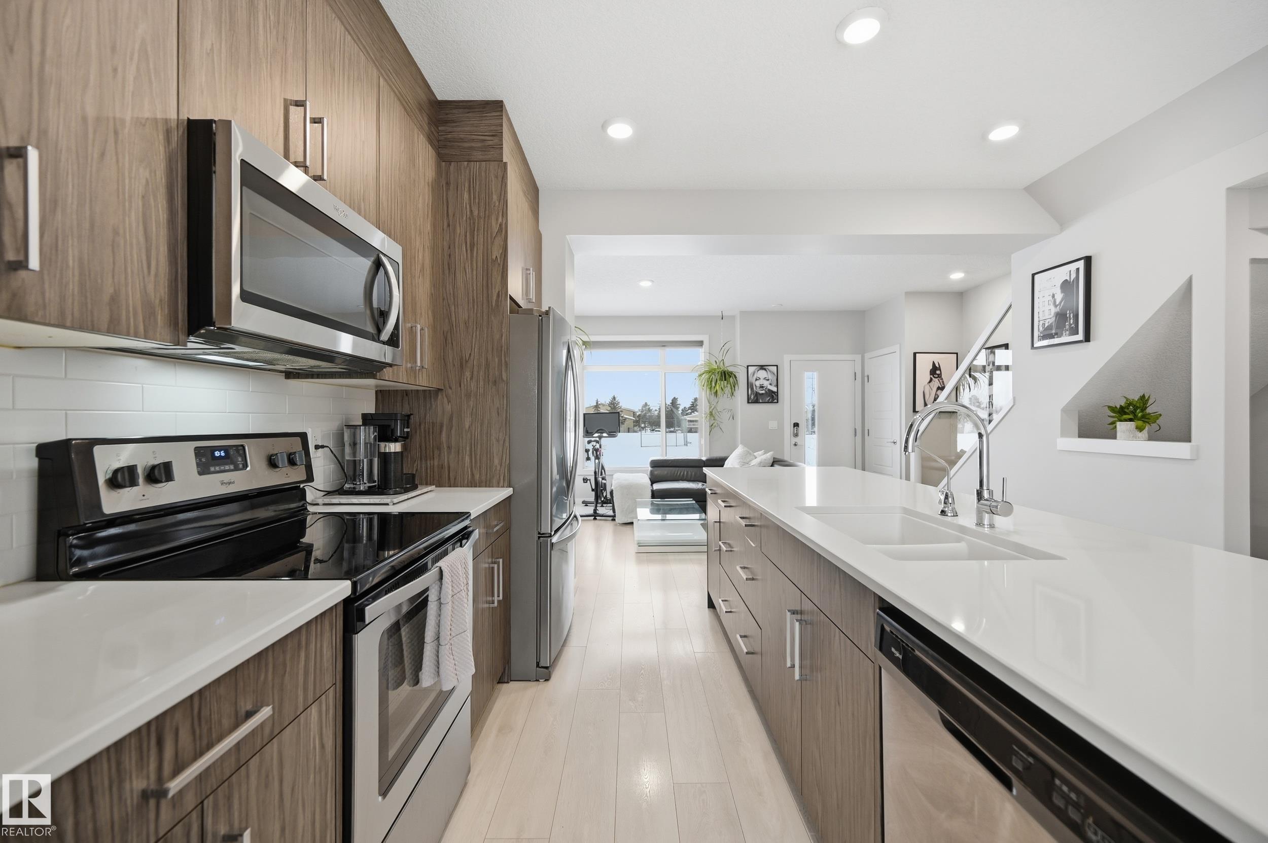 Welcome to this stylish corner-unit 3 bedroom townhouse built in 2018. Enjoy modern living in a quiet and convenient location. Facing an open field, this home enjoys added privacy and abundant natural light. The open-concept main floor features a bright living room, dining area, and a contemporary kitchen with stainless steel appliances, ample cabinetry, and dedicated pantry space. Upstairs, you?ll find three well-proportioned bedrooms, including a spacious primary suite with a walk-in closet and private ensuite, plus an additional 4-piece bathroom. Additional highlights include a main-floor 2-piece bath and a double attached garage. Ideally located within walking distance to Century Park LRT, transit, schools, shopping, and parks, with easy access to major roadways