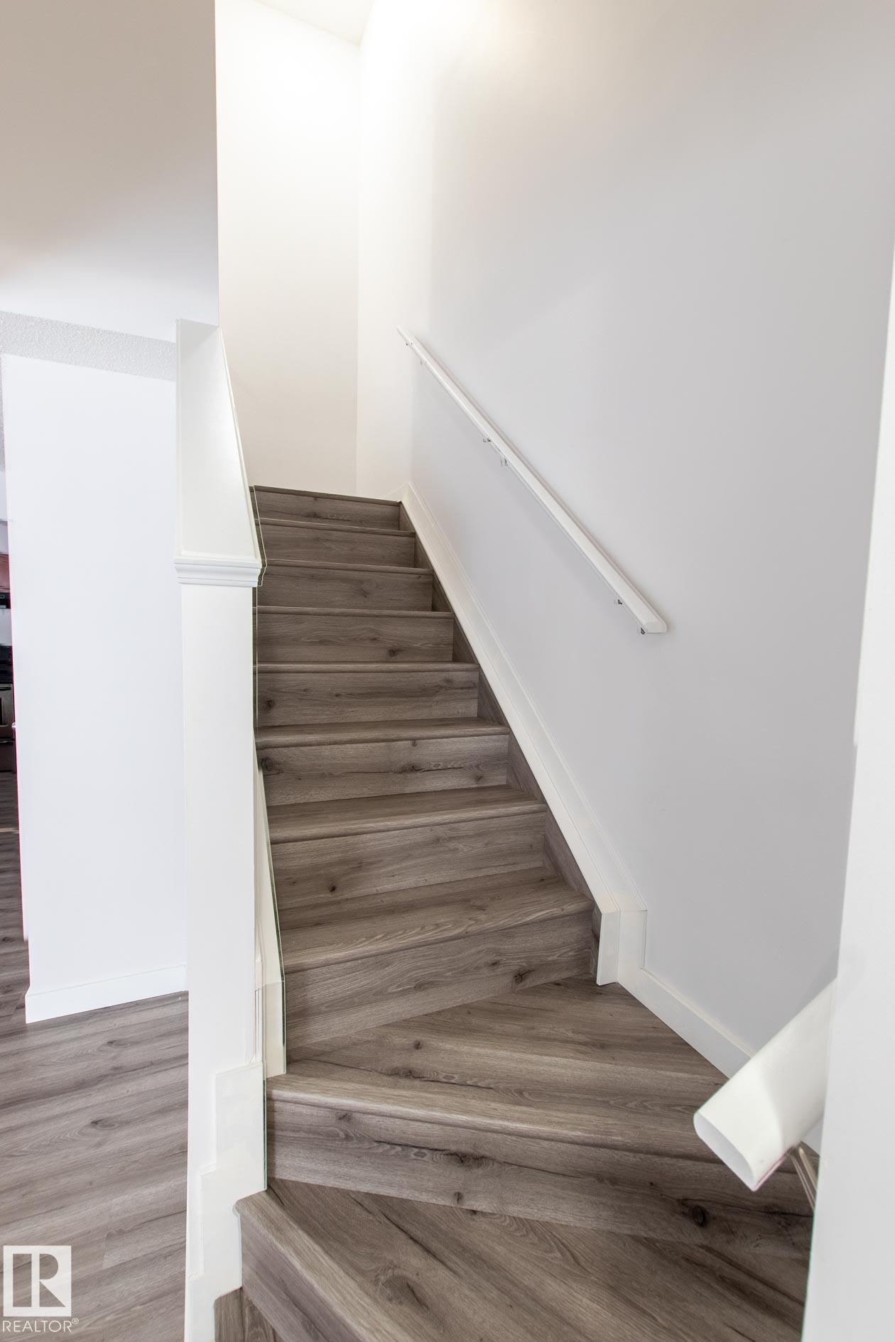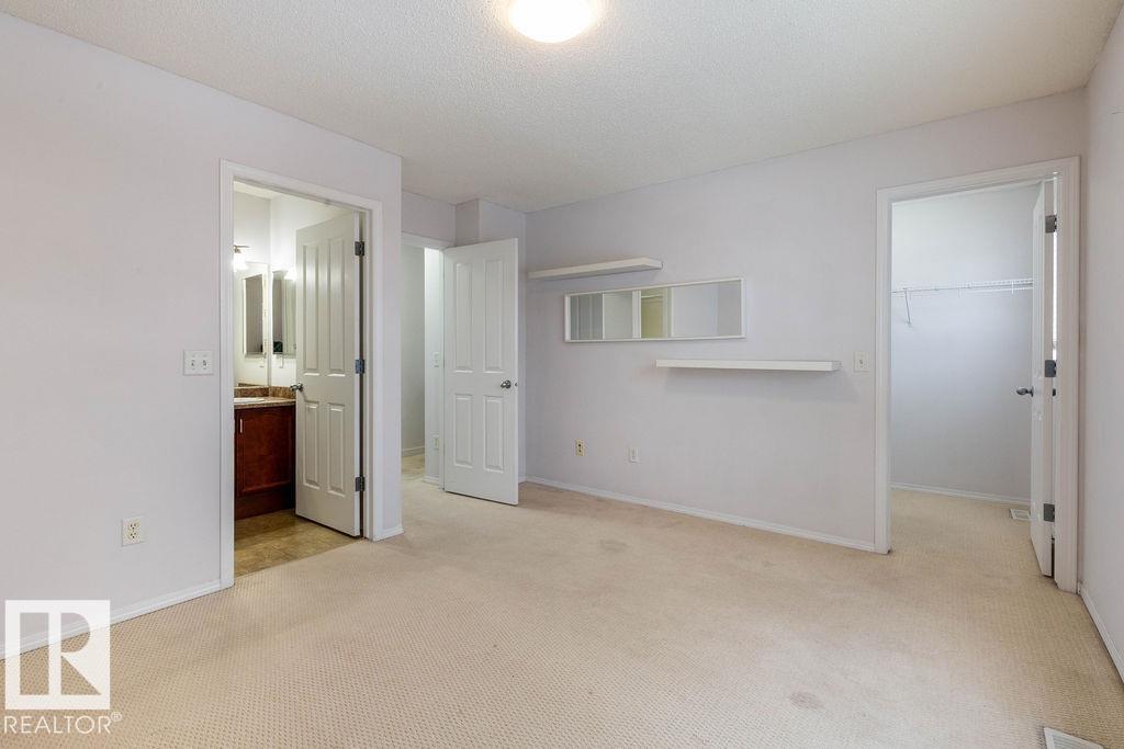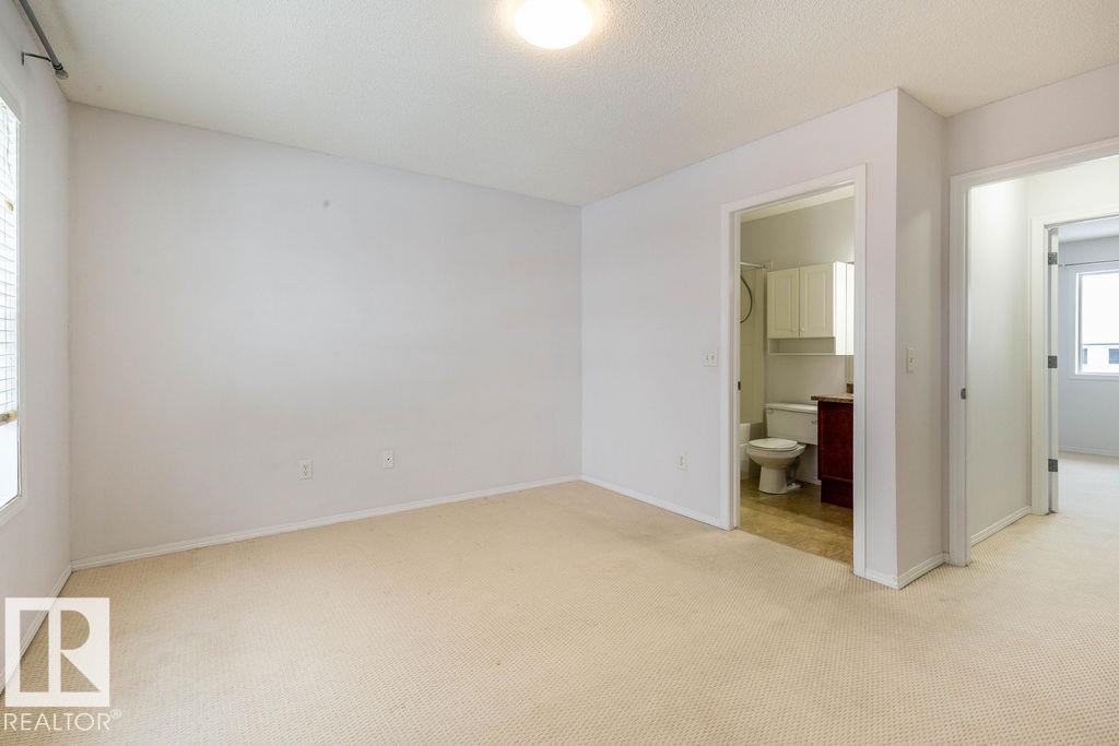 This bright and beautifully maintained 2-bedroom half duplex in The Hamptons was thoughtfully designed with two private ensuites plus a convenient 2-piece powder room on the main floor. Both bedrooms feature walk-in closets, including a spacious primary closet with its own window. The open-concept main floor offers new flooring, updated lighting, and an abundance of natural light throughout. The upper floor is freshly painted and the washer is new. A generous entryway leads into the inviting living room, dining area, and well-appointed kitchen with stainless steel appliances, ample cabinetry, and plenty of counter space. Step out from the kitchen thru a secure & stylish screen door onto a lovely deck with a retractable awning?perfect for relaxing or entertaining. The double detached garage is insulated and drywalled and the yard is fully landscaped and fenced. Ideally located close to parks, ponds, playgrounds, schools, and shopping, with easy access to the Henday and and Whitemud. Truly move-in ready!
