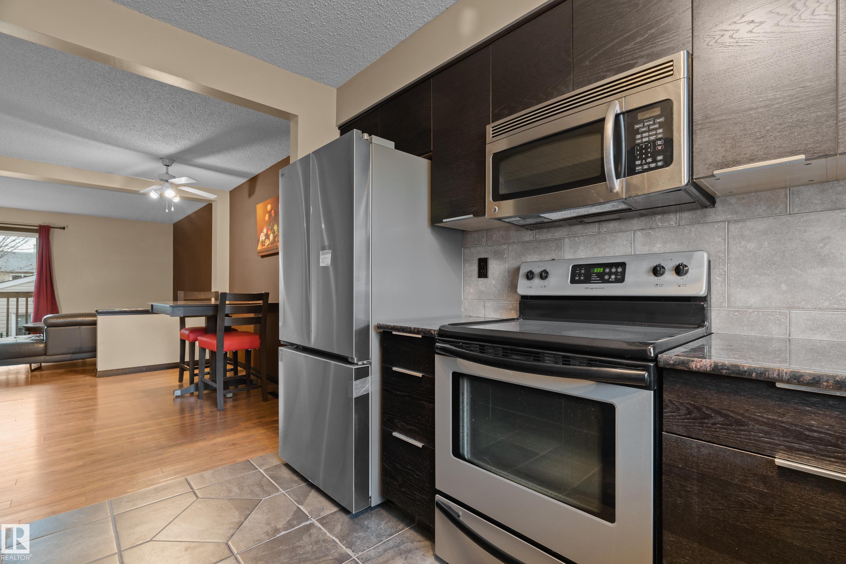 Welcome to this beautifully updated bi-level in Kiniski Gardens?offering incredible value! Perfect for first-time buyers or downsizers, this 2-bedroom home is move-in ready with thoughtful upgrades throughout. The main floor features a fully updated kitchen with espresso cabinetry, granite counters, a brand new stainless steel fridge, matching stainless steel appliances, and stunning tile work. Enjoy laminate flooring, a stylish half bath, and a cozy corner wood-burning fireplace. Step out to your deck and fully fenced backyard?great for relaxing or entertaining. Downstairs, you'll find two bright bedrooms, a full bathroom, and large bi-level windows for natural light. The oversized 24' x 14.5' garage is a great size. Located on a quiet street in a great community?this home checks all the boxes! The attic space has also been thoughtfully designed to increase storage space, perfect for storing away seasonal items! Upgrades include newer shingles, new carpet, and a new bathroom vanity!