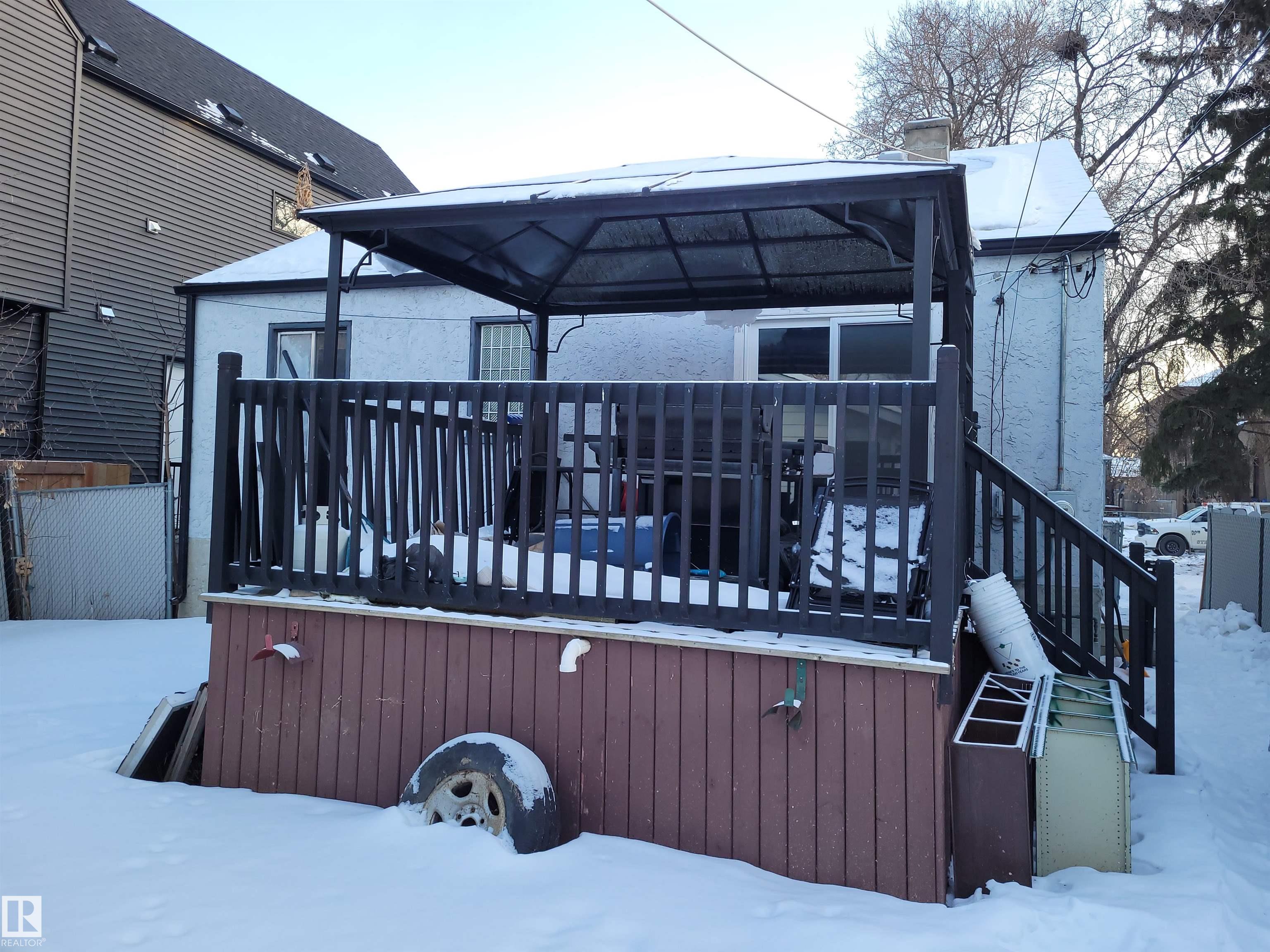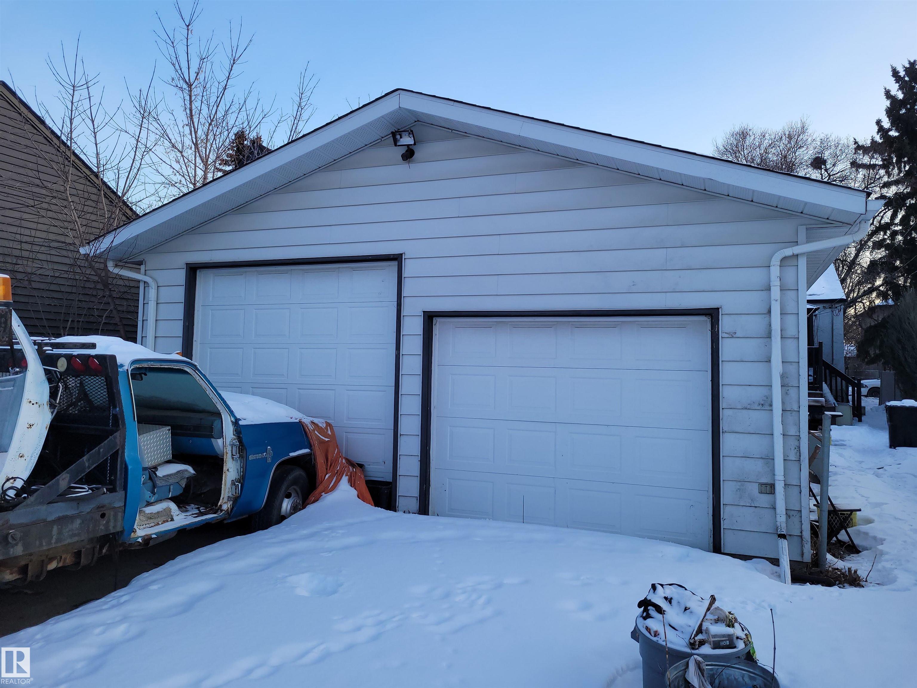 A diamond in the rough that needs work and is priced accordingly at lot value. Property is sold "as is, where is" with no warranties or representations. Prime location in King Edward Park, walking distance to schools, shopping, transit and the LRT. Excellent opportunity to do an infill or possibly renovate. The home features original hardwood and cove ceilings and a kitchen with a patio door leading to the deck. 2 good sized bedrooms and a bathroom complete the main floor. The separate entrance has tiled stairs leading to the large living room/dining room on the lower level. 2nd kitchen, a large bedroom, a full bathroom and laundry room are also on the lower level. The 24 x 26 ft. garage is heated, insulated, 220V and a 9 ft. door. Some upgrades have been completed over the years including a high efficiency furnace, sump, electric panel, and shingles
