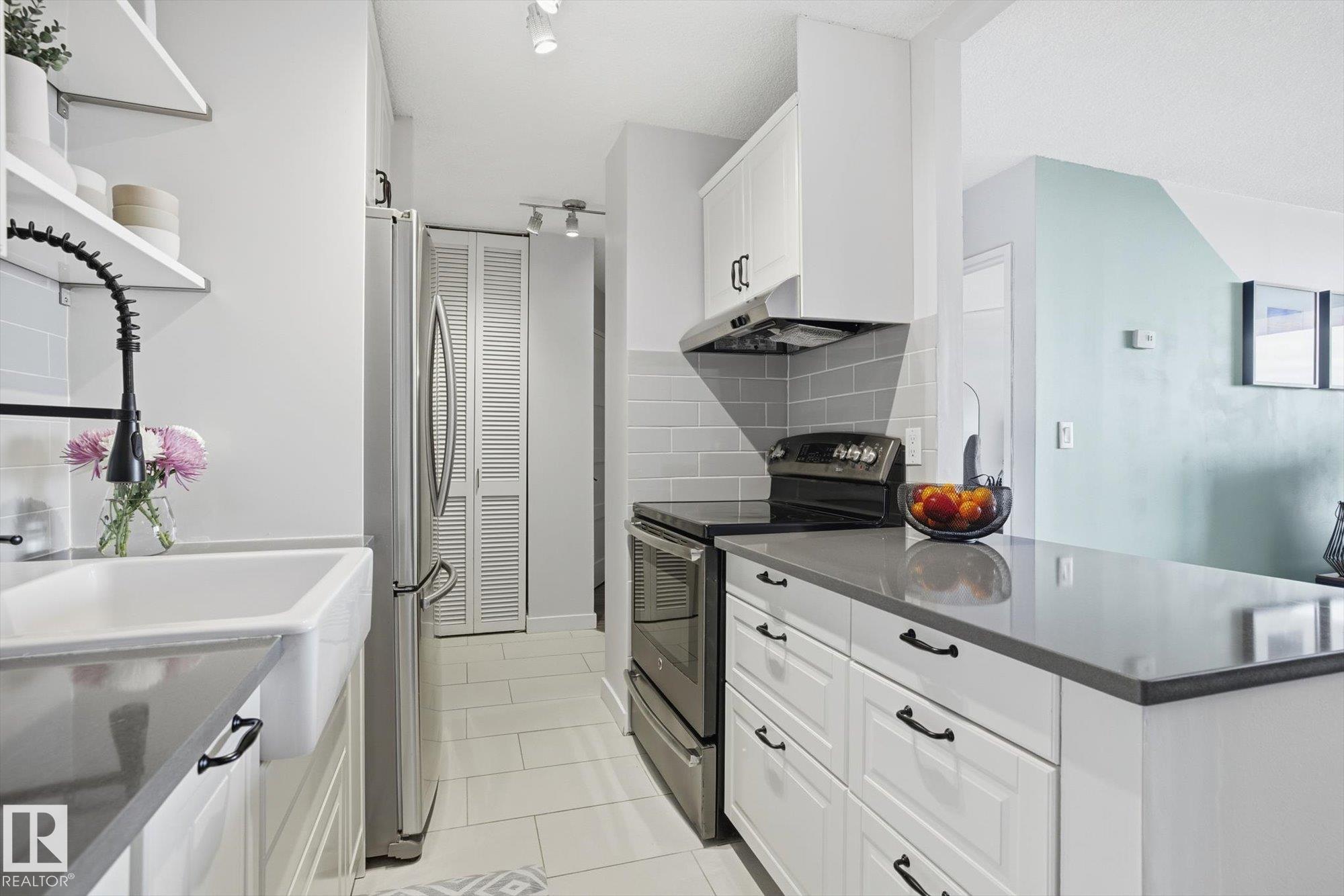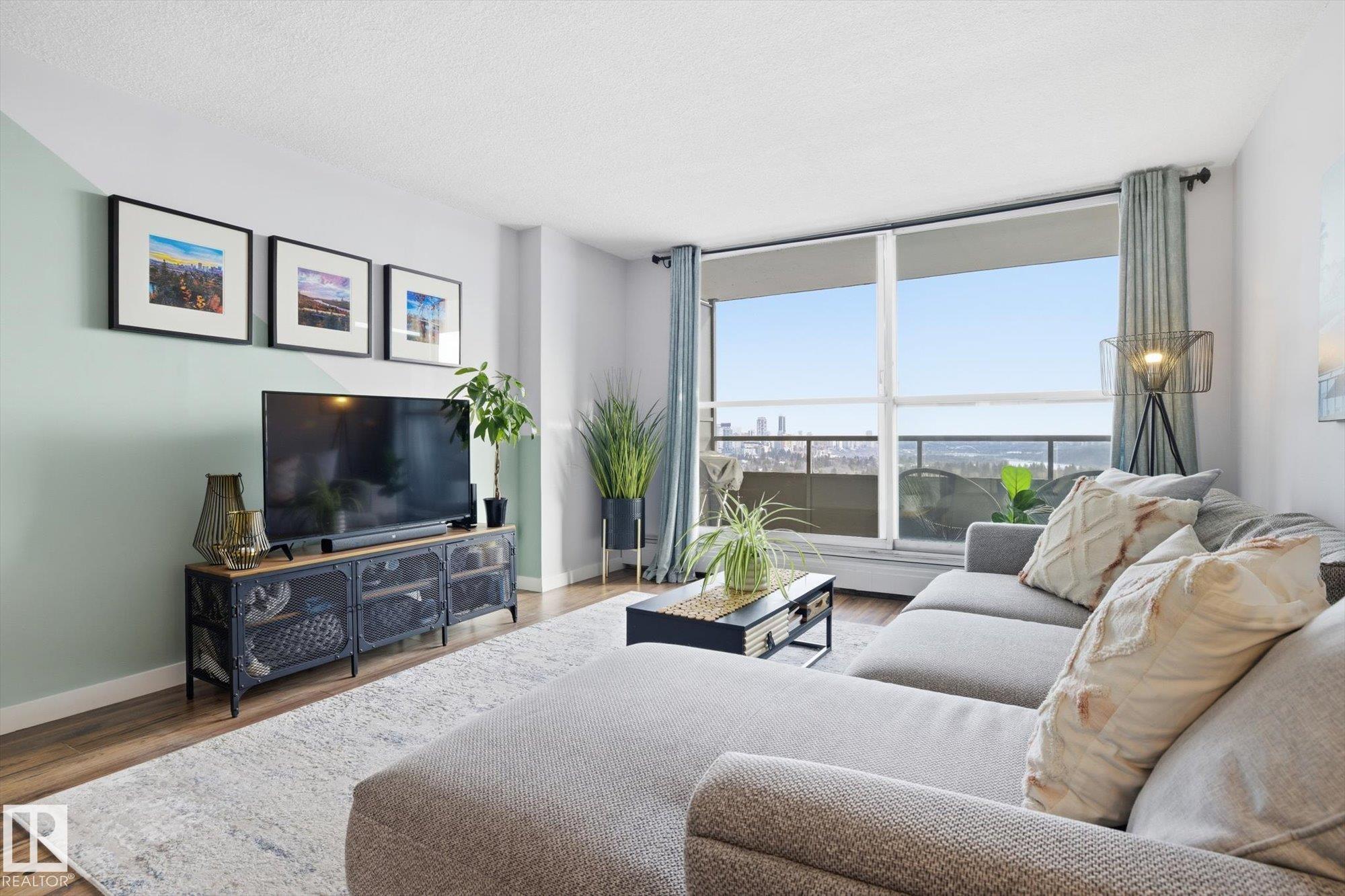 SOME OF THE BEST VIEWS IN EDMONTON! Welcome to this FULLY RENOVATED condo in the desirable neighborhood of Glenora. Featuring a bright white kitchen with ample cabinetry, an island, and dining area, this unit offers both style and functionality. Enjoy STUNNING downtown and river valley views from the private balcony, perfect for relaxing. The building offers excellent amenities including an exercise room, swimming pool, sauna, and social room. One heated underground parking stall is included as well as ALL utilities. Close to shopping, transit, river valley trails, and all amenities?an ideal opportunity for comfortable urban living in a prime location.