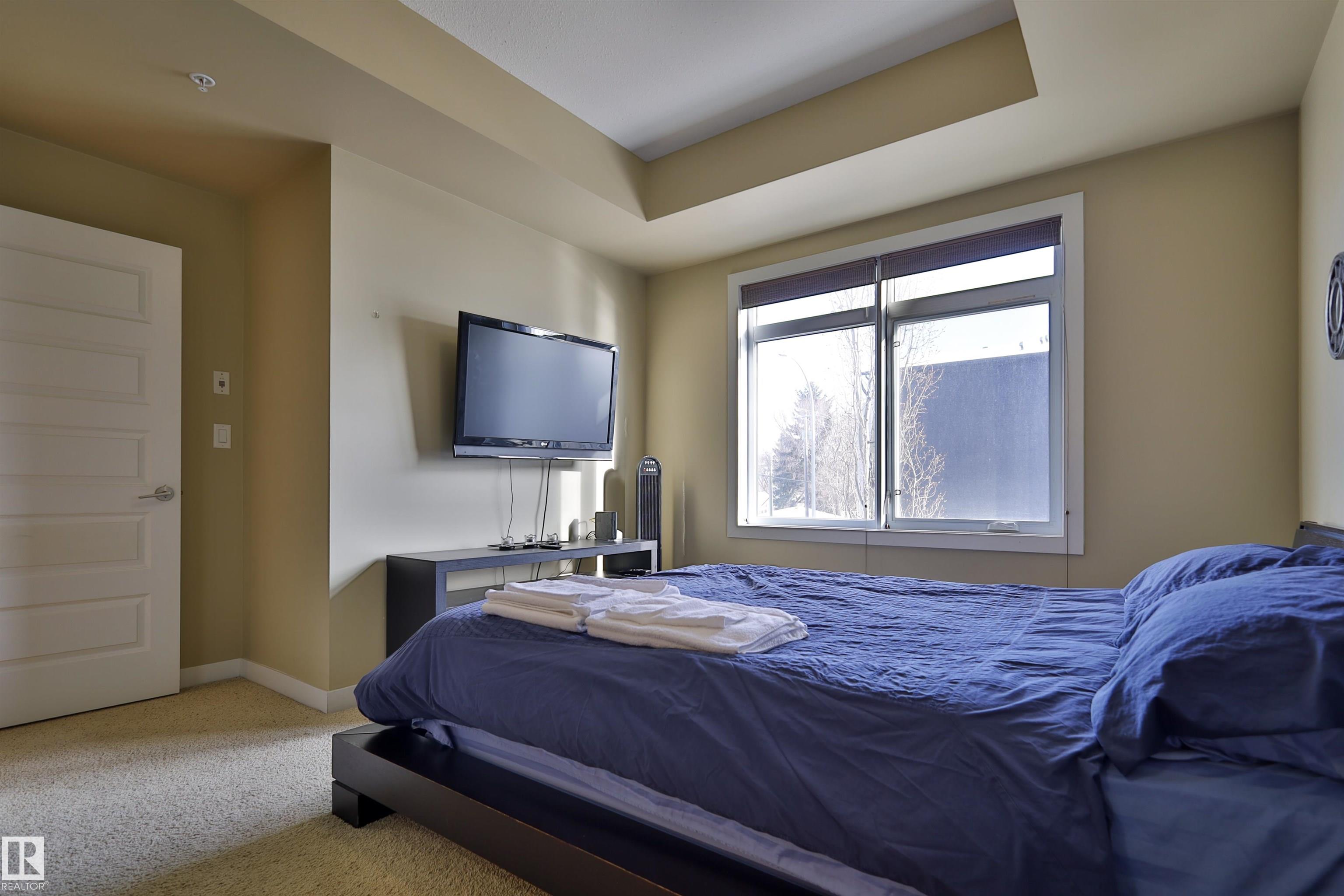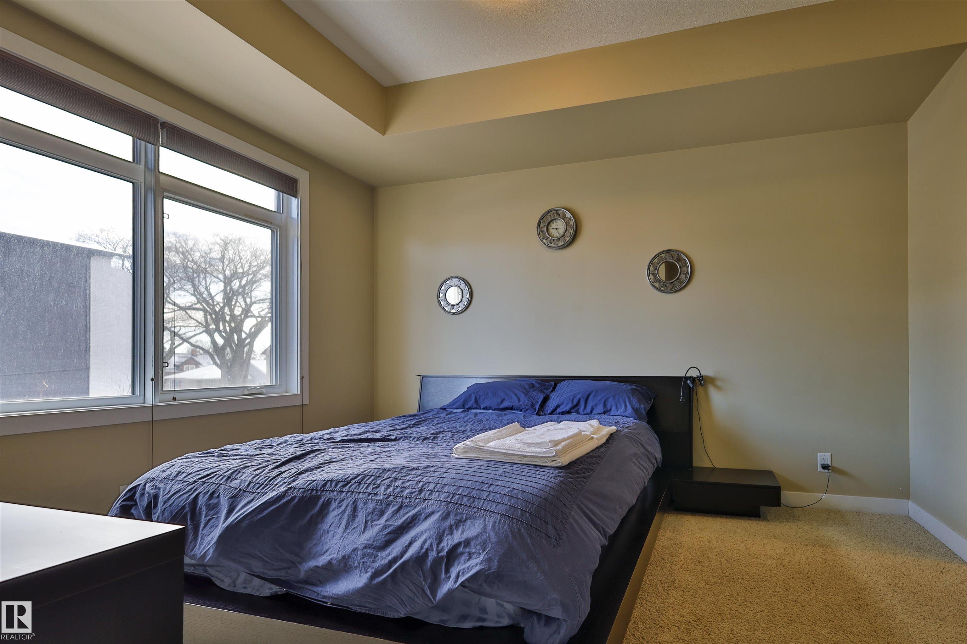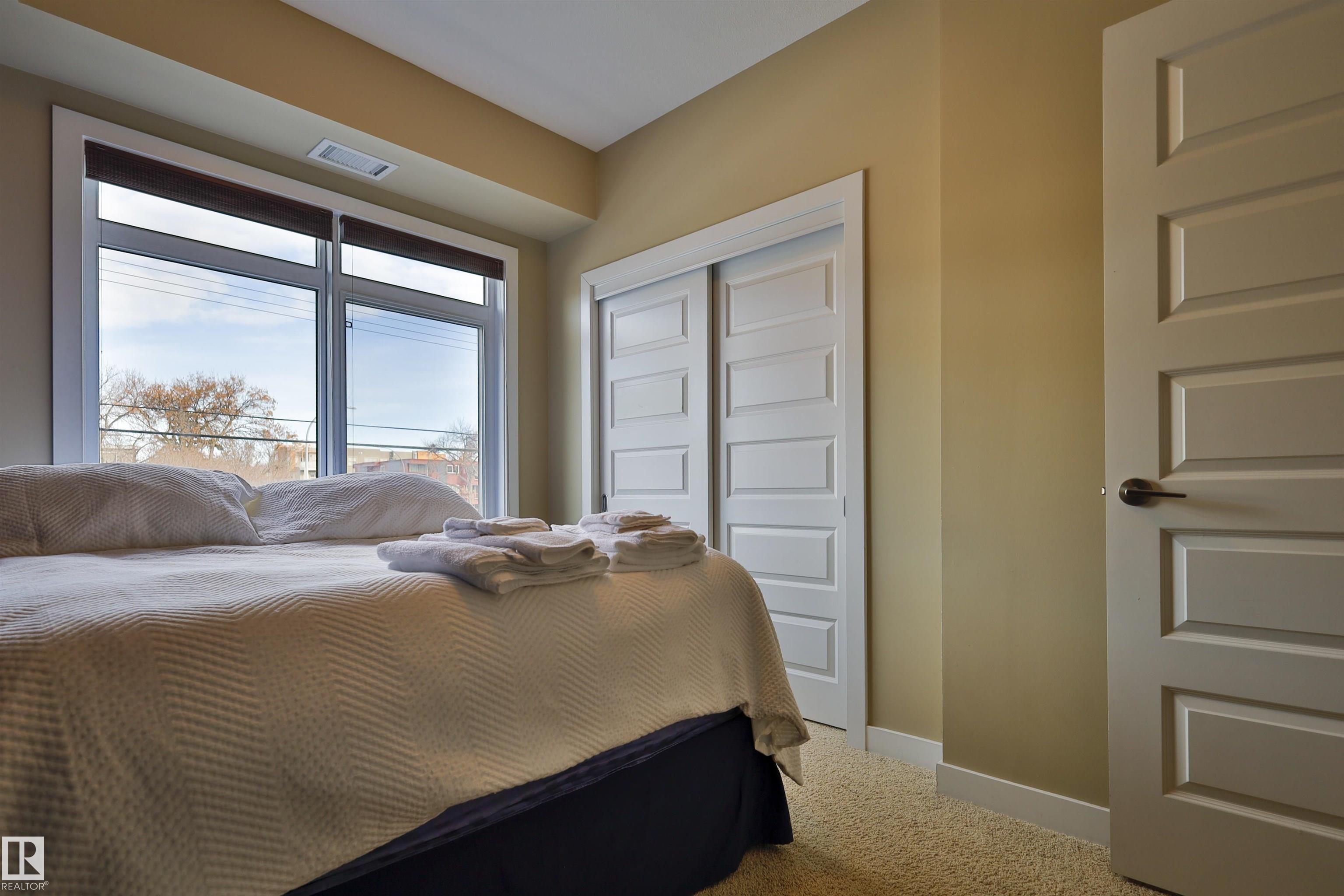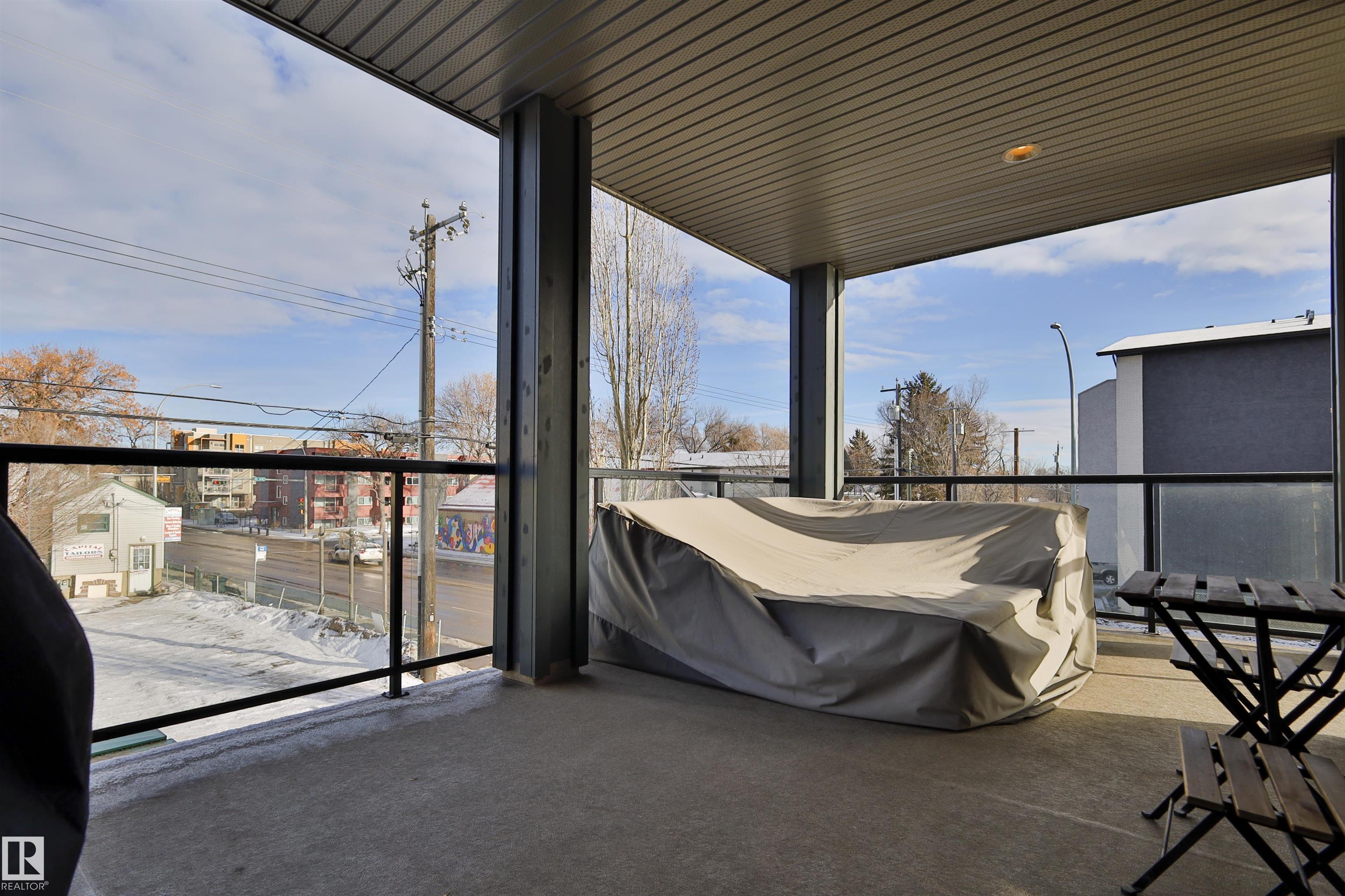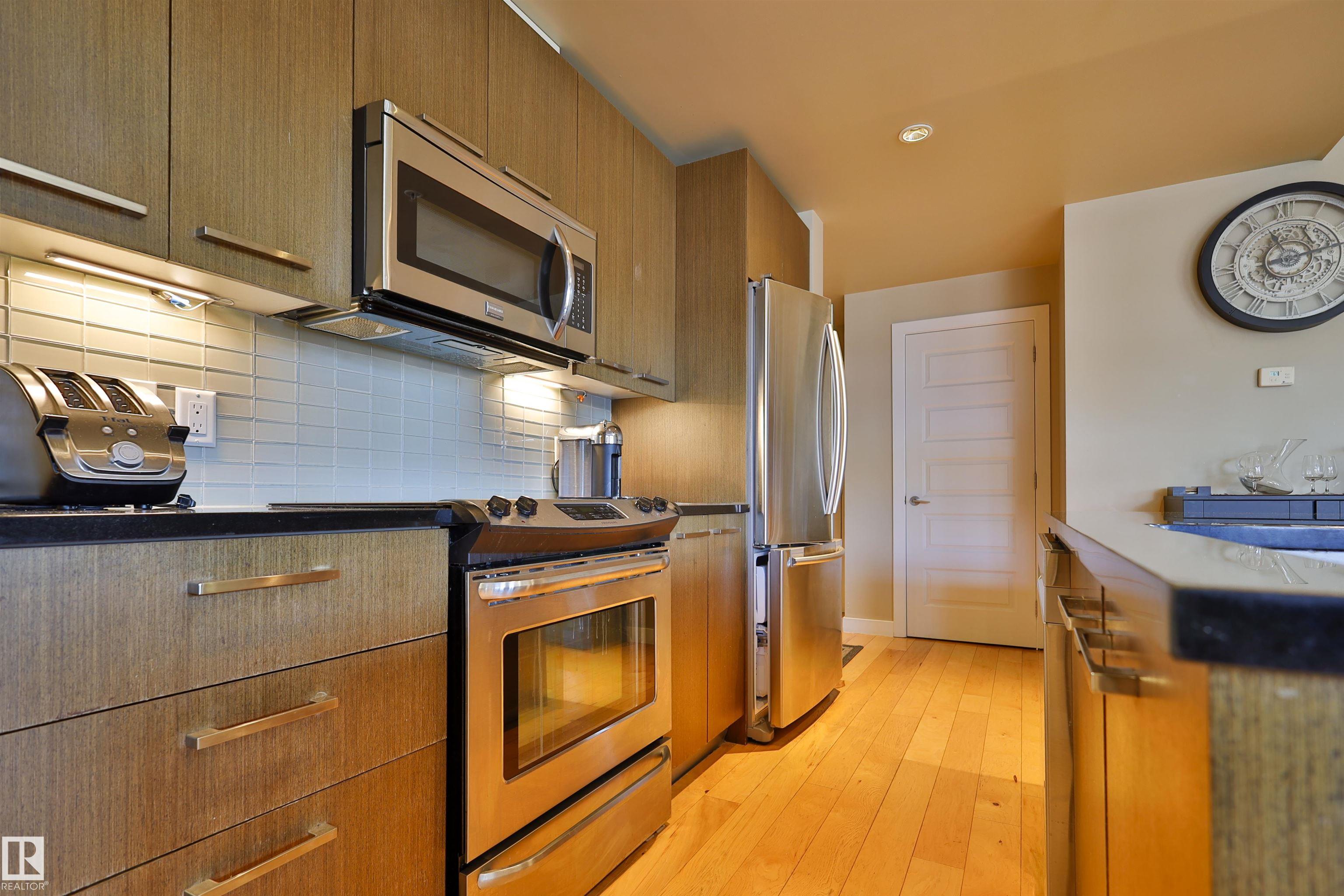 This beautifully designed condo is perfectly situated just off Whyte Ave, placing you minutes from the U of A, River Valley trails, top restaurants, shopping, and everyday essentials. Offering 857 sq. ft. of contemporary living space, this urban home features two bedrooms and two full bathrooms with a thoughtfully designed open-concept layout. Large windows fill the living area with natural light, creating a bright and welcoming atmosphere. The sleek kitchen is equipped with stainless steel appliances, ample cabinetry, and a large island with bar seating?ideal for hosting or casual weeknight dinners?while flowing effortlessly into the dining and living spaces. The primary bedroom includes a walk-through closet with built-in organizers and a private four-piece ensuite. A second bedroom with built-in shelving offers flexibility for a home office or guest room. With in-suite laundry, and a generous private balcony with BBQ hookup, heated underground parking, unbeatable location, for urban style & comfort.