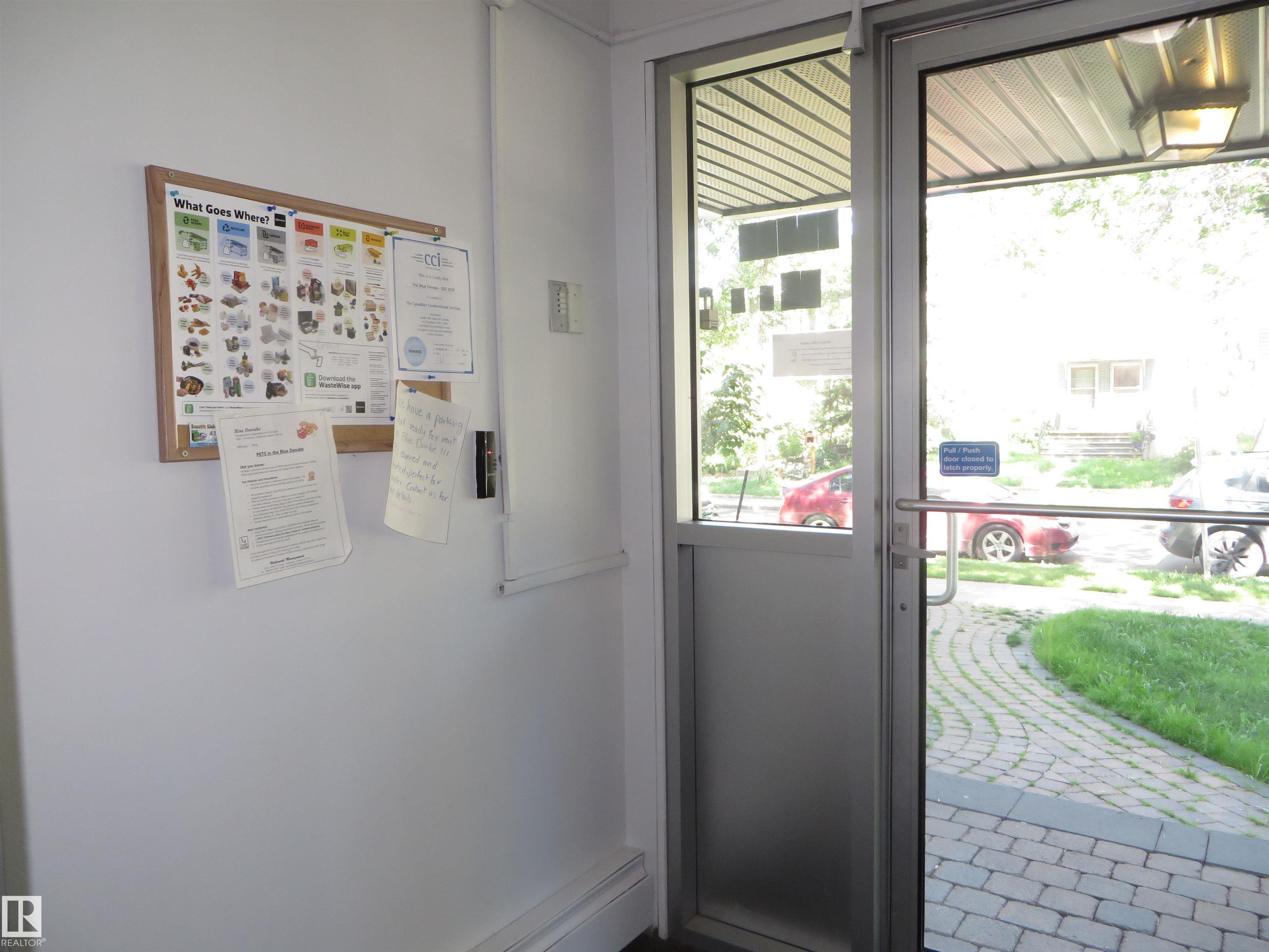 This upgraded contemporary 1 bedroom, 1 bath main floor corner unit is perfectly located on a quiet tree lined street just steps away from Whyte Ave amenities including unique boutique shops, variety of casual & trendy dining, cafe, pubs, year-round farmer market & more. The spacious bright and open floor plan features large living room w/ patio doors to a enclosed patio, upgraded maple kitchen with granite countertop & tiled backsplash. Spacious bedroom has mirror closet door. Insuite laundry, maple hardwood & tiled floorings, decorative crown moulding. Extra huge windows, energized parking stall & more. Well maintained building in an outstanding location w/ easy access U of A, public transit, City Centre, River Valley  trails and more. Affordable and great buy for starter/revenue home.
