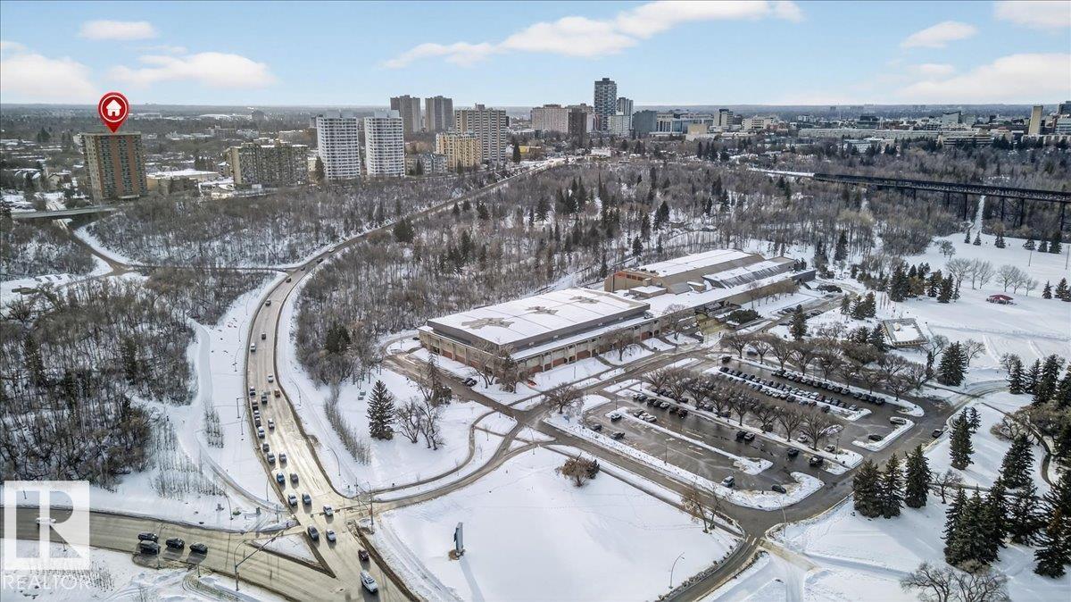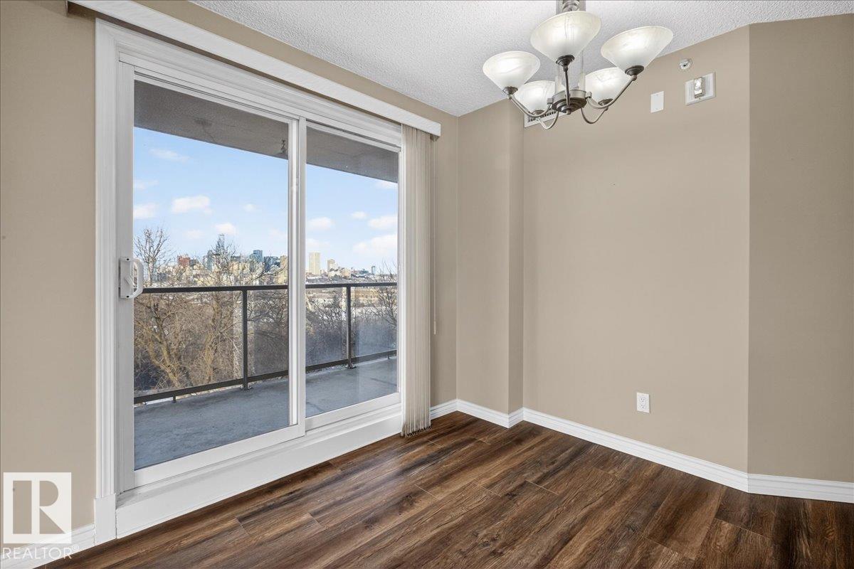 DOWNTOWN & RIVER VIEWS from sunrise to sunset in this impeccably well kept 2B/2BA corner unit. You will praise the space, at 1053 sq.ft the 2 bedrooms are spacious and each come with large closets and ensuites. Other perks: Natural Gas BBQ hookup on the balcony, electric fireplace, in-suite laundry, underground parking, AIR-CONDITIONING, main floor gym, and low condo fees ($689.96). Neighbouring the UofA, Downtown, Whyte Ave and the River Valley trails right out your front door makes this more than just 4 walls and a roof.