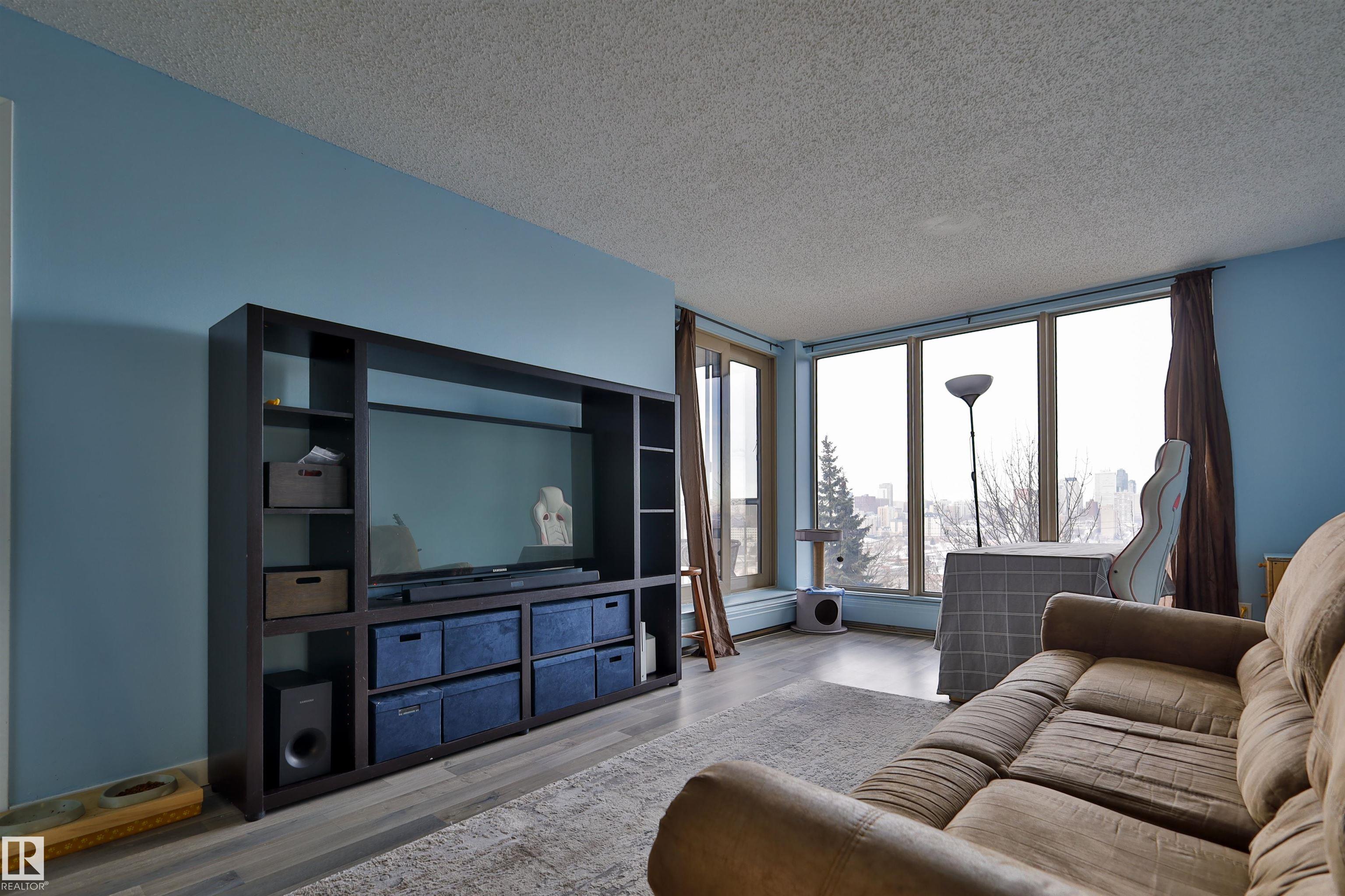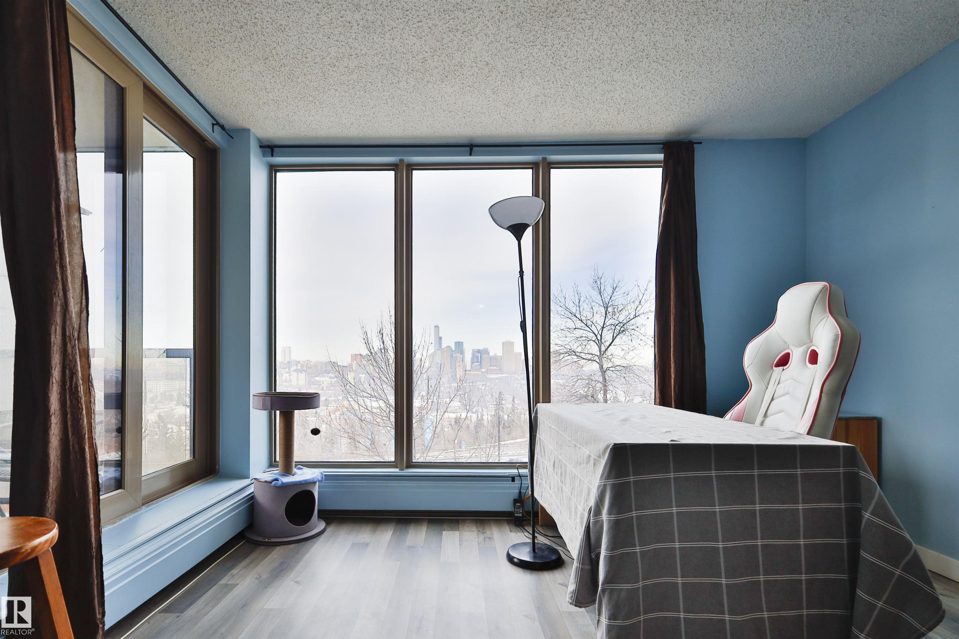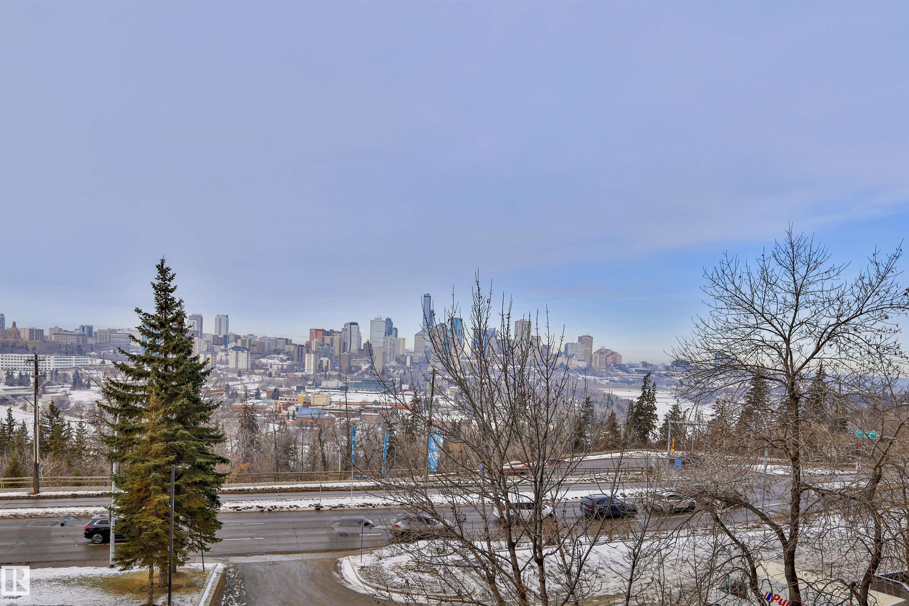 Welcome to this 2 bedroom, 2 full bathroom condo located on prestigious Saskatchewan Drive, offering truly outstanding River Valley and downtown Edmonton views. While the unit itself is modest and ready for your personal updates, the scenery alone is a rare find?enjoy sweeping, unobstructed vistas year-round from the comfort of your home. The functional layout includes two well-sized bedrooms, including a primary with full ensuite, and a second full bathroom?ideal for roommates or guests. The building features exceptional amenities, including an impressive fitness centre, racquetball court, and an outdoor basketball court, making it easy to stay active without leaving home. Situated along the River Valley trail system and just minutes to downtown, the University of Alberta, and Whyte Avenue, this is an excellent opportunity for buyers looking to secure an unbeatable location and view, with the chance to add value through renovation.