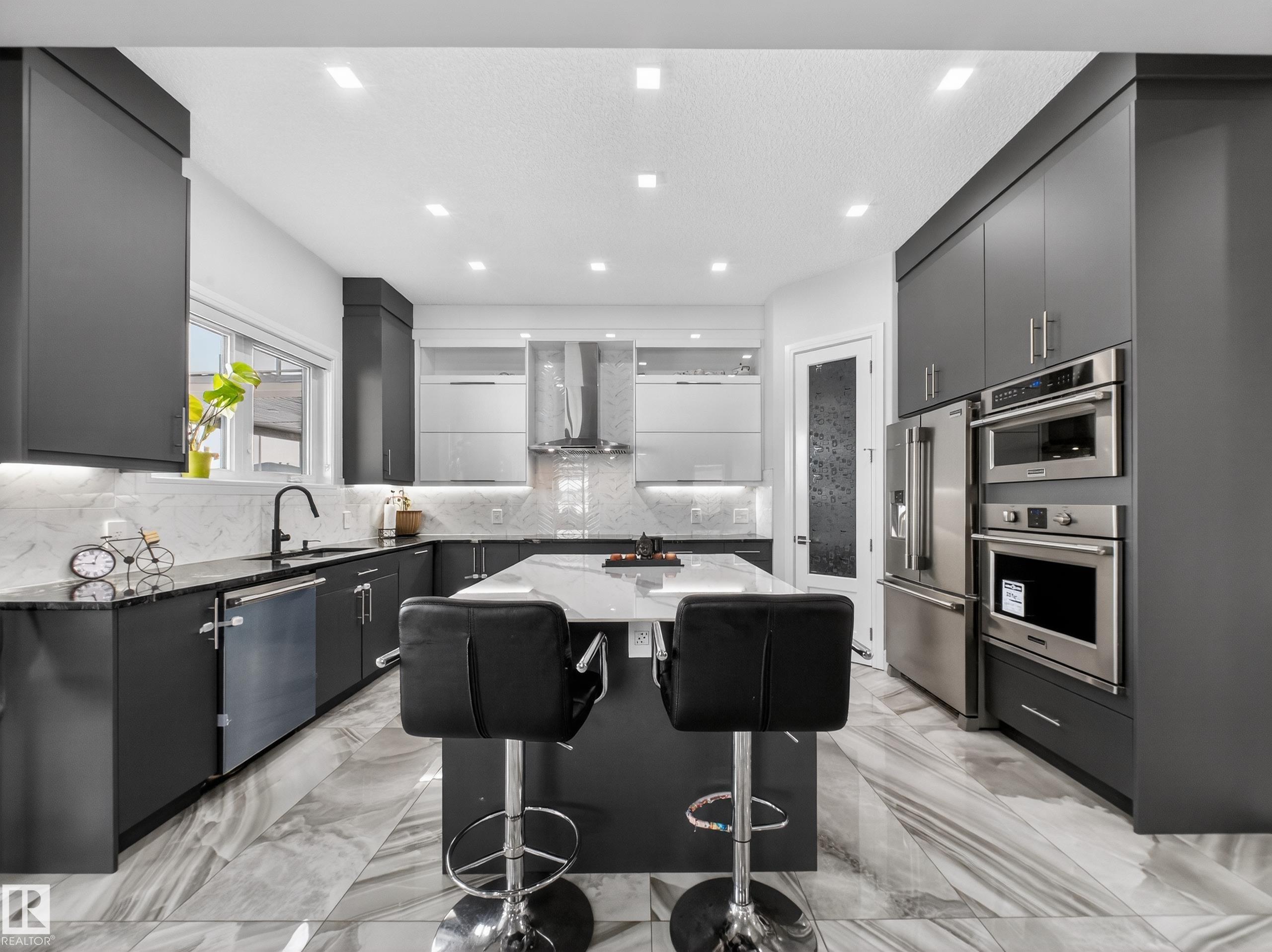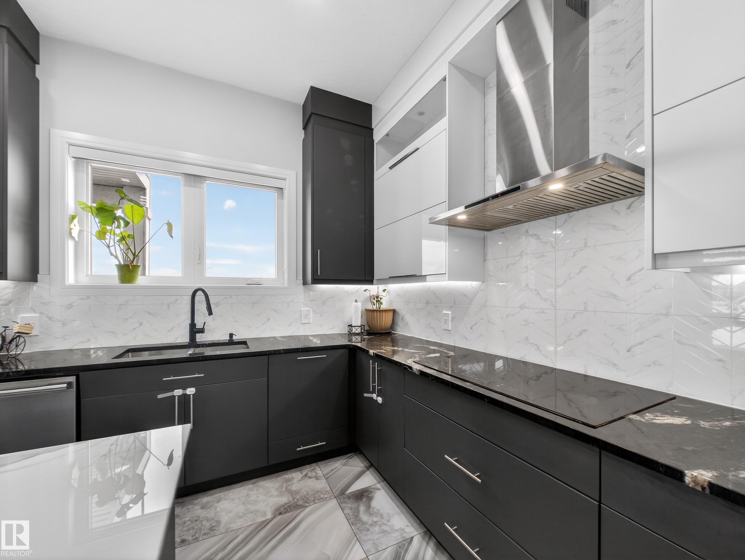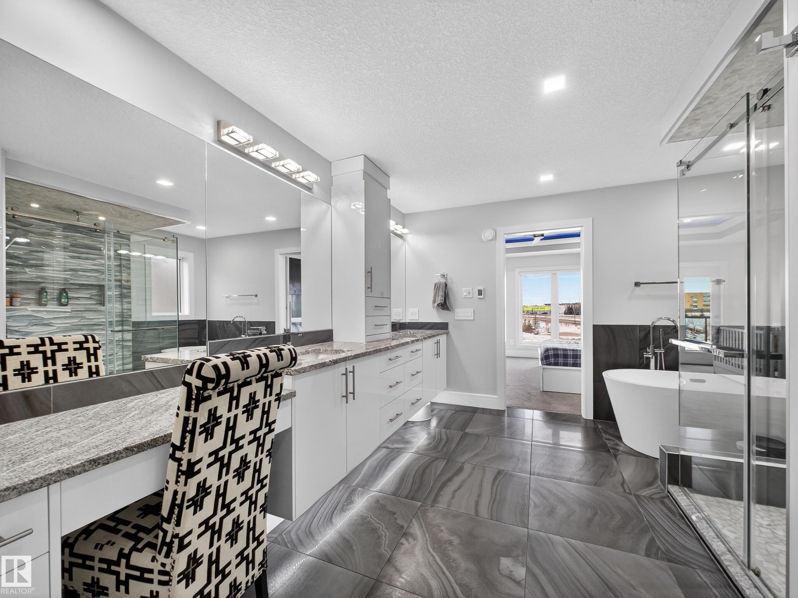 THIS IS A DREAM!...HUGE YARD BACKING PARK/POND...LEGAL BASEMENT SUITE w/SEPARATE ENTRANCE...6 BED/5.5 BATHS...HIGH END FINISHES...DREAM KITCHEN...CLOSE TO EVERYTHING!... ~!WELCOME HOME !~ This home has details that you need to come see for yourself! 10 FT CEILINGS/COFFERED CEILINGS everywhere, with tons of accent lighting throughout home. CHEF KITCHEN, featuring stone countertops, induction cooktop, wall oven, modern custom cabinetry. Primary suite has amazing private balcony, walk-in closet/builtins & spa-like ensuite. Two more bedrooms up, one having an ensuite also! INFLOOR HEAT in ensuites too! Enjoy the INCOME of the legal basement suite, or use as in-law suite. Other bonuses - partially covered deck, oversized double garage, HUGE BACKYARD backing onto a pond and walking trail. ++ pot lights throughout, solar panel & central vac rough-ins. Close to schools, shopping, parks, walking trails, Whitemud & Anthony Henday. What more could you want?!!