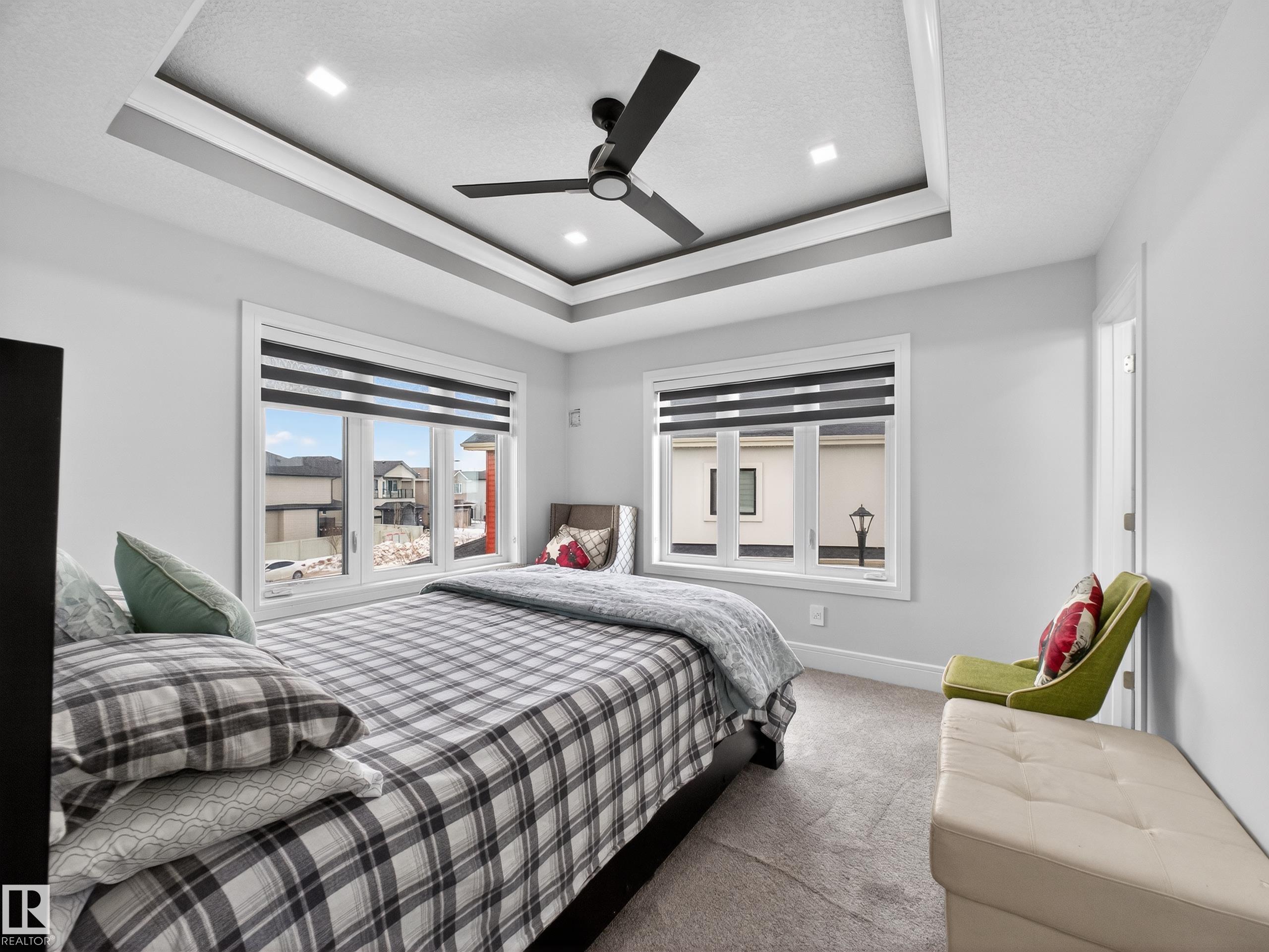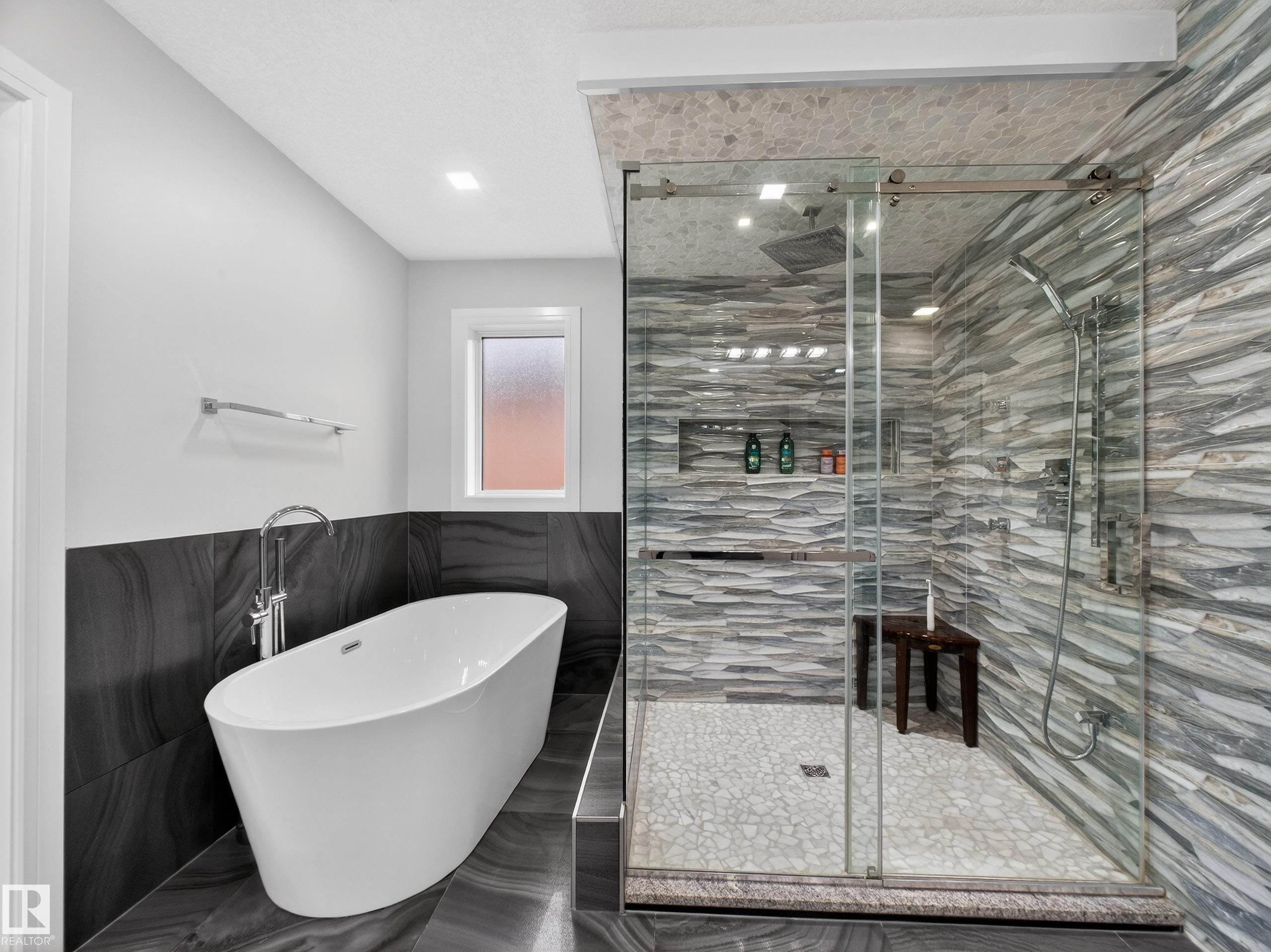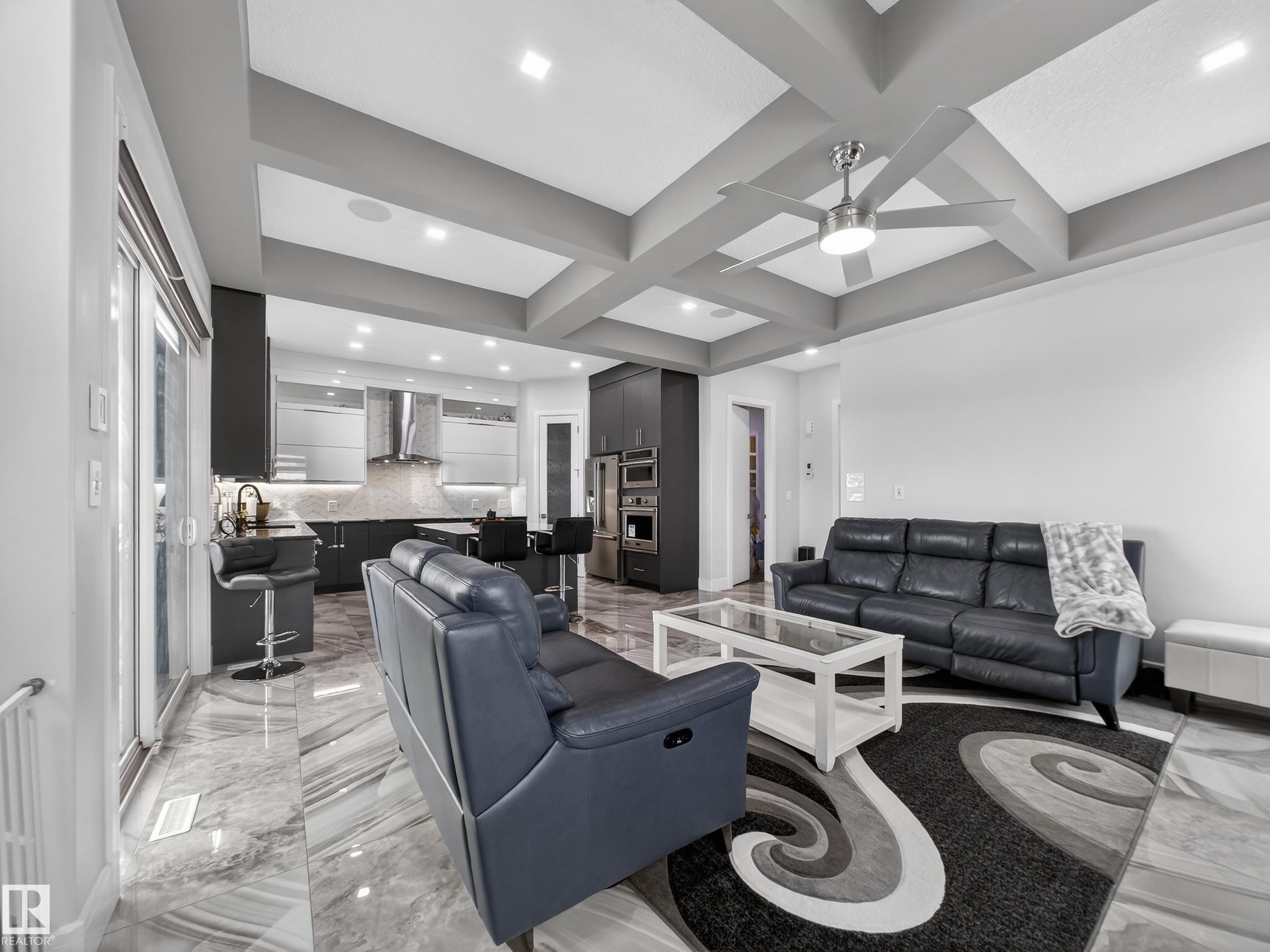 THIS IS A DREAM!...HUGE YARD BACKING PARK/POND...LEGAL BASEMENT SUITE w/SEPARATE ENTRANCE...6 BED/5.5 BATHS...HIGH END FINISHES...DREAM KITCHEN...CLOSE TO EVERYTHING!... ~!WELCOME HOME !~ This home has details that you need to come see for yourself! 10 FT CEILINGS/COFFERED CEILINGS everywhere, with tons of accent lighting throughout home. CHEF KITCHEN, featuring stone countertops, induction cooktop, wall oven, modern custom cabinetry. Primary suite has amazing private balcony, walk-in closet/builtins & spa-like ensuite. Two more bedrooms up, one having an ensuite also! INFLOOR HEAT in ensuites too! Enjoy the INCOME of the legal basement suite, or use as in-law suite. Other bonuses - partially covered deck, oversized double garage, HUGE BACKYARD backing onto a pond and walking trail. ++ pot lights throughout, solar panel & central vac rough-ins. Close to schools, shopping, parks, walking trails, Whitemud & Anthony Henday. What more could you want?!!