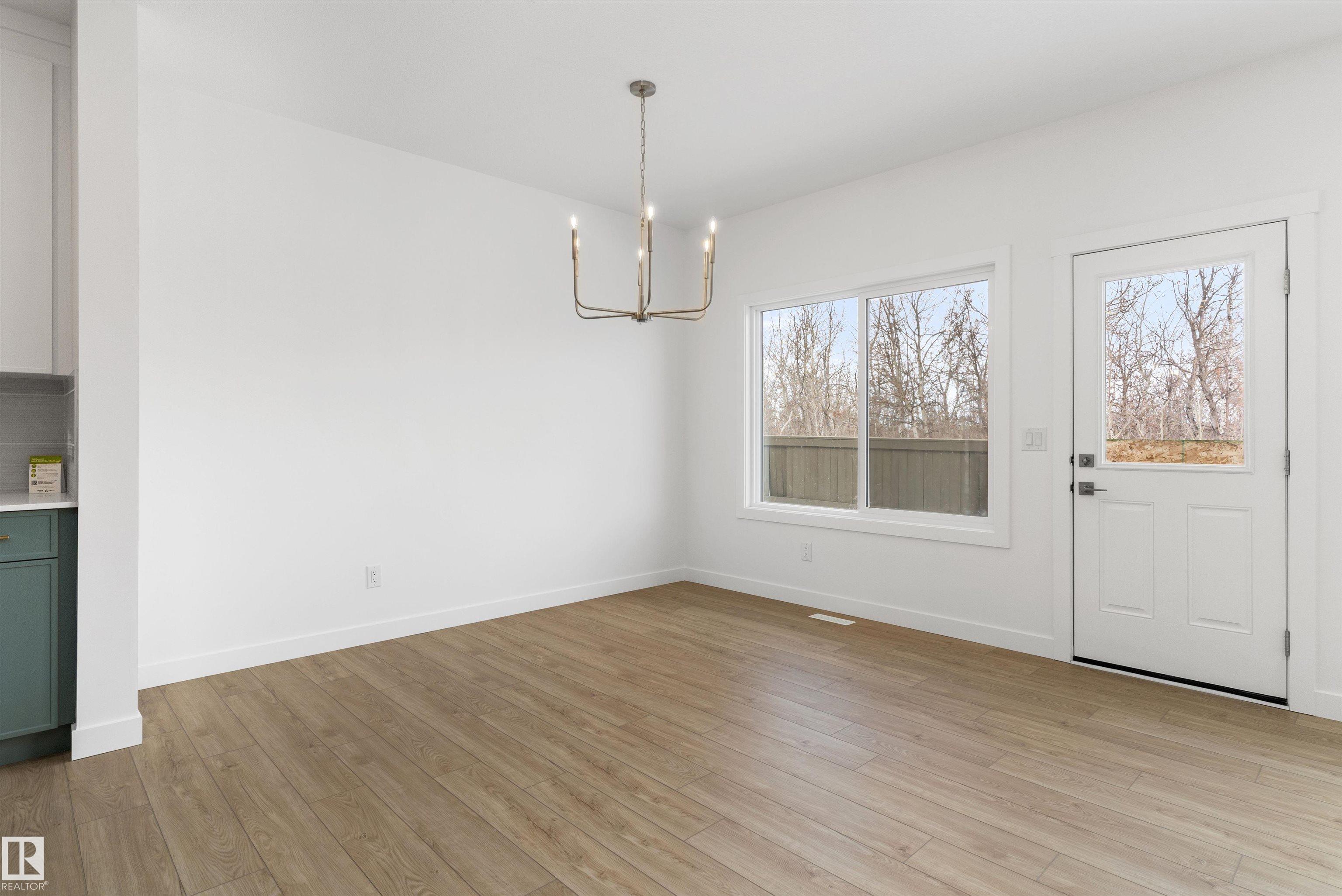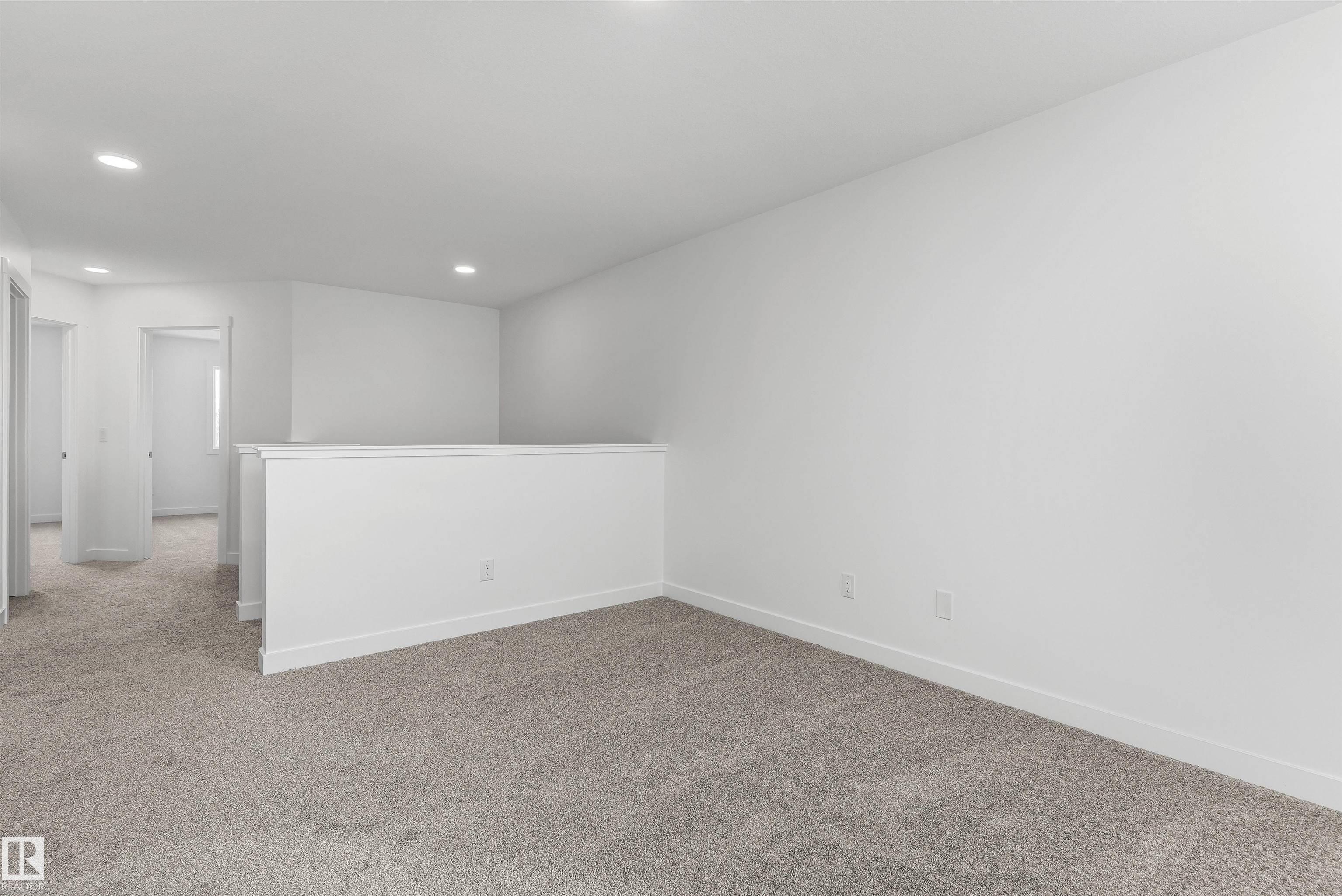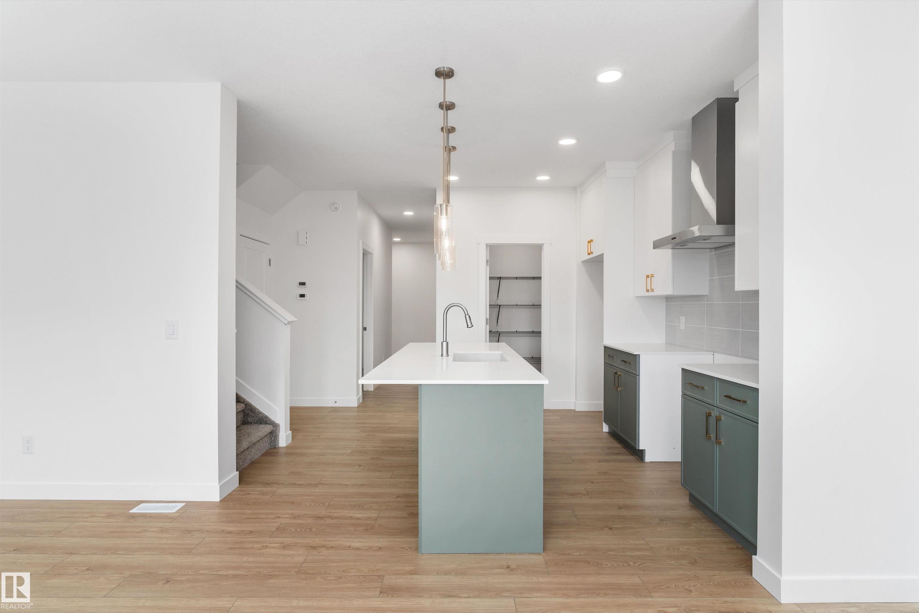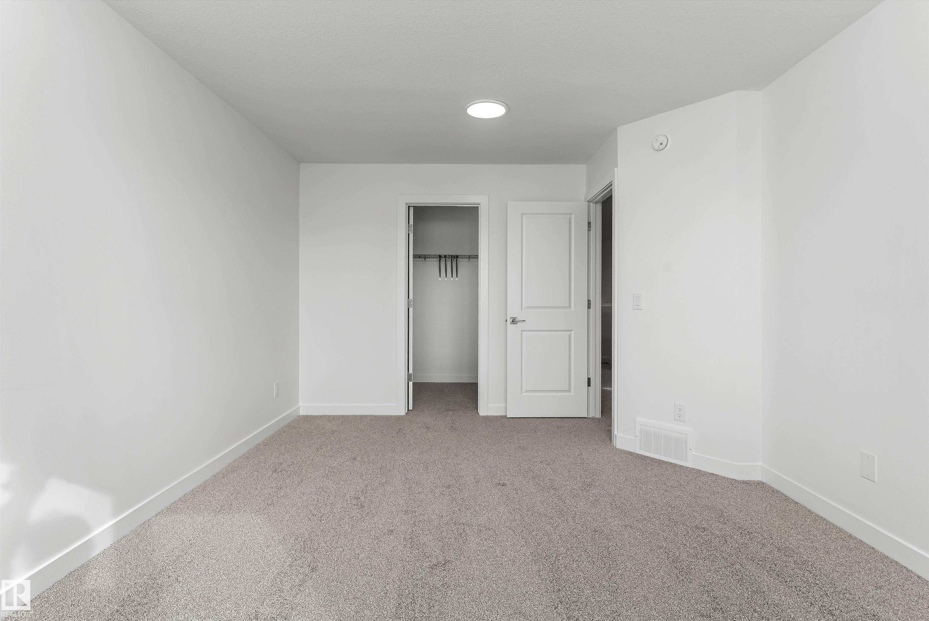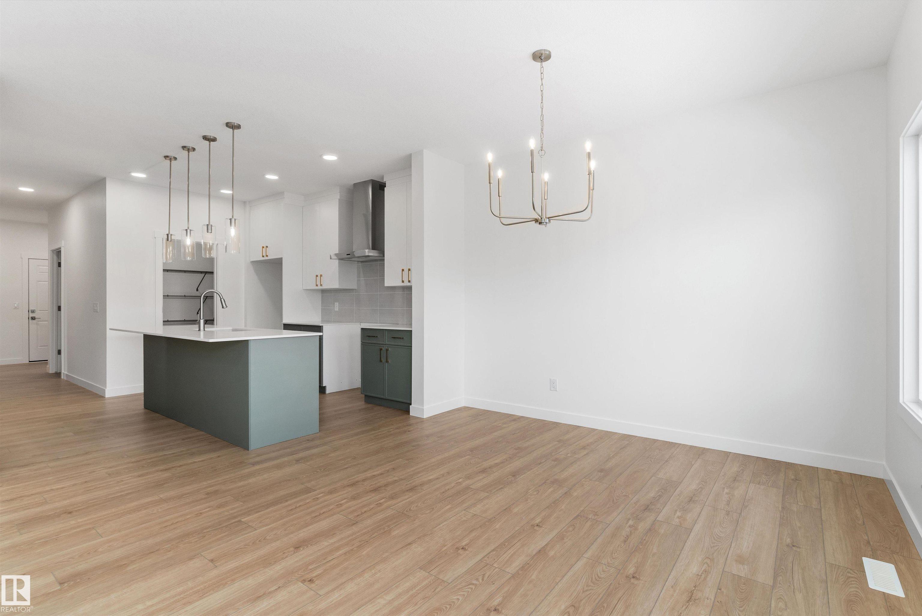 Built by Sterling Homes, this front-attached home in College Woods at Lakeview offers bright, modern living near trails, greenspace, and natural calm. Triple-pane windows and 9? ceilings fill the open-concept main floor with light, from the foyer to the spacious great room with electric fireplace. The kitchen features quartz countertops, a large island, ceiling-height cabinetry with crown moulding, chimney hood fan, built-in microwave, and corner pantry?ideal for daily living and entertaining. A garden door opens to the backyard with a convenient half bath on the main level. Upstairs, the primary suite includes a walk-in closet and 4-piece ensuite with double sinks and glass shower. A central bonus room, upper laundry, full bath, and two bedrooms complete the layout. Finished with luxury vinyl plank flooring, upgraded railings, side entrance, double attached garage with floor drain, and basement rough-ins, this home offers comfort in a peaceful, nature-inspired community.