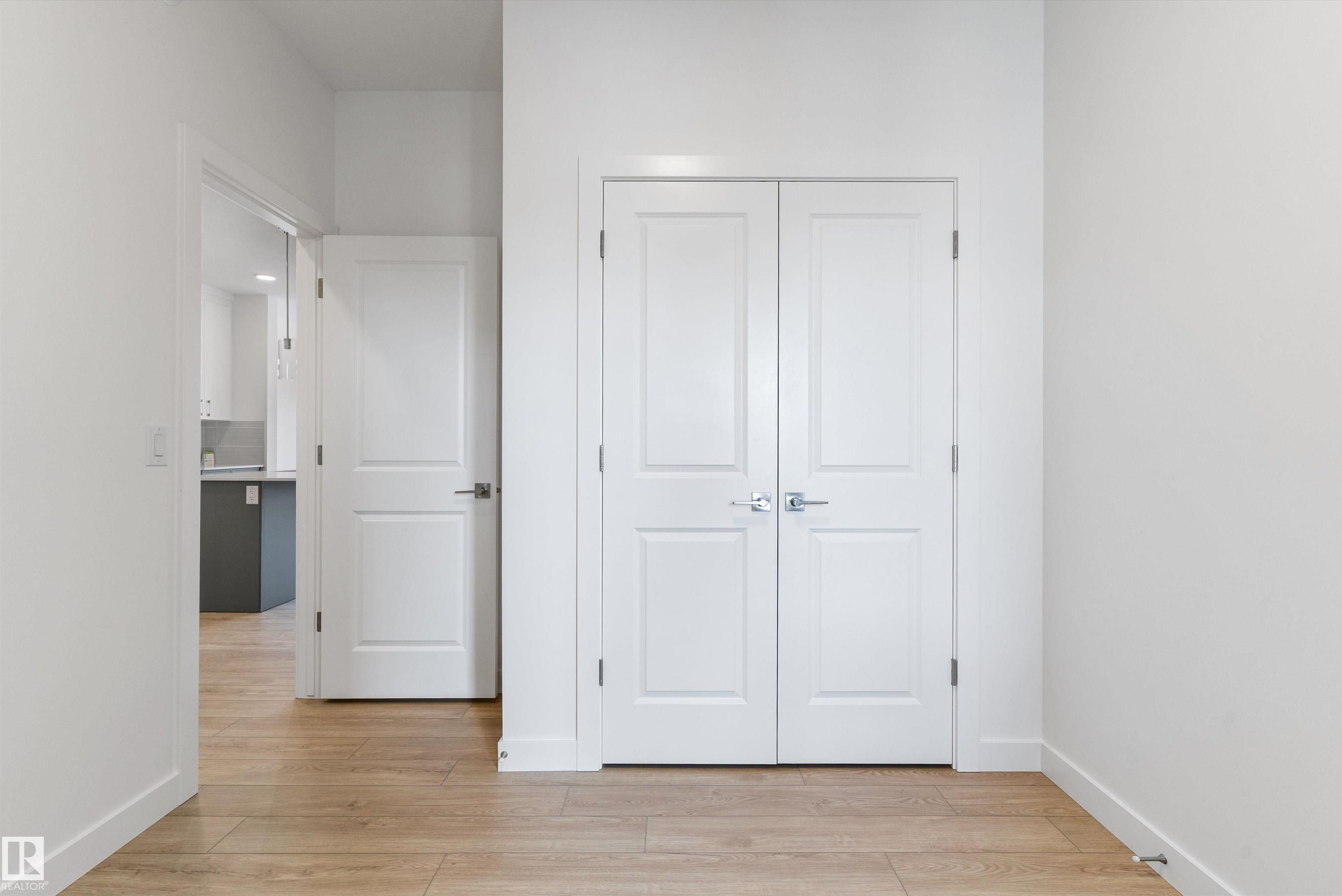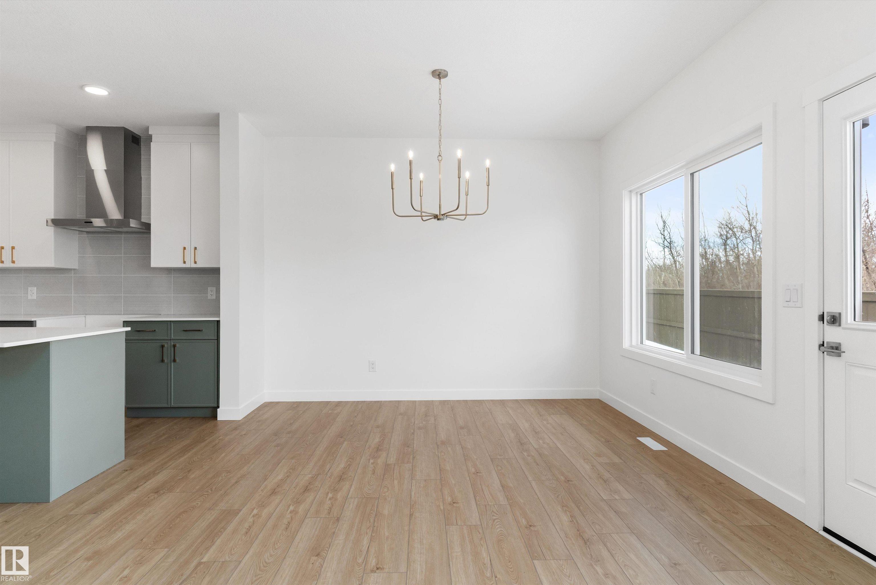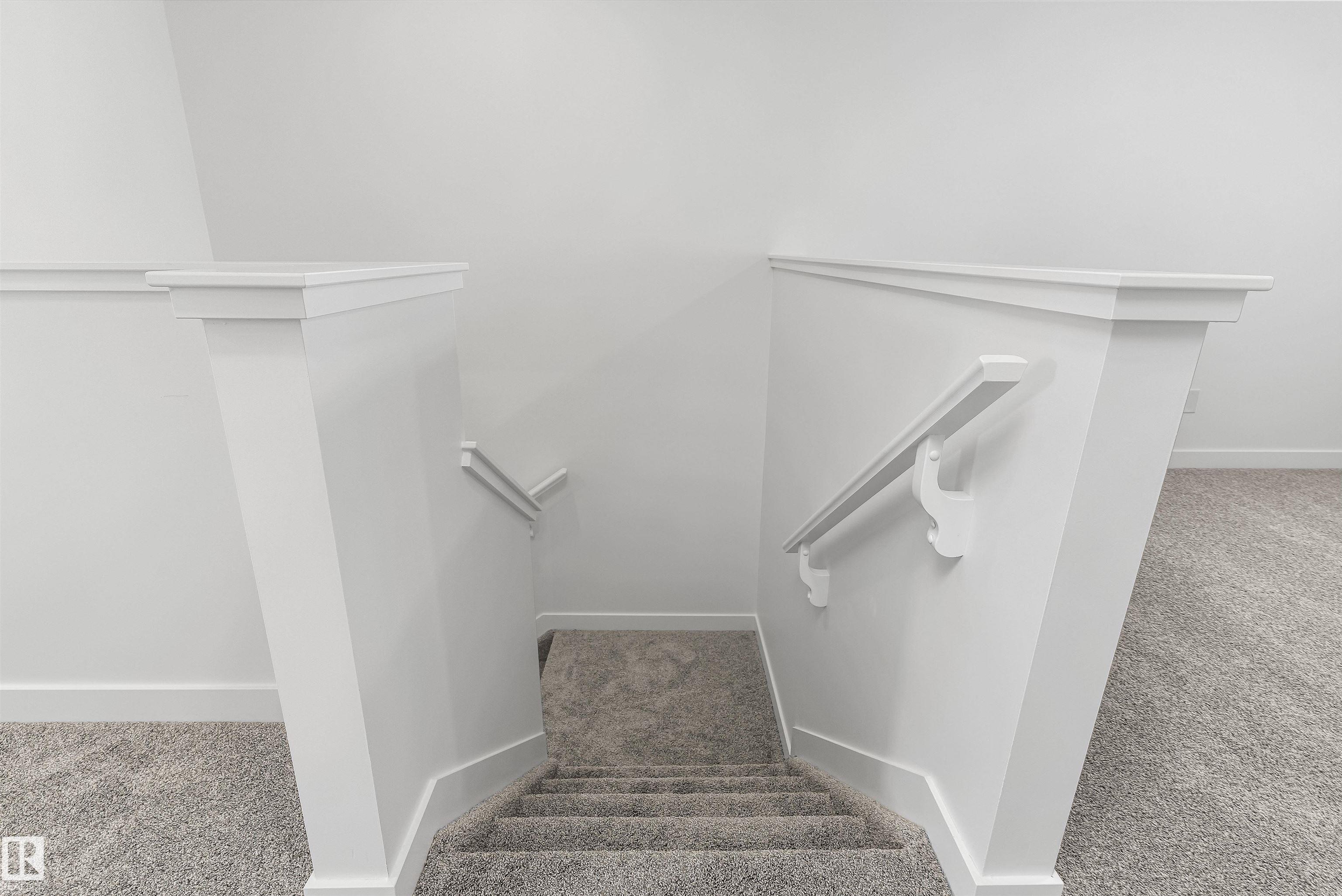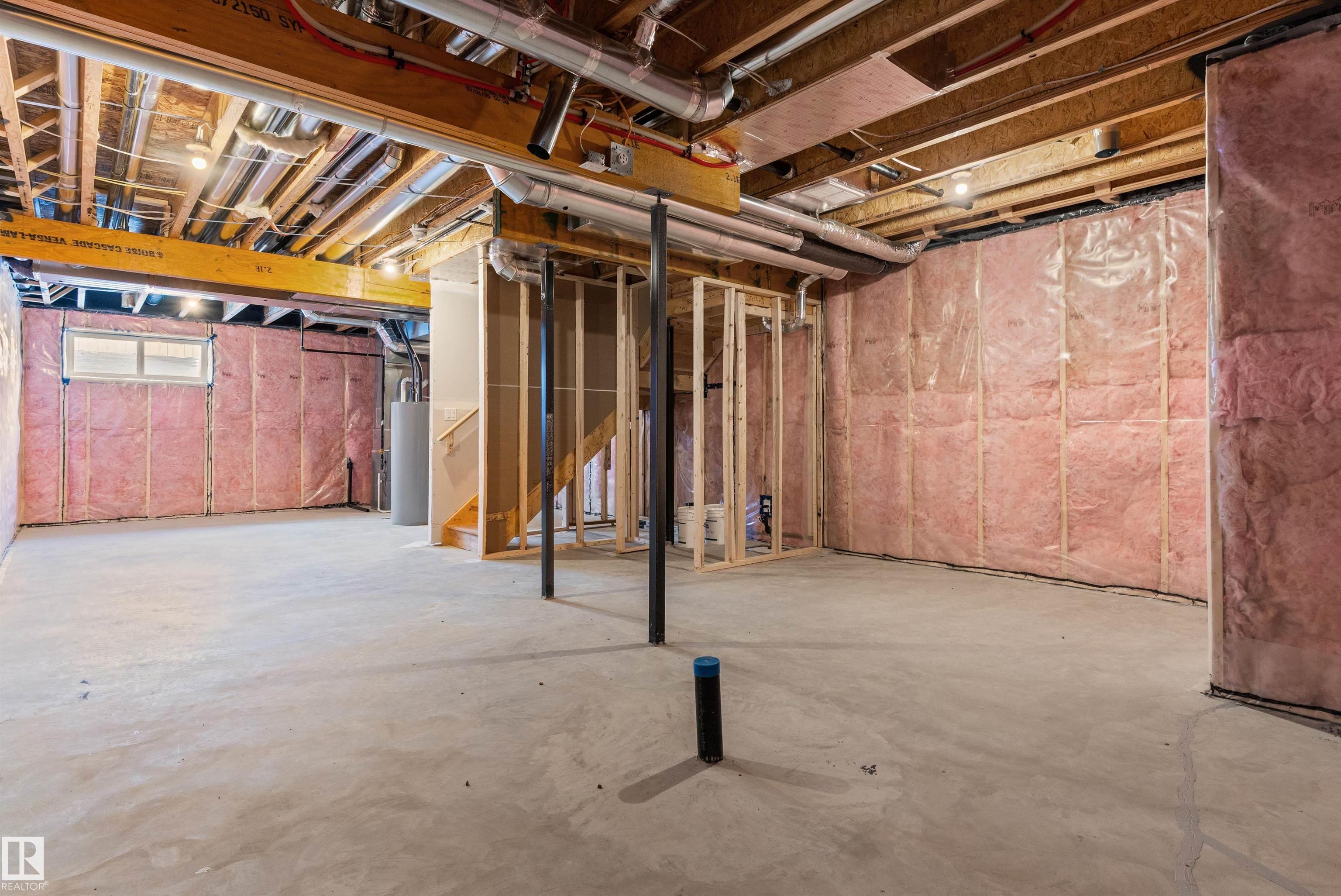 Built by Sterling Homes, this front-attached home in College Woods at Lakeview offers bright, modern living near trails, greenspace, and natural calm. Triple-pane windows and 9? ceilings fill the open-concept main floor with light, from the foyer to the spacious great room with electric fireplace. The kitchen features quartz countertops, a large island, ceiling-height cabinetry with crown moulding, chimney hood fan, built-in microwave, and corner pantry?ideal for daily living and entertaining. A garden door opens to the backyard with a convenient half bath on the main level. Upstairs, the primary suite includes a walk-in closet and 4-piece ensuite with double sinks and glass shower. A central bonus room, upper laundry, full bath, and two bedrooms complete the layout. Finished with luxury vinyl plank flooring, upgraded railings, side entrance, double attached garage with floor drain, and basement rough-ins, this home offers comfort in a peaceful, nature-inspired community.