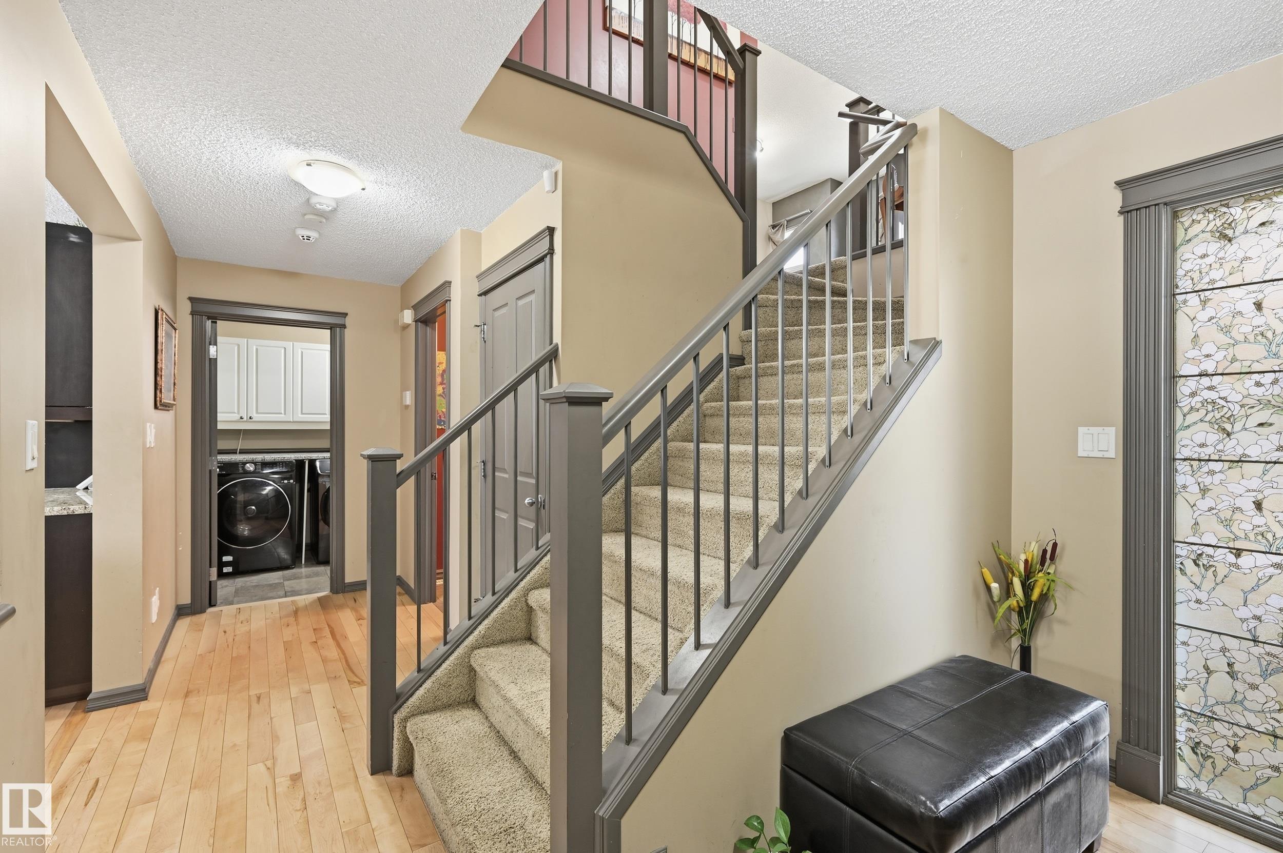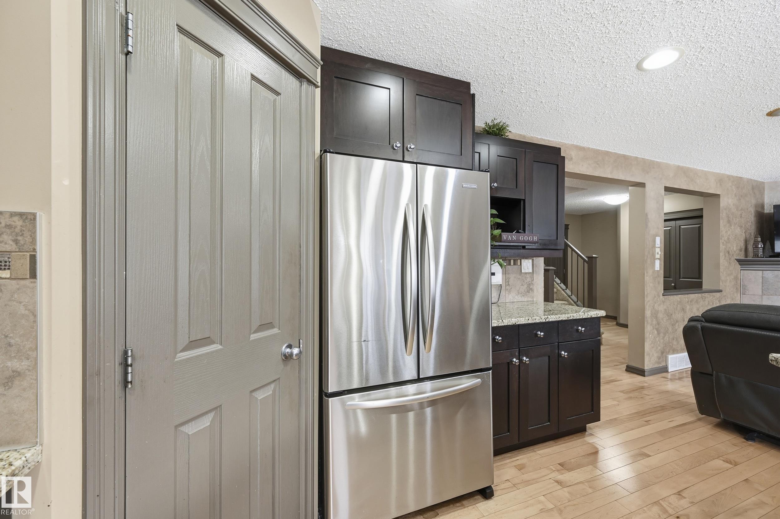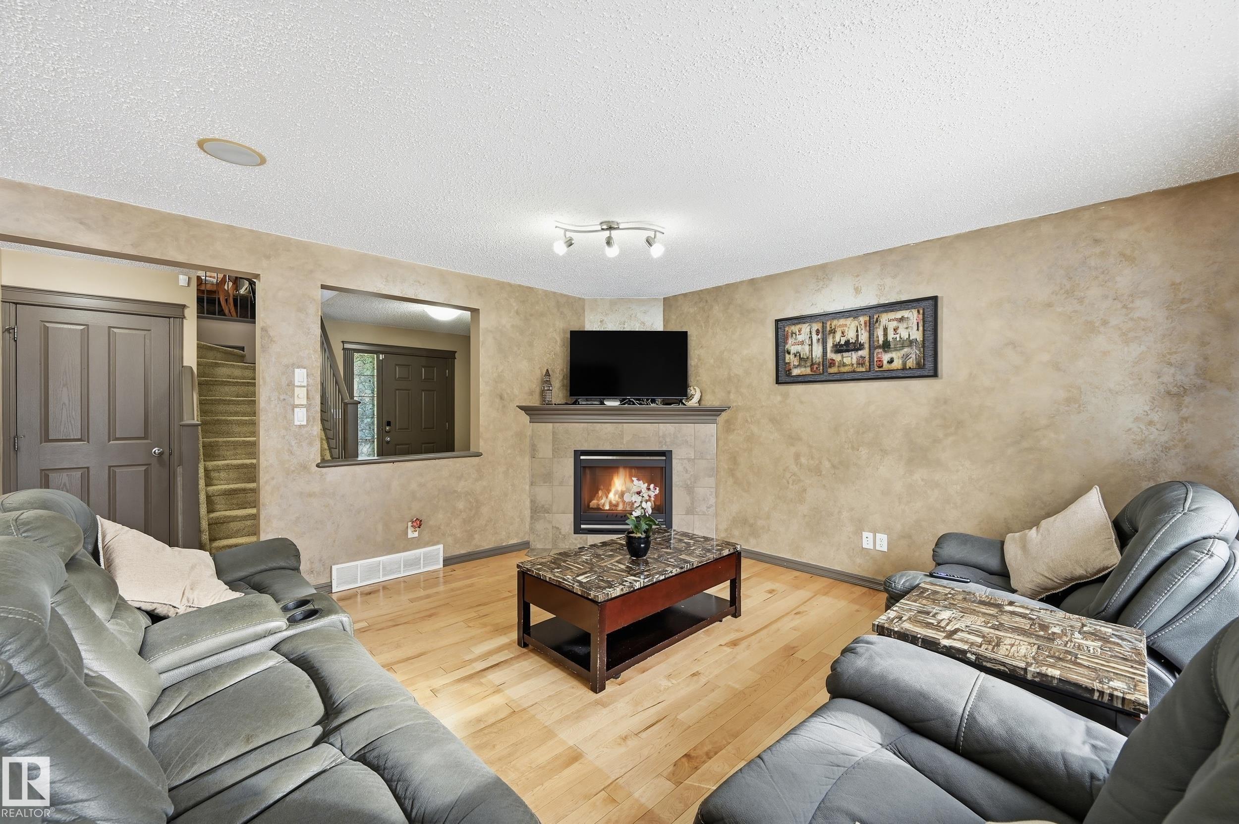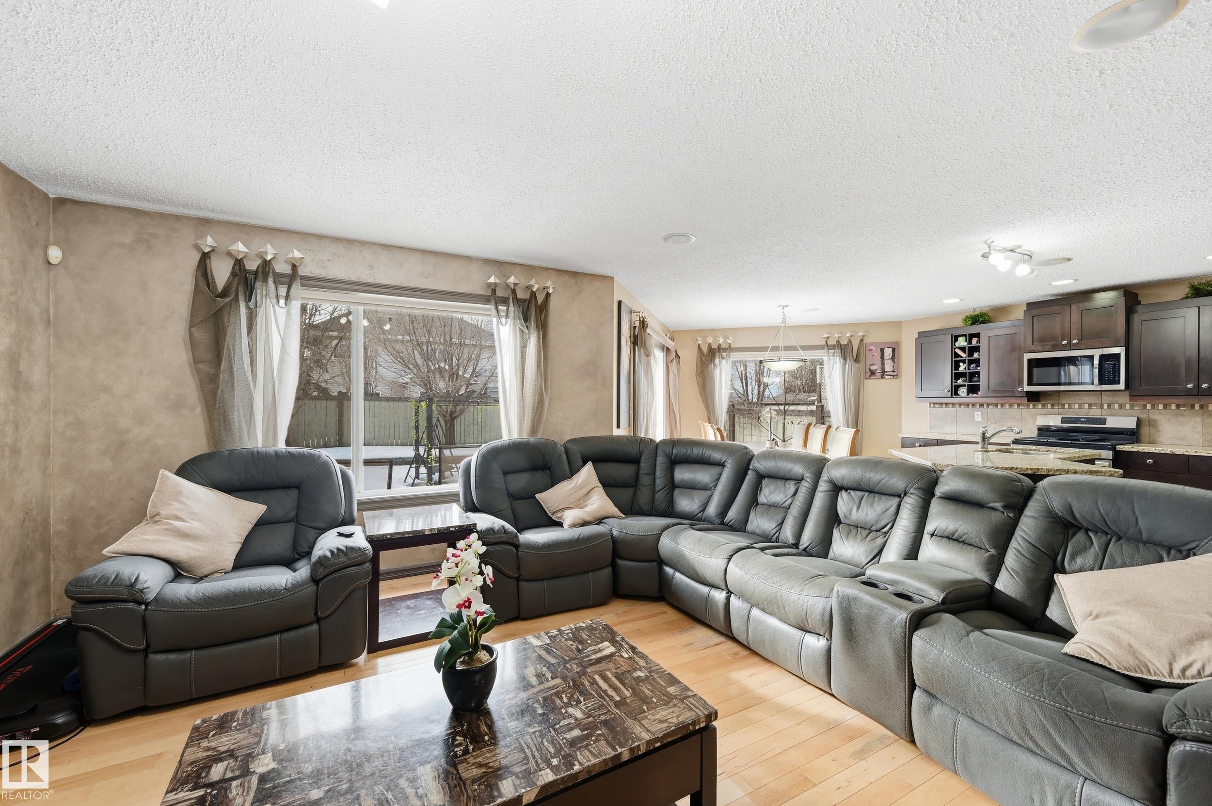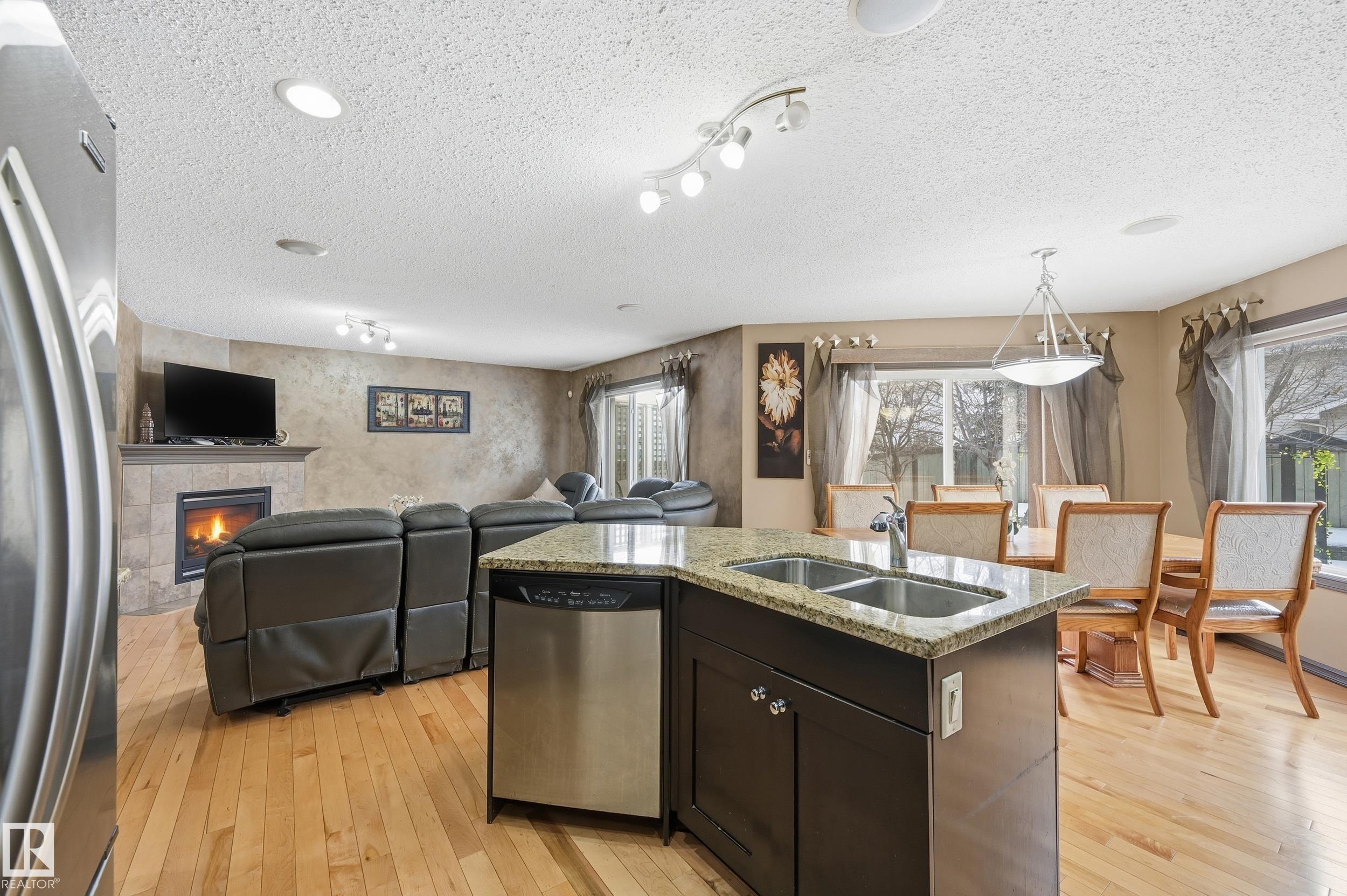 Executive 2 Storey family home in the sought after community of Potter Greens, offering 4 bedrooms and 4 bathrooms. The open concept main level is highlighted by rich hardwood flooring, a mantled gas fireplace, and expansive windows framing the private backyard. The chef-inspired kitchen features warm wood cabinetry, granite countertops, stainless steel appliances, a walk-in pantry, and a large island with breakfast bar perfect for entertaining. The dining area opens onto a beautifully landscaped yard with deck, patio, gazebo, and mature greenery. The main floor is completed by a stylish living space, 2-piece bath, and a functional mudroom with laundry and access to the double attached garage. Upstairs, a massive bonus room is thoughtfully separated from the bedrooms, offering added privacy. The primary retreat boasts a spalike ensuite with soaker tub and separate shower. The fully finished basement includes a 4th bedroom, full bath, den, storage, and an inviting rec area with refreshment.